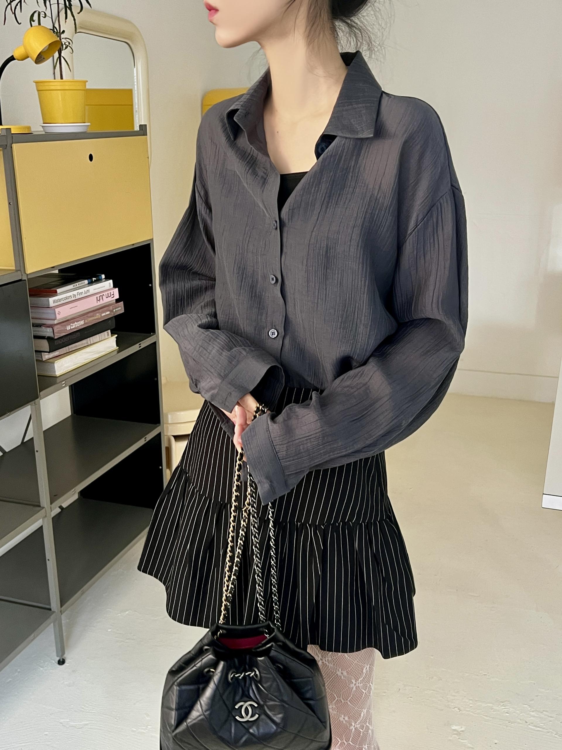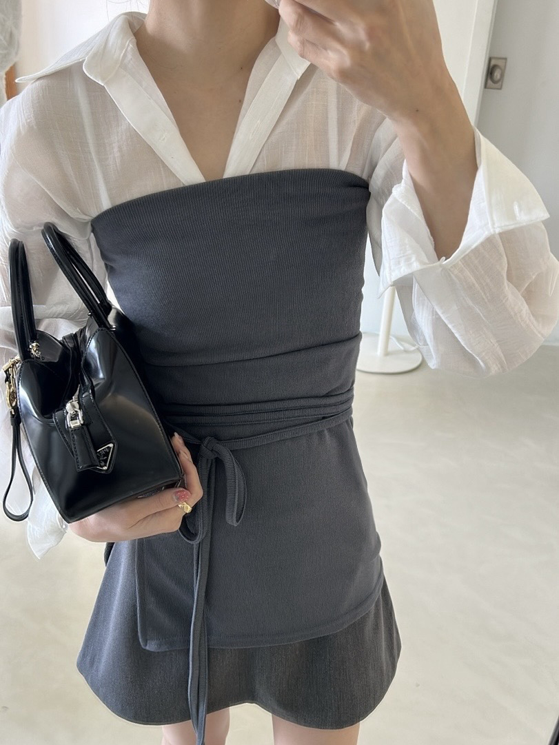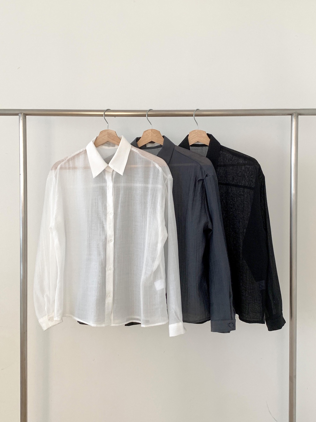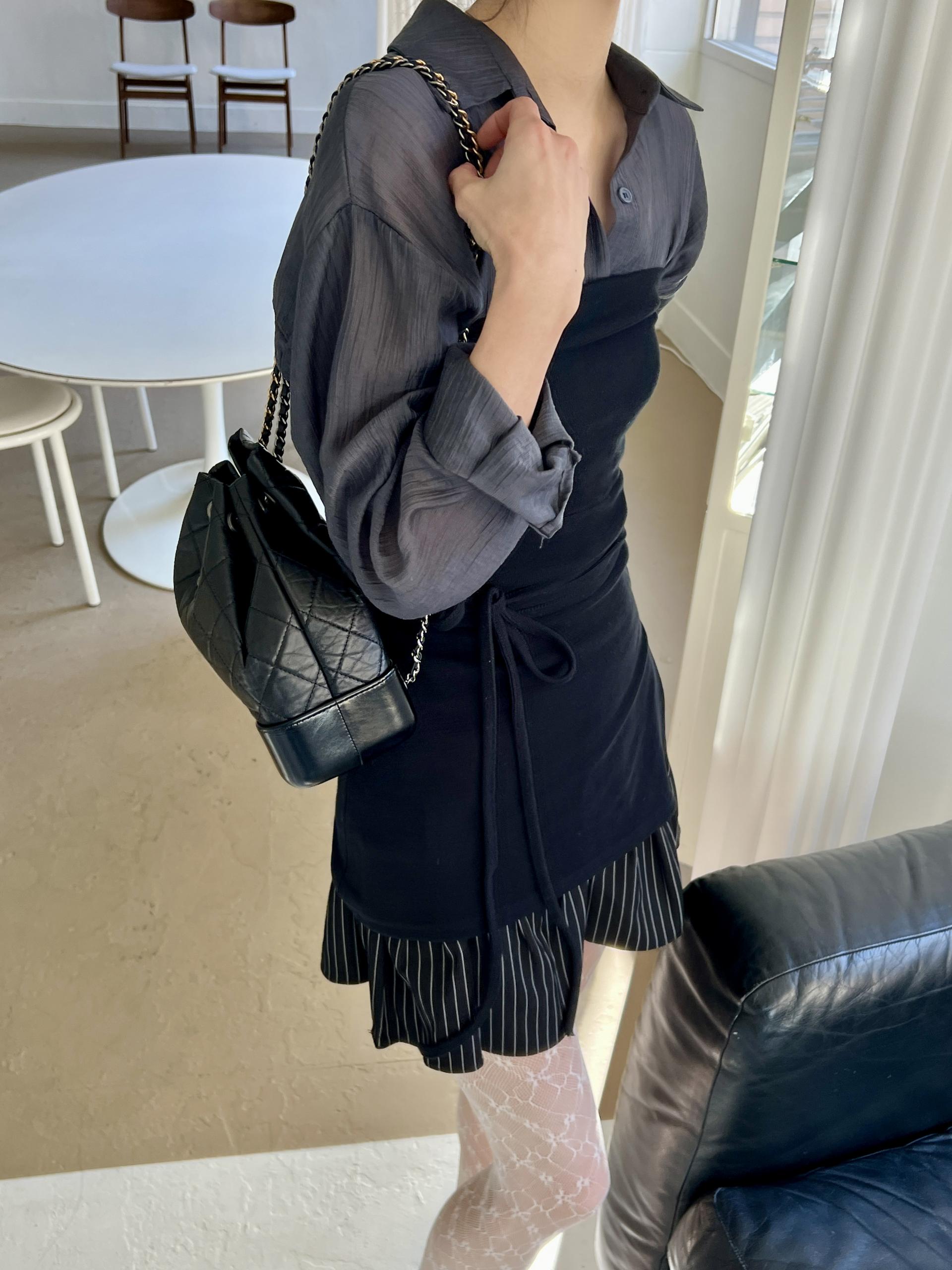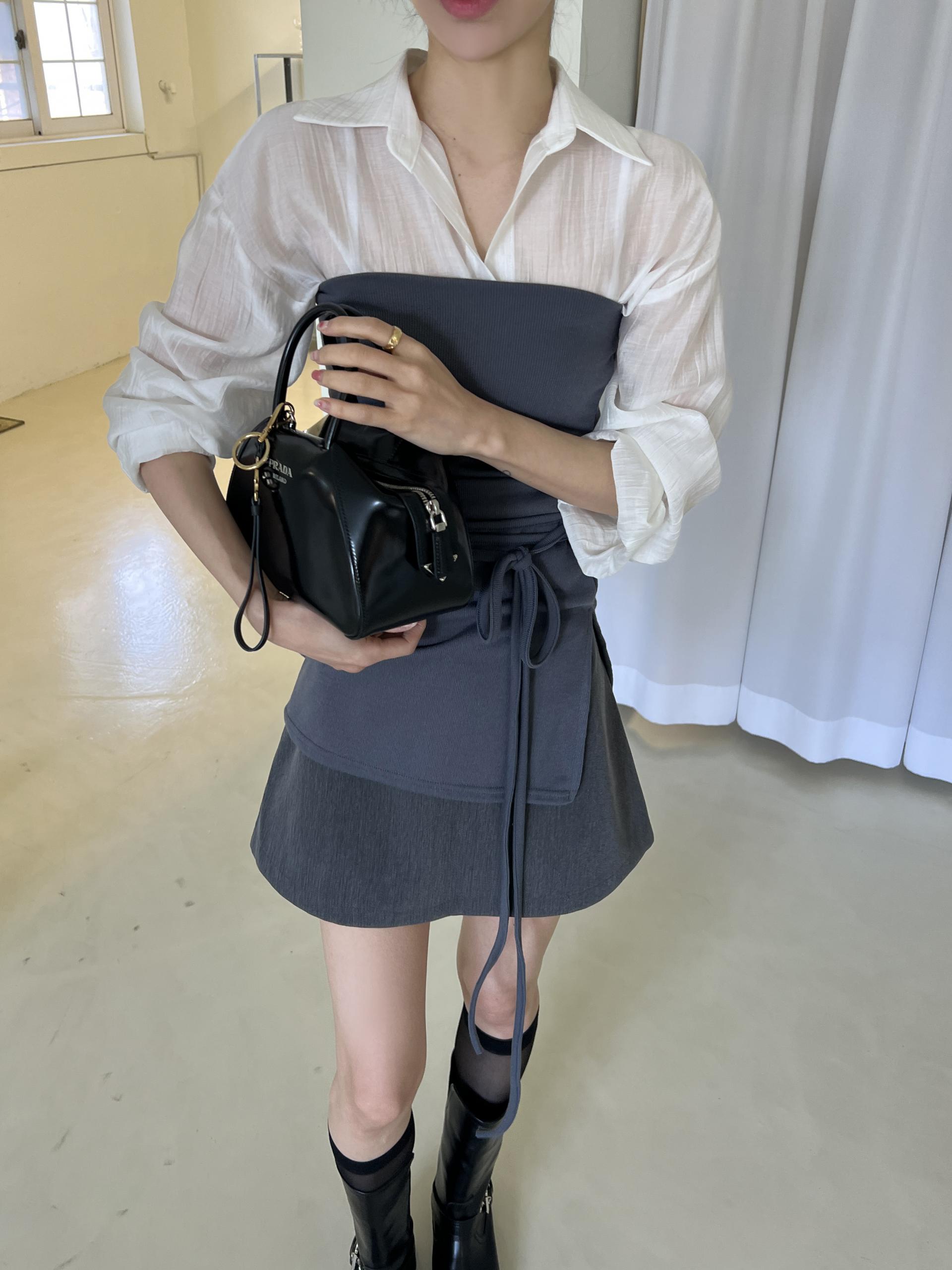 비침이 있는 시스루 소재로 여리여리한 느낌을 살려 단독 착용하셔도 좋고, 뷔스티에와 레이어드하시거나 여름 시즌에는 커버업 셔츠로 걸치듯 착용하셔도 좋아요.