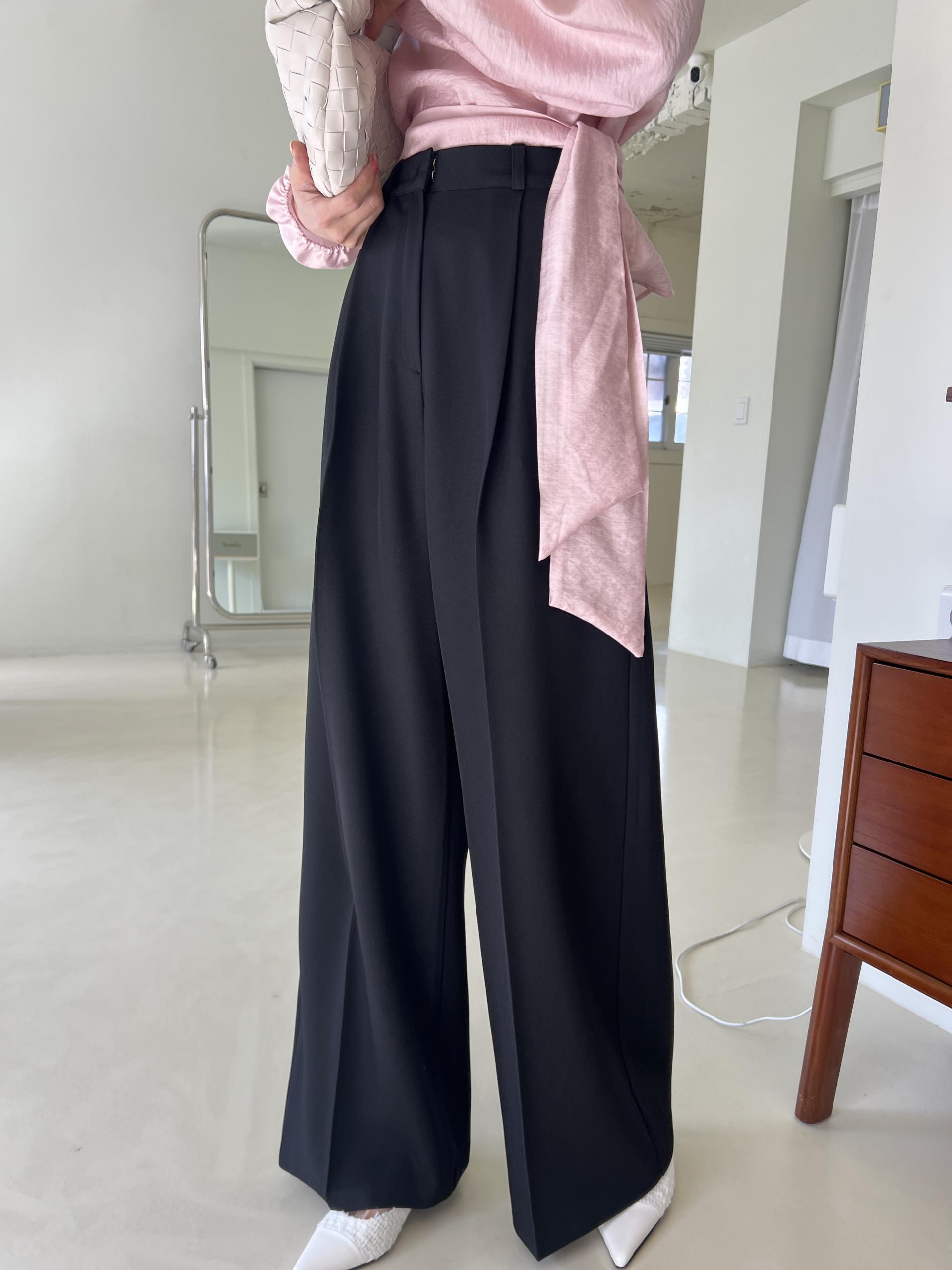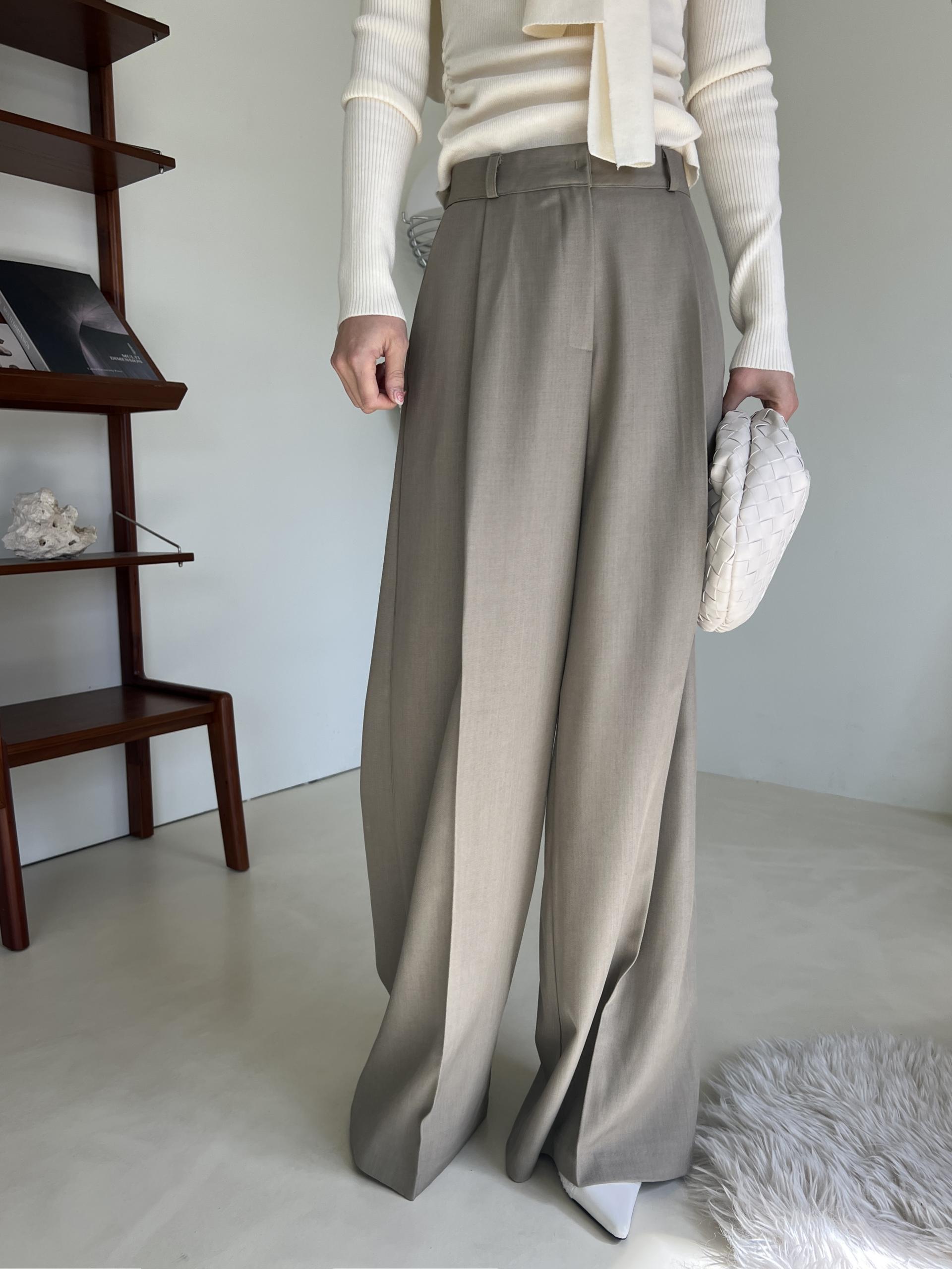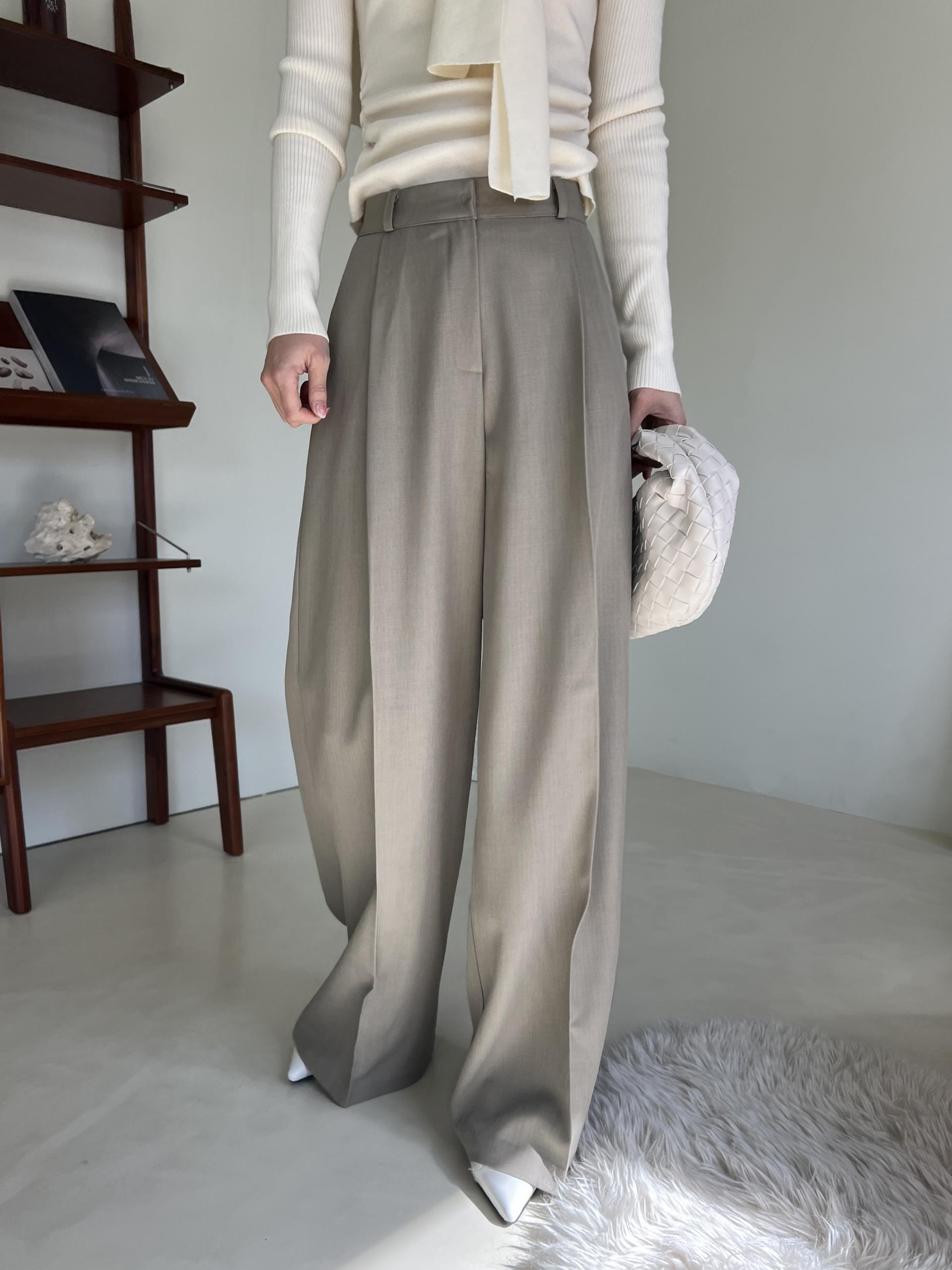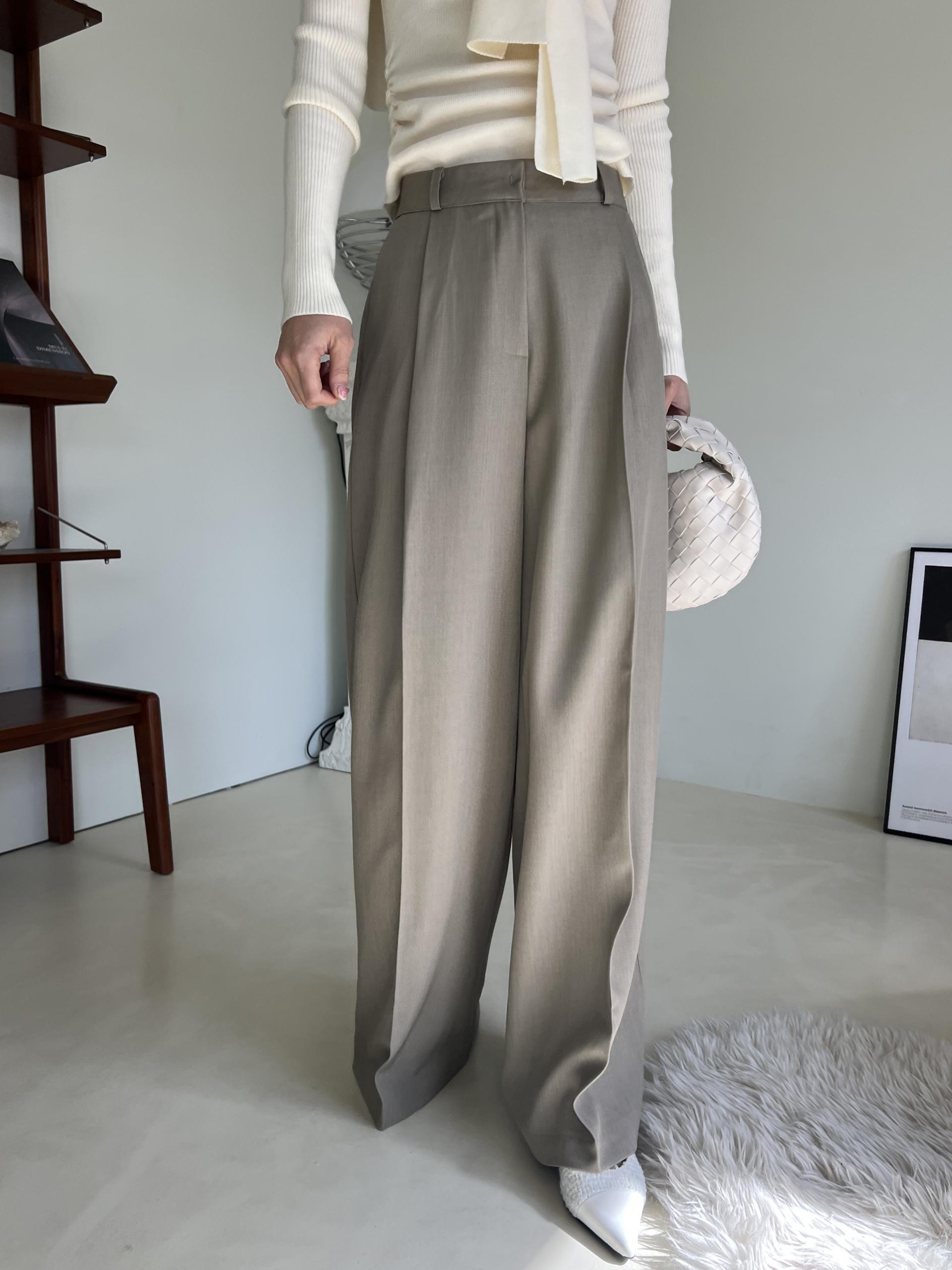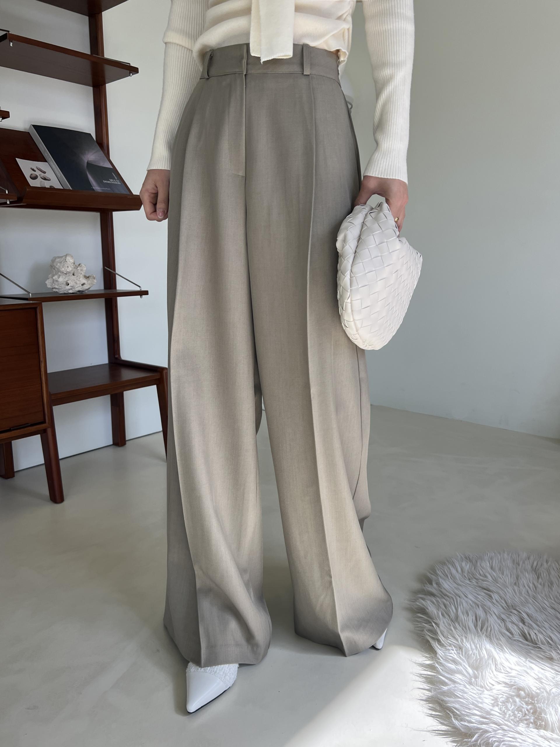 탄탄한 고밀도 소재에 원 핀턱으로 반듯하고 날렵하게 핏이 잡히는 와이드 슬랙스입니다.
