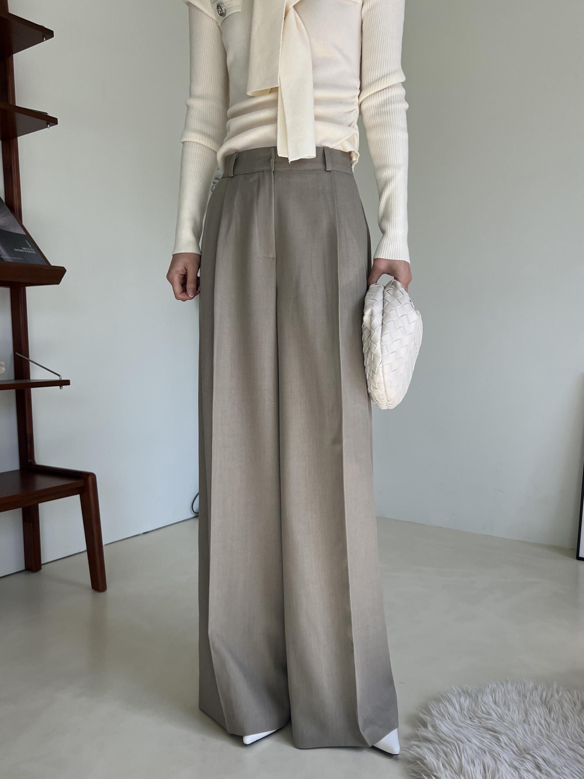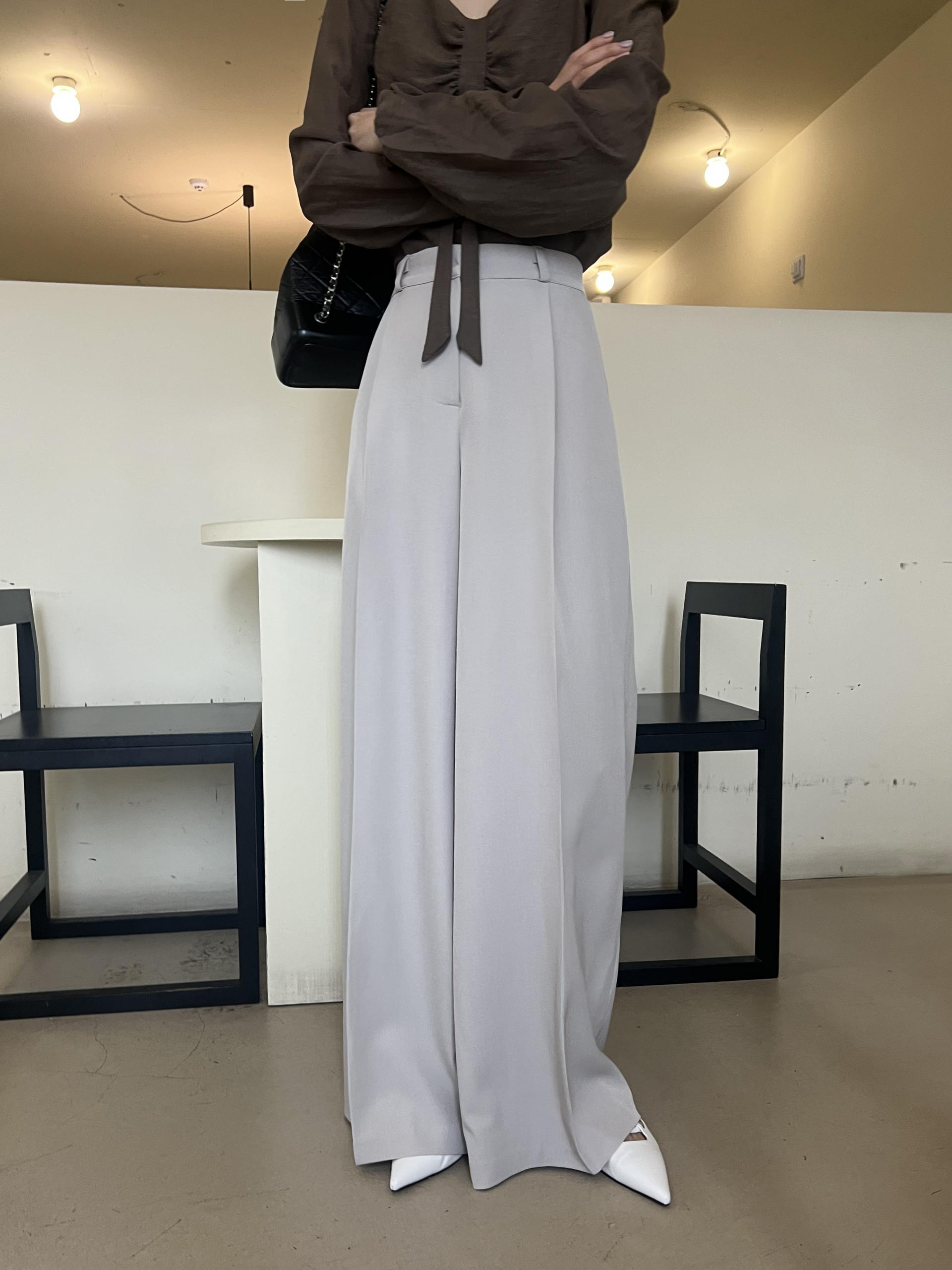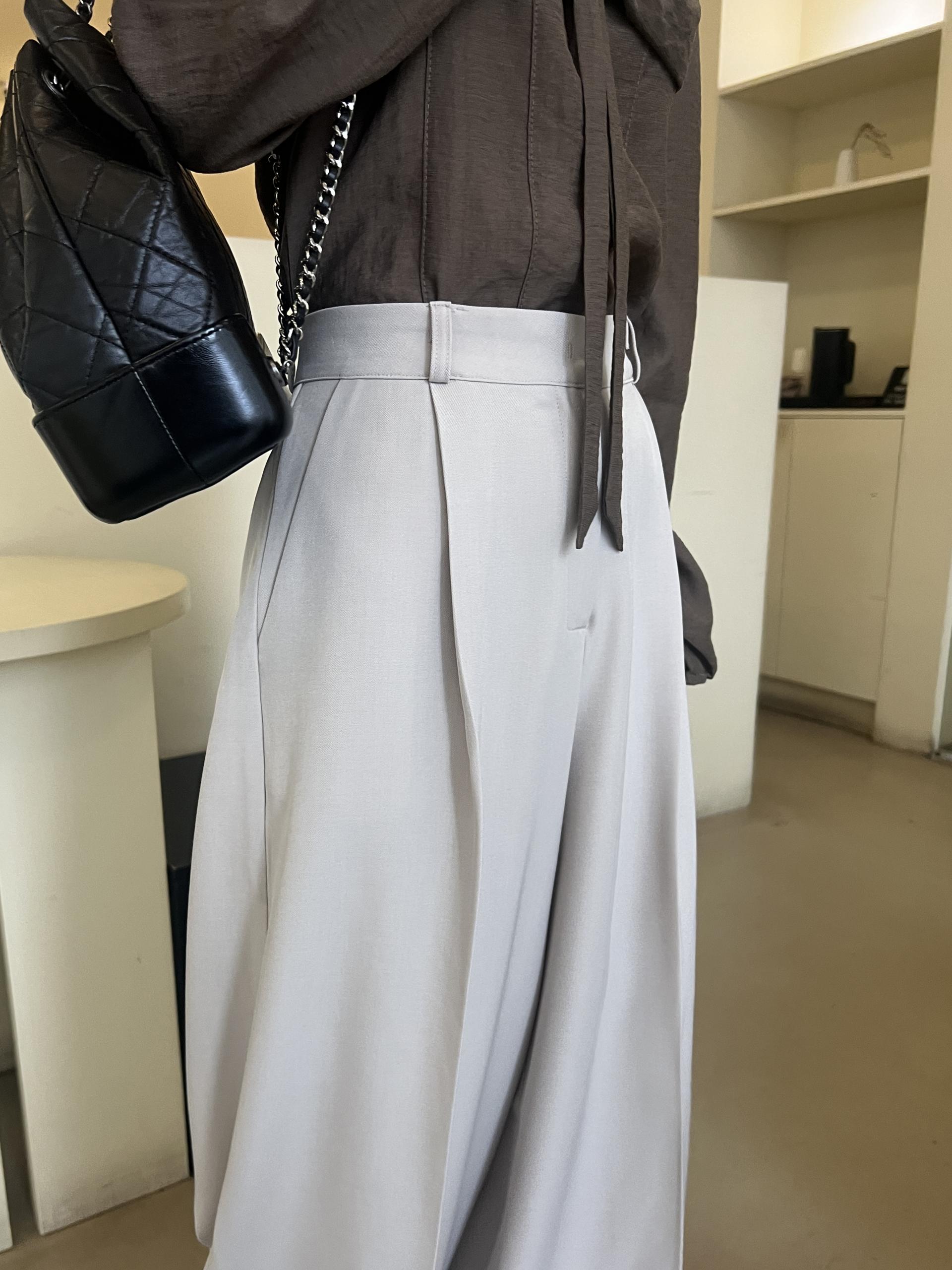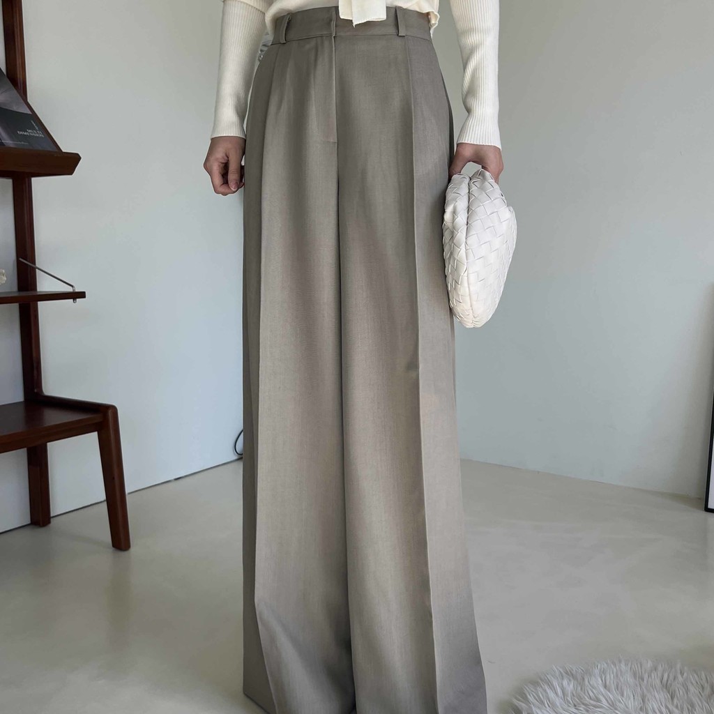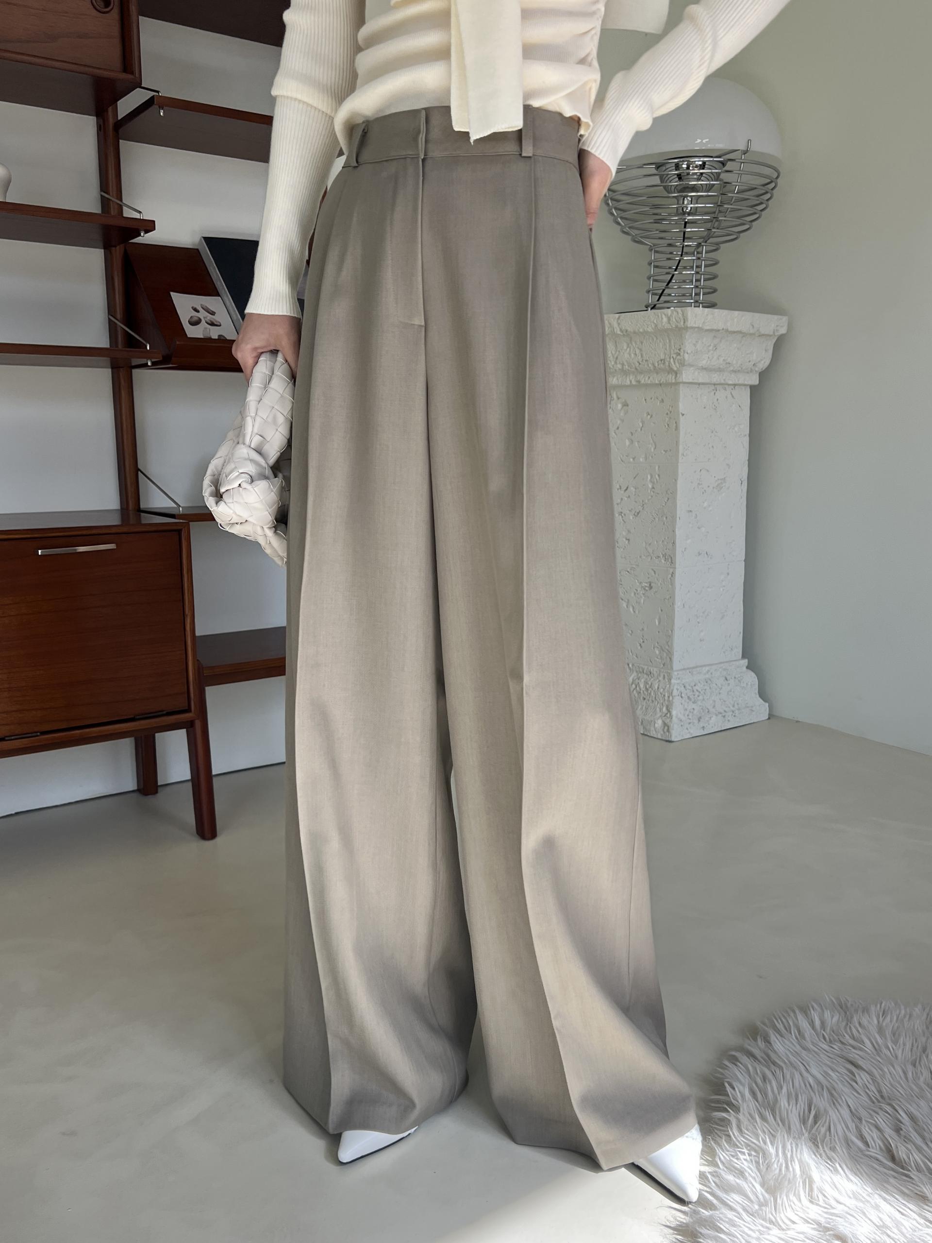탄탄한 고밀도 소재에 원 핀턱으로 반듯하고 날렵하게 핏이 잡히는 와이드 슬랙스입니다.