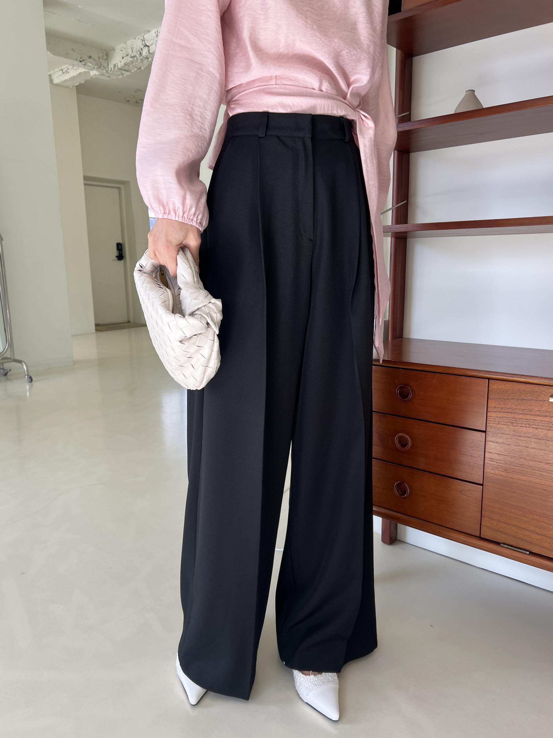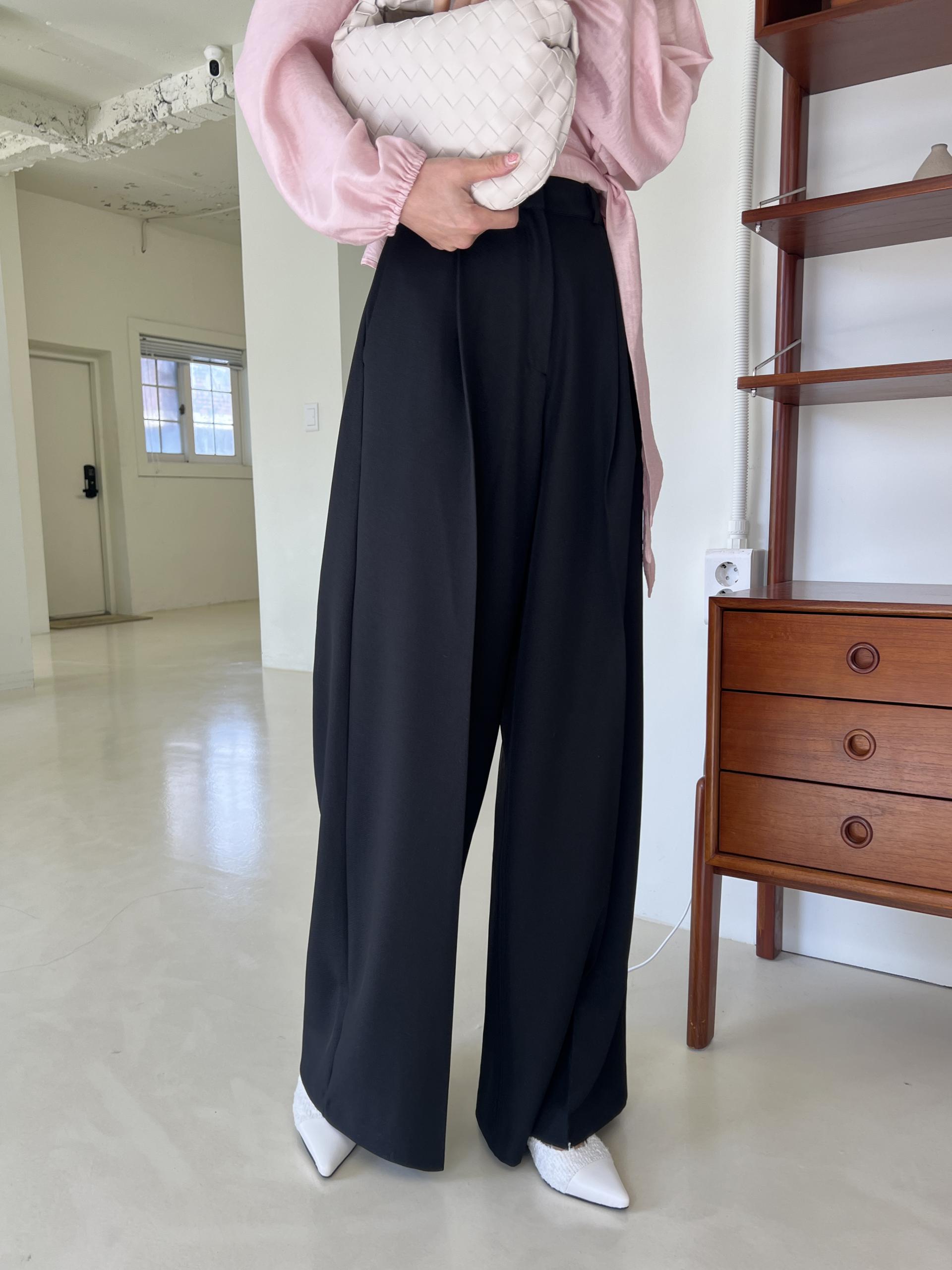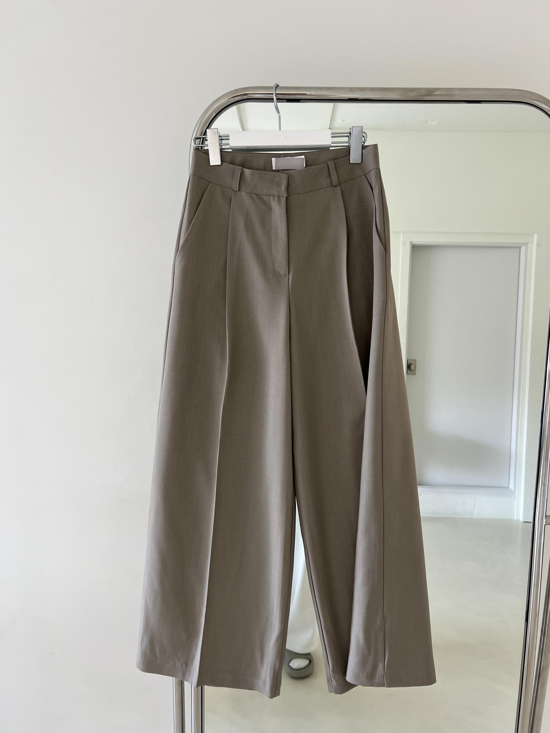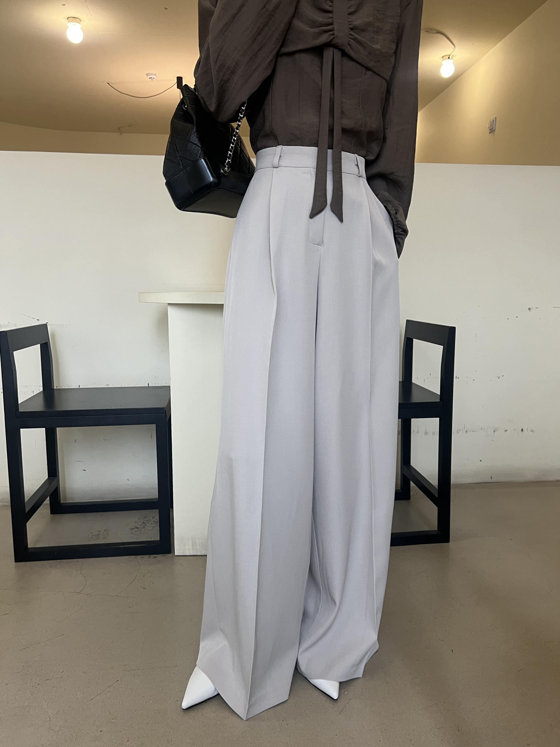 탄탄한 고밀도 소재에 원 핀턱으로 반듯하고 날렵하게 핏이 잡히는 와이드 슬랙스입니다.