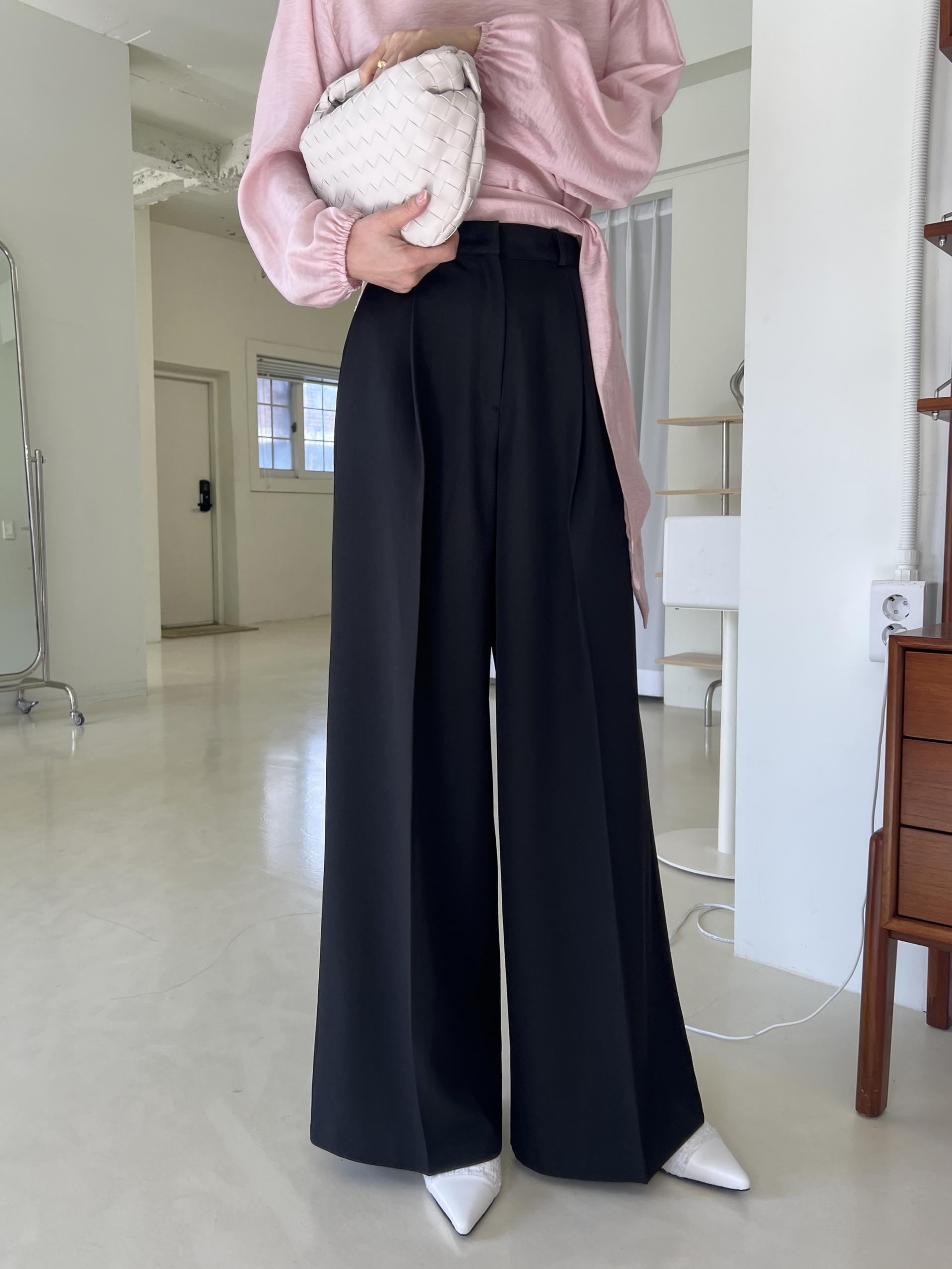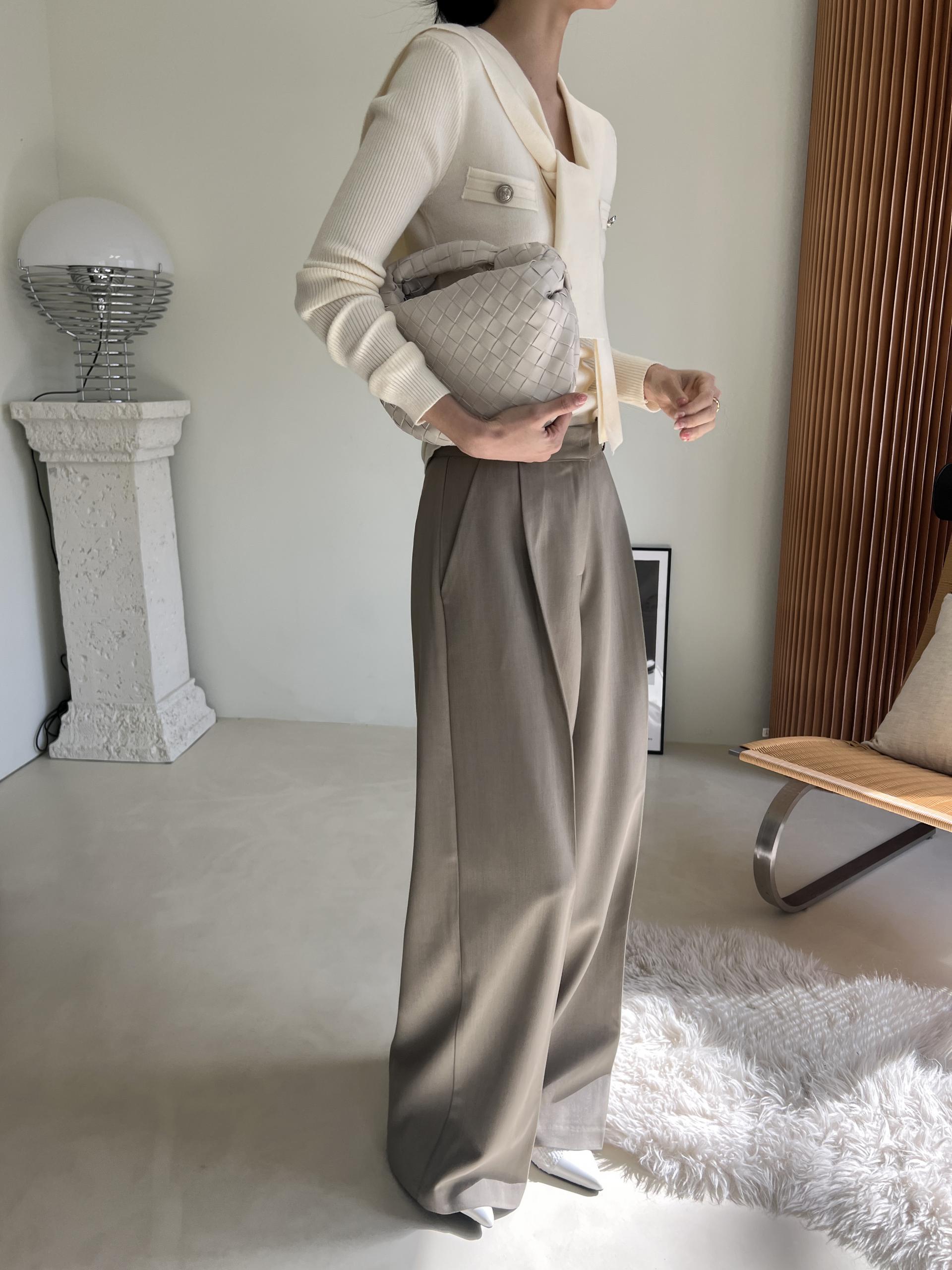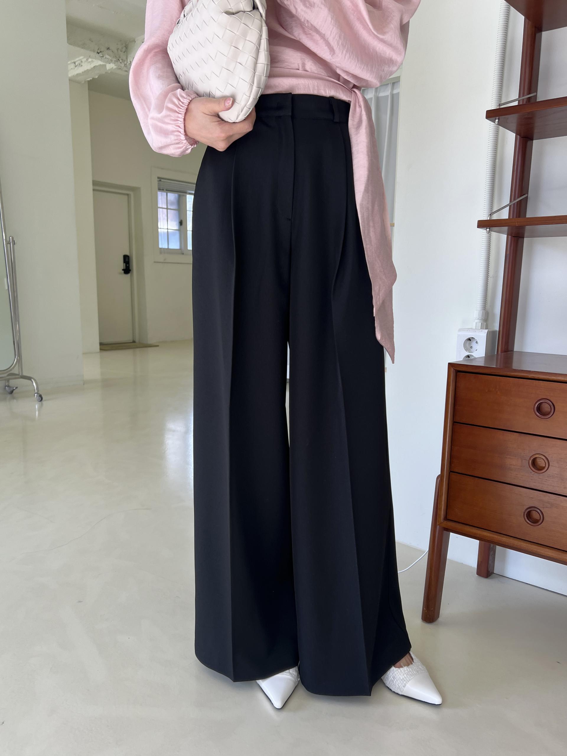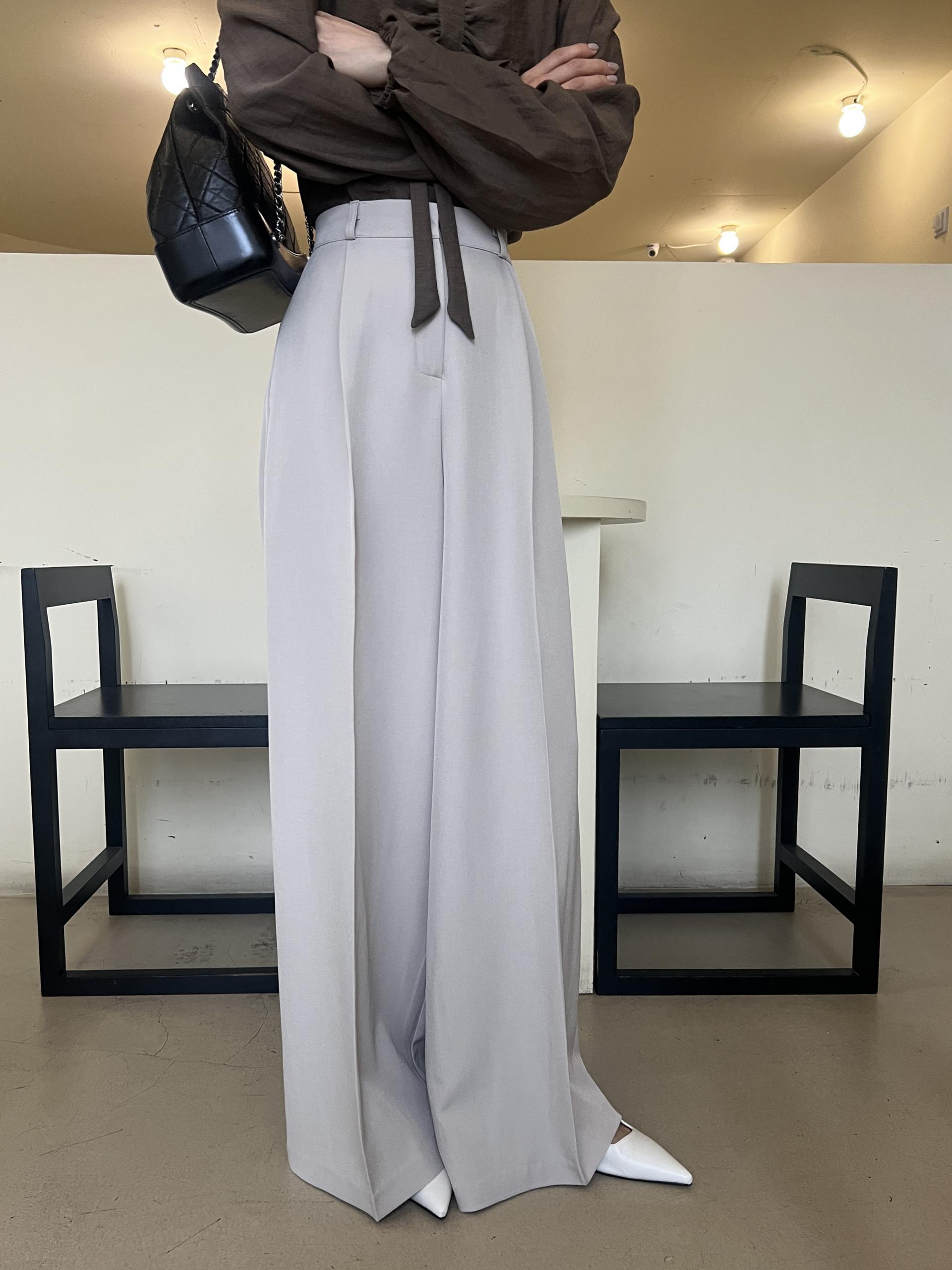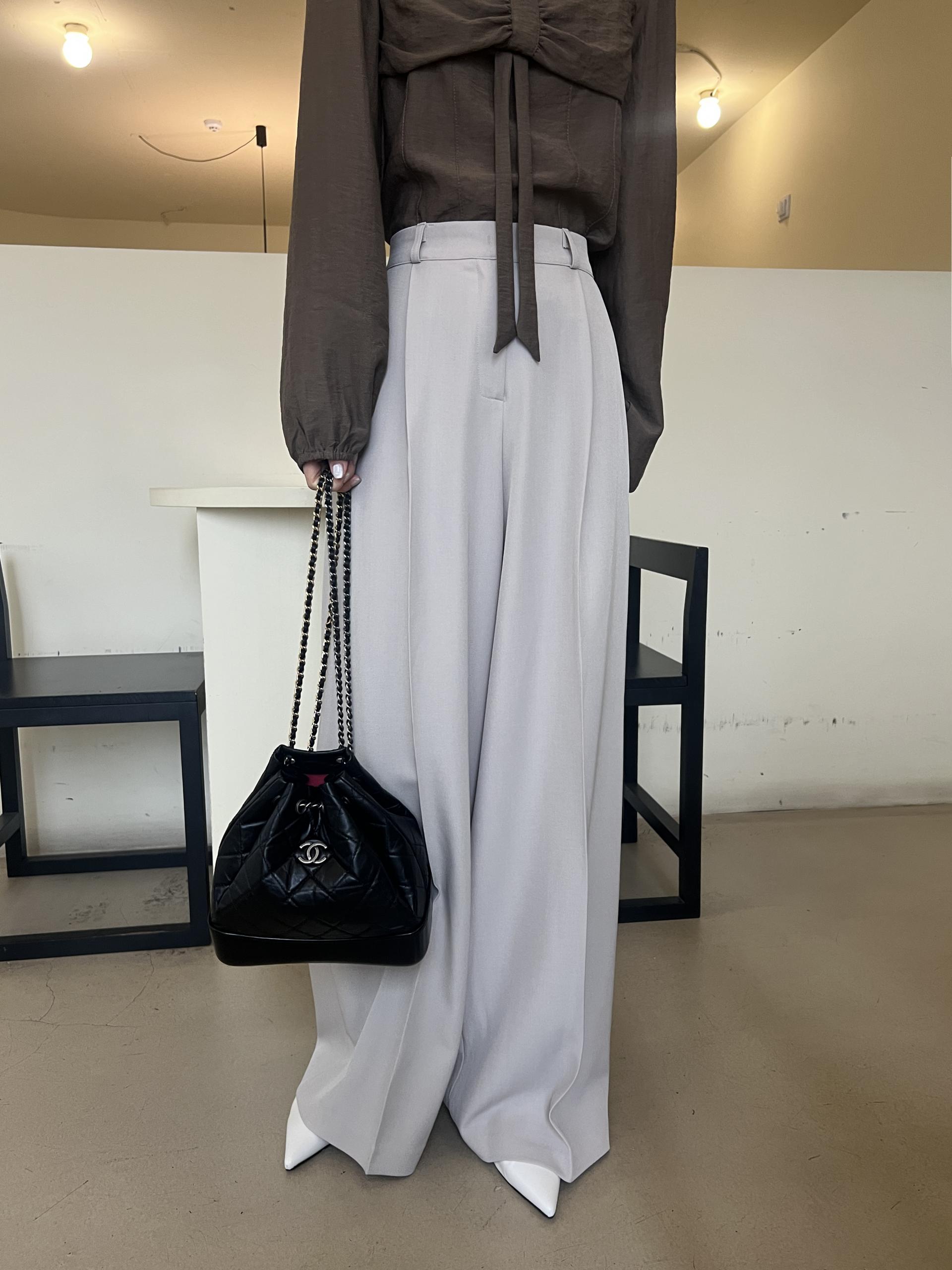 탄탄한 고밀도 소재에 원 핀턱으로 반듯하고 날렵하게 핏이 잡히는 와이드 슬랙스입니다.