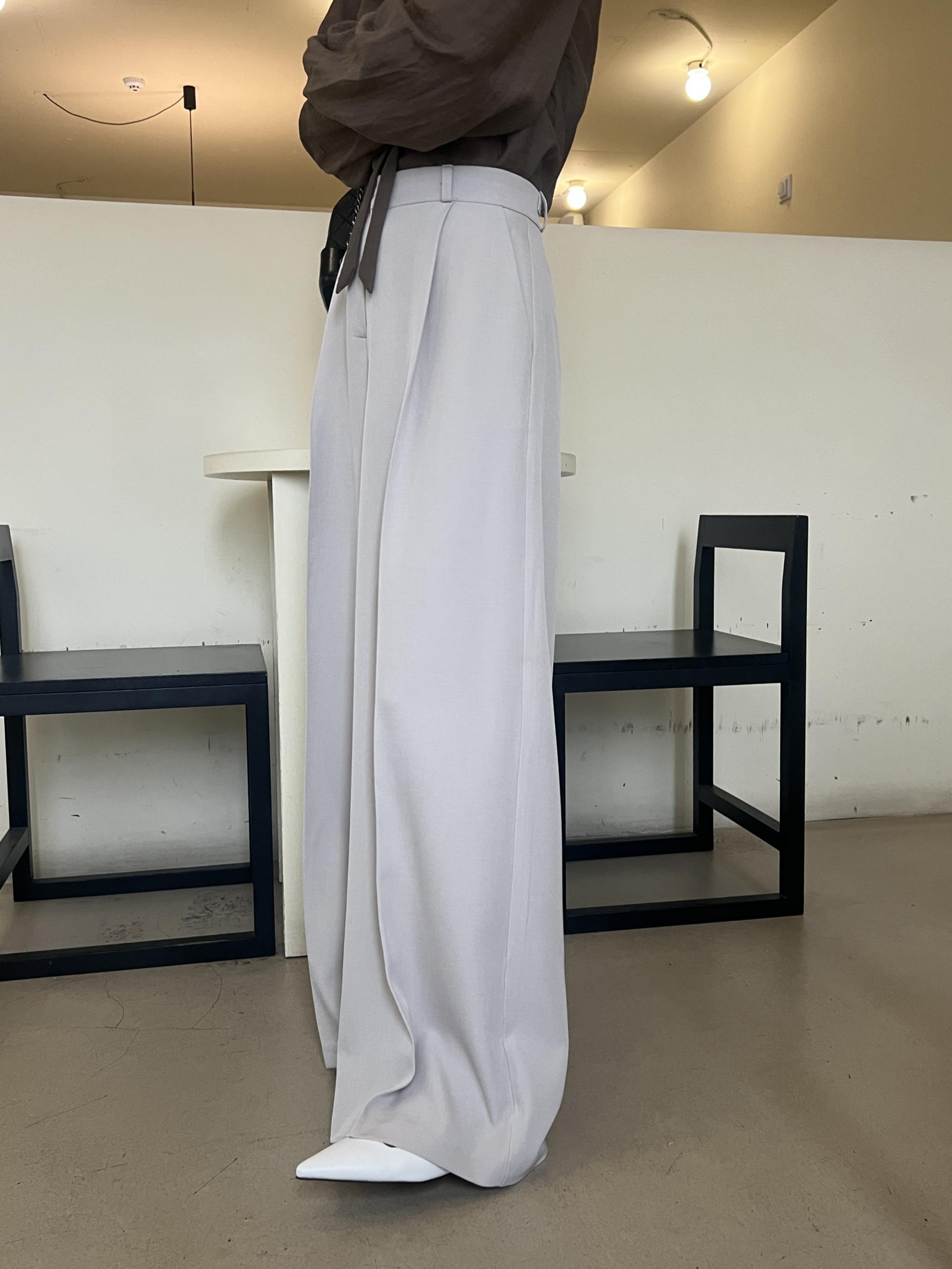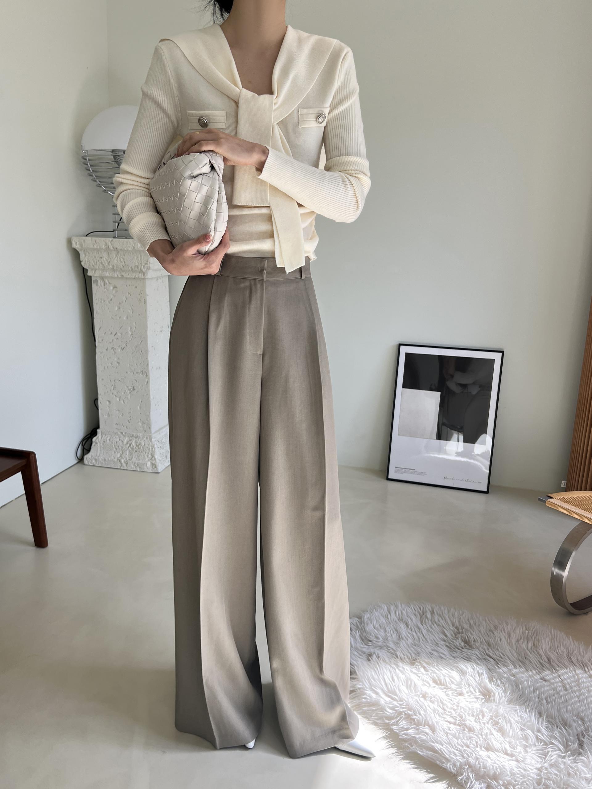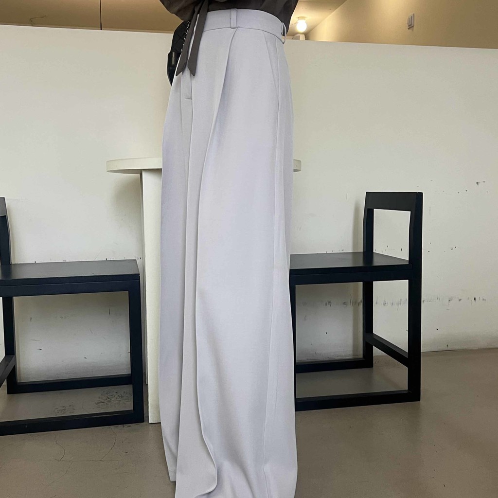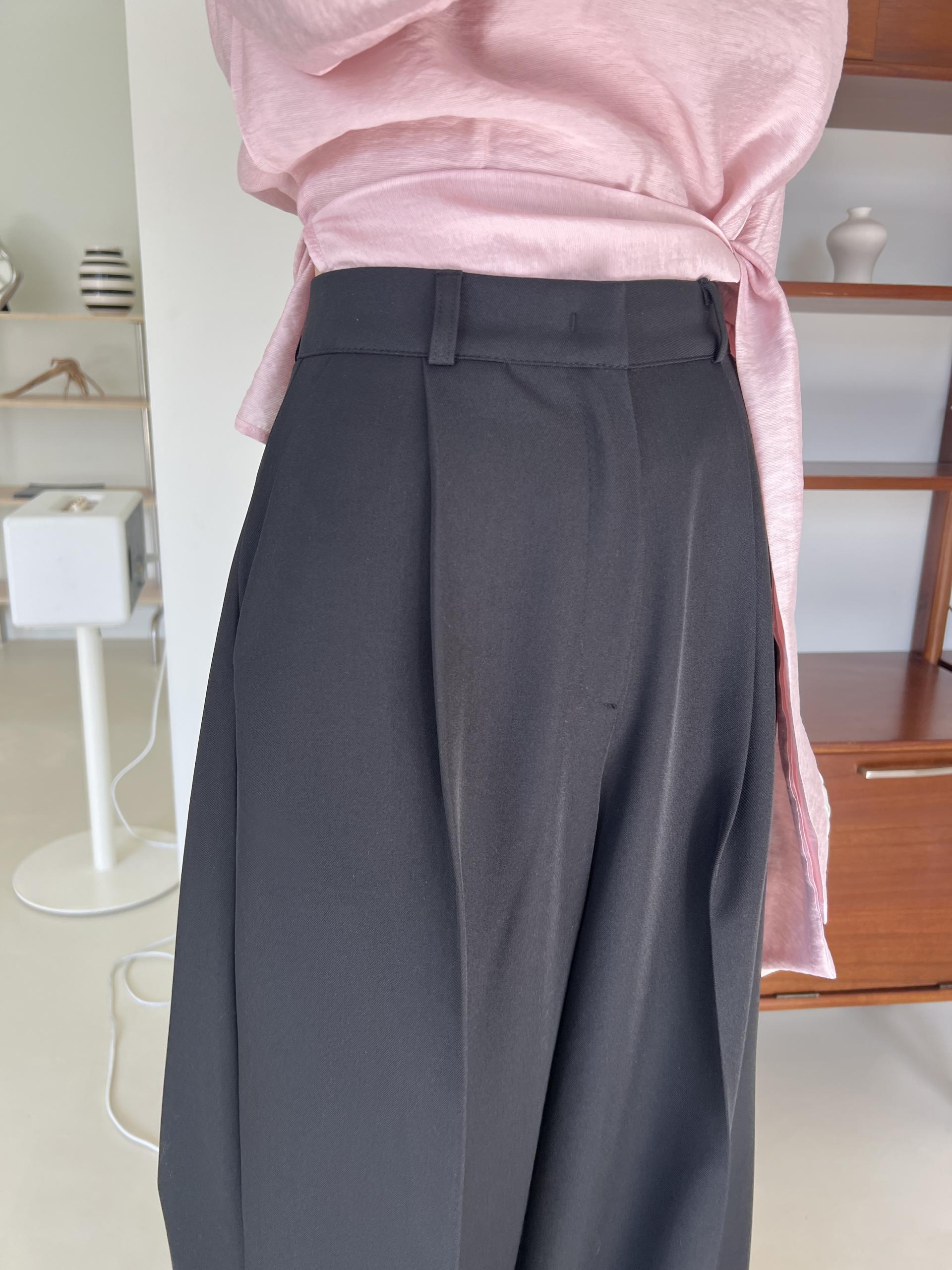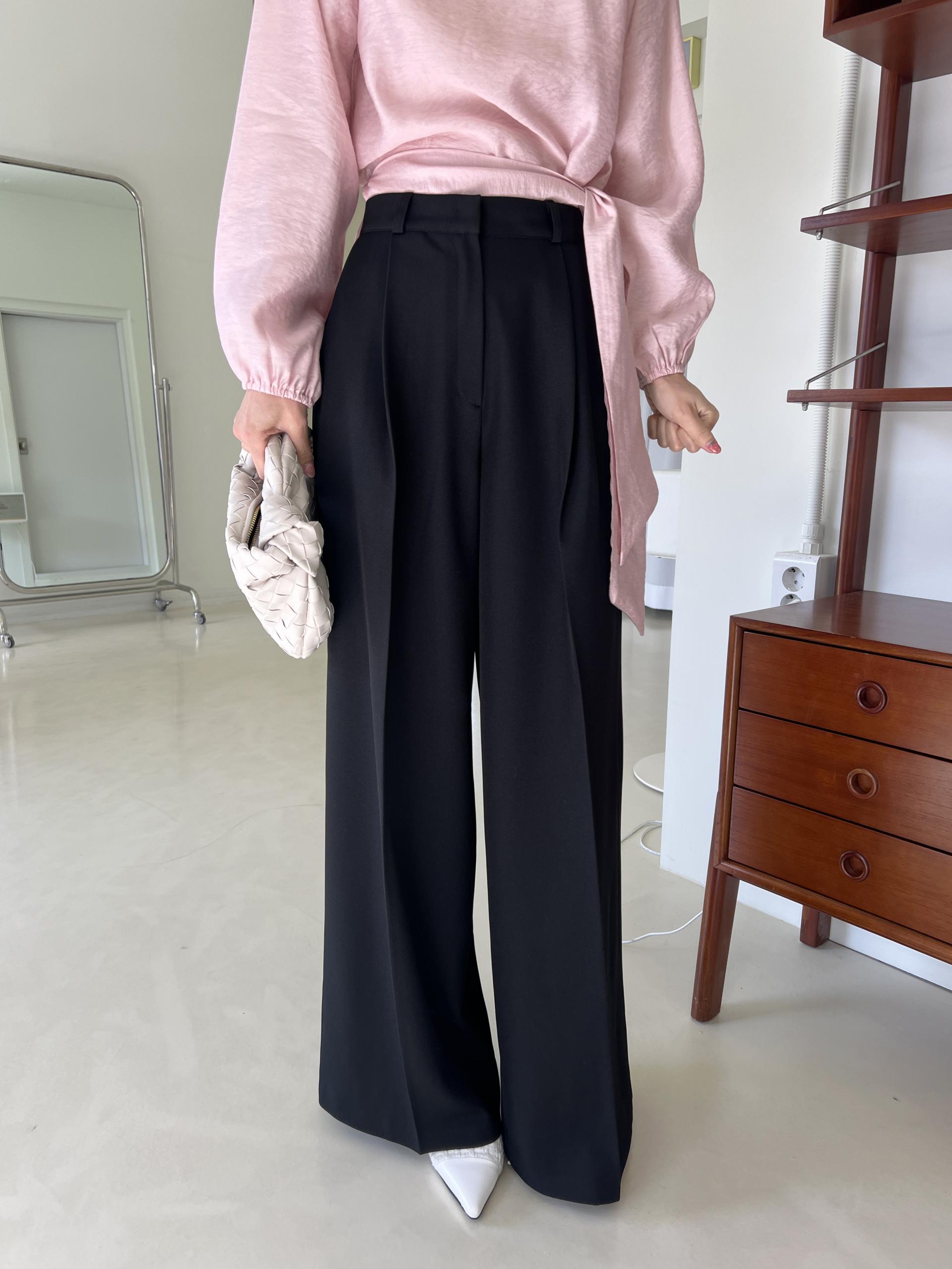 탄탄한 고밀도 소재에 원 핀턱으로 반듯하고 날렵하게 핏이 잡히는 와이드 슬랙스입니다.