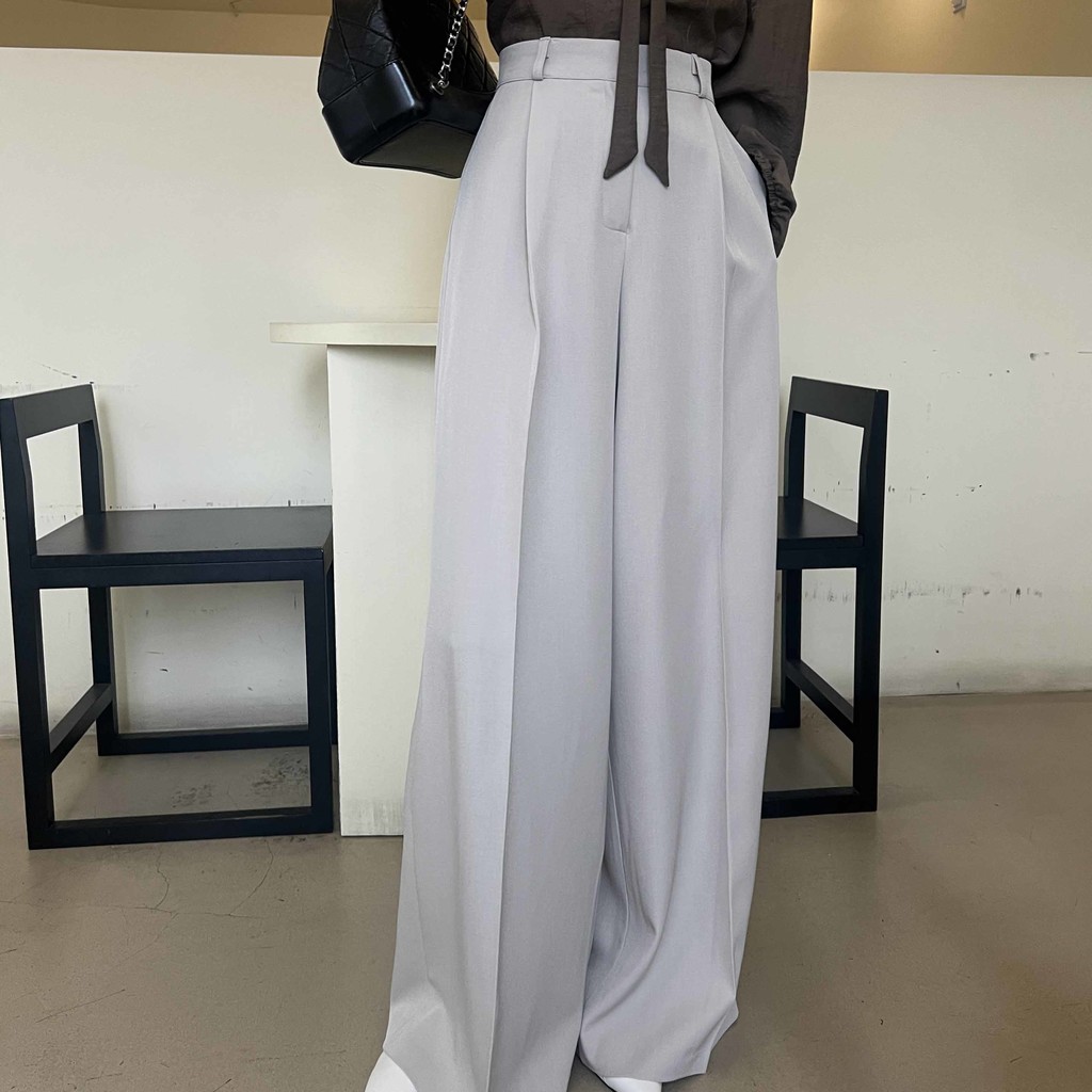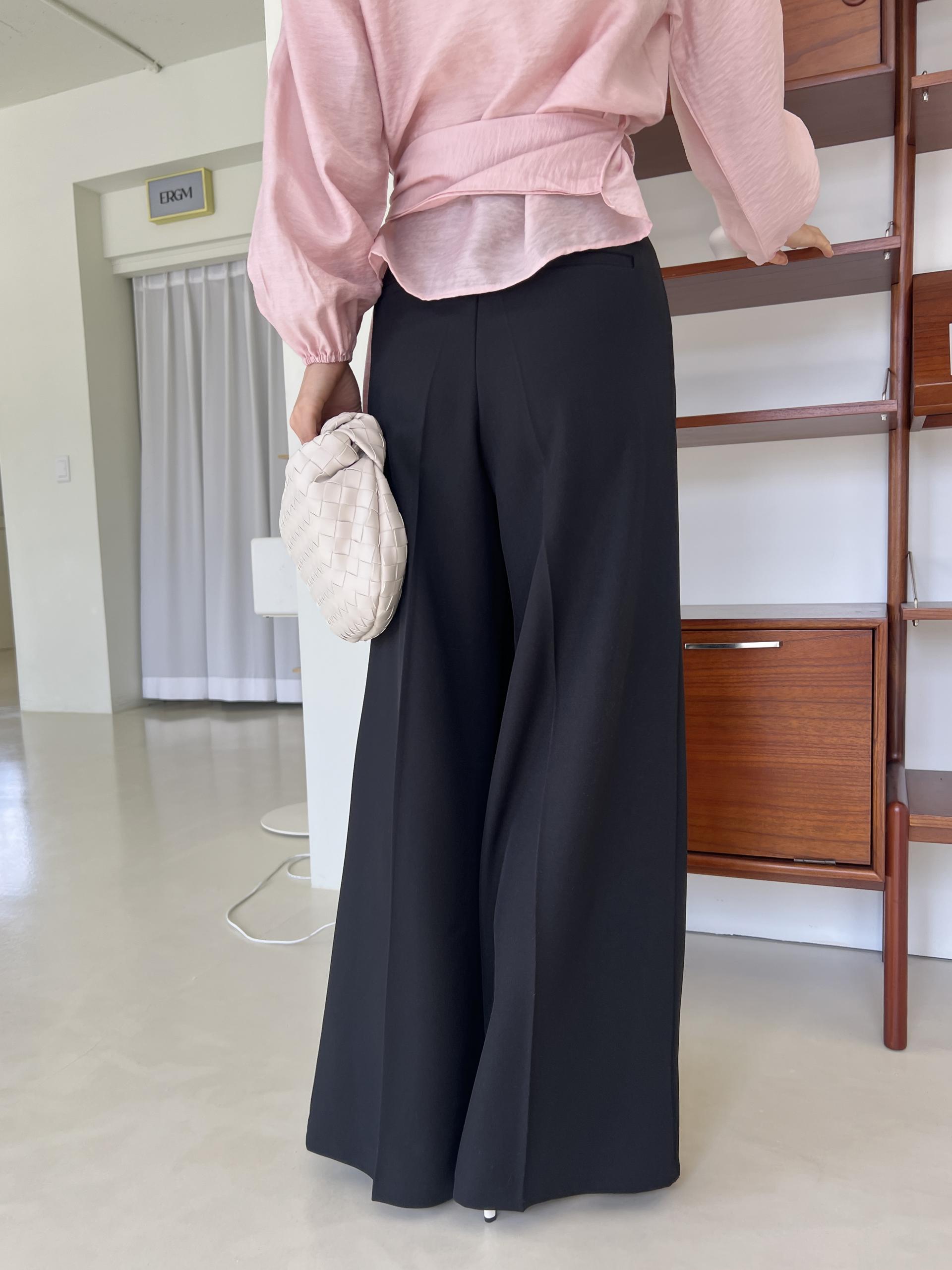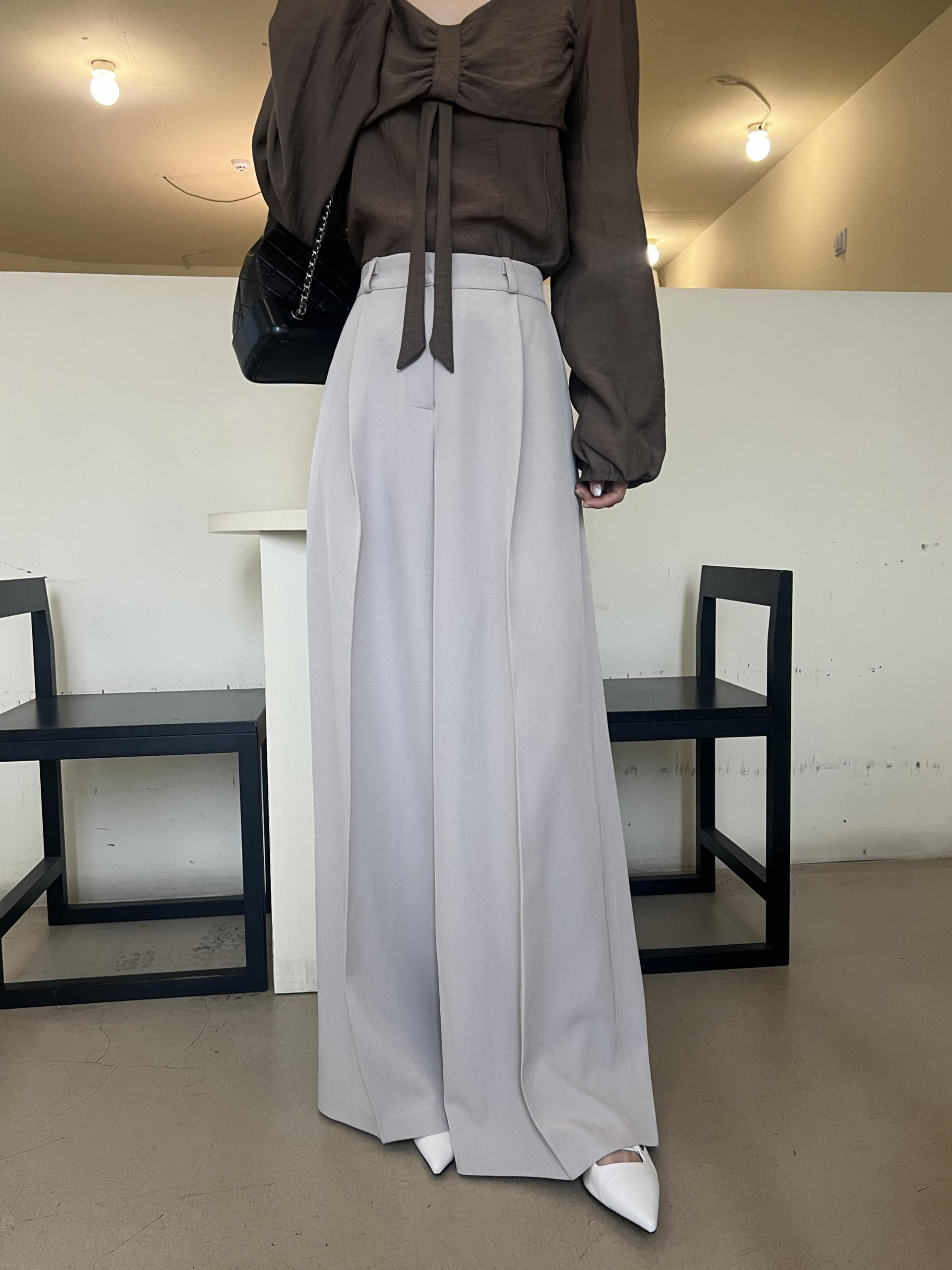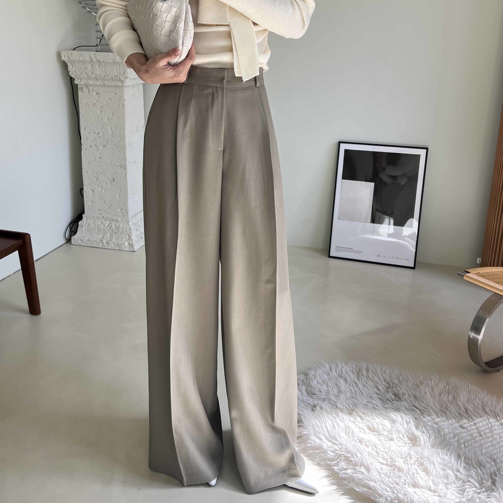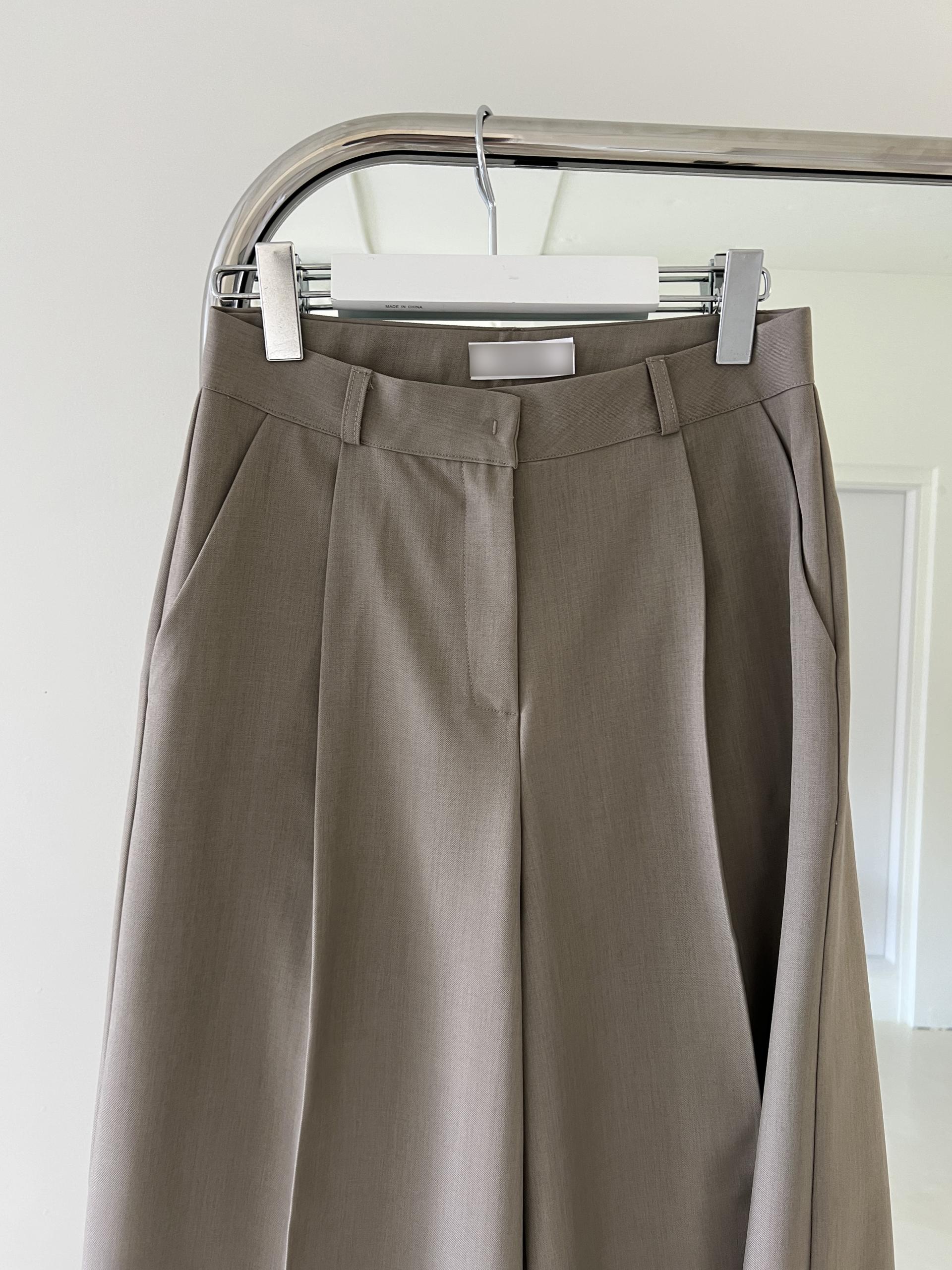 탄탄한 고밀도 소재에 원 핀턱으로 반듯하고 날렵하게 핏이 잡히는 와이드 슬랙스입니다.