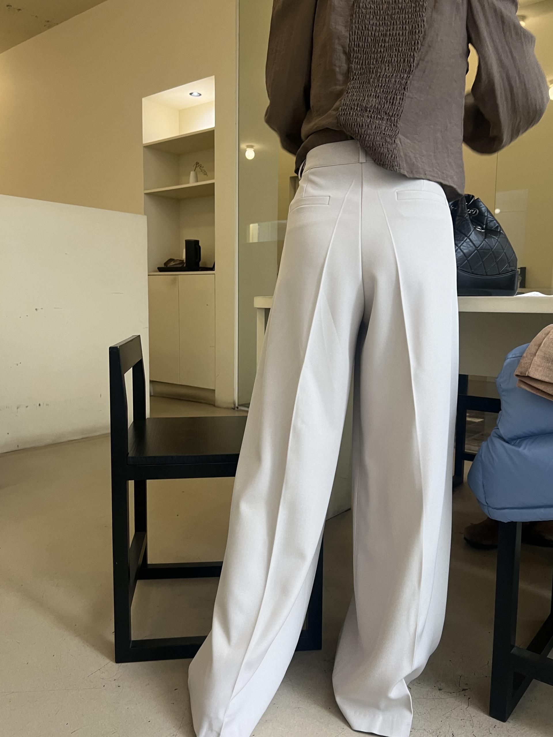 하이웨스트 밑위에 롱 기장, 핀턱으로 다리가 길어 보이고 말라 보이는 핏이라 더욱 만족스러웠어요.