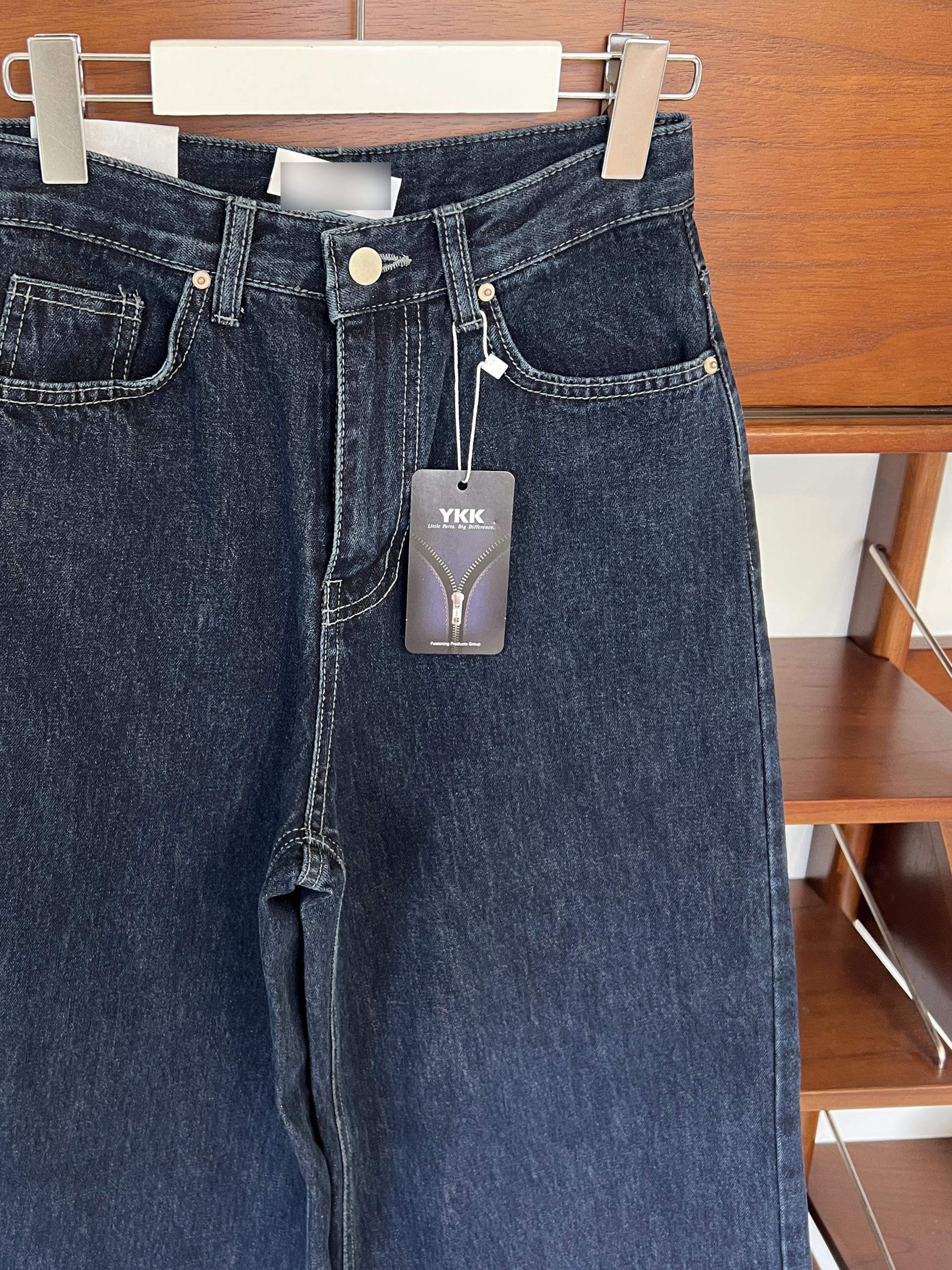 난스판 코튼 데님으로 핏이 반듯하고 힘 있게 잡혀 만족스러웠어요. 짙은 진청 컬러로 코디하기가 쉽고 더 날씬해 보이게 체형 커버를 해줍니다.