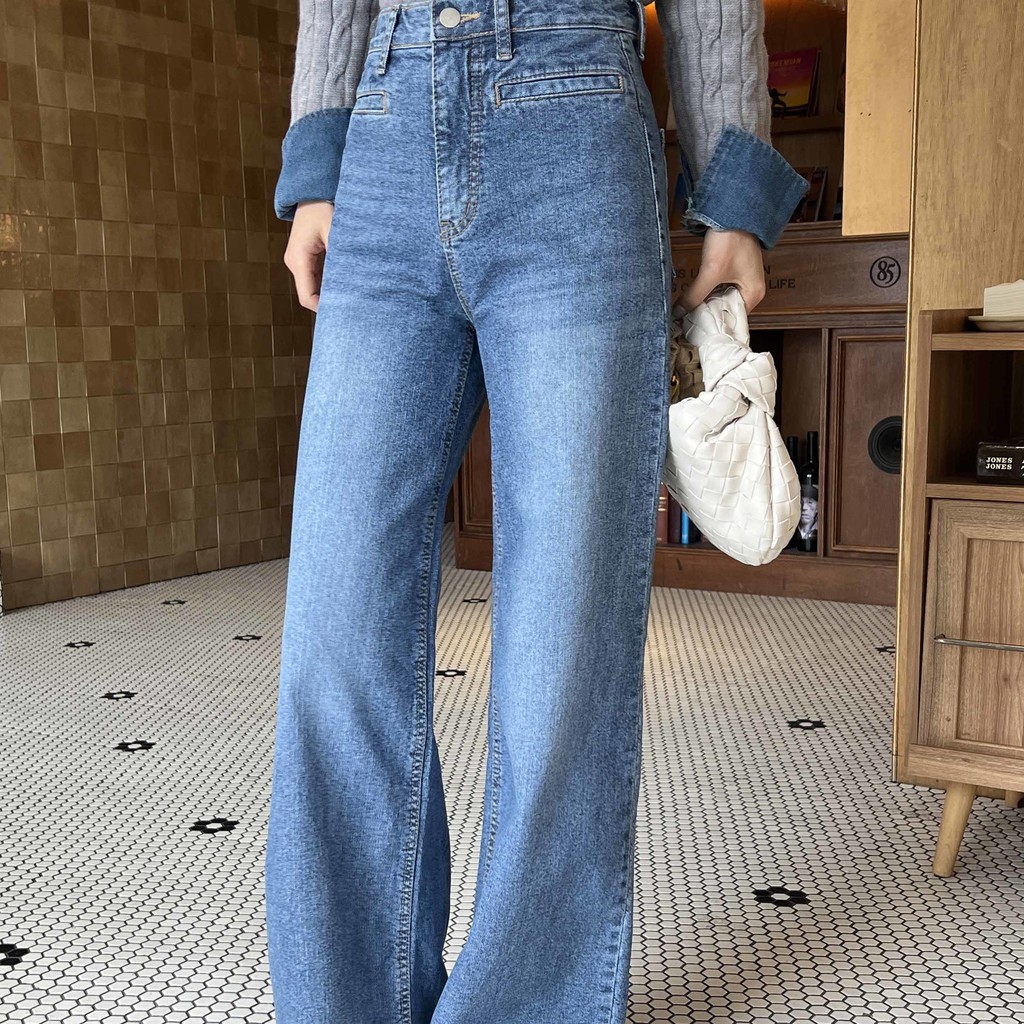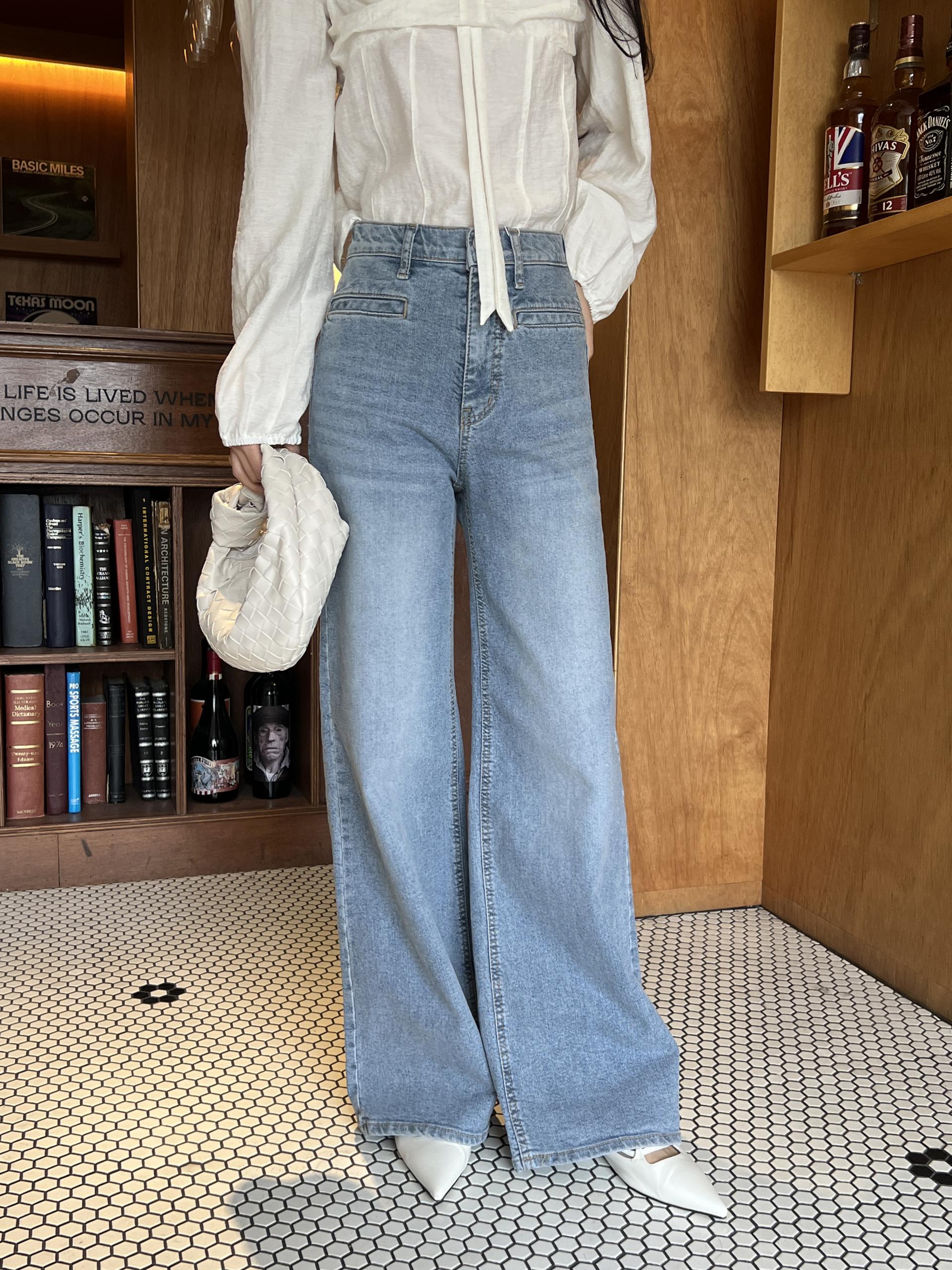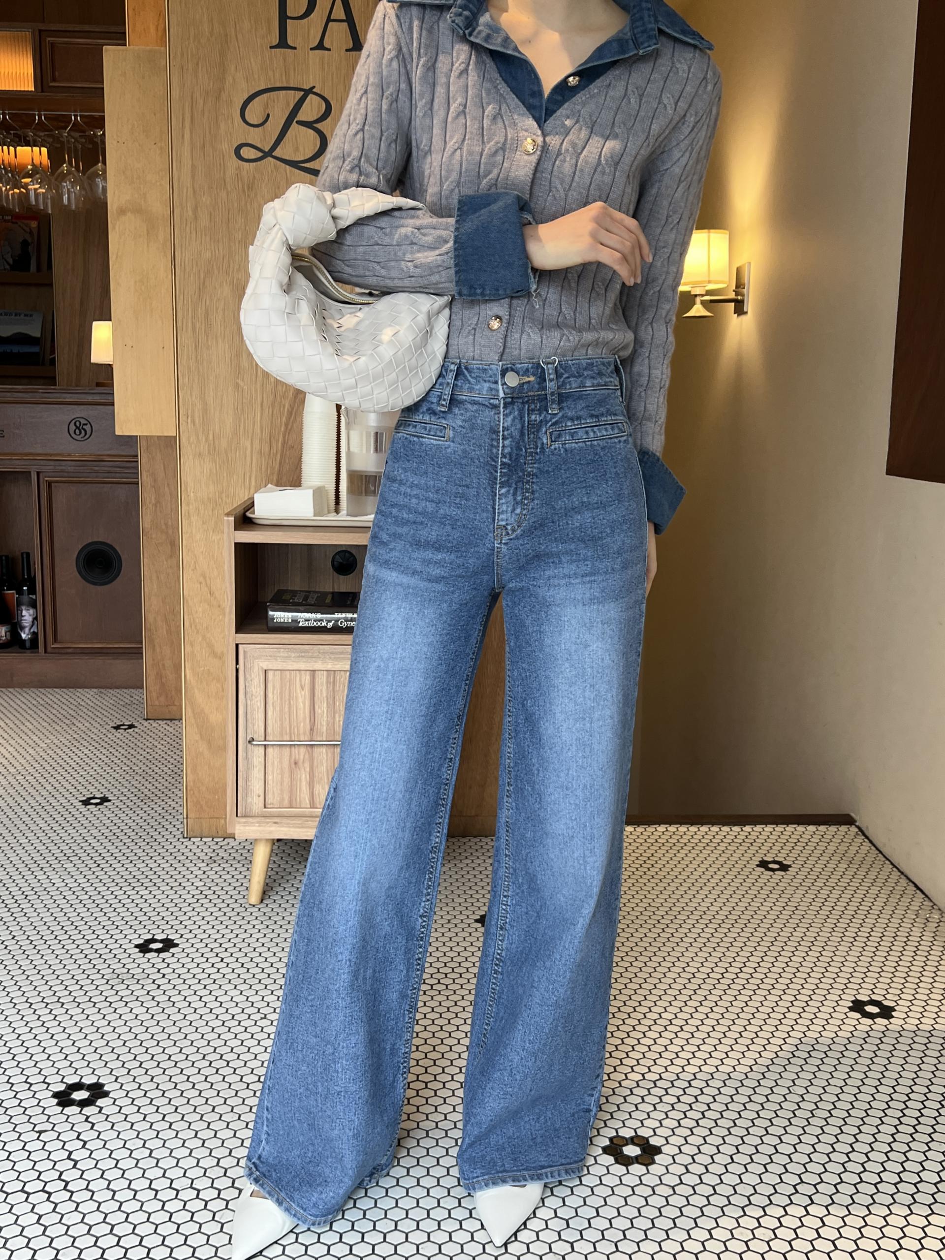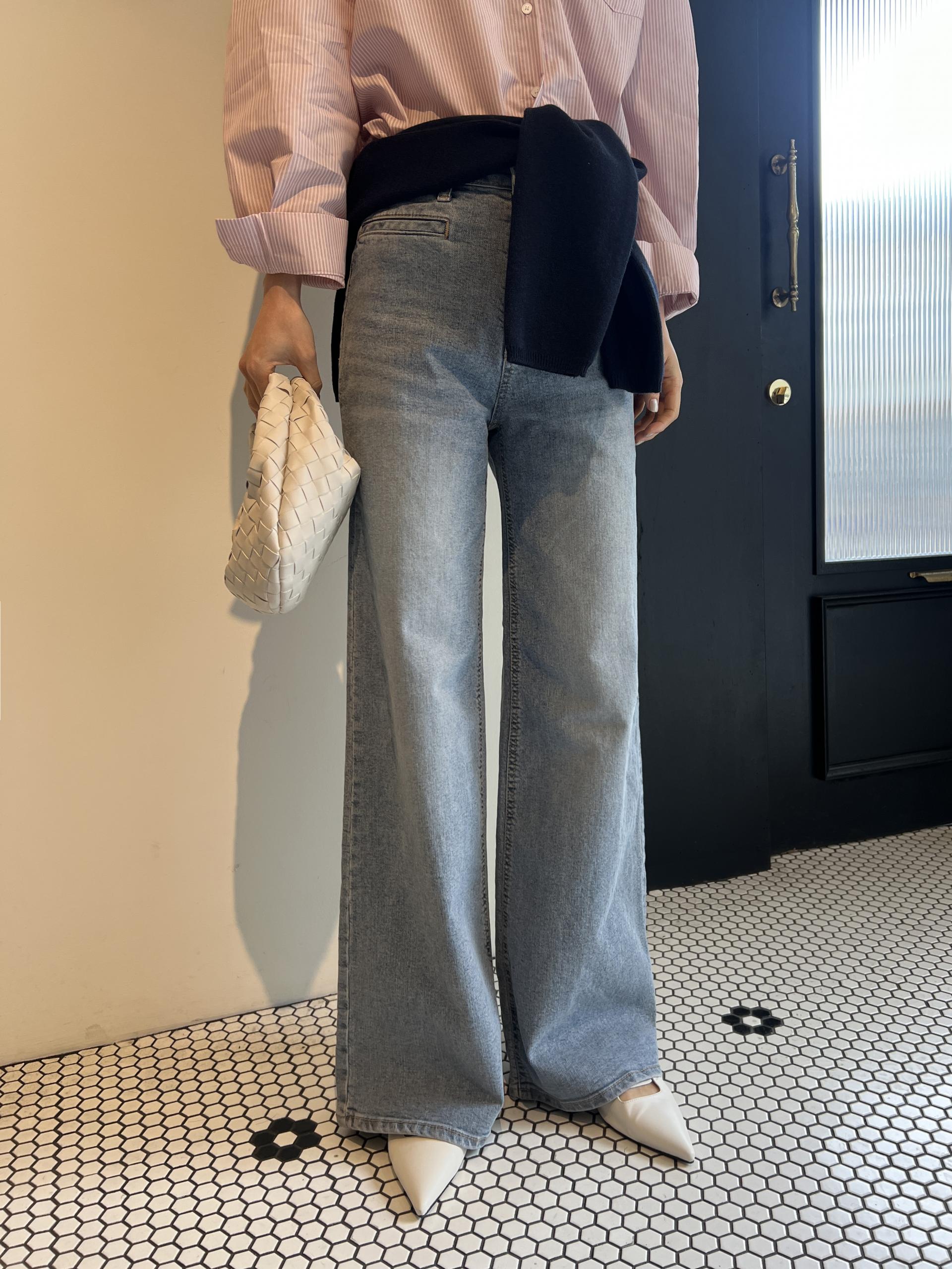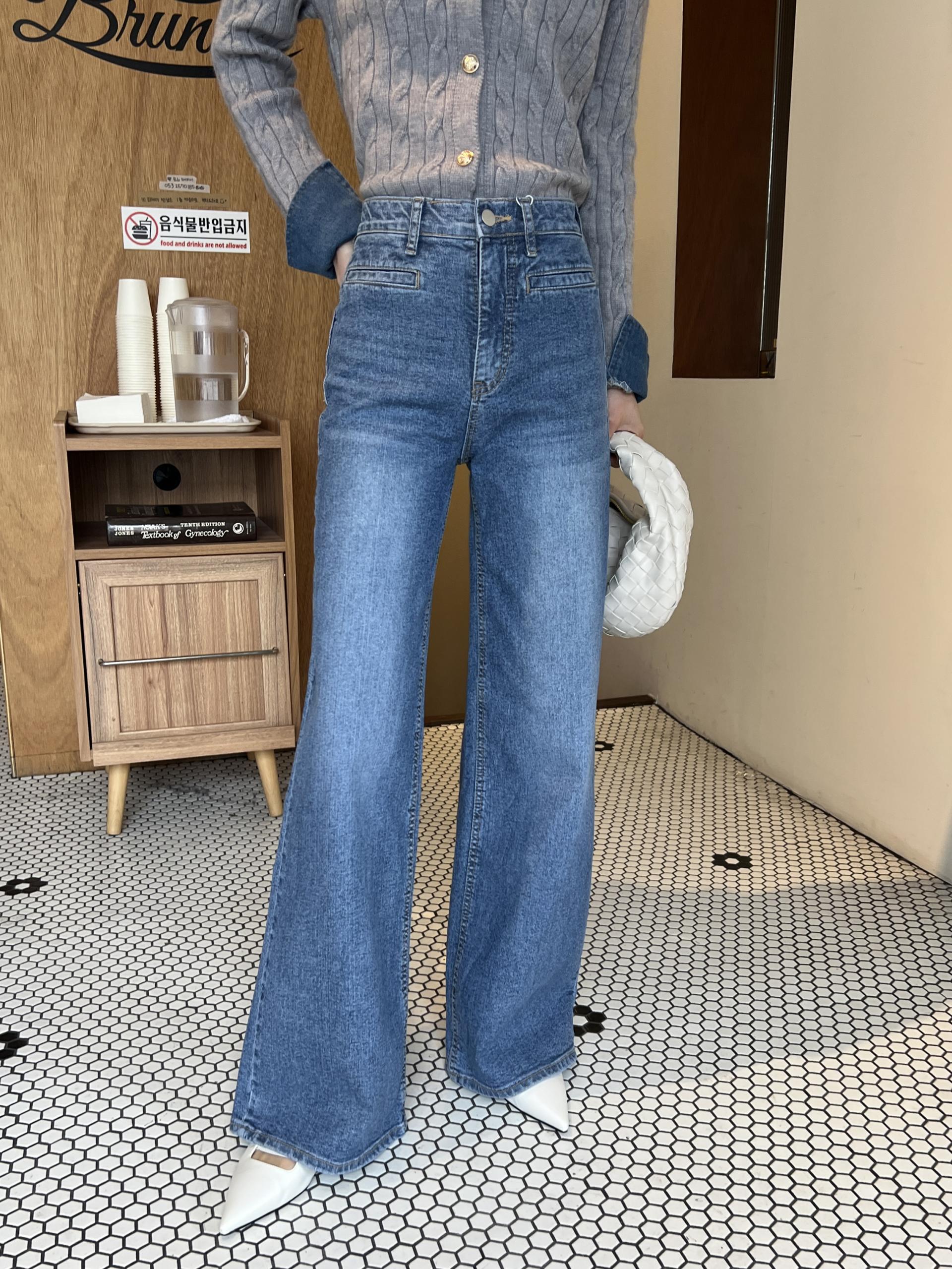히든 밴딩에 스판기가 좋아 체형에 딱 맞는, 예쁜 핏으로 착용 가능한 세미 와이드 핏의 롱 데님 팬츠입니다.