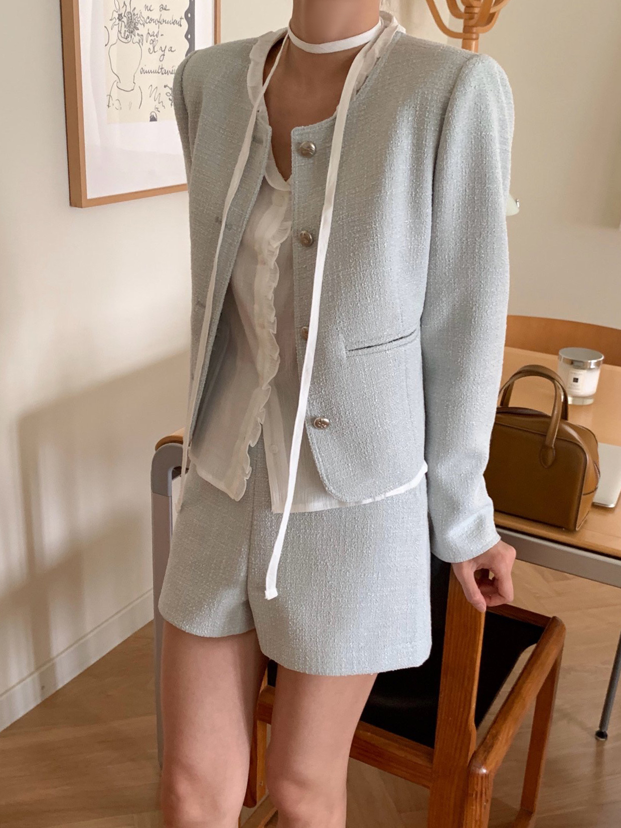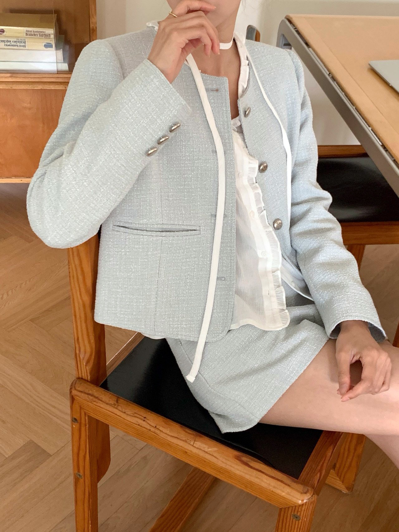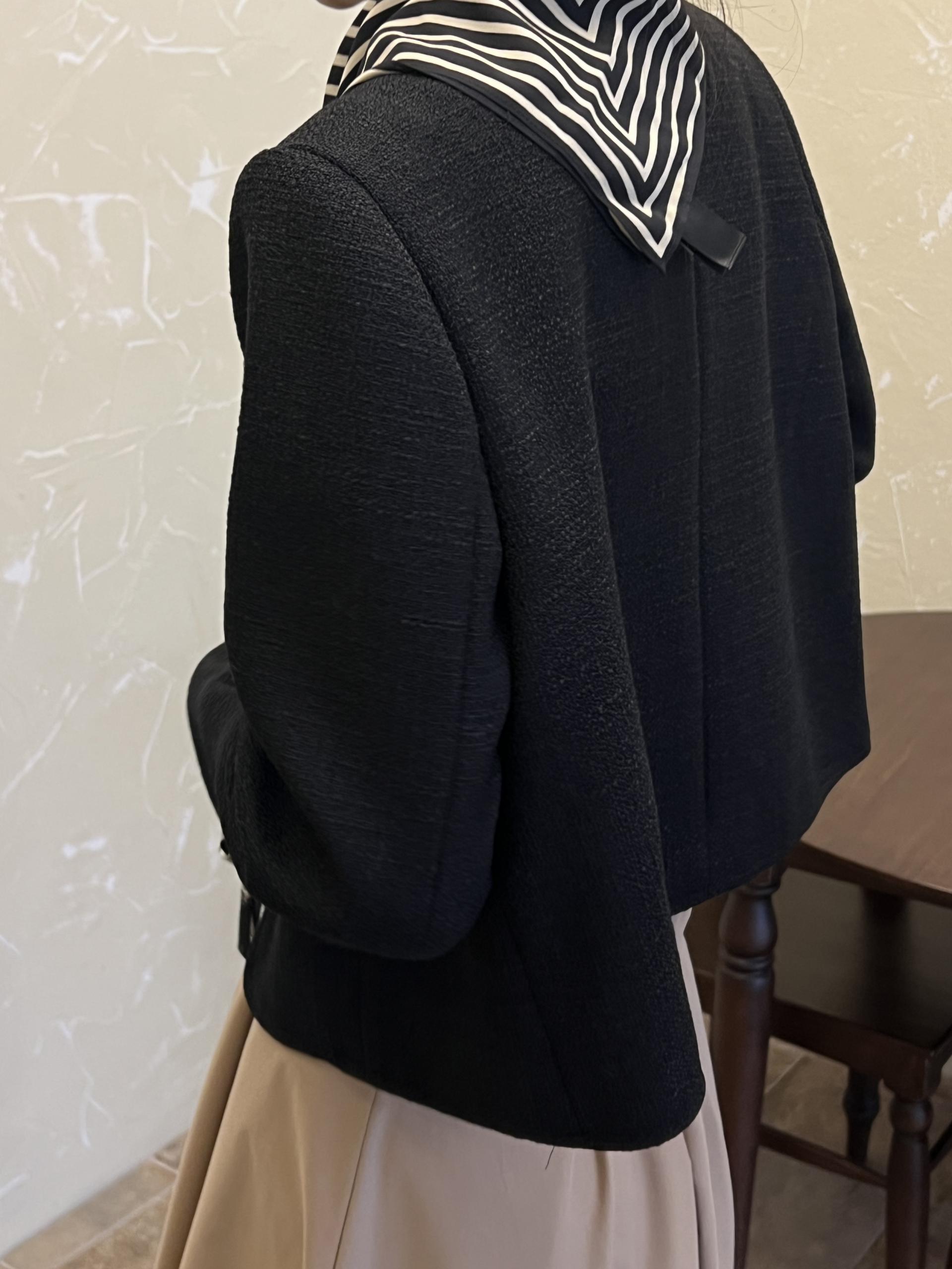탄탄한 조직감, 군더더기 없이 깔끔한 핏으로 유행 없이 매년 착용하기 좋은 트위드 자켓입니다.