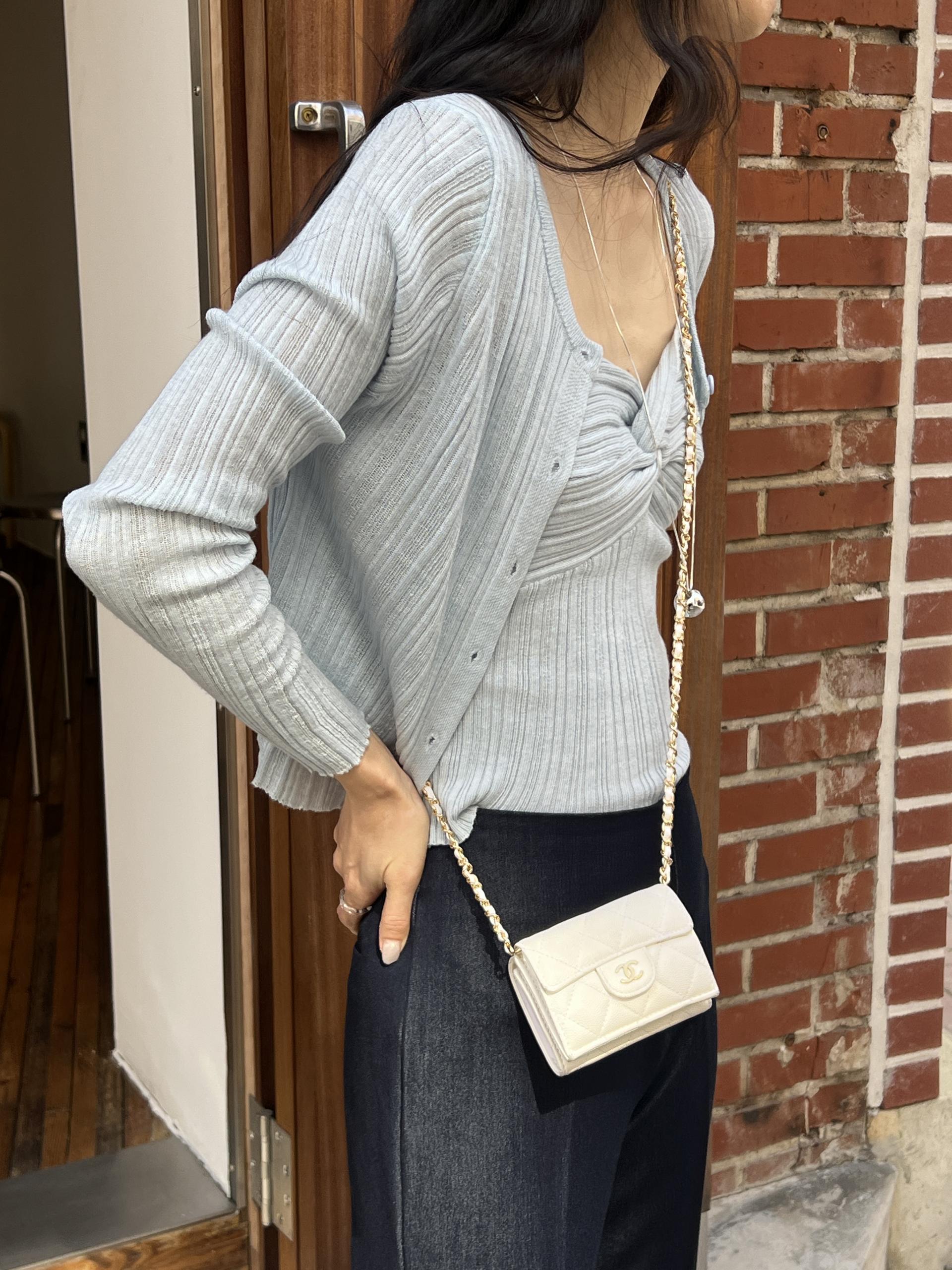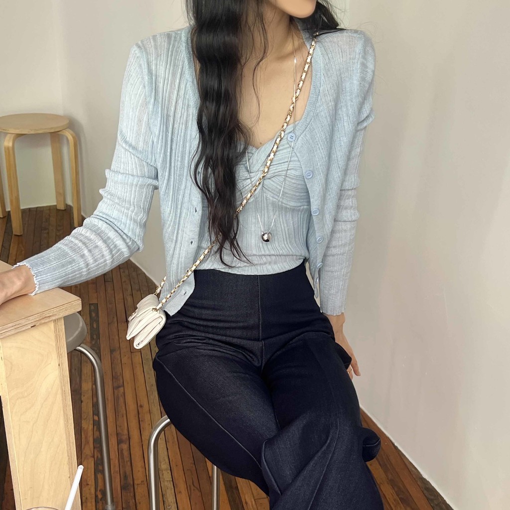 나시와 가디건 각각 활용하기도 좋아 활용도 높은 상품입니다. 하트넥으로 약간의 파임이 있지만 가슴 들뜸이 없이 잡아줘 더 말라 보이면서 편하게 착용할 수 있고, 가디건은 얇고 소매가 길어 더 여리여리하게 착용되어 만족스러웠습니다.