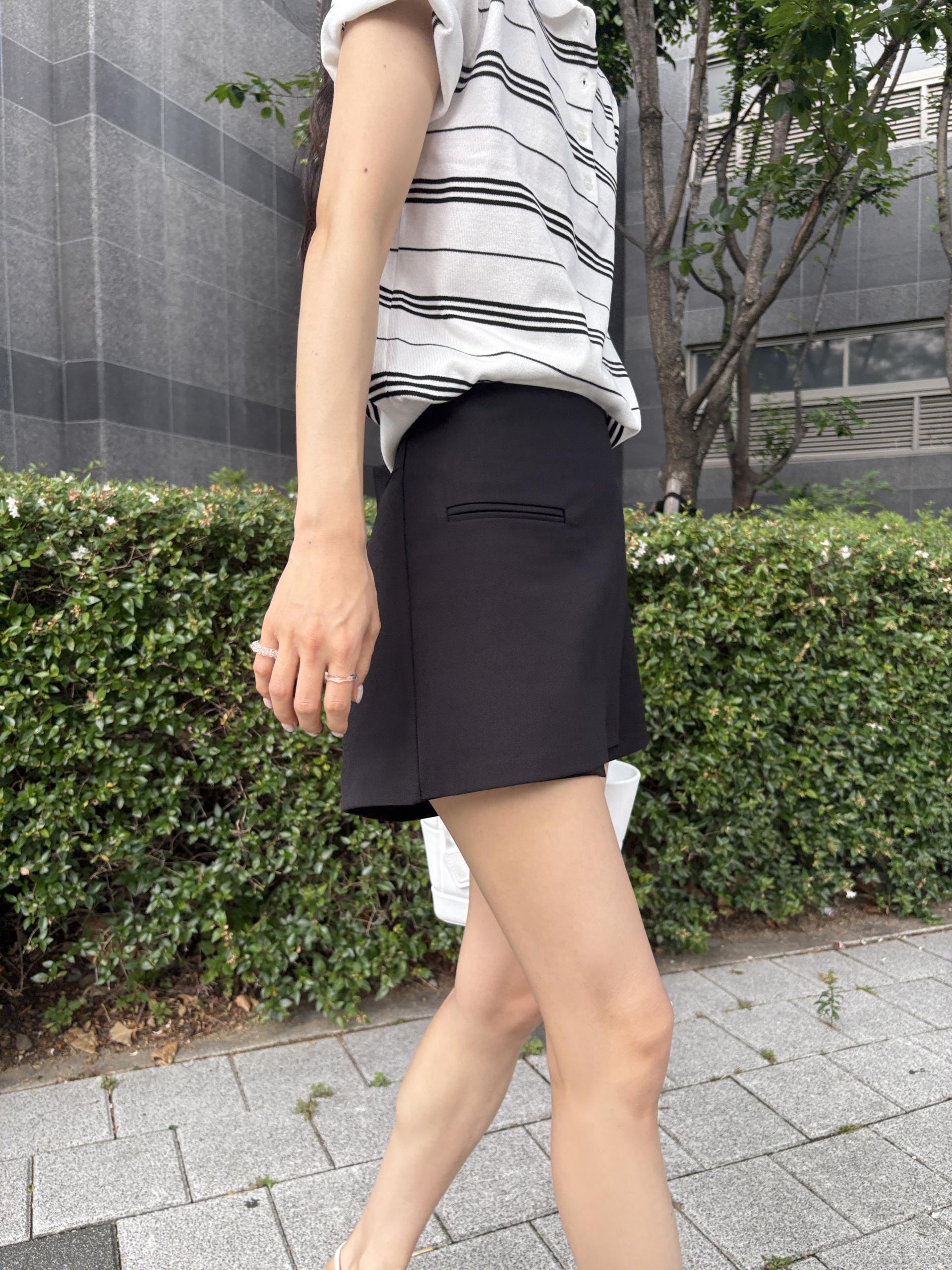 슬랙스 느낌의 숏 팬츠라 여름 하객룩으로도 좋고, 단정하고 세련된 슬랙스 느낌의 숏 팬츠 찾으셨다면 만족하실 상품입니다.