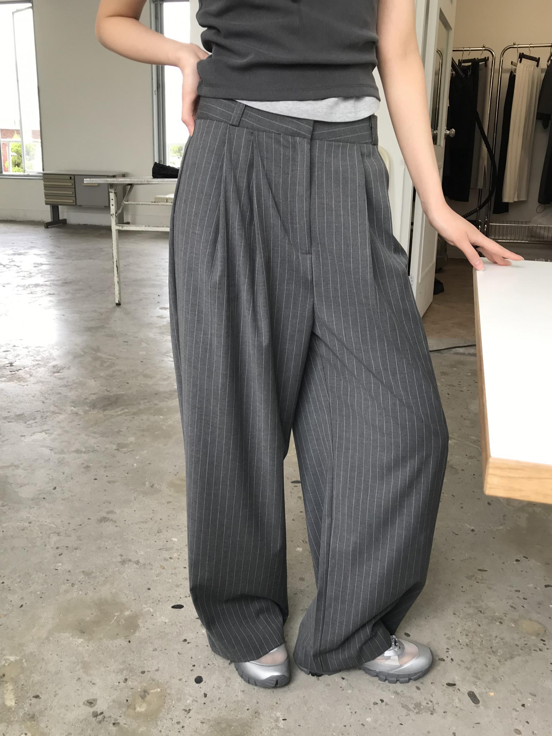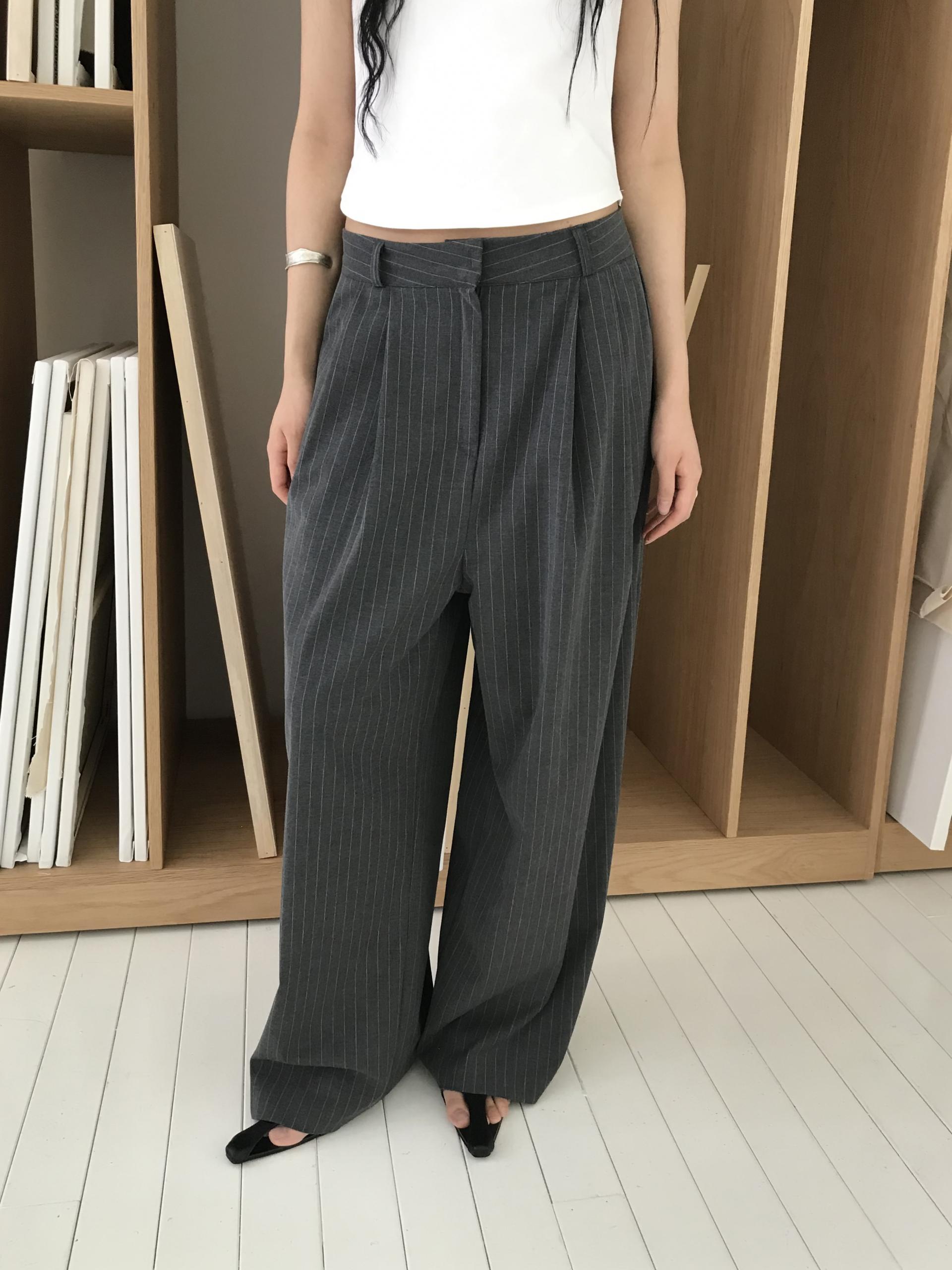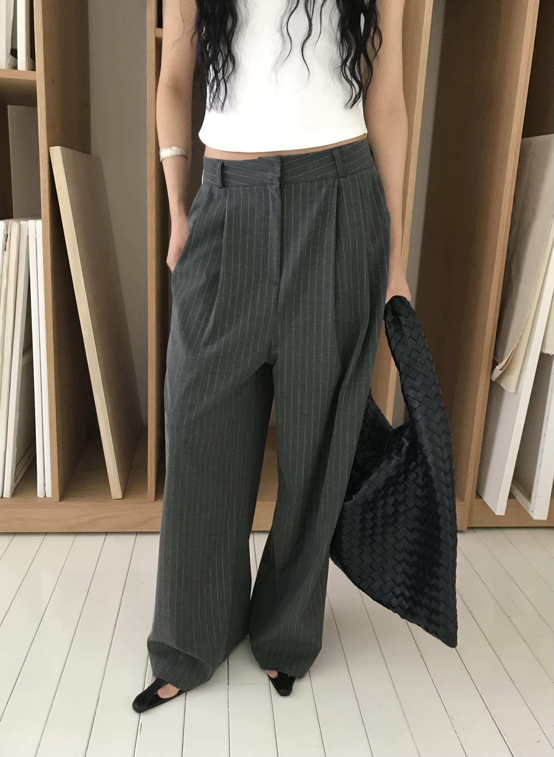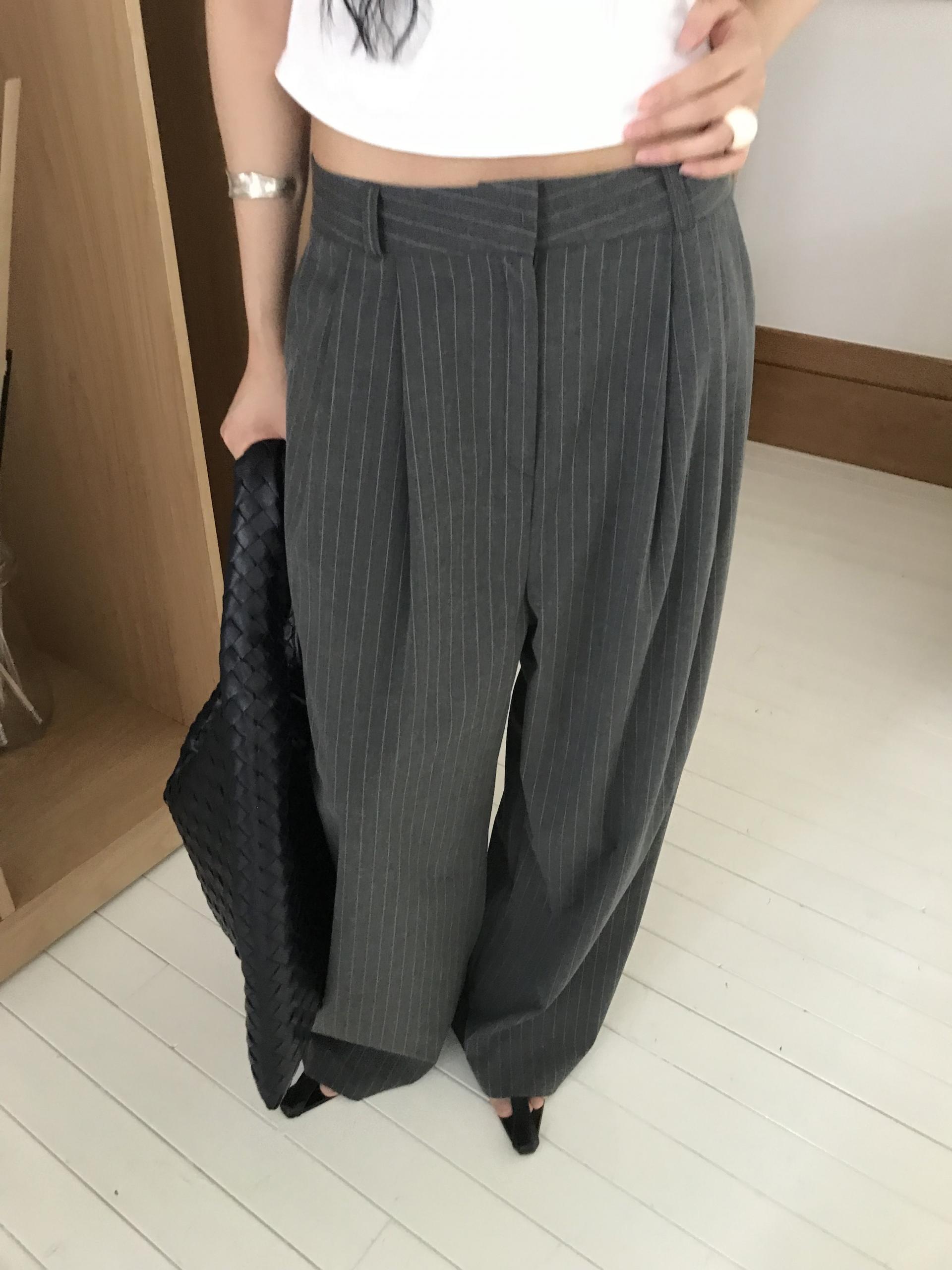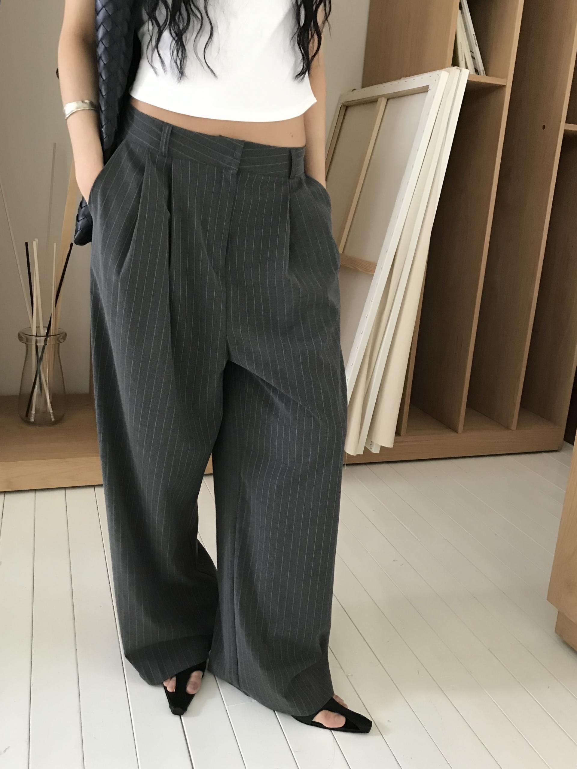 세로 스트라이프 패턴으로 시크한 매력까지 느껴지는 데일리 팬츠에요.