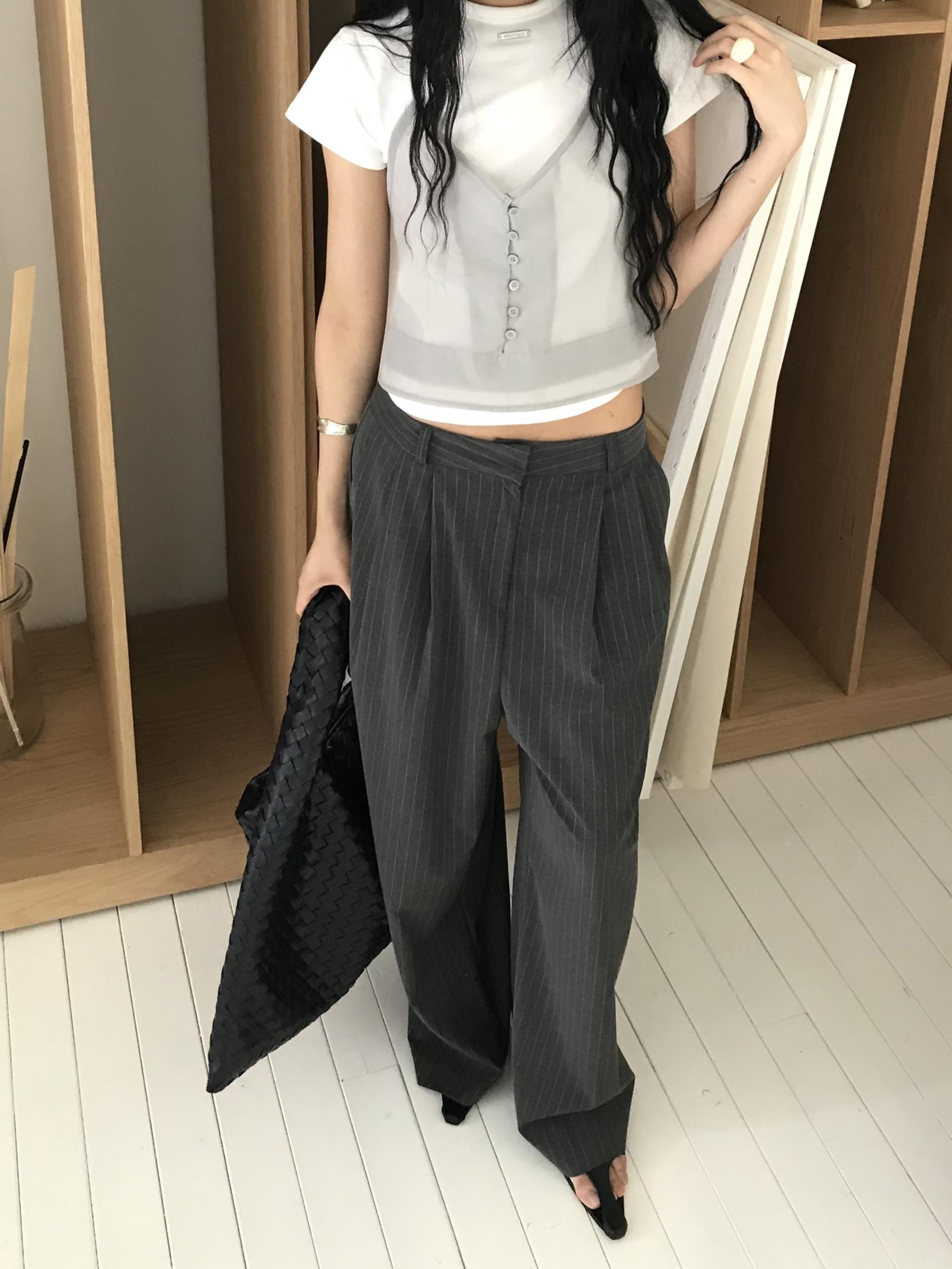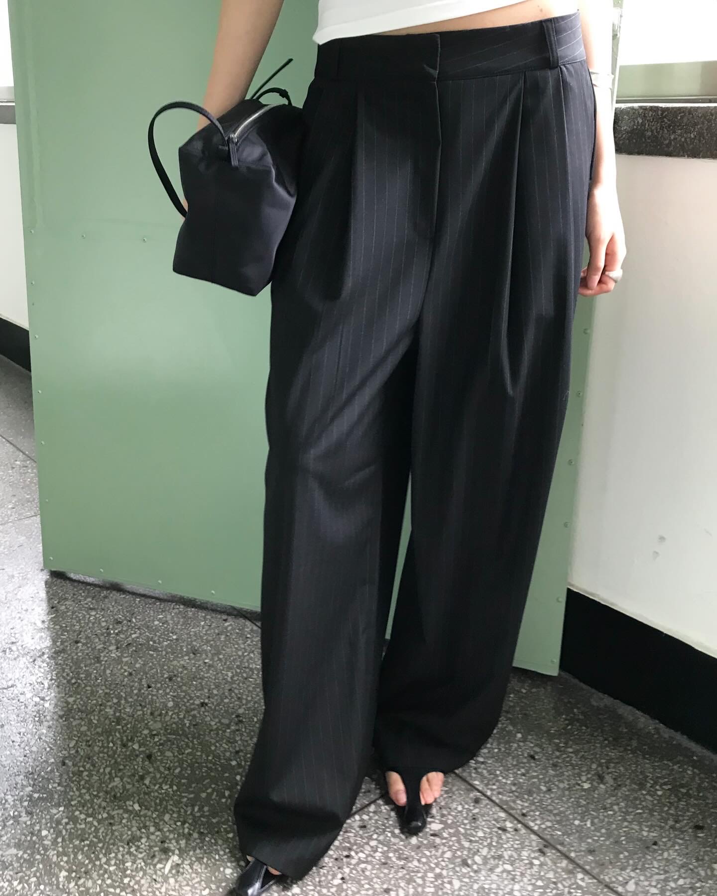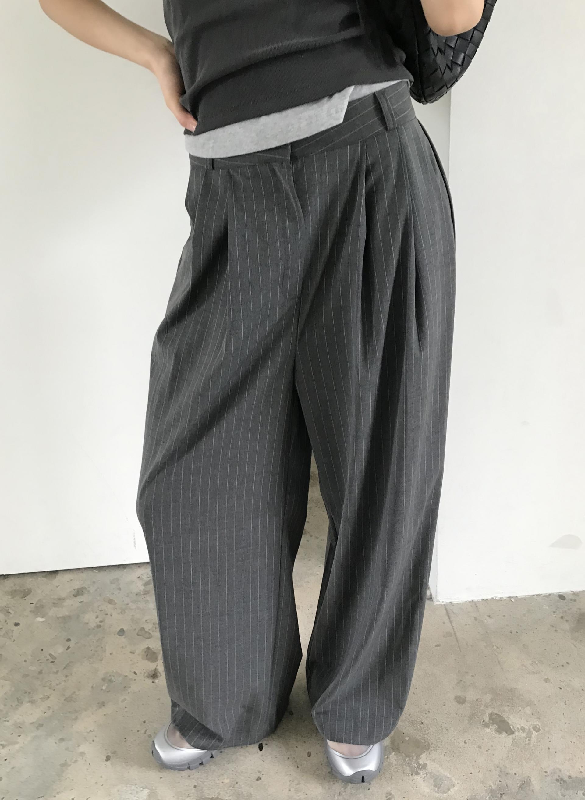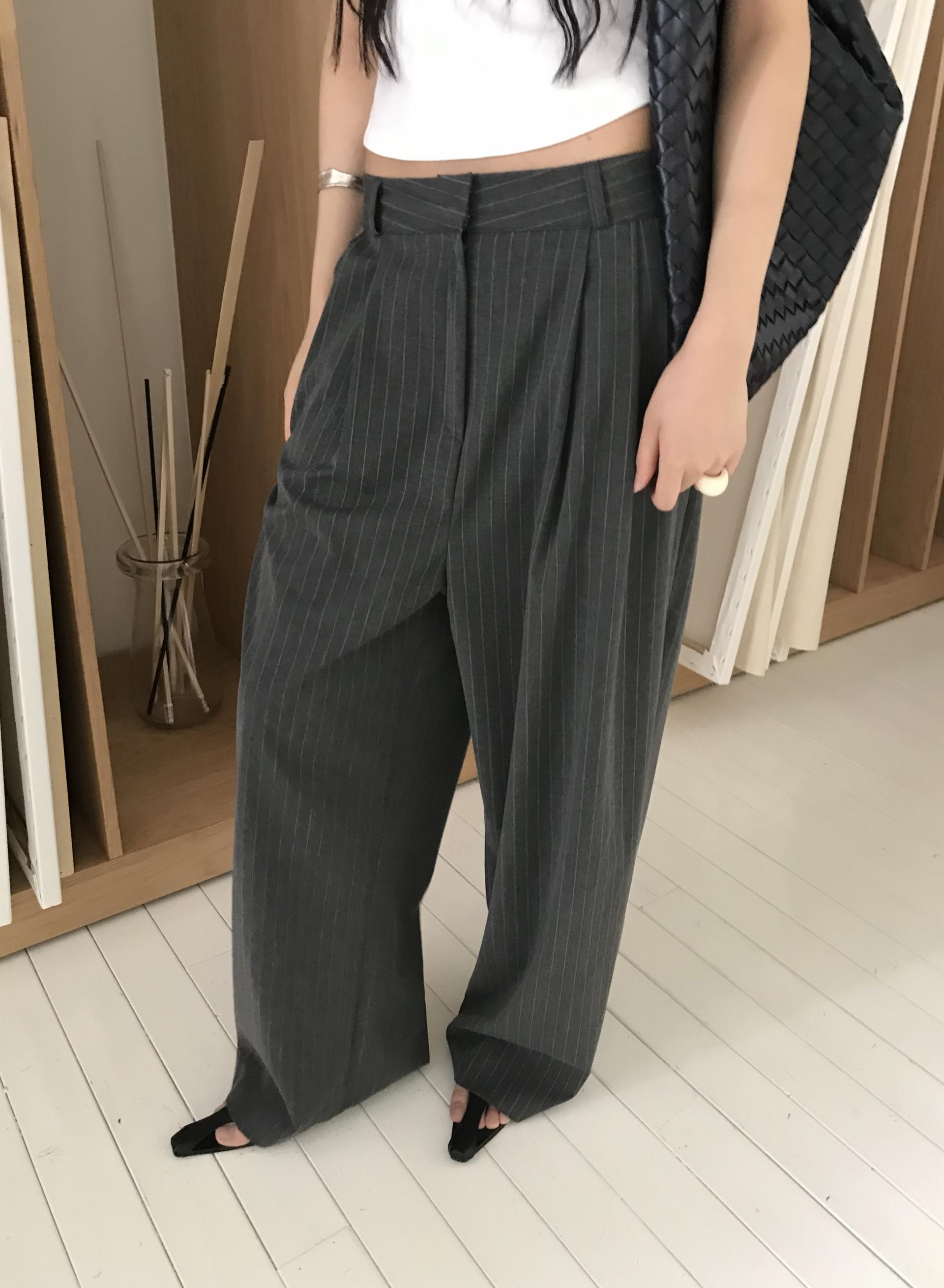 세로 스트라이프 패턴으로 시크한 매력까지 느껴지는 데일리 팬츠에요.