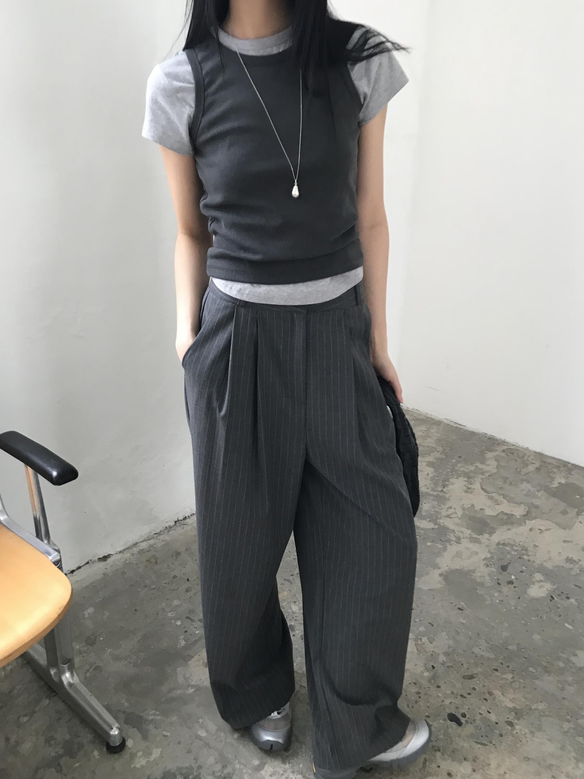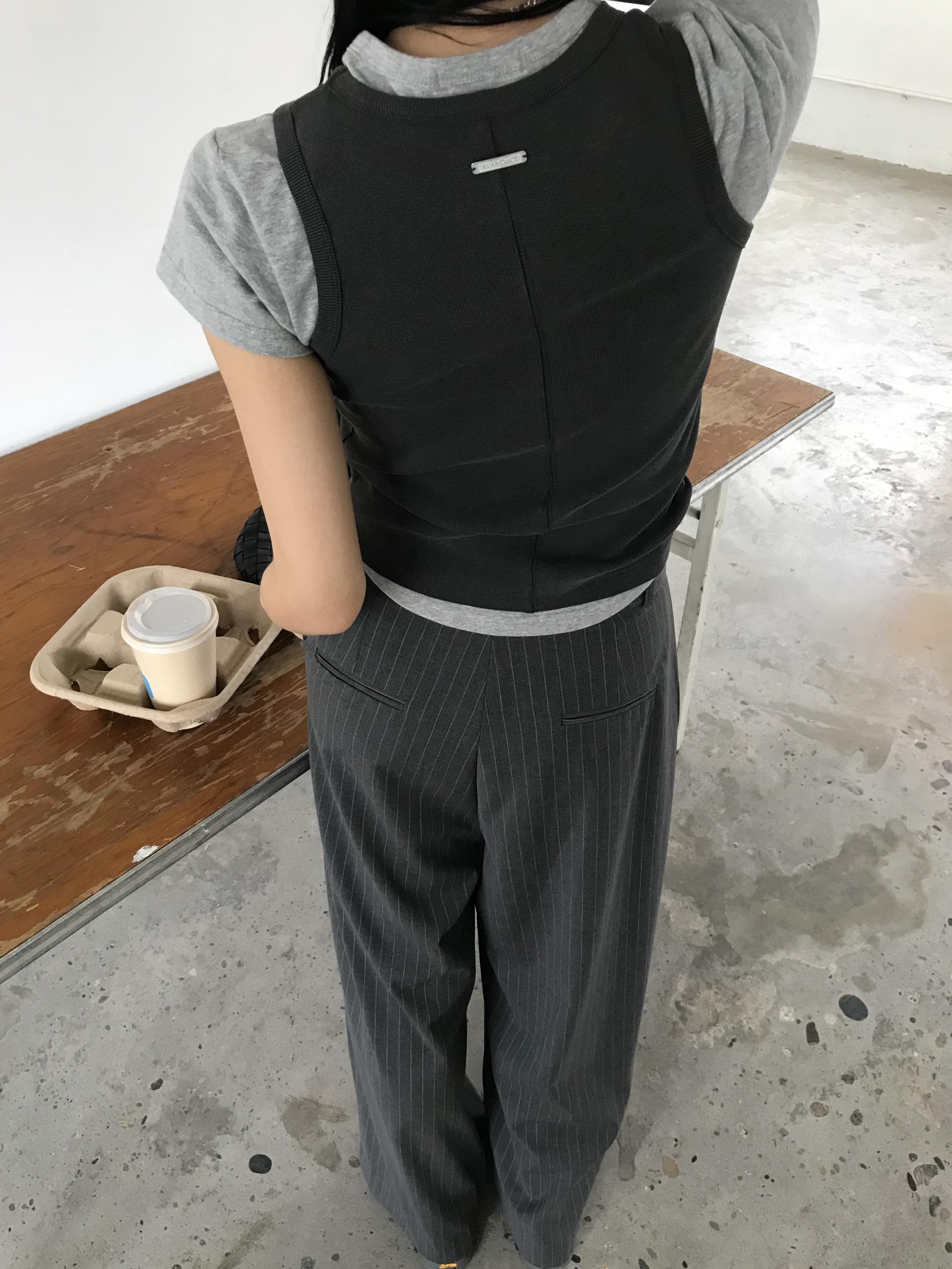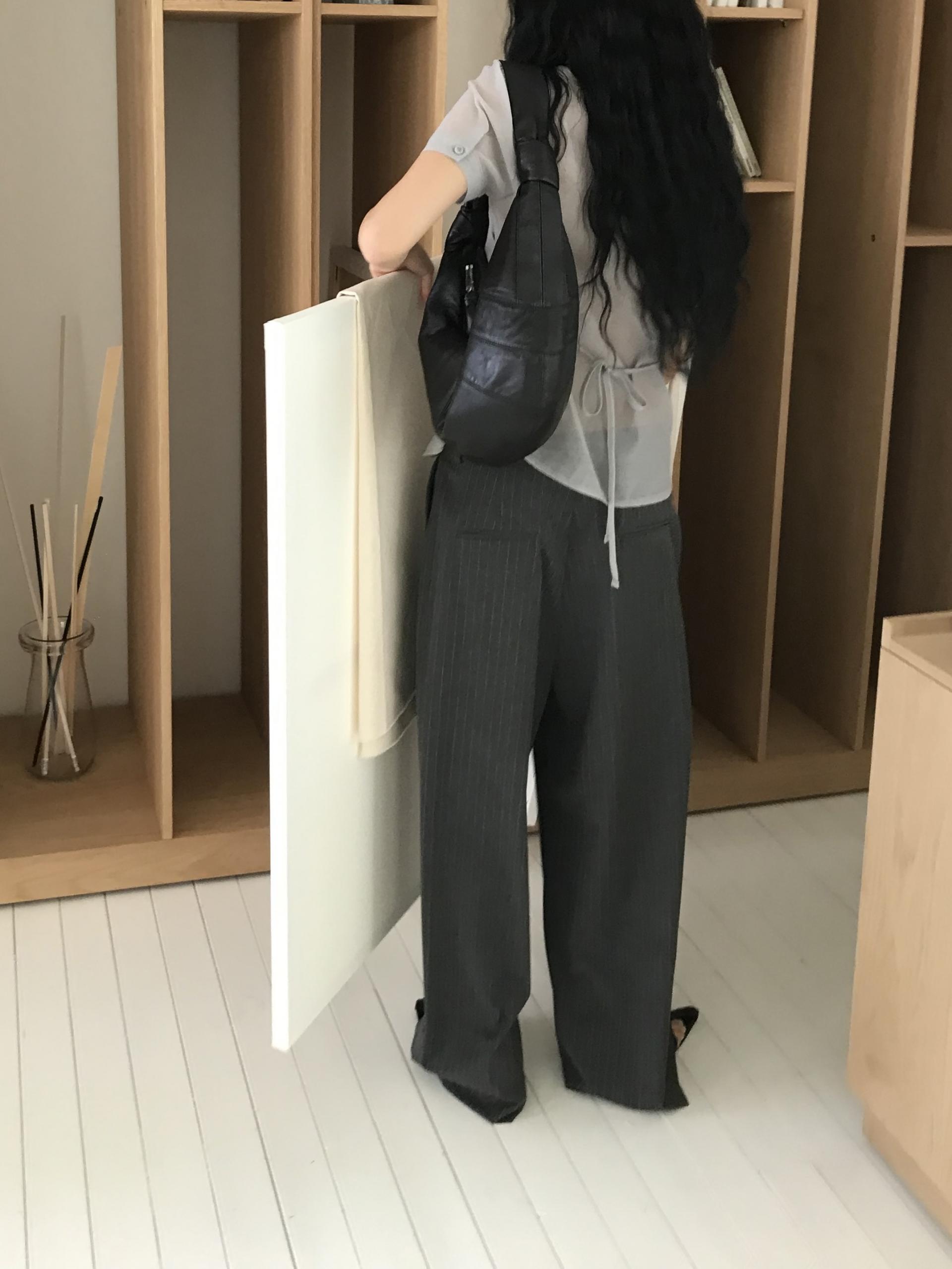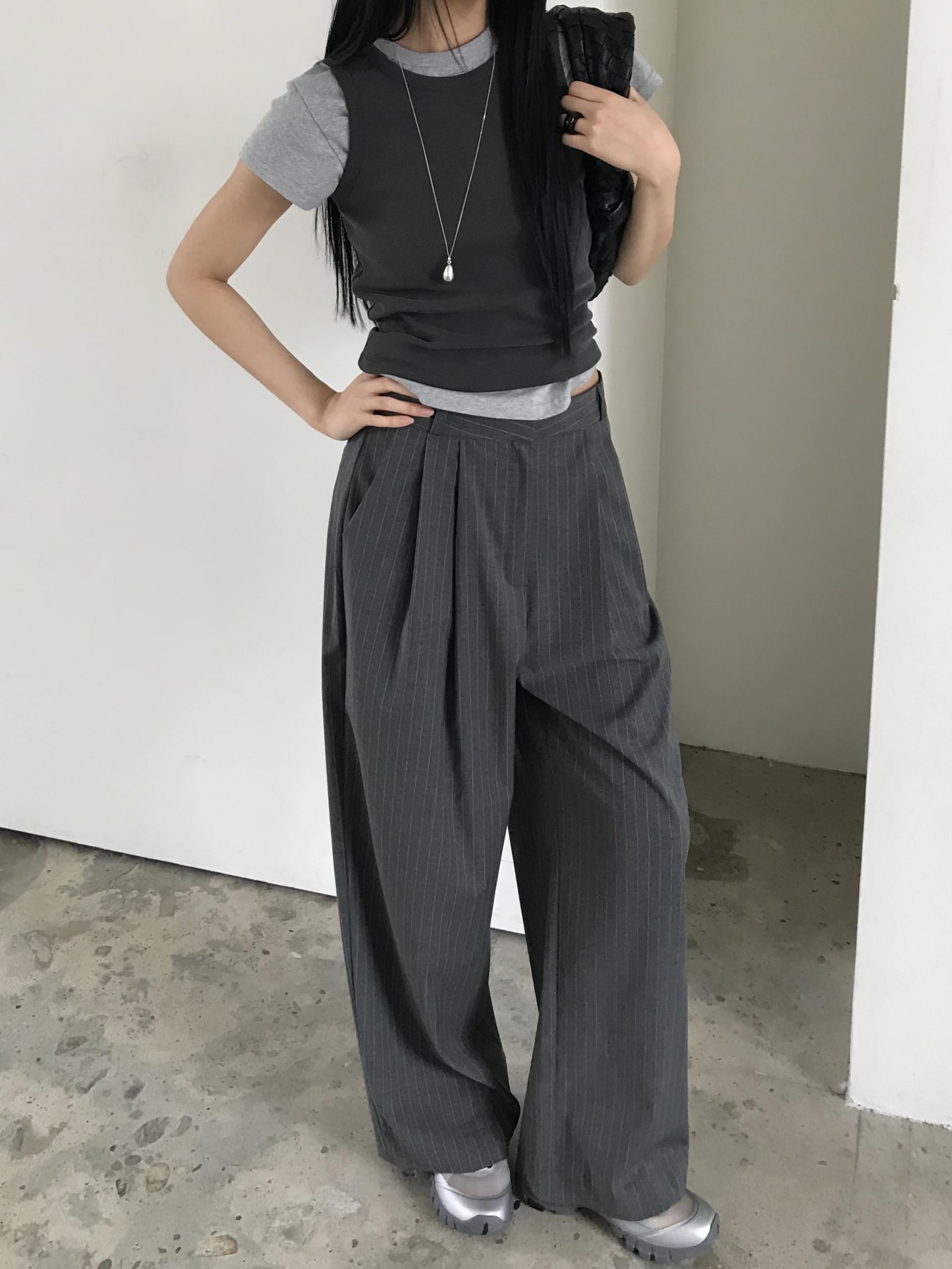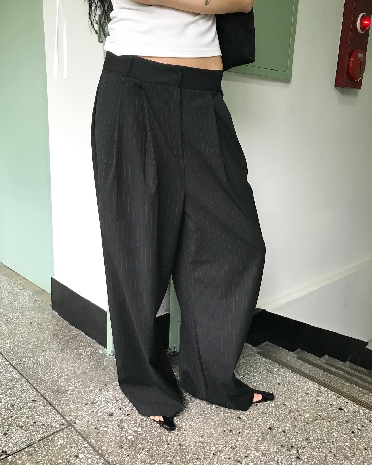 세로 스트라이프 패턴으로 시크한 매력까지 느껴지는 데일리 팬츠에요.