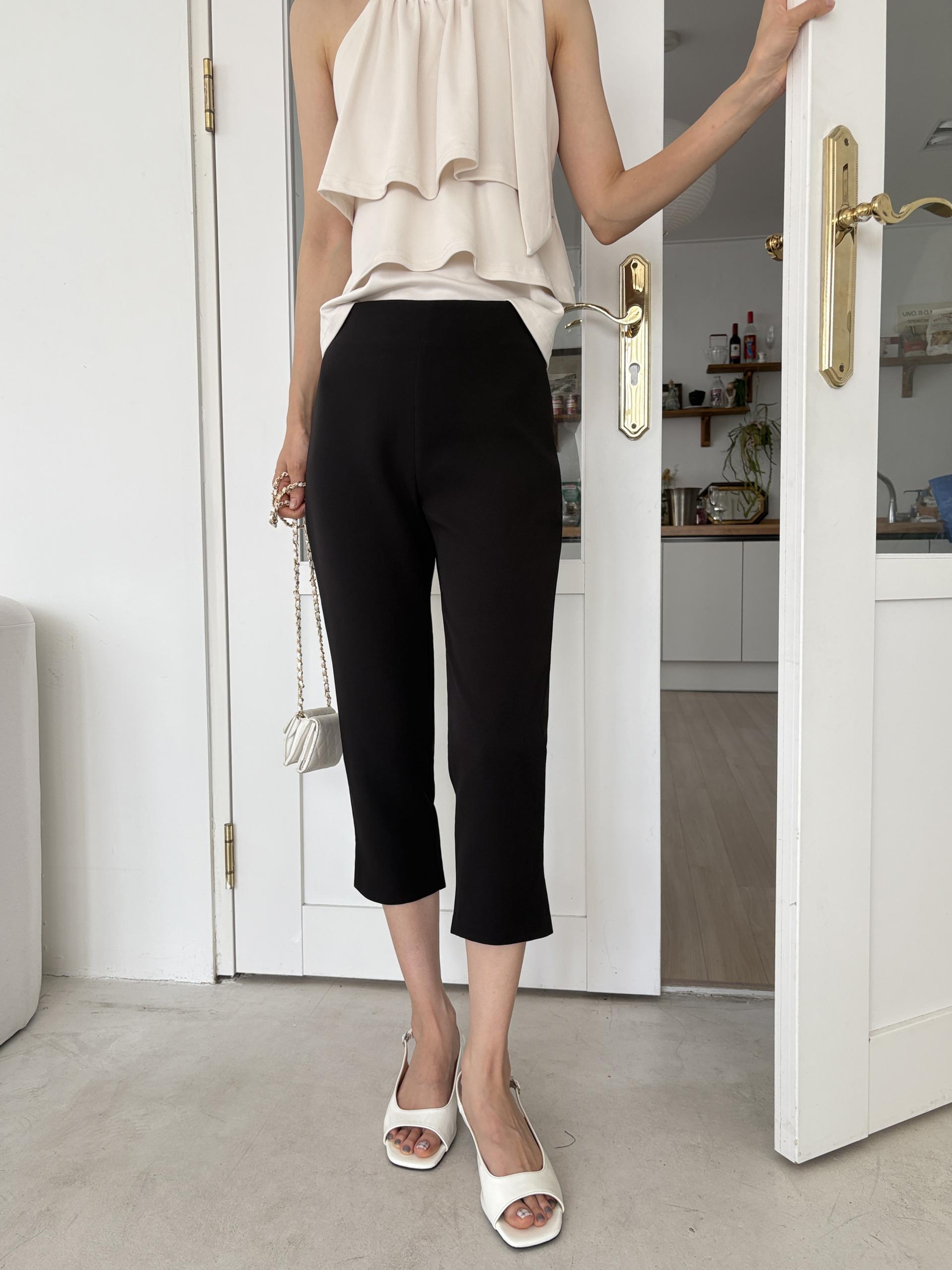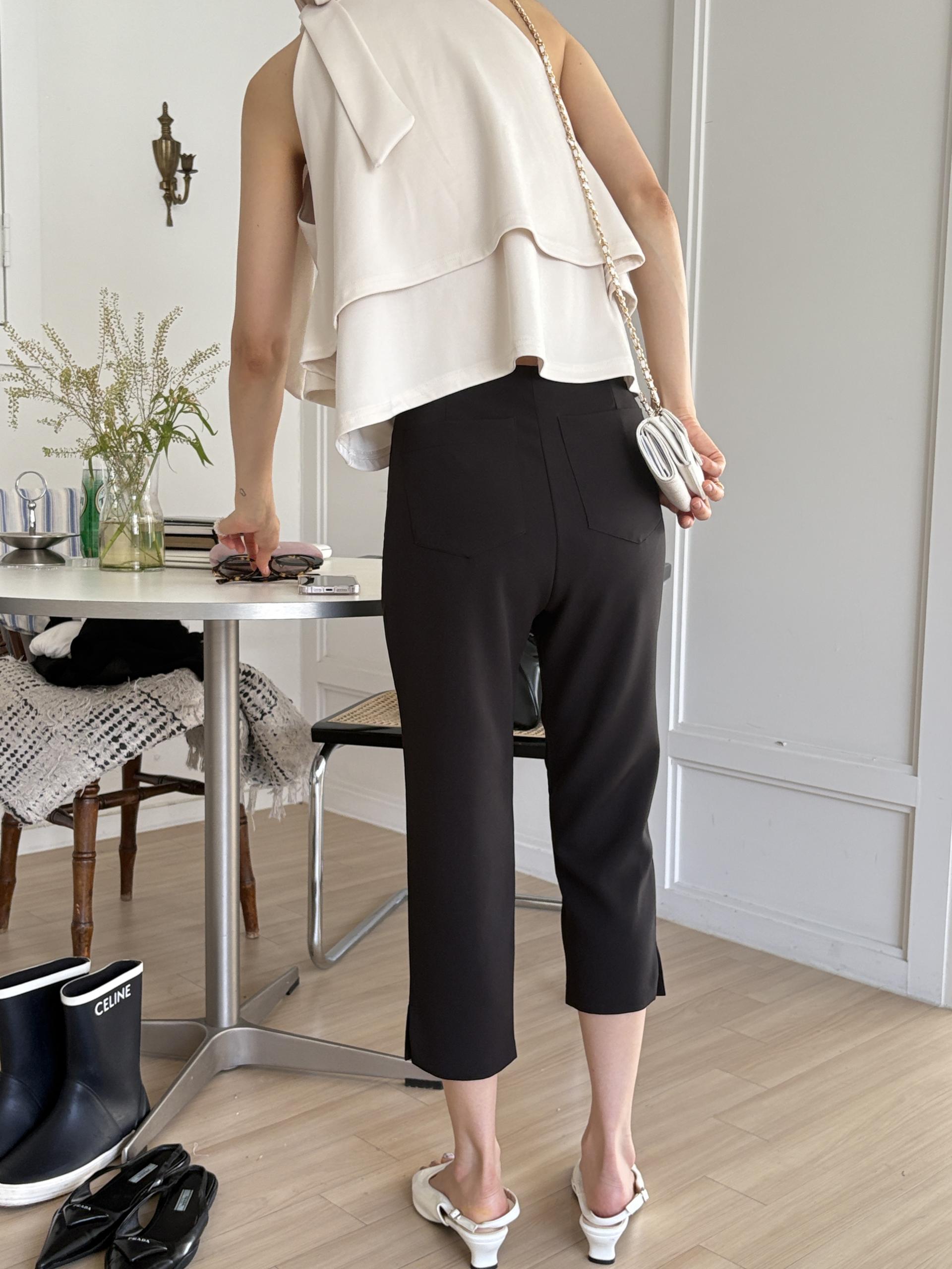 슬림핏에 7부 기장의 카프리 팬츠입니다.