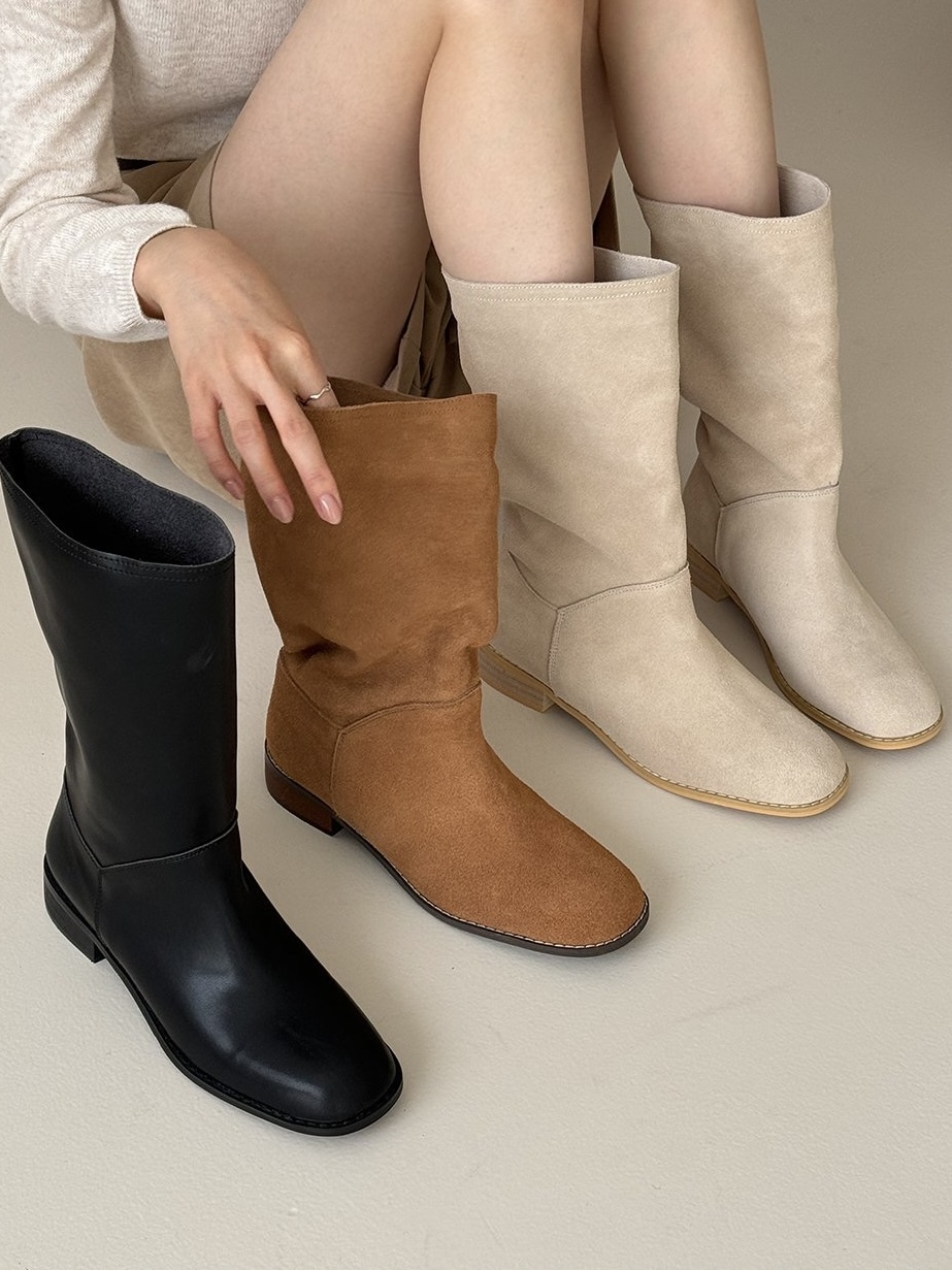 유행 없이 착용 가능한 심플한 디자인으로 어떤 코디에도 세련되게 잘 어울려 기본 부츠로 추천드립니다. 3cm의 미들굽으로 자연스러운 키높이 효과에 발도 편해 만족스러웠어요.