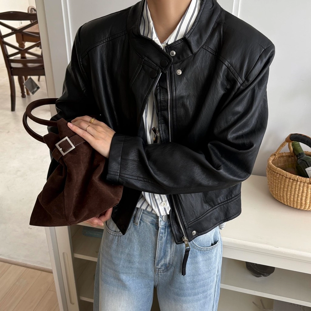 퀄리티 높은 부드러운 레더 텍스처로 고급스러운 무드를 연출해 하나만 걸쳐도 트렌디한 분위기를 완성할 수 있습니다.