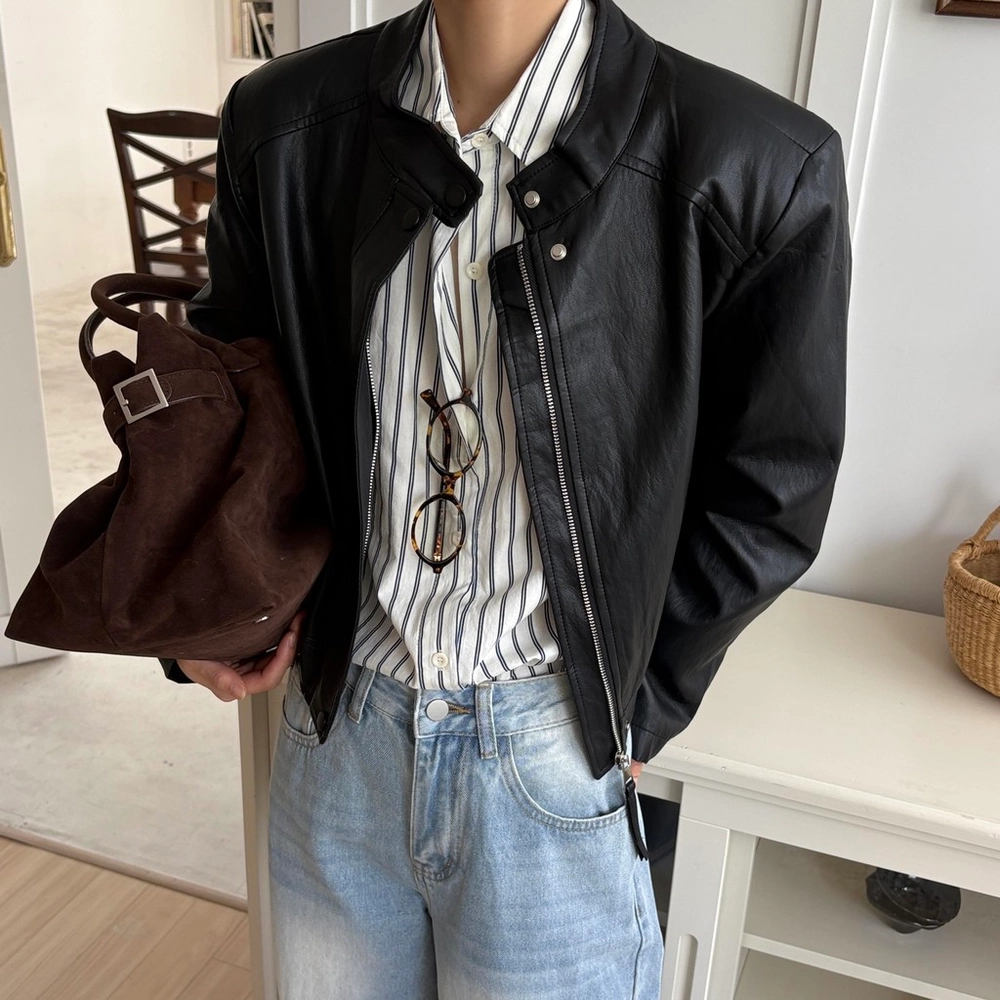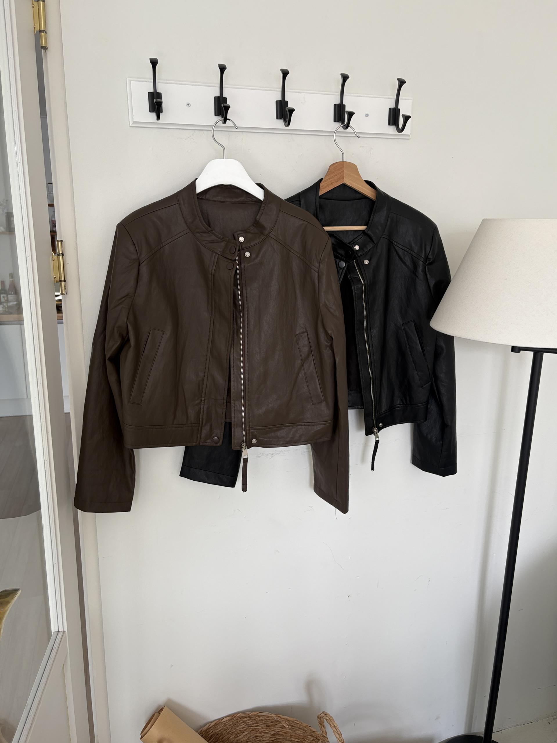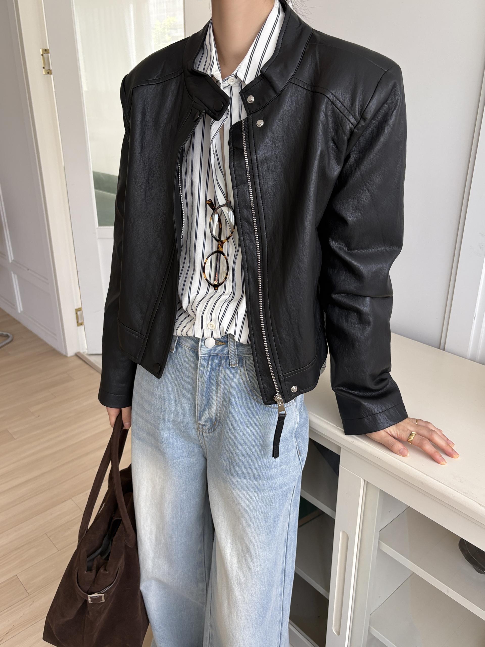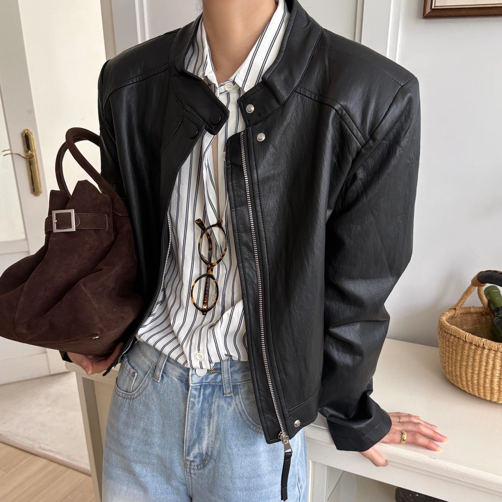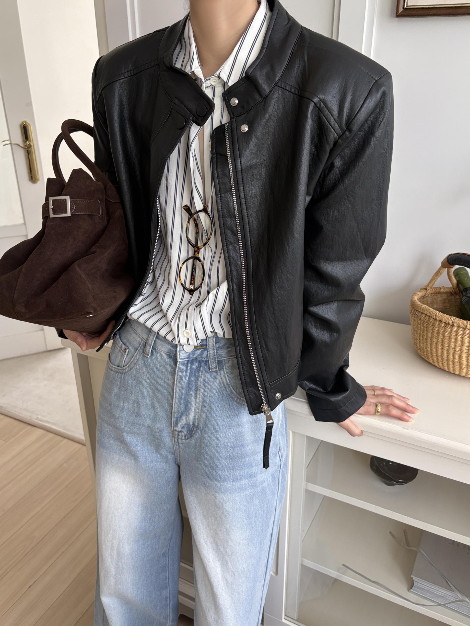 모던하고 세련된 디자인의 비건 레더 자켓입니다.