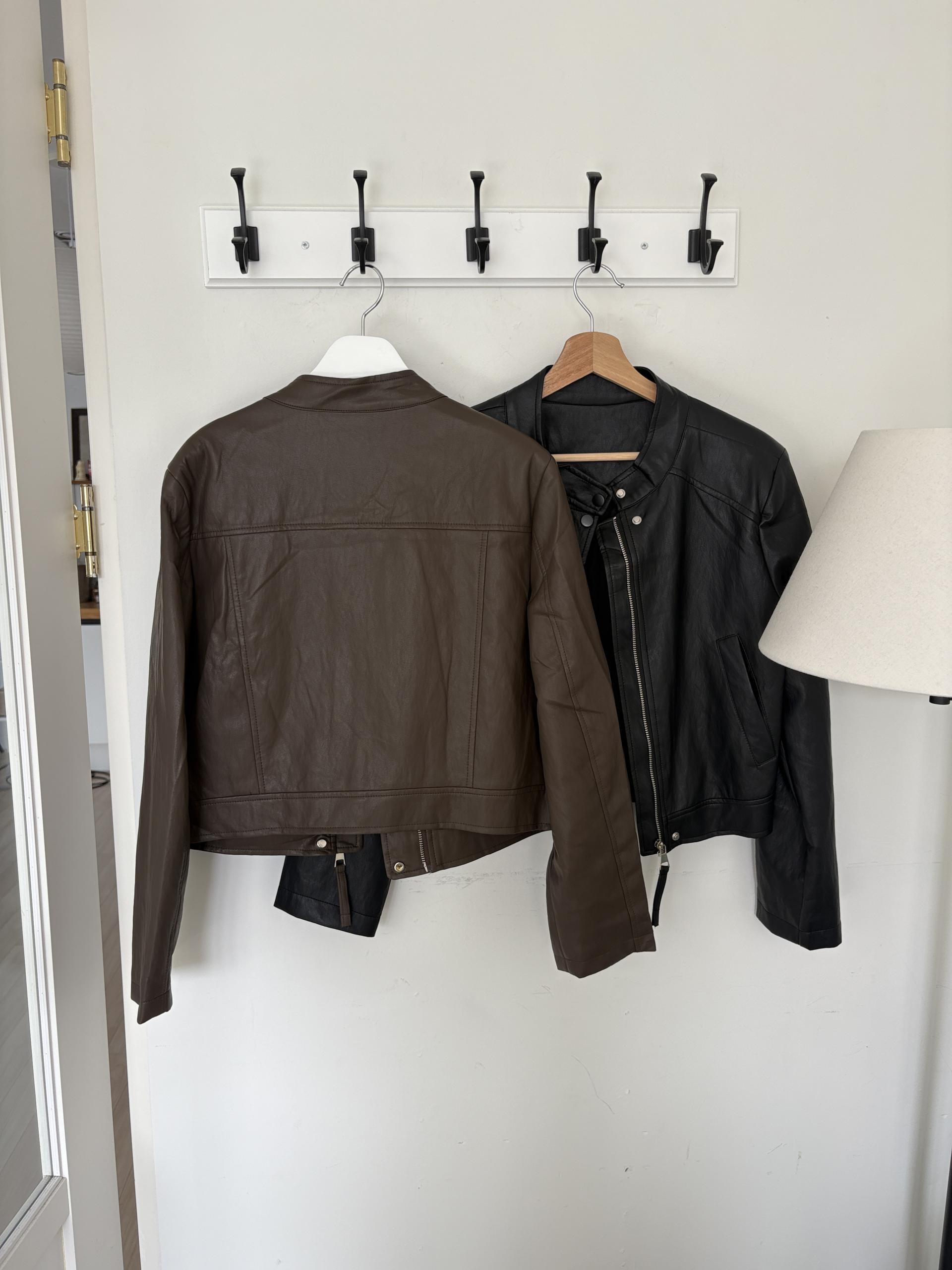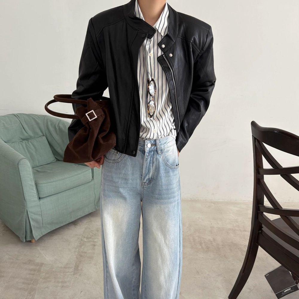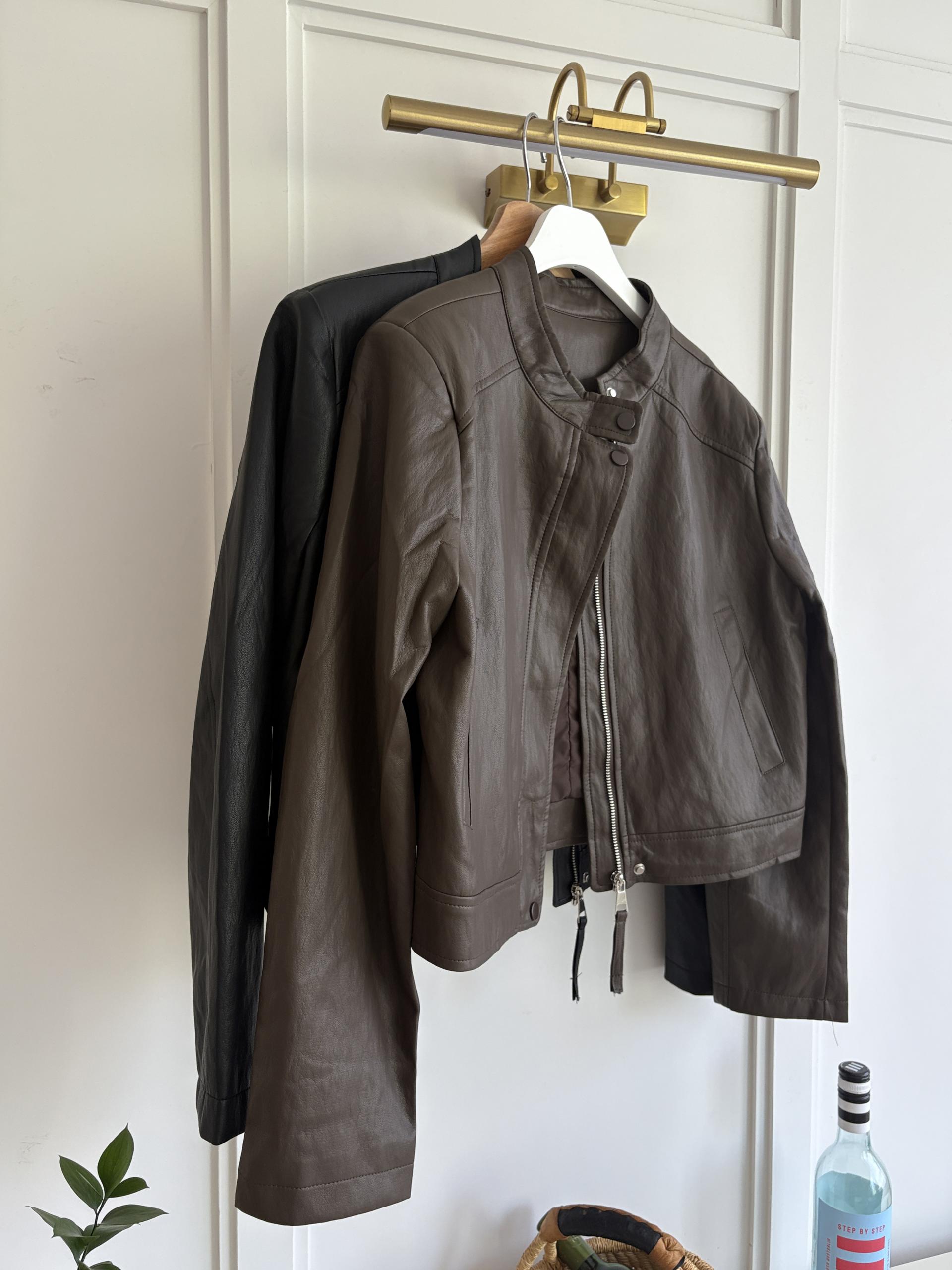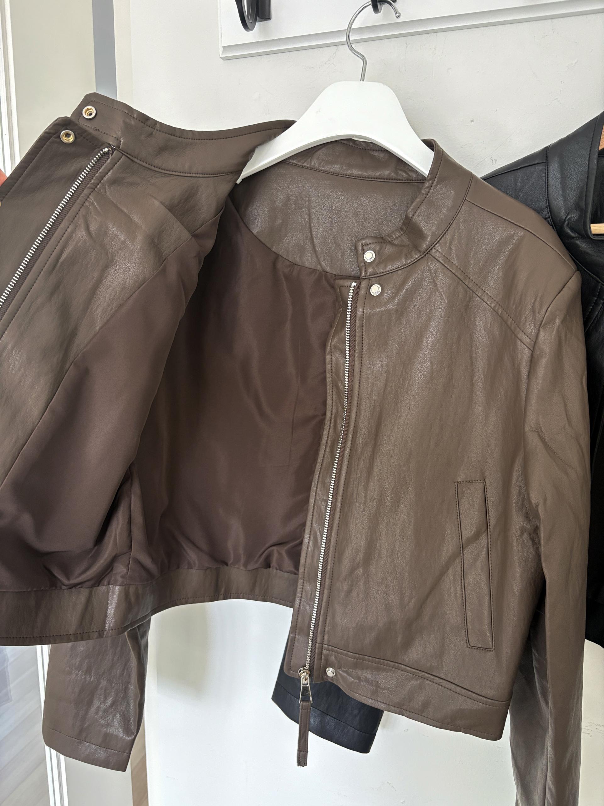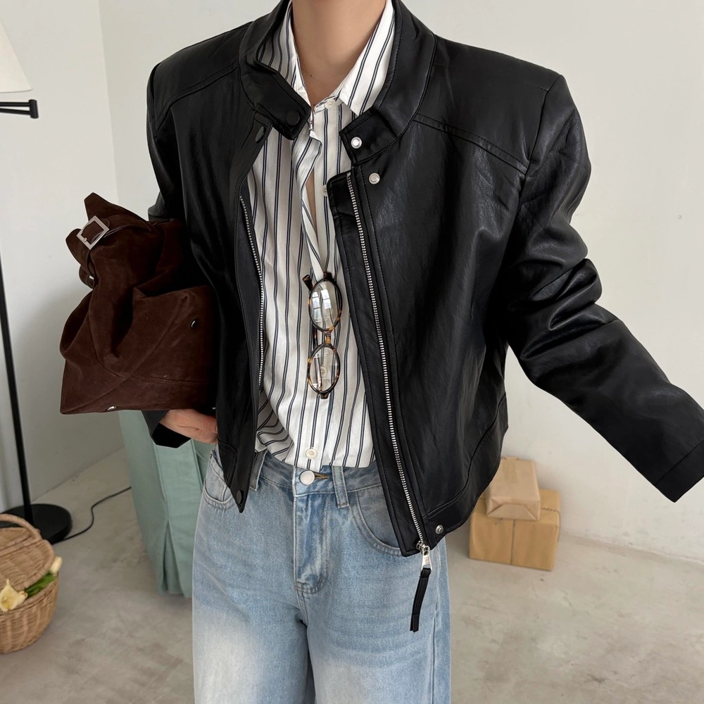 모던하고 세련된 디자인의 비건 레더 자켓입니다.