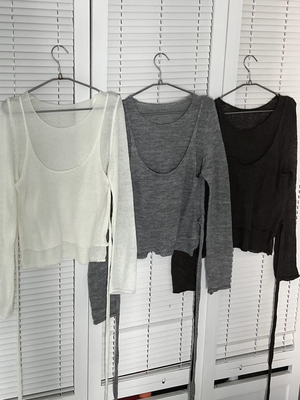 부드러운 모헤어 원단으로 헤어리한 느낌이 매력적이고, 적당한 기본 핏으로 여리여리하게 착용되는 게 특징입니다.