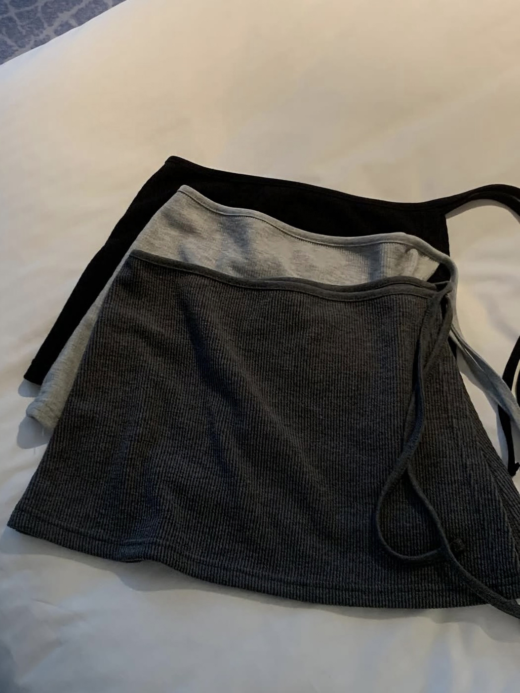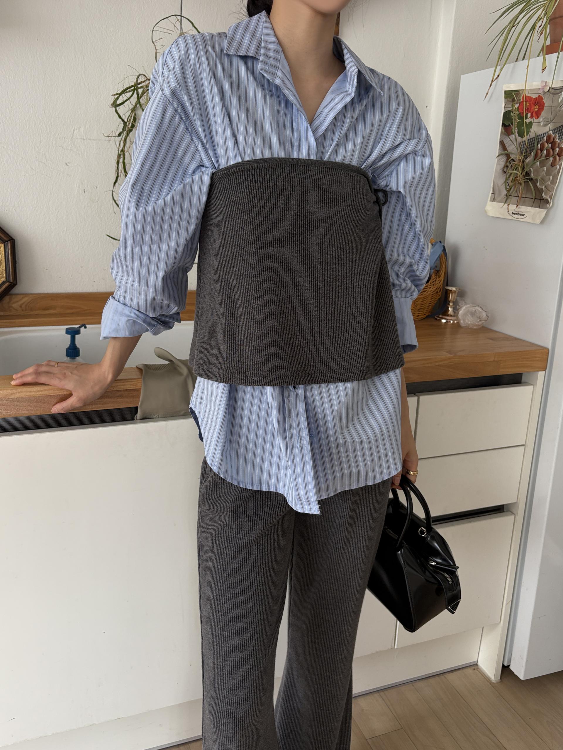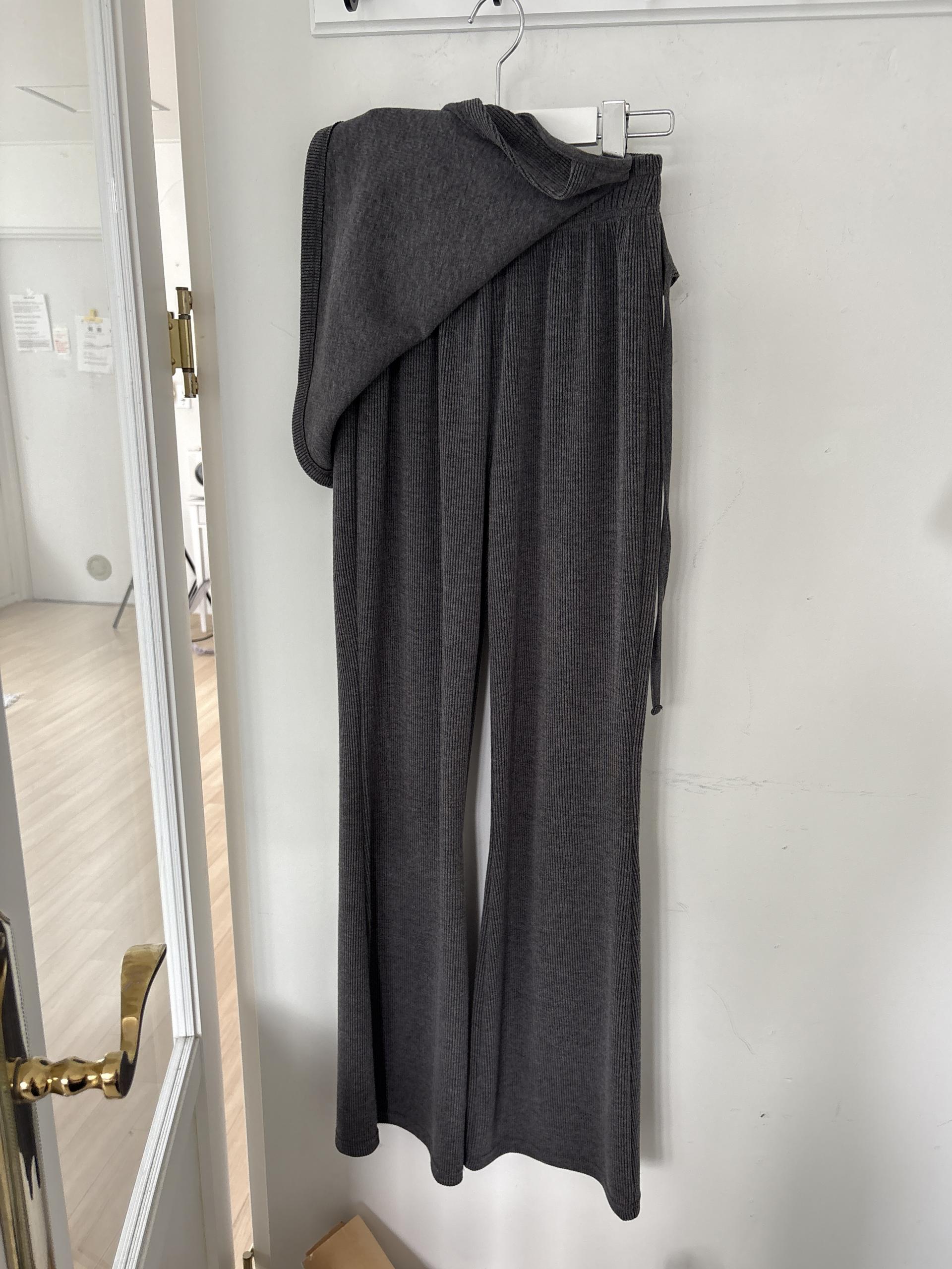 밴딩 디테일에 롱 기장의 부츠컷 팬츠와 미니 기장의 랩스커트가 세트이며, 탈부착이 가능해 랩스커트를 뷔스티에처럼 연출하셔도 되고 팬츠 단독으로만 스타일링 할 수도 있어 활용도 높은 상품입니다.