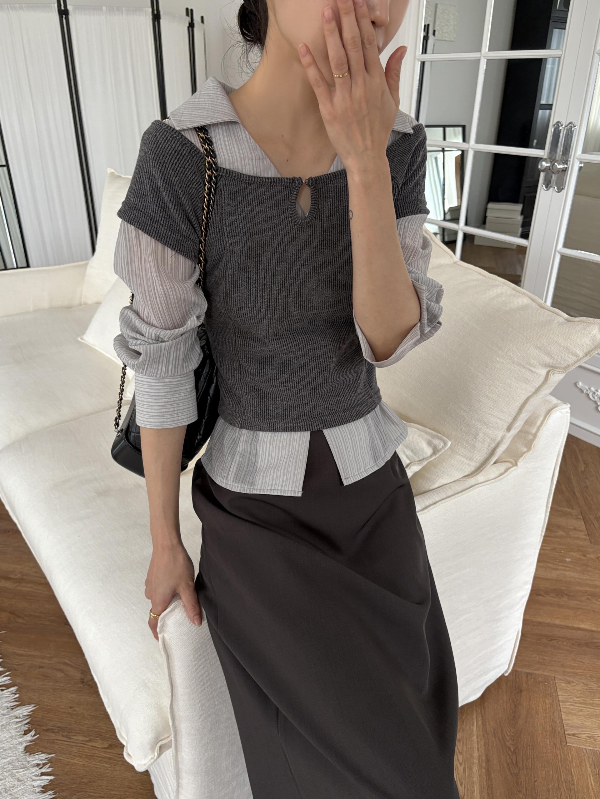 단독으로도 너무 예쁘지만, 함께 코디된 티셔츠나 뷔스티에, 니트 등과 함께 레이어드하기에도 아주 좋습니다.