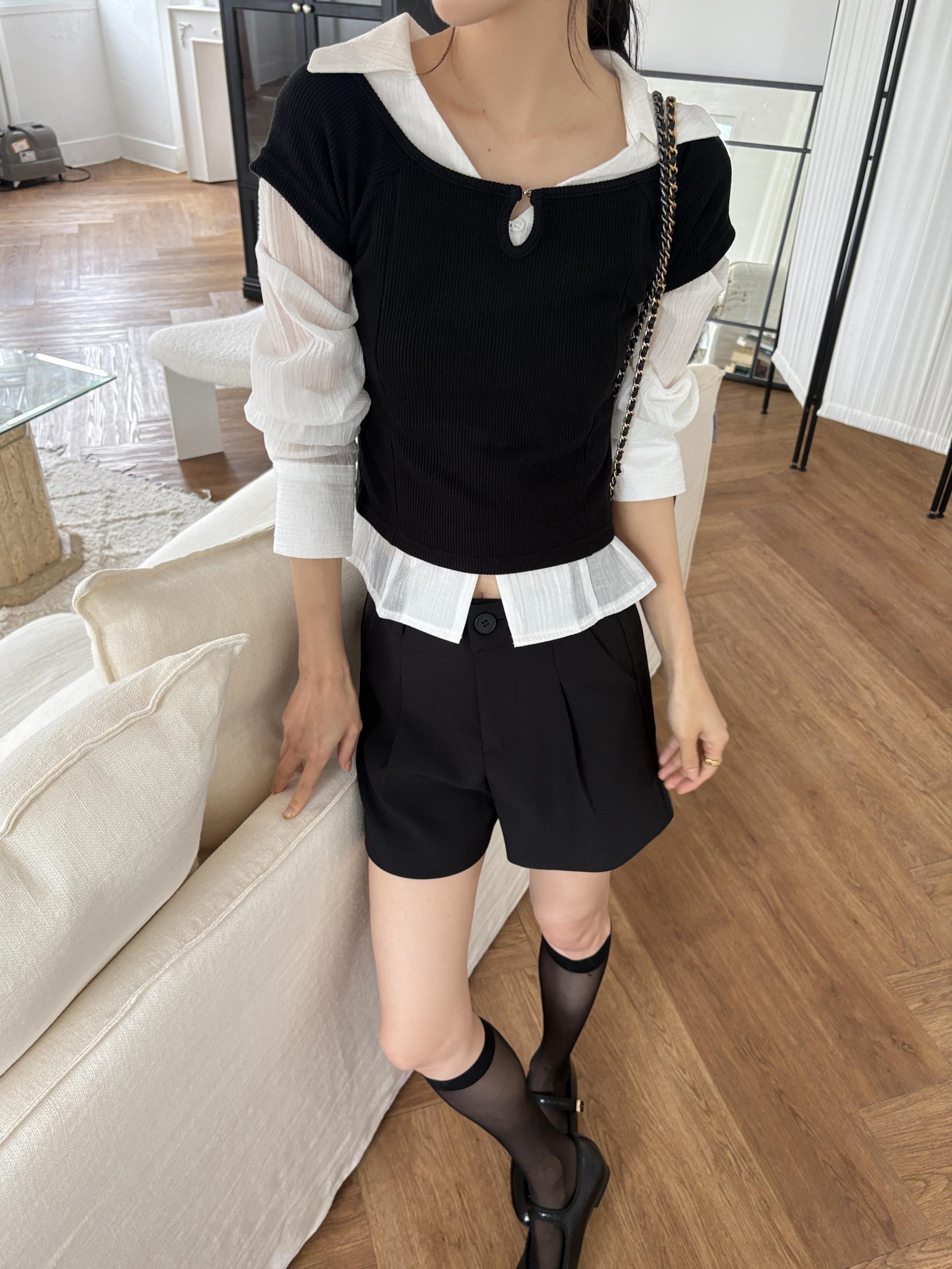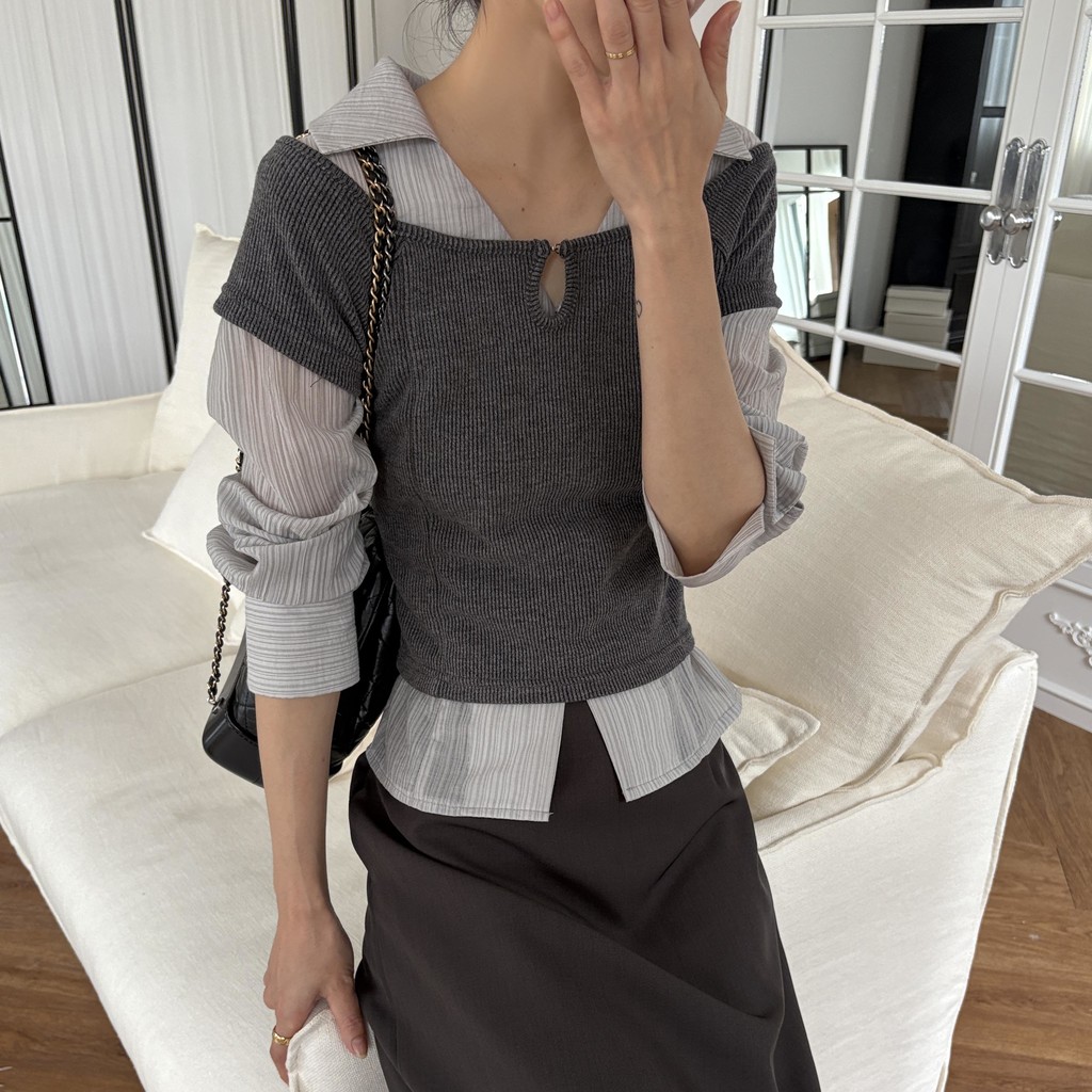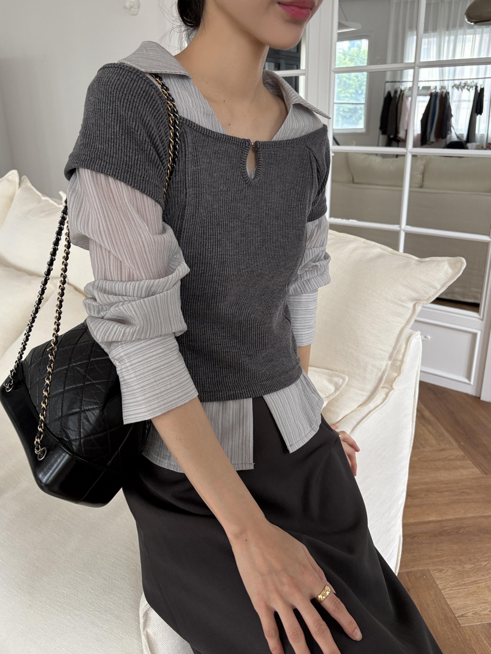 가을 시즌 단독으로는 자켓 등 아우터 안에 착용하기 좋으며, 모델 컷과 같이 뷔스티에로 레이어드해 입었을 때 가장 예뻐 꼭 세트 그대로 입어보시길 추천드립니다.