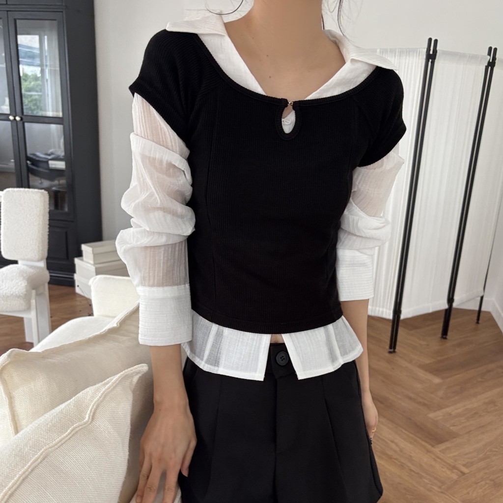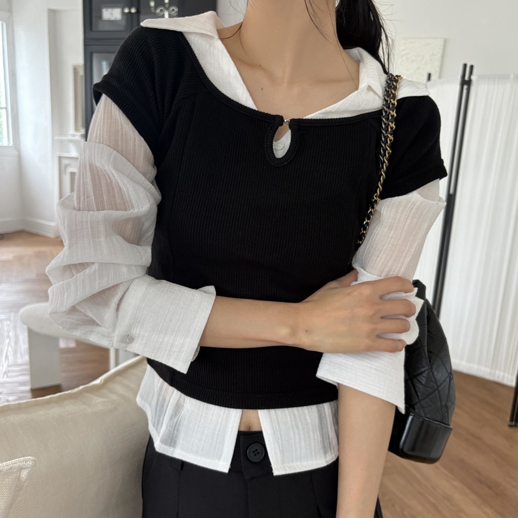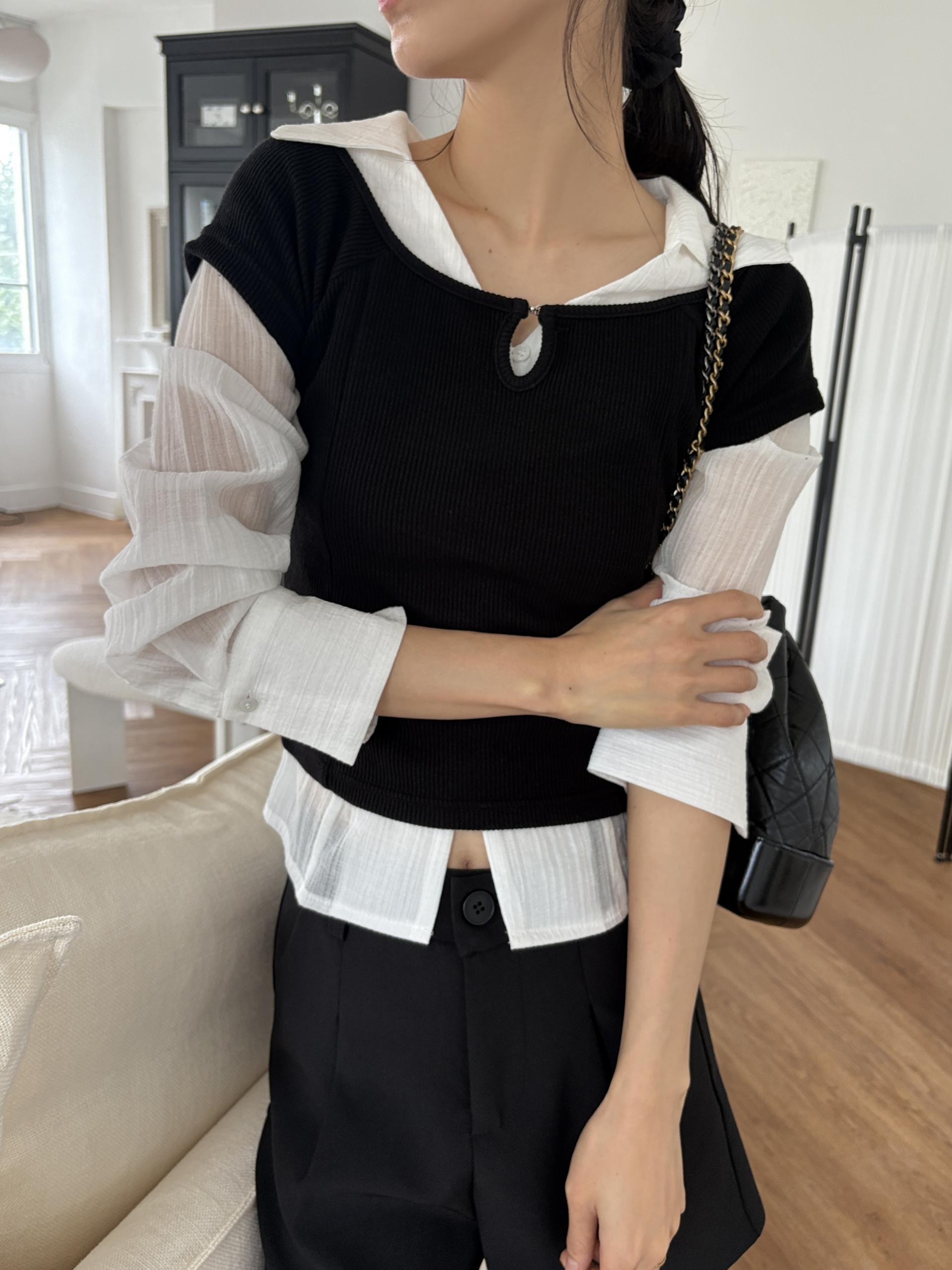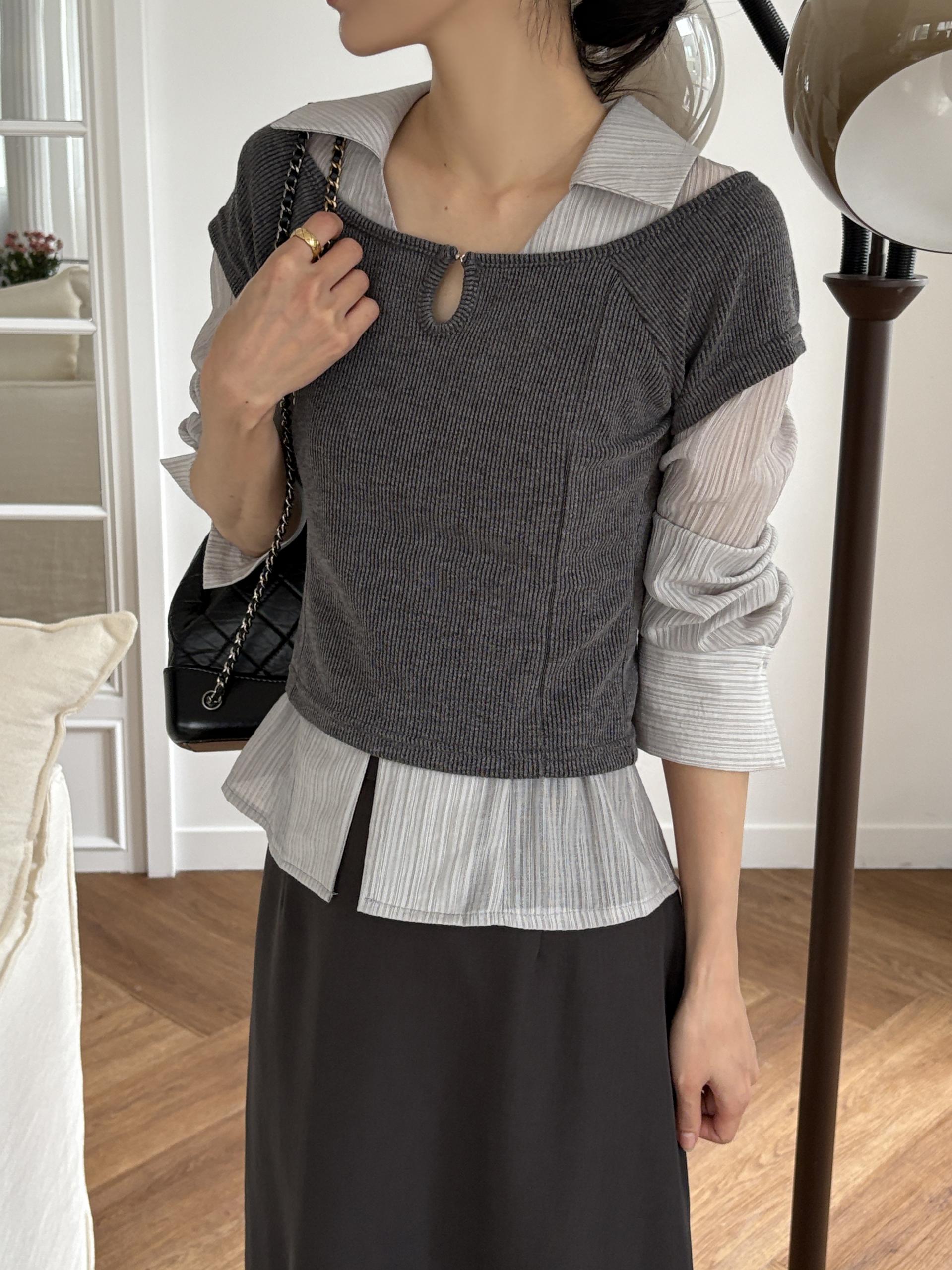 가을 시즌 단독으로는 자켓 등 아우터 안에 착용하기 좋으며, 모델 컷과 같이 뷔스티에로 레이어드해 입었을 때 가장 예뻐 꼭 세트 그대로 입어보시길 추천드립니다.