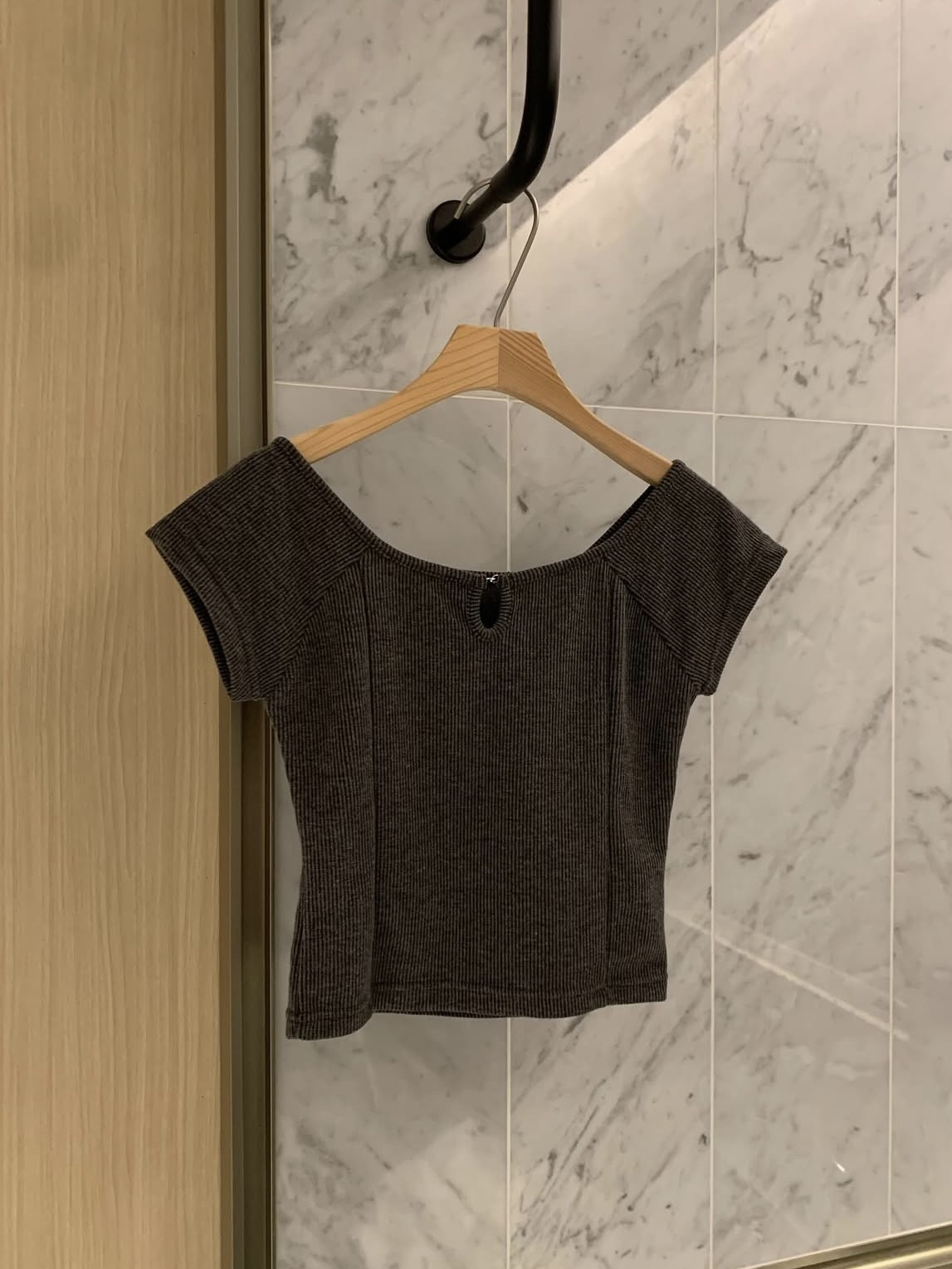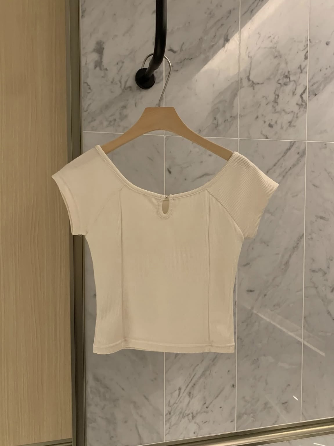 슬림핏에 크롭 기장으로 여리여리 말라 보여 핏도 너무 예쁜 데일리 반팔 탑입니다.