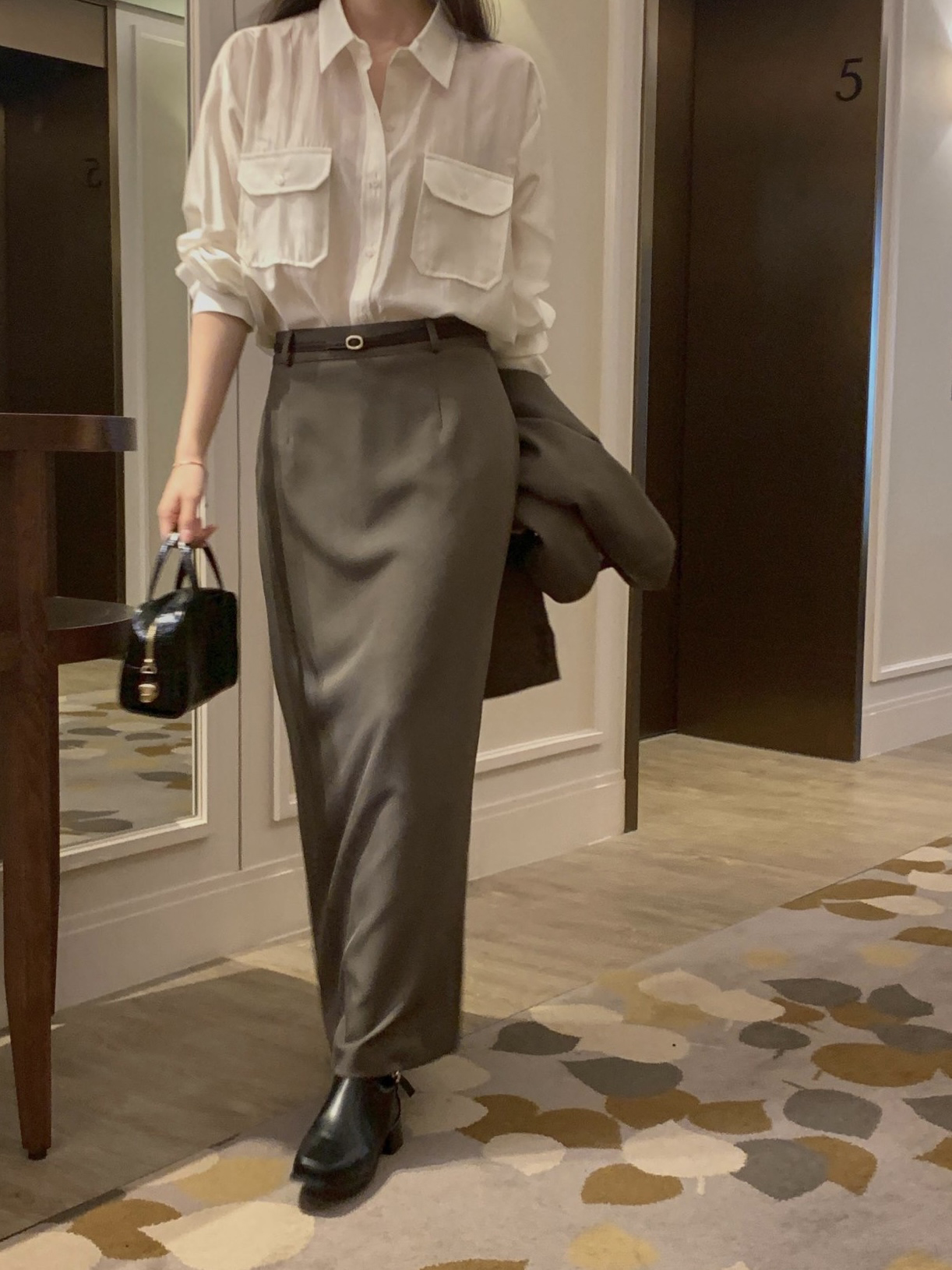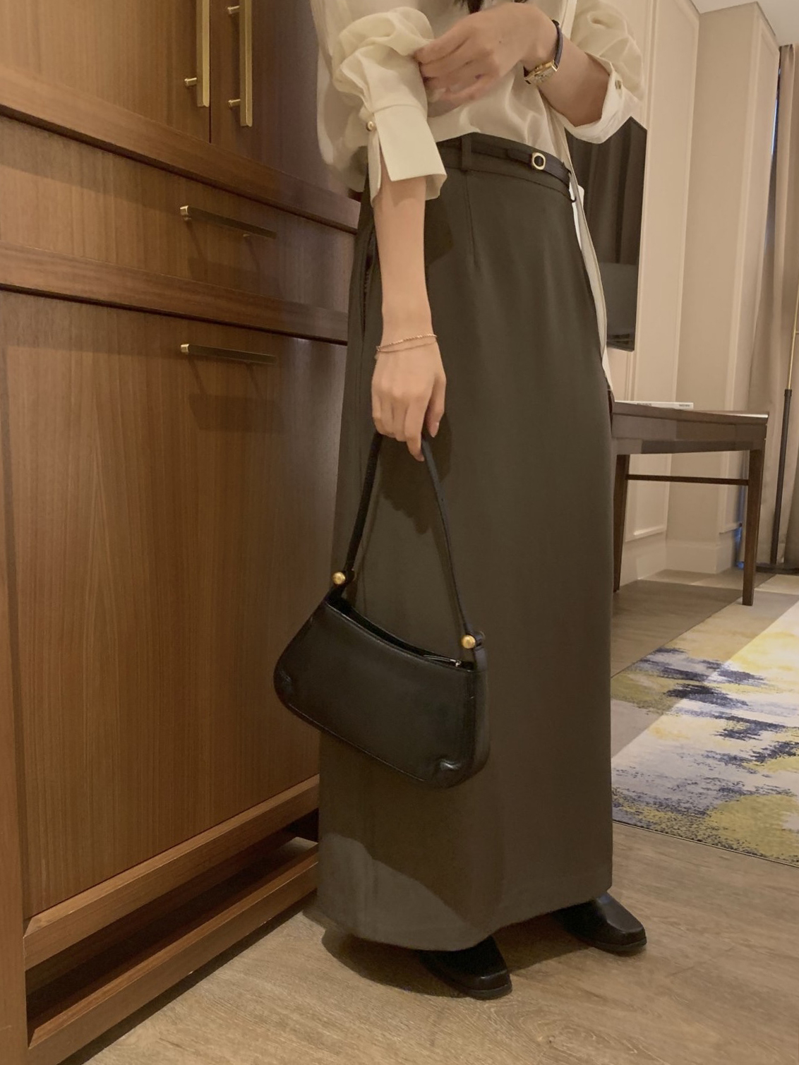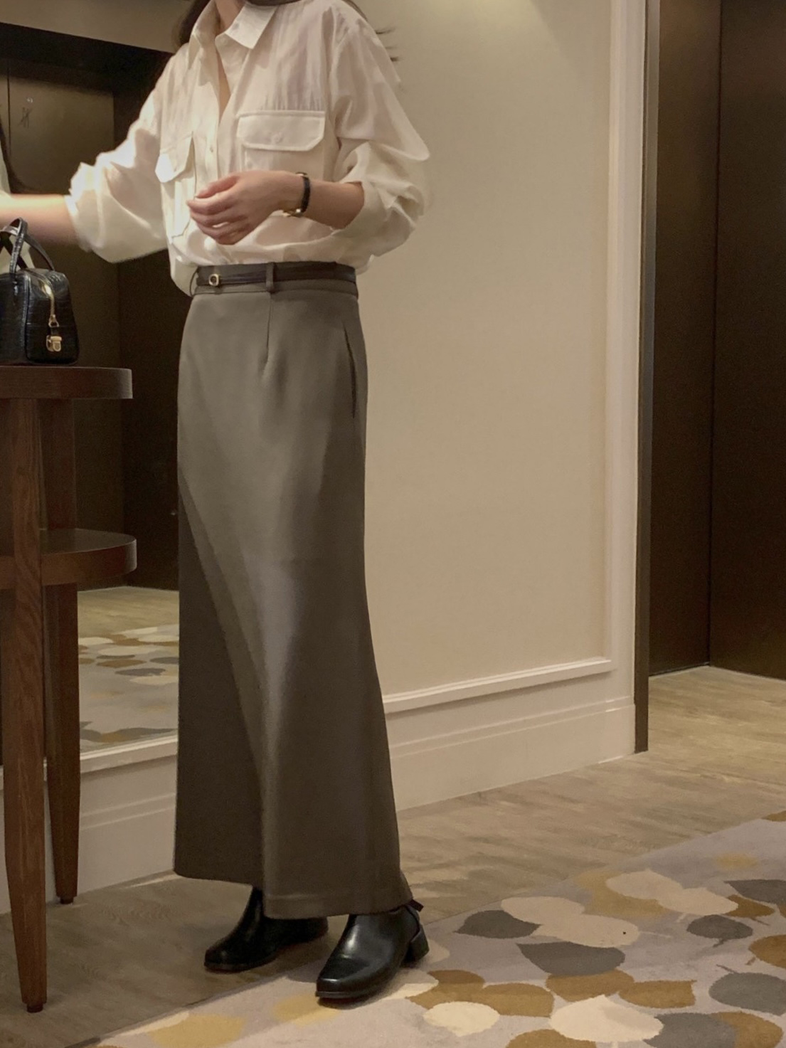 포드 고밀도 하이웨스트 H라인 가을 투피스 맥시 롱 스커트 | 2color