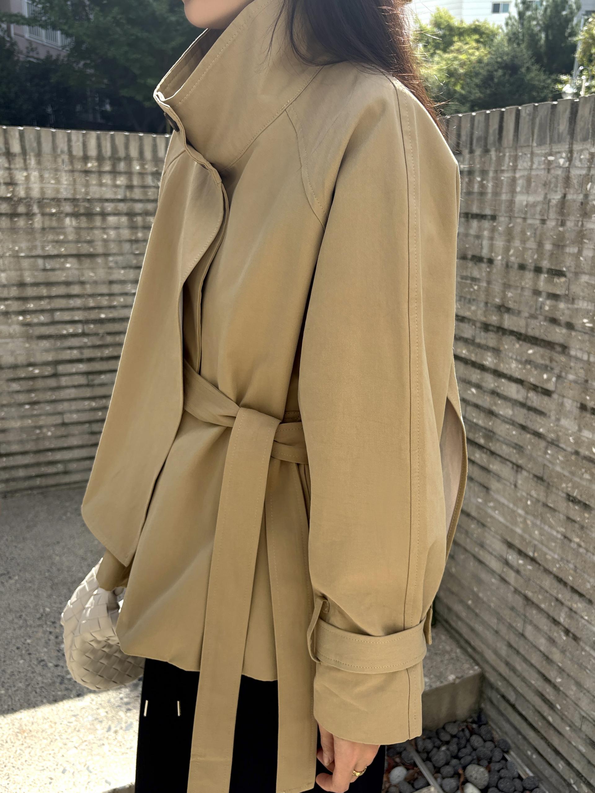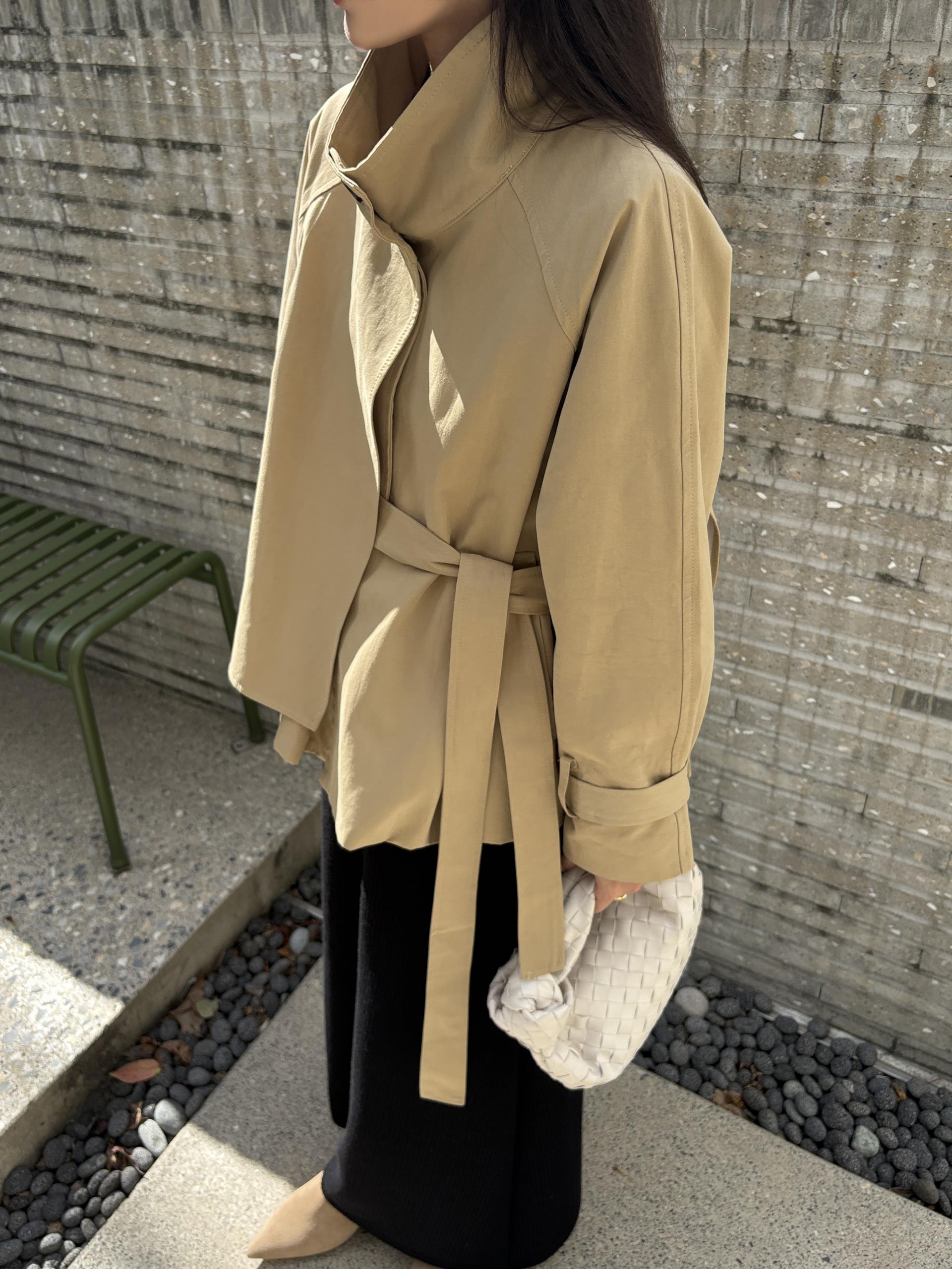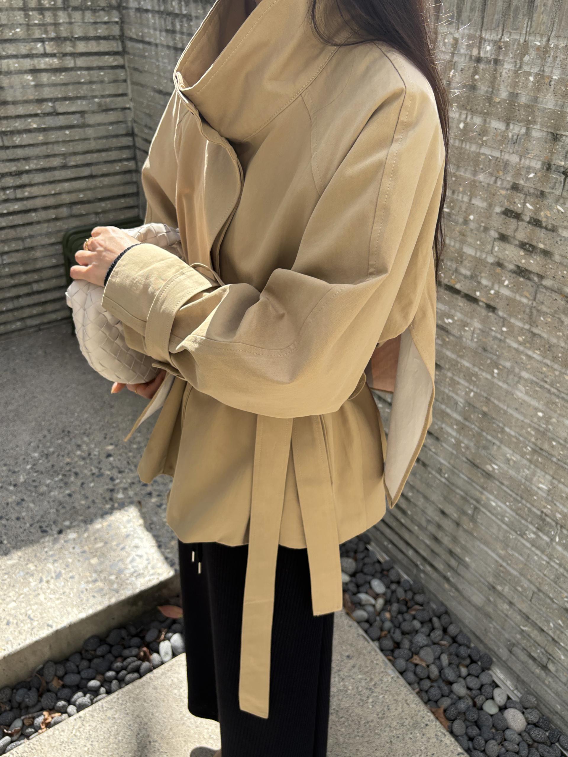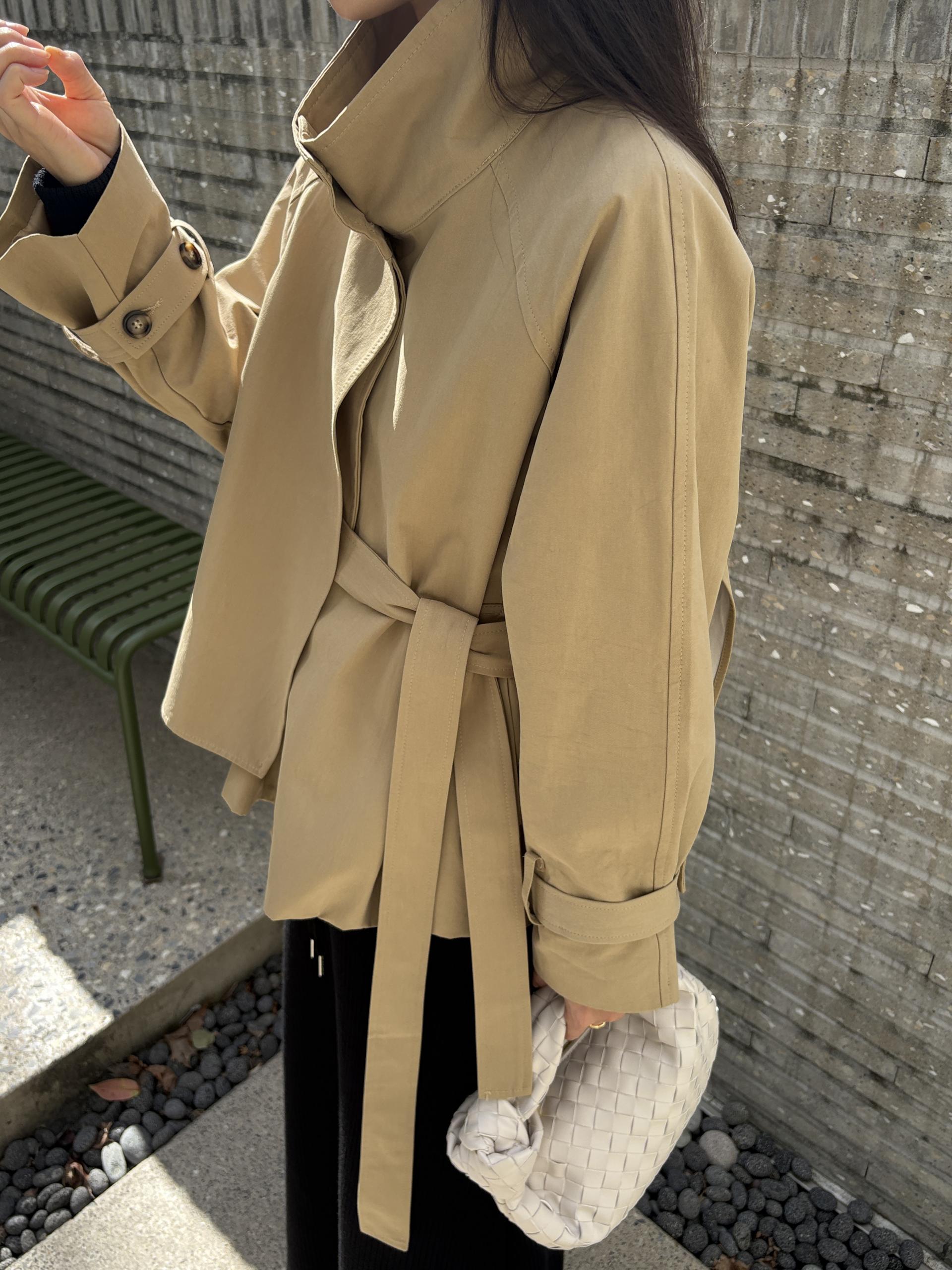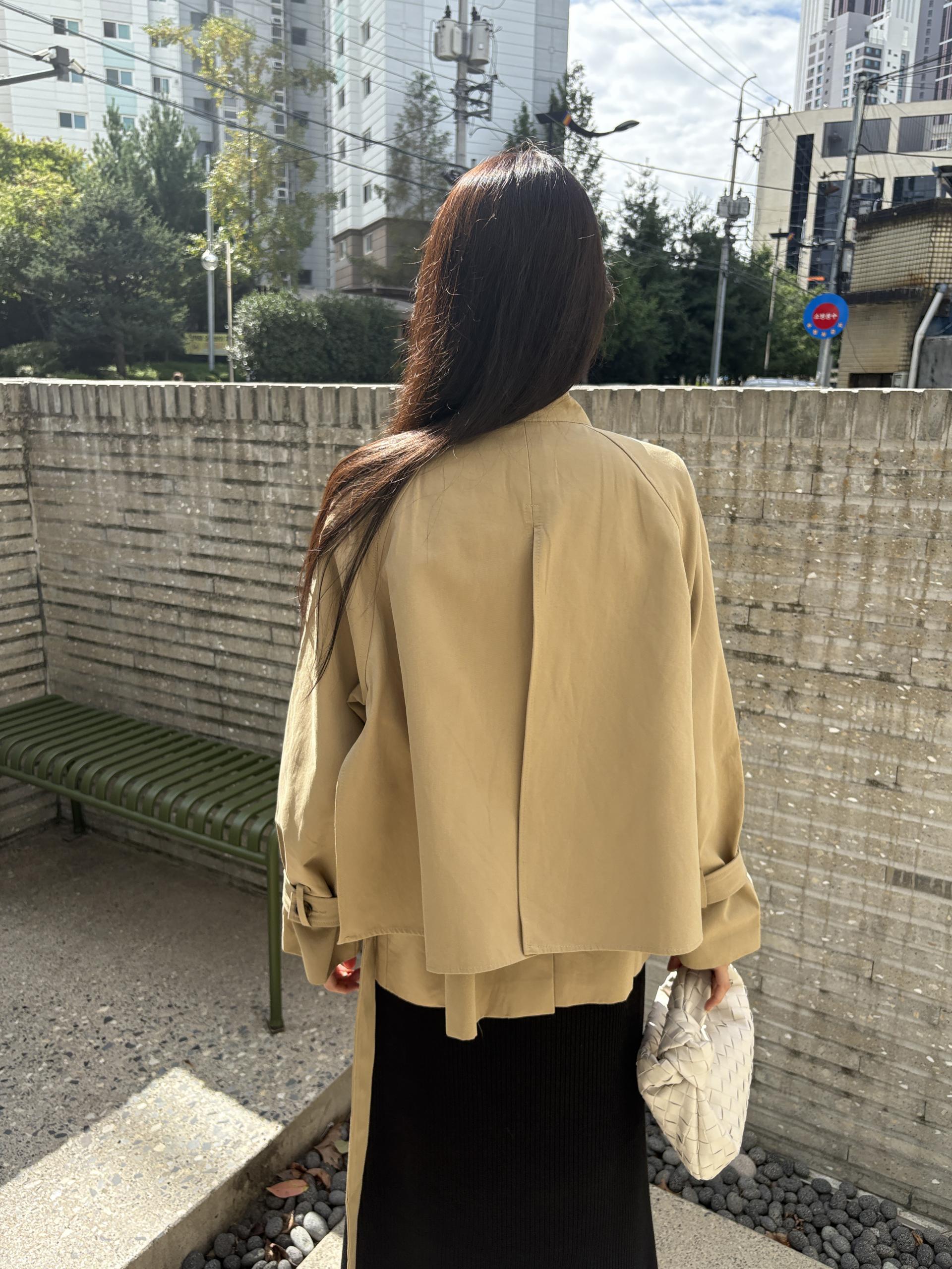트렌디한 무드와 클래식한 감성을 동시에 담은 트렌치 숏 코트입니다.