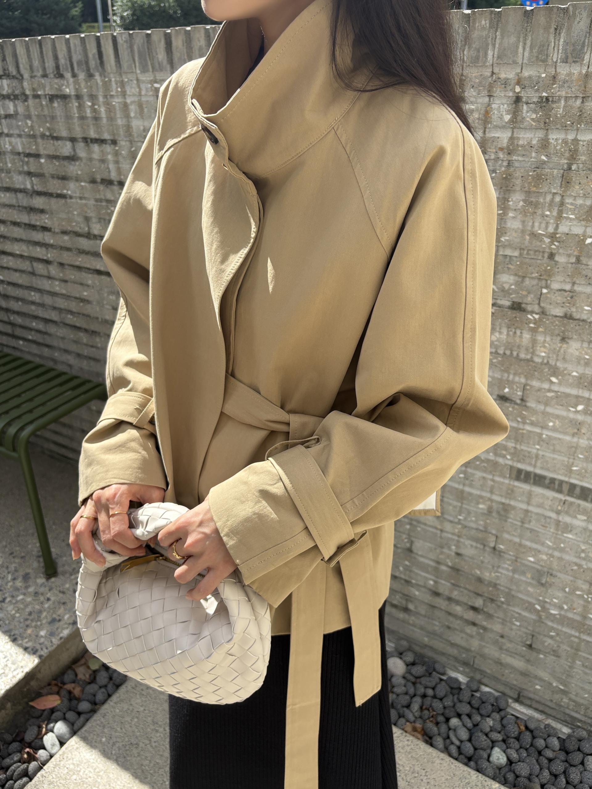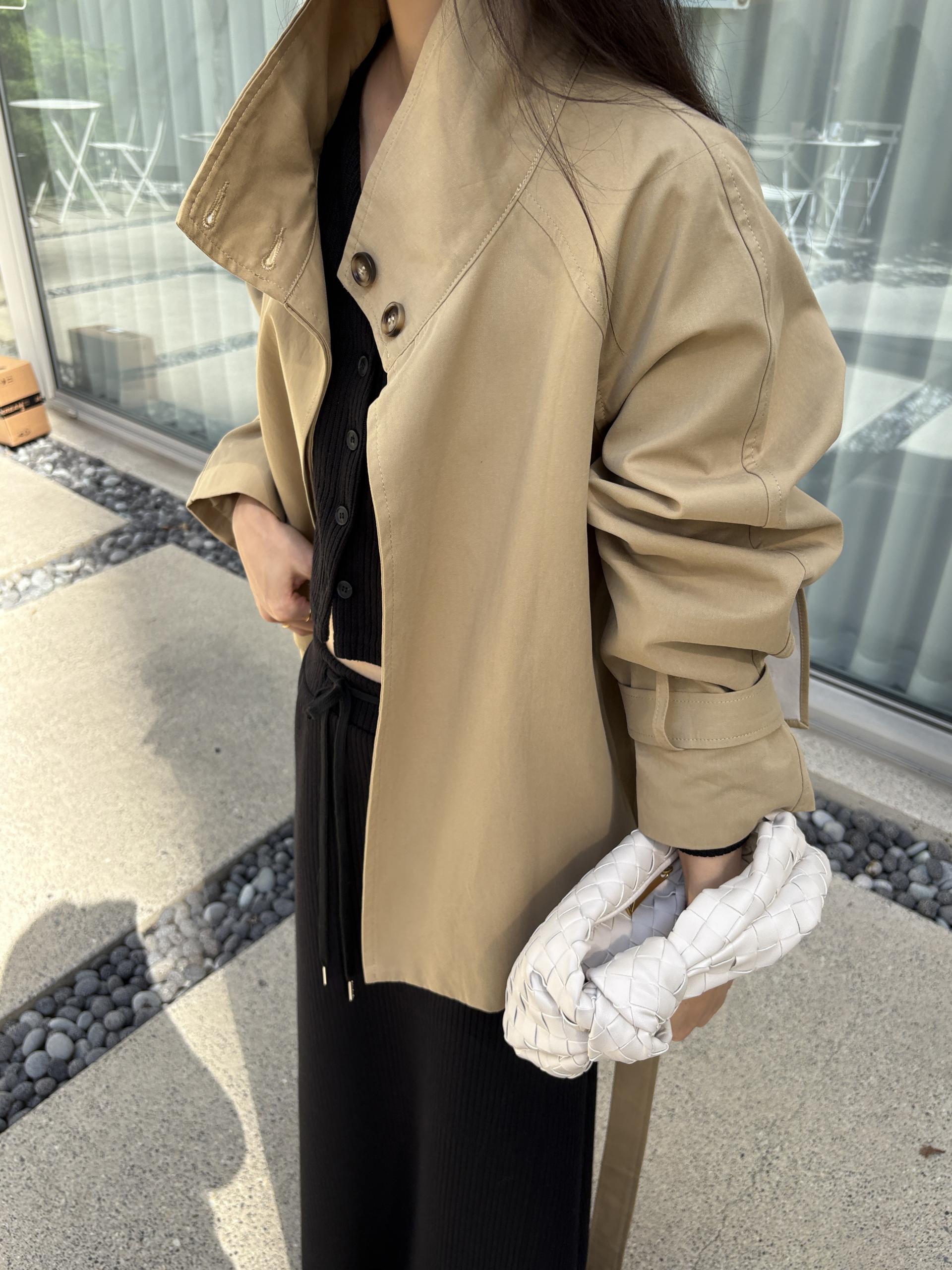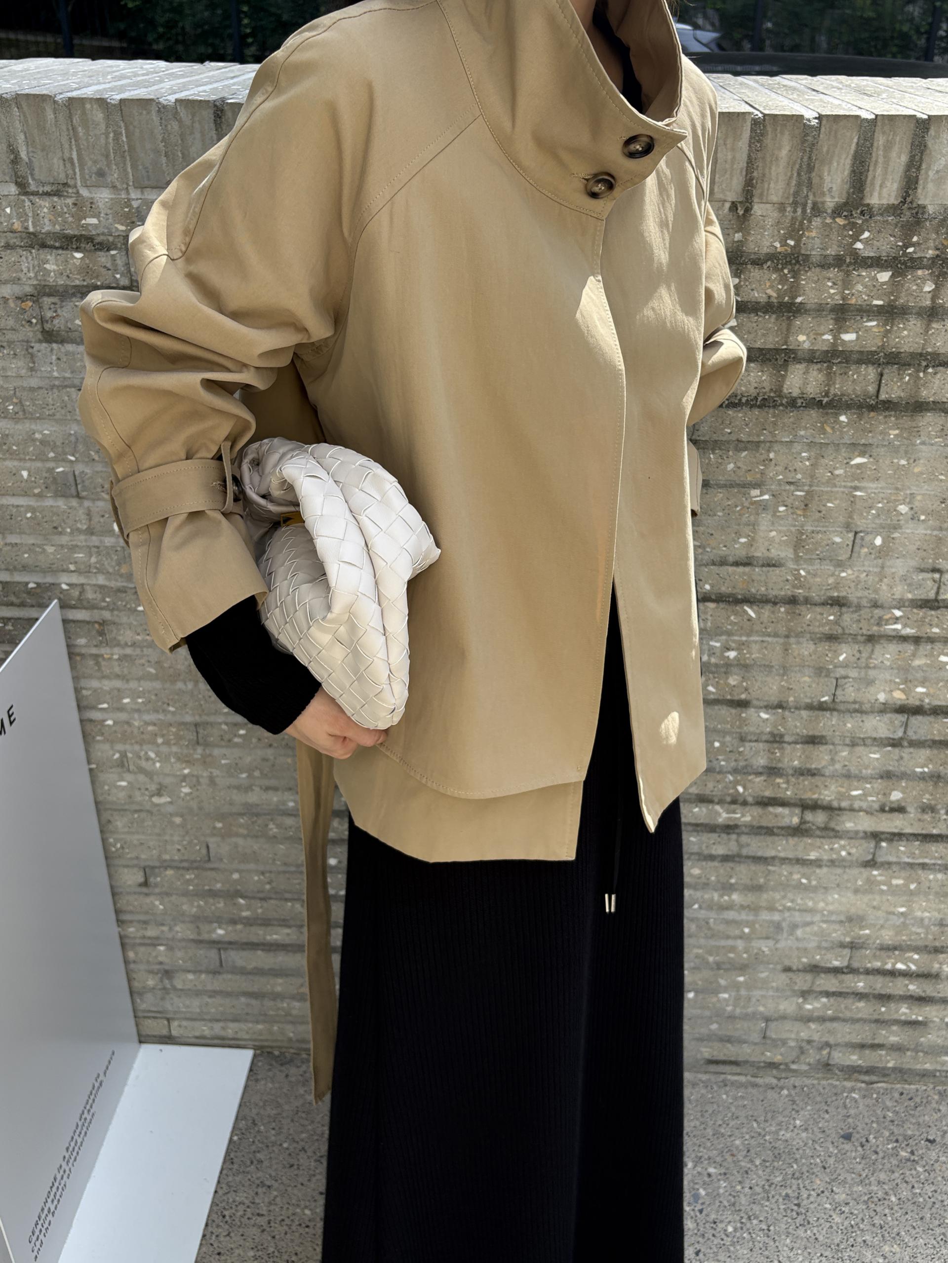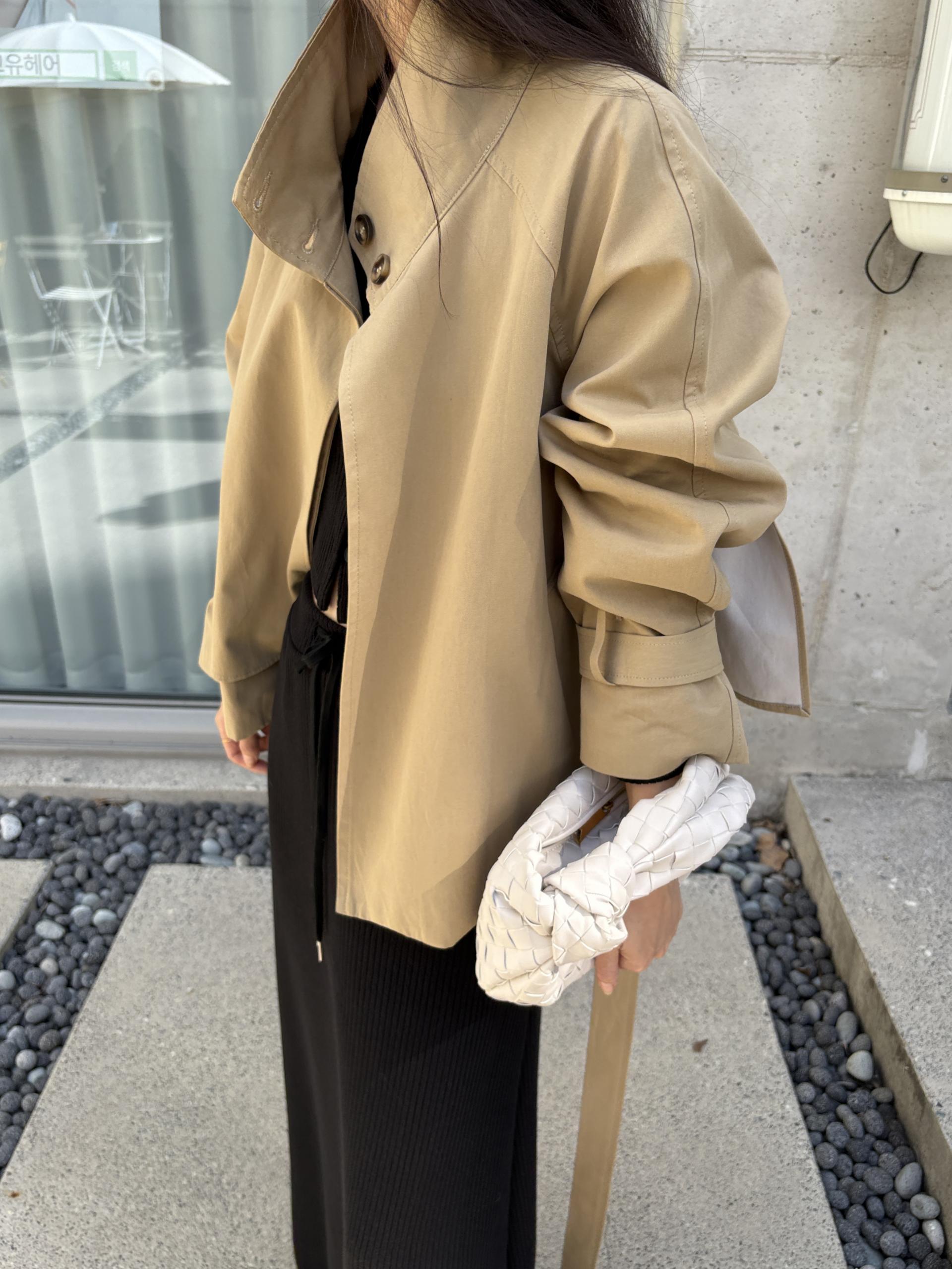 트렌디한 무드와 클래식한 감성을 동시에 담은 트렌치 숏 코트입니다.