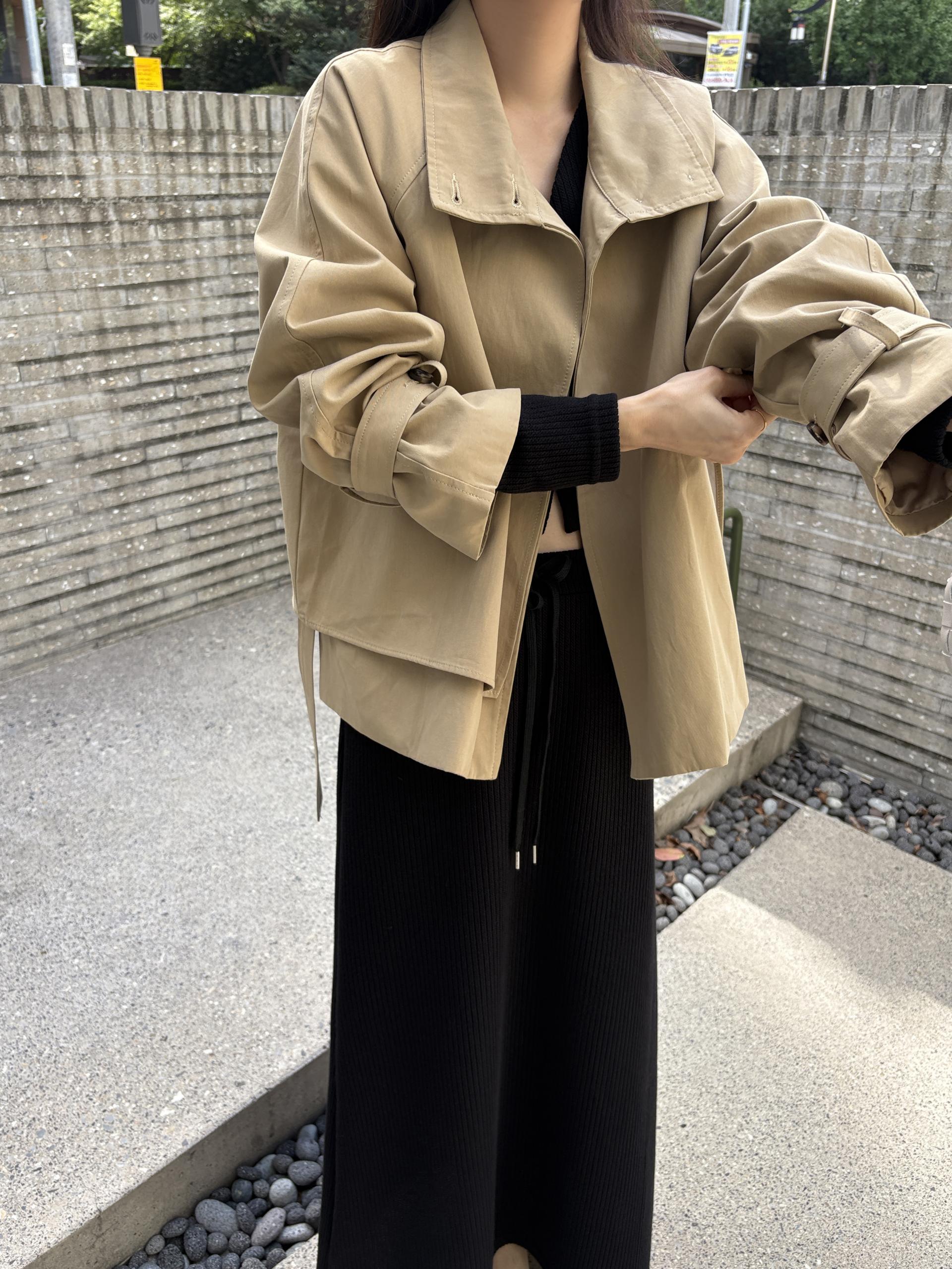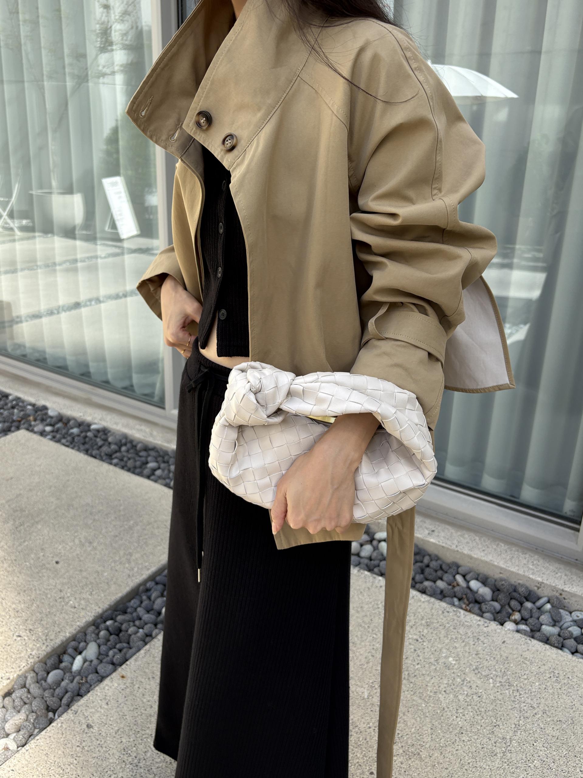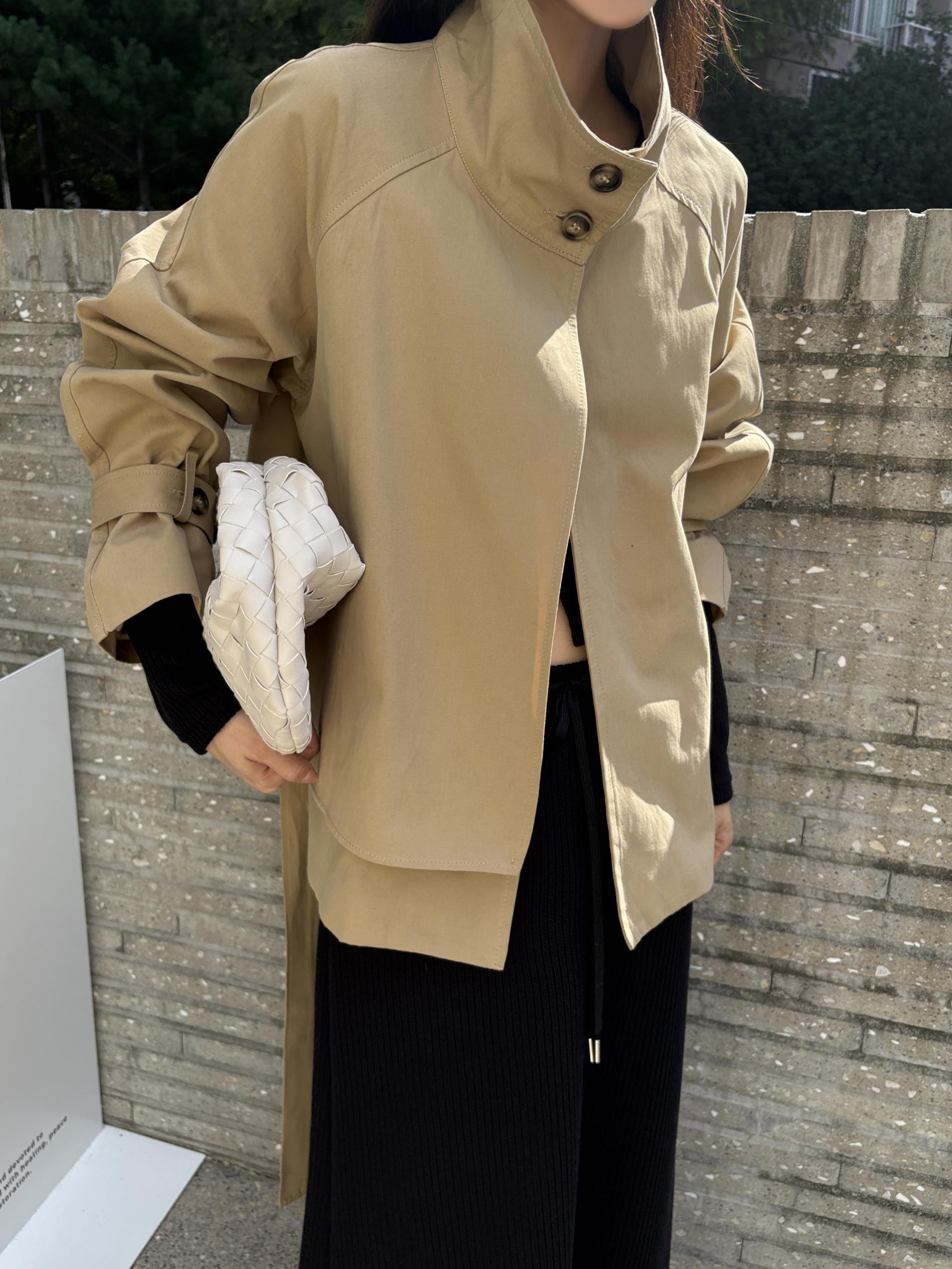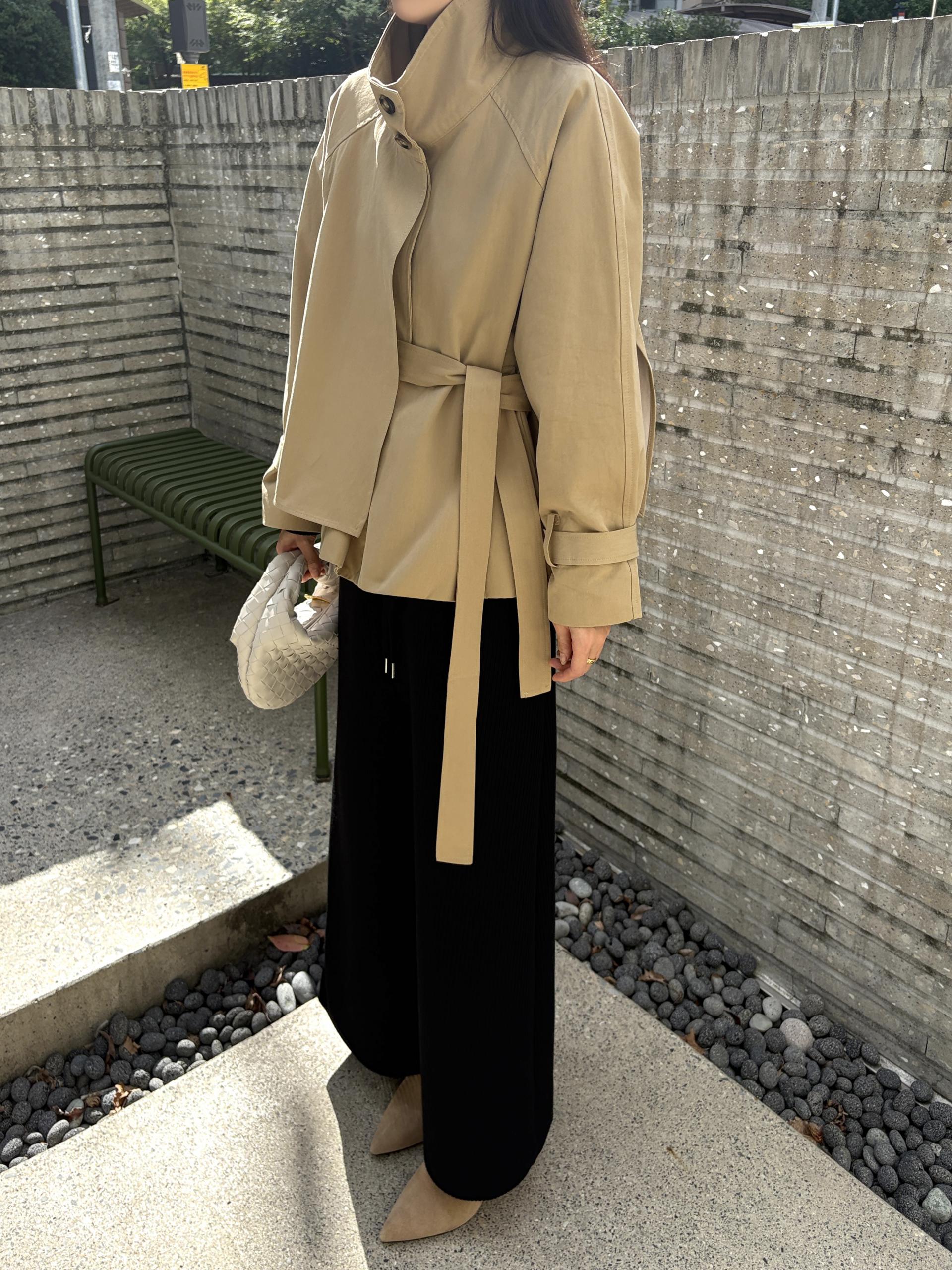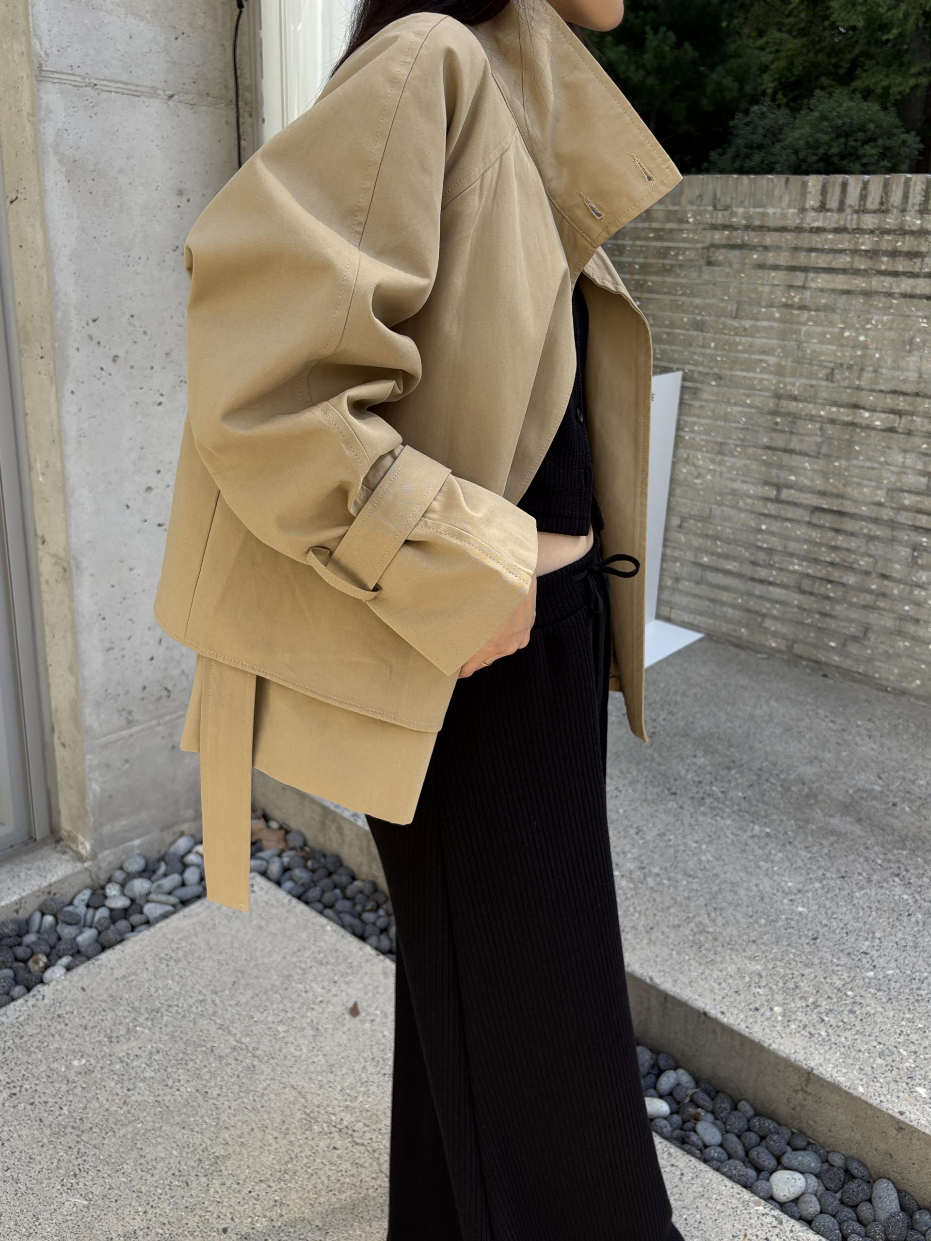트렌디한 무드와 클래식한 감성을 동시에 담은 트렌치 숏 코트입니다.