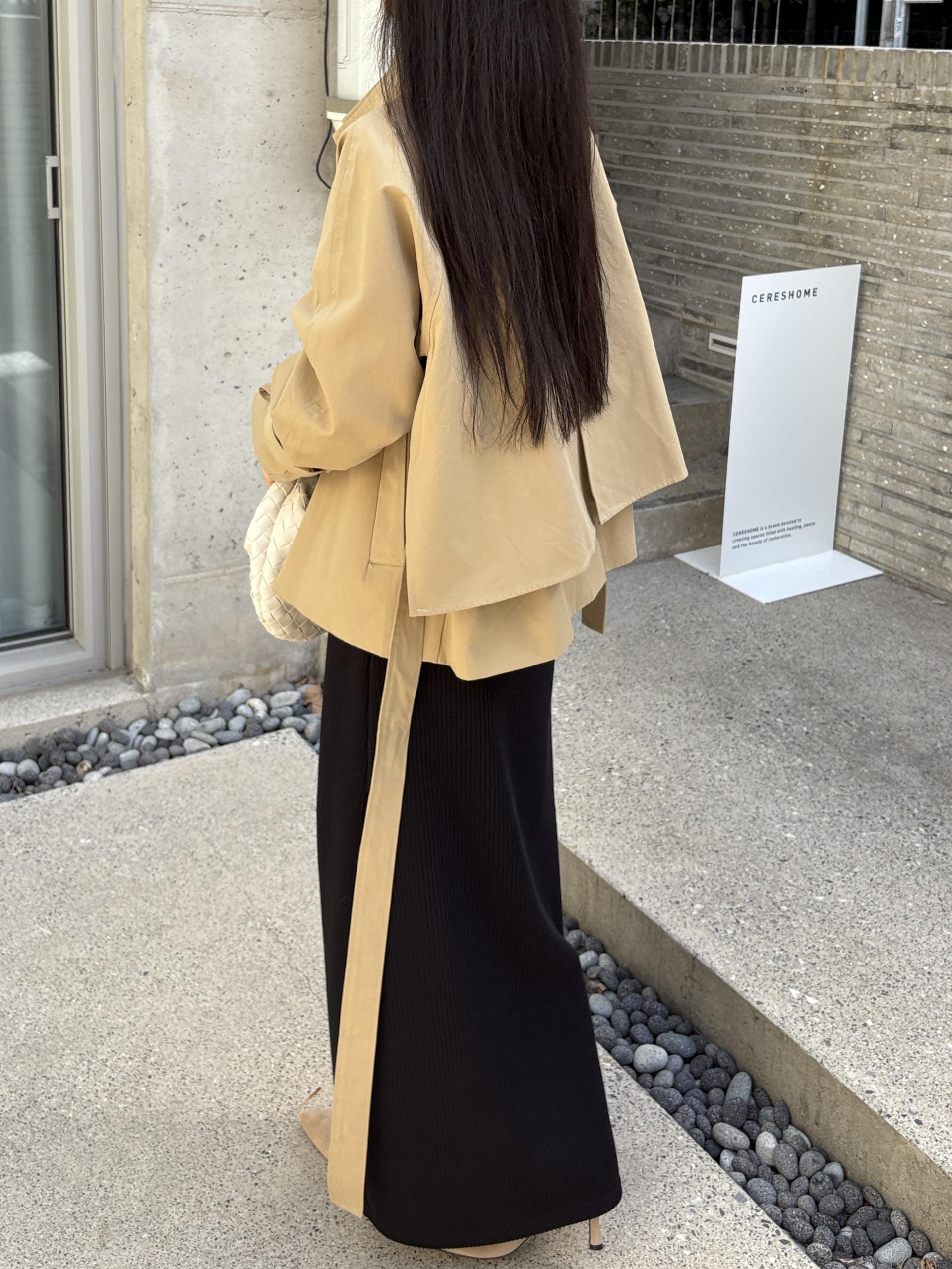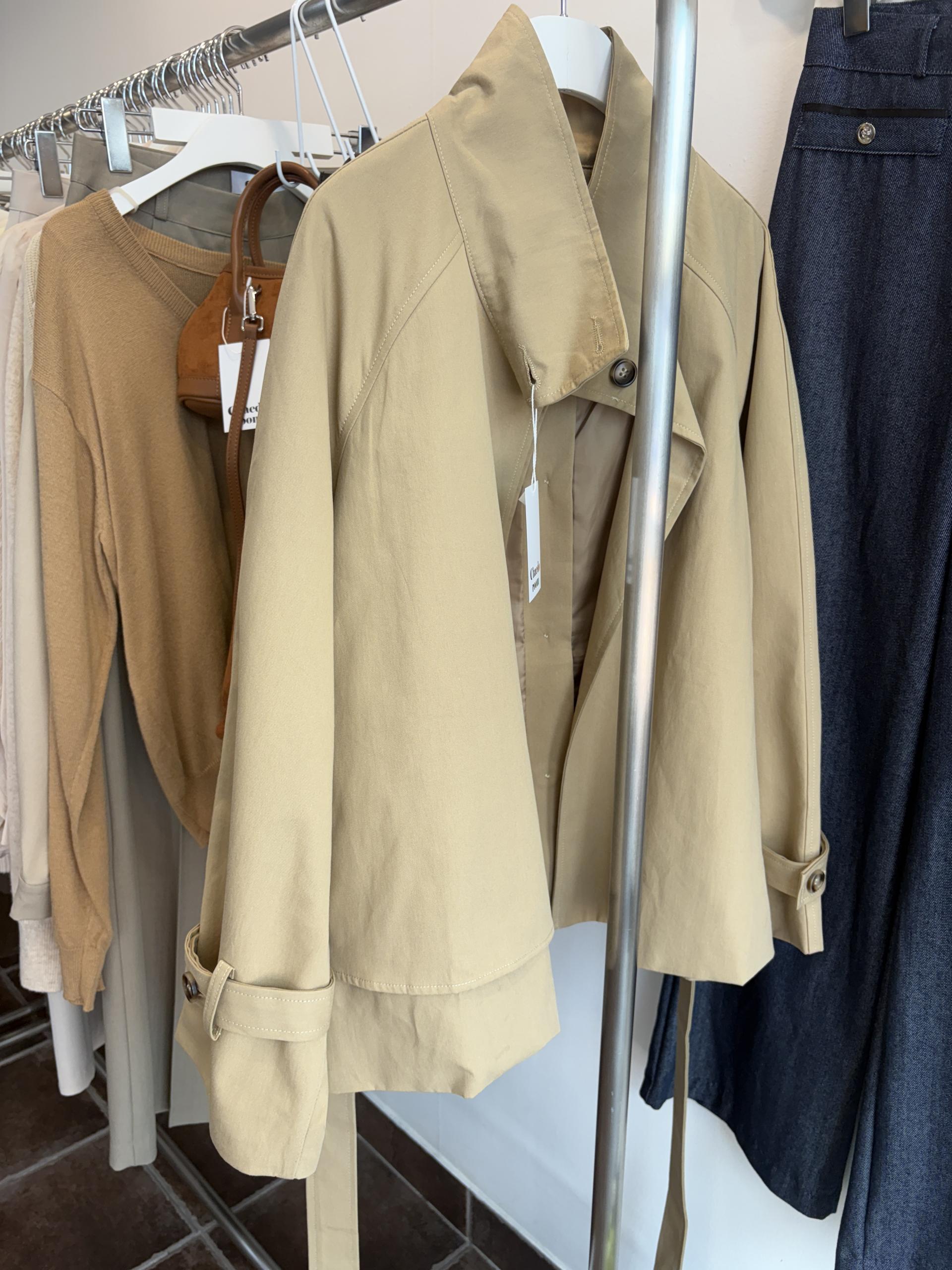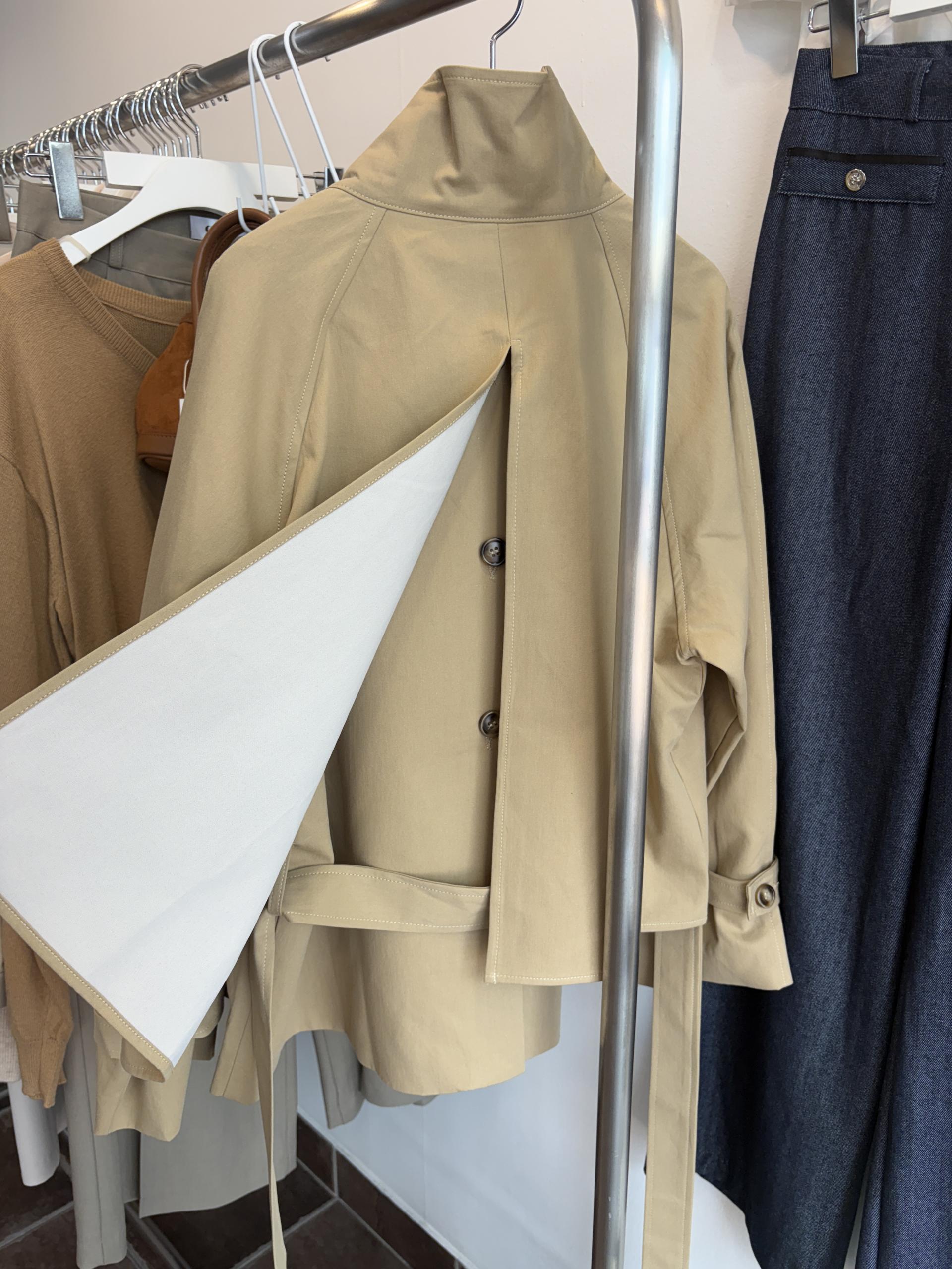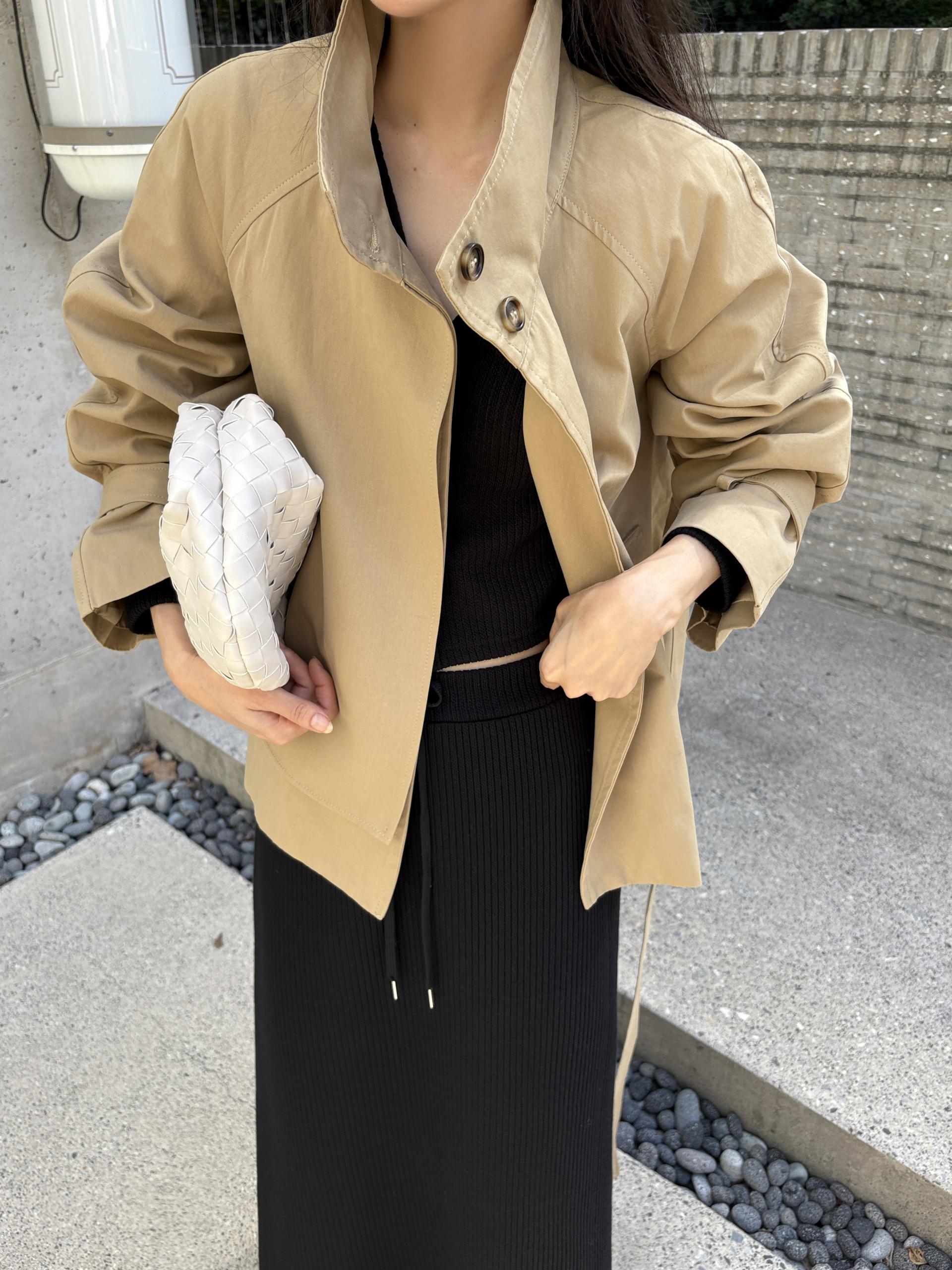 트렌디한 무드와 클래식한 감성을 동시에 담은 트렌치 숏 코트입니다.