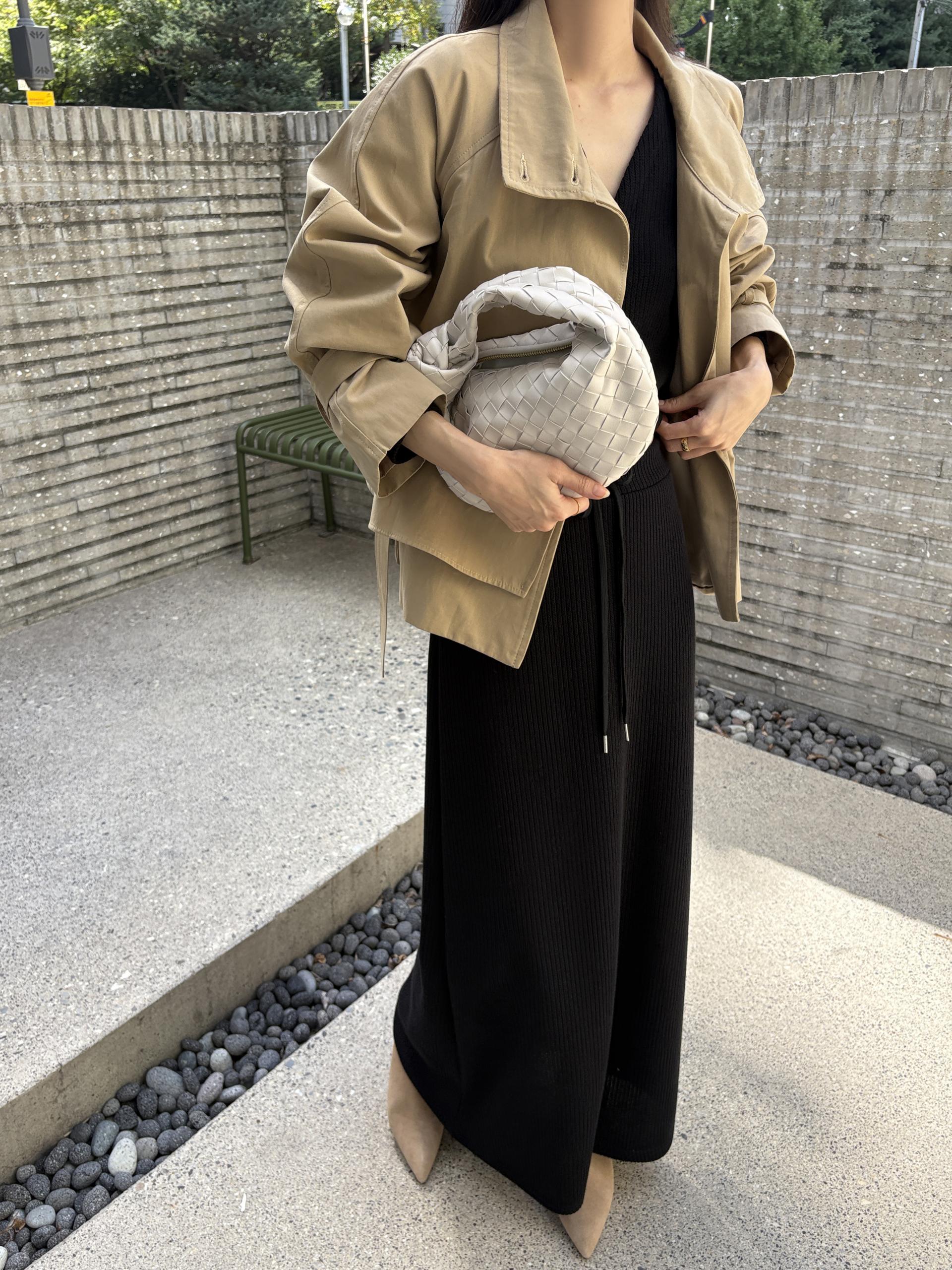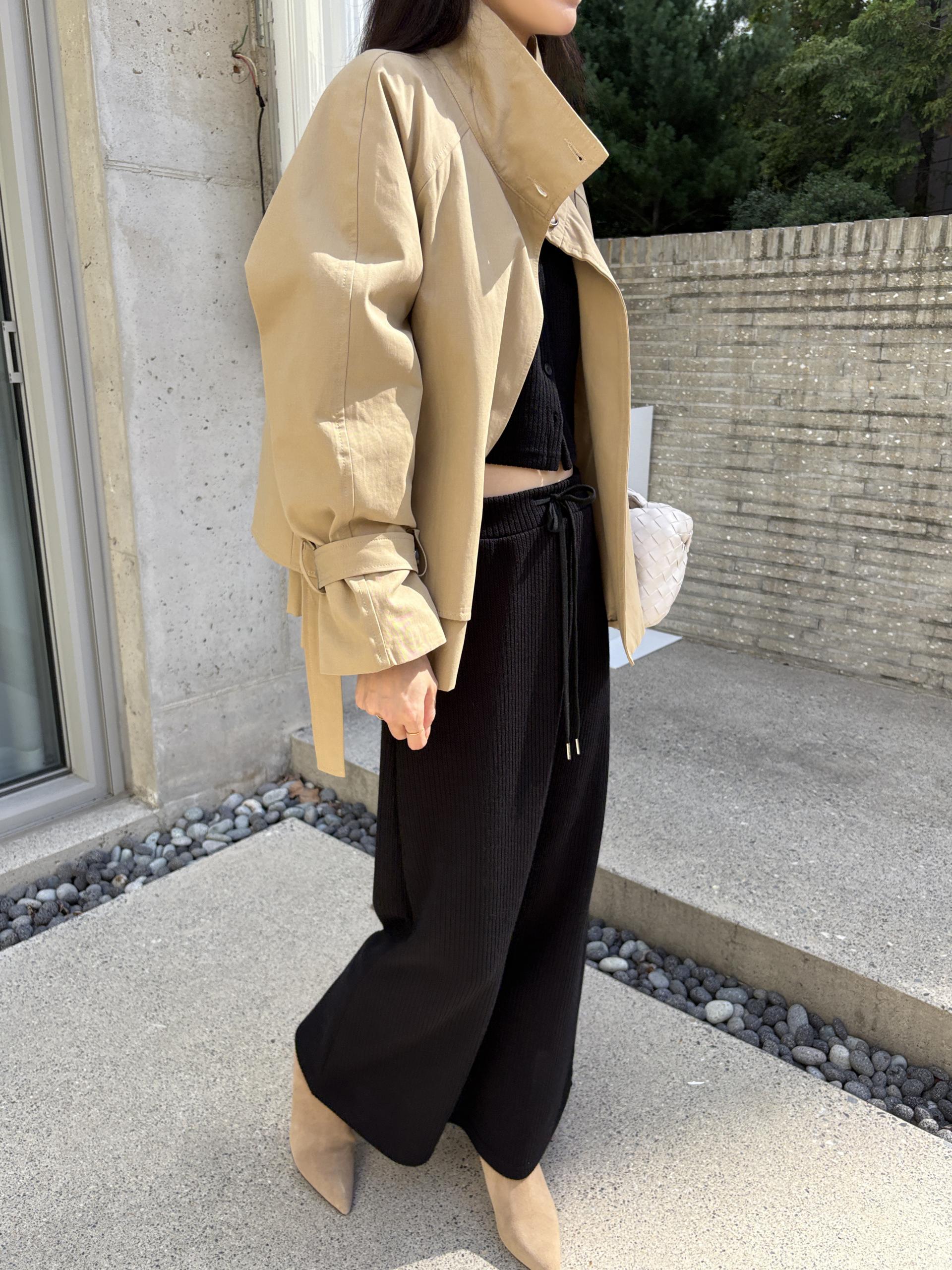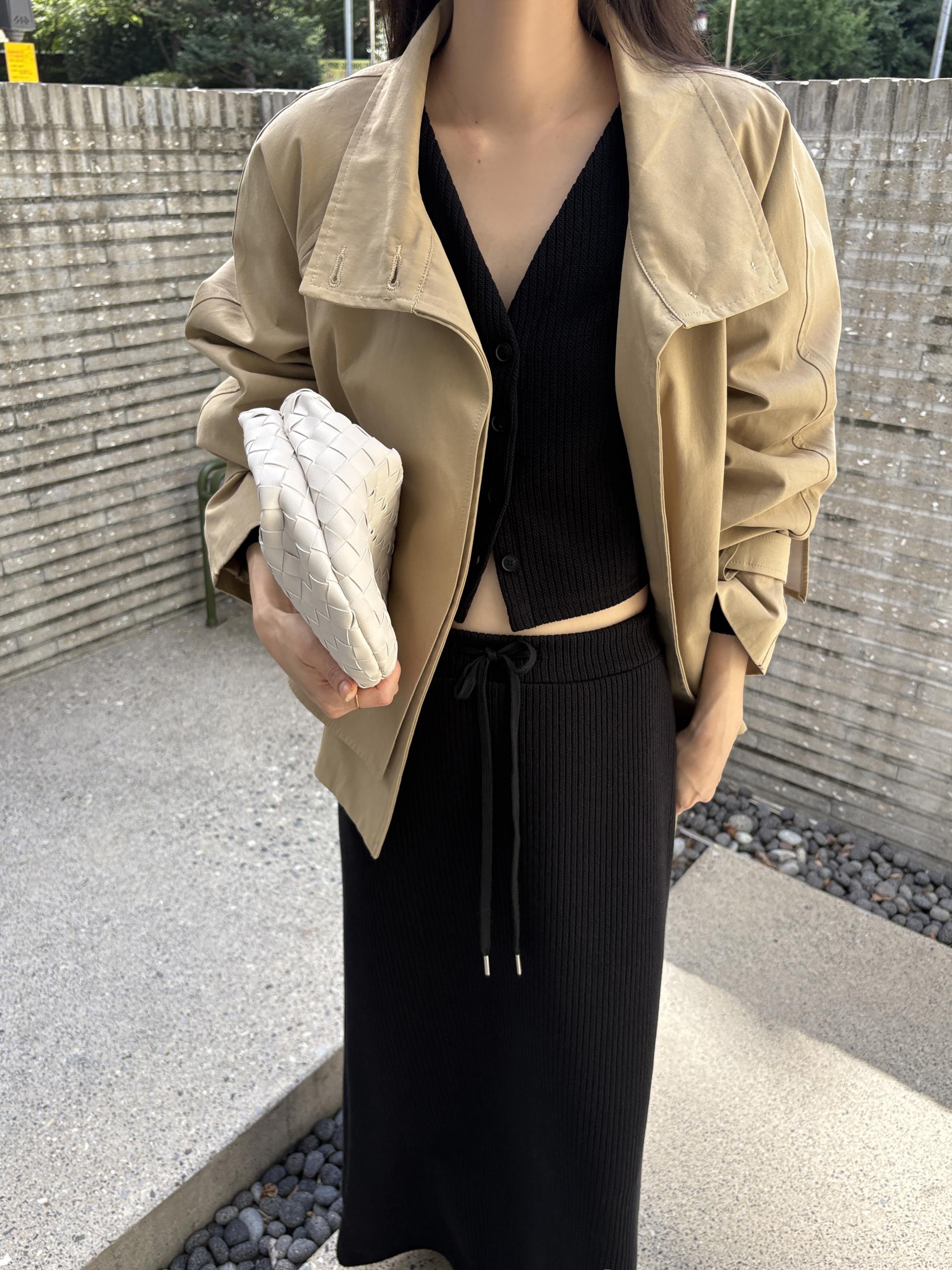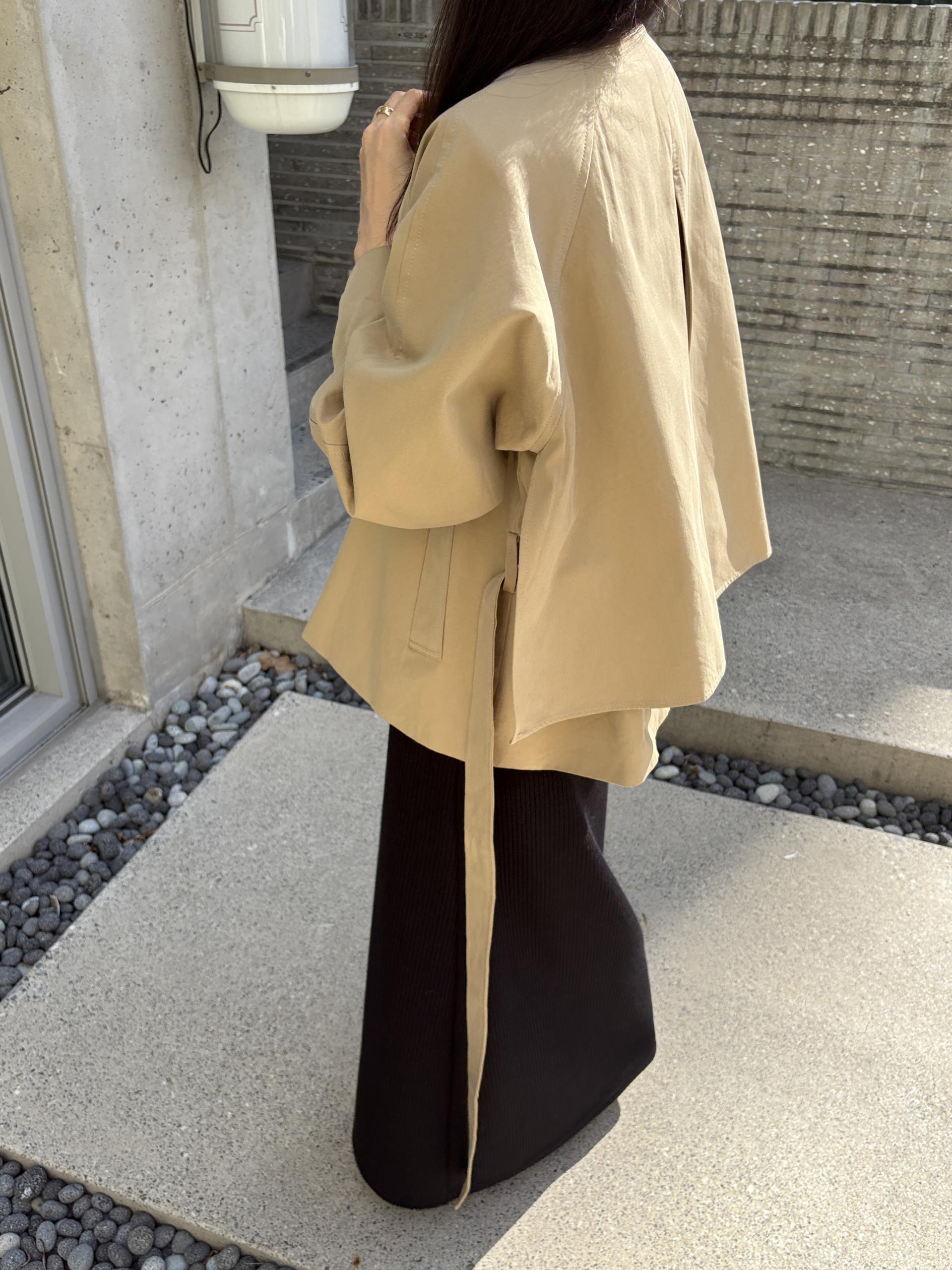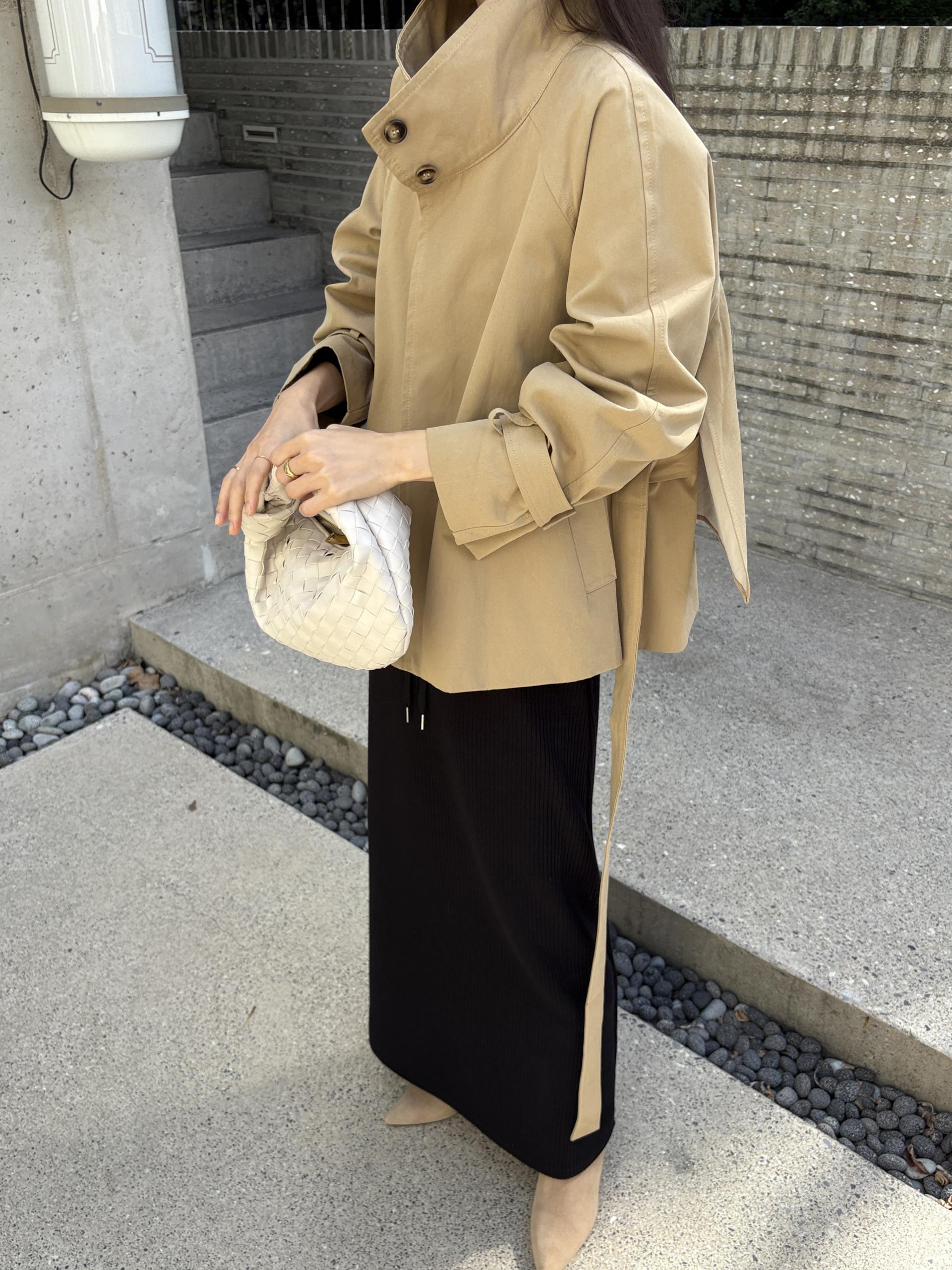트렌디한 무드와 클래식한 감성을 동시에 담은 트렌치 숏 코트입니다.