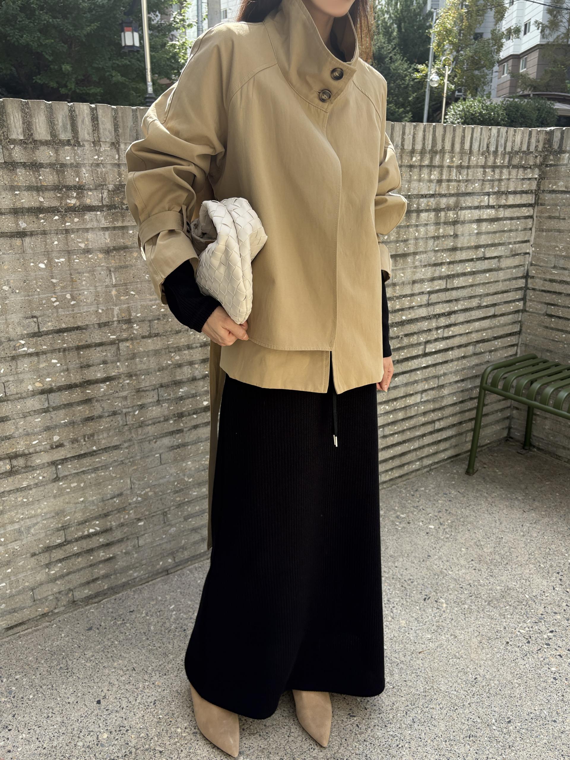 하이넥 카라로 툭 걸치기만 해도 세련된 분위기가 연출되고, 카라를 눕혀서 착용할 수도 있어 활용도가 아주 좋습니다.