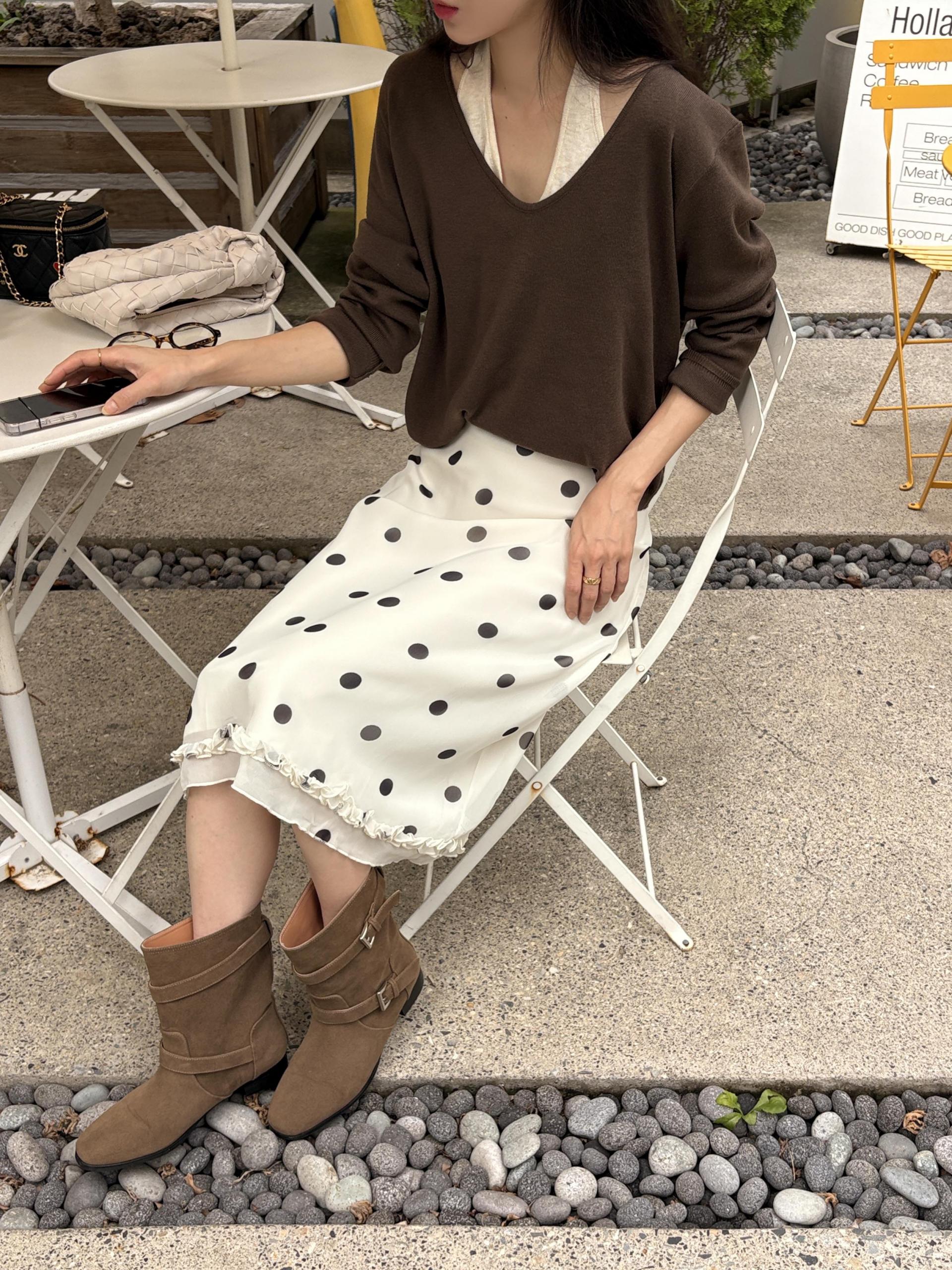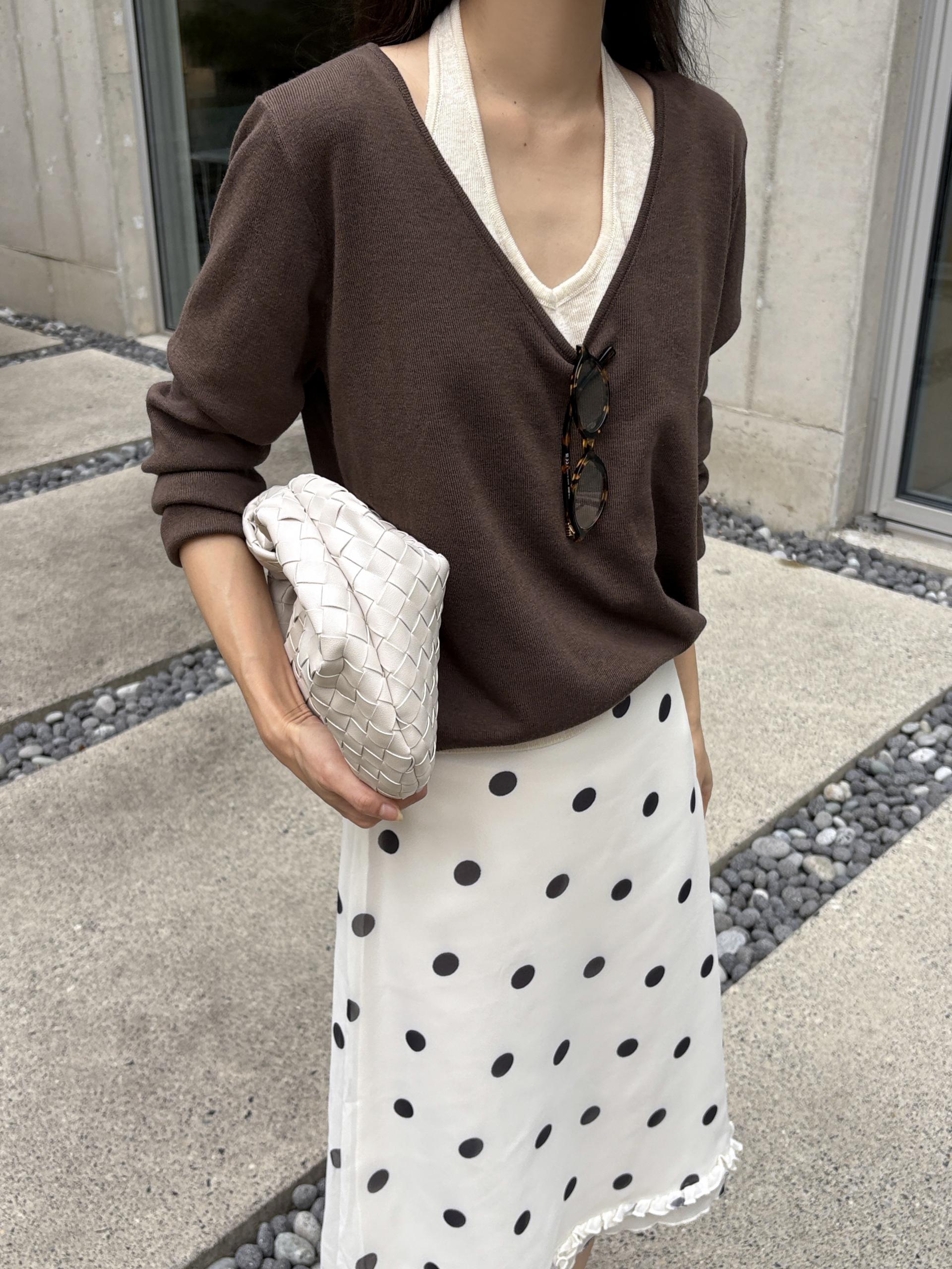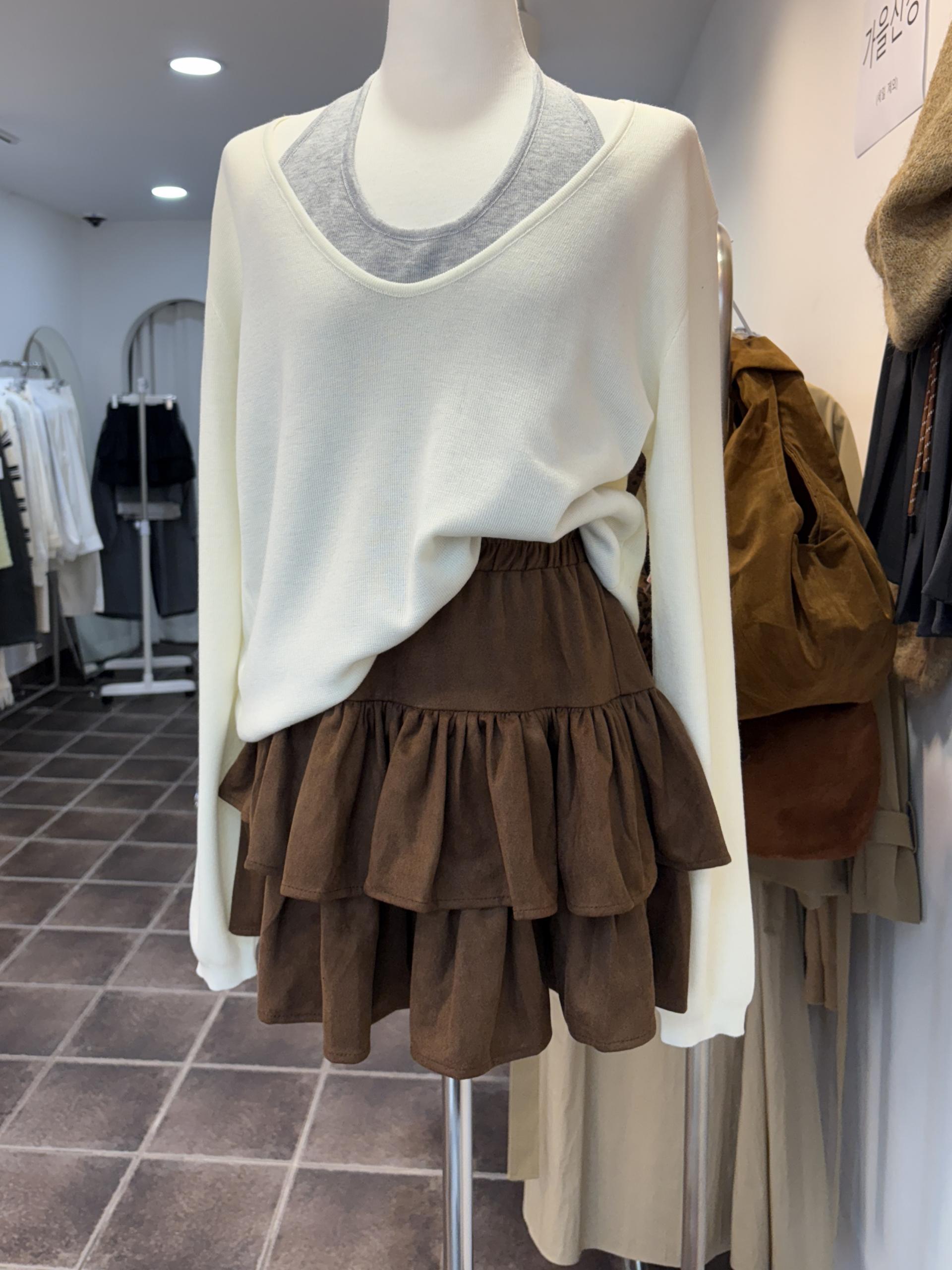 언더웨어 위에 단독 착용해도 부드럽고, 배색과 레이어드 디테일로 하나만 입어도 완성도 높은 코디를 할 수 있어 추천해요. 울 혼방이라 겨울에는 아우터 속 이너 아이템으로도 좋습니다. 지금부터 겨울, 봄까지 길게 입으실 수 있어요.
