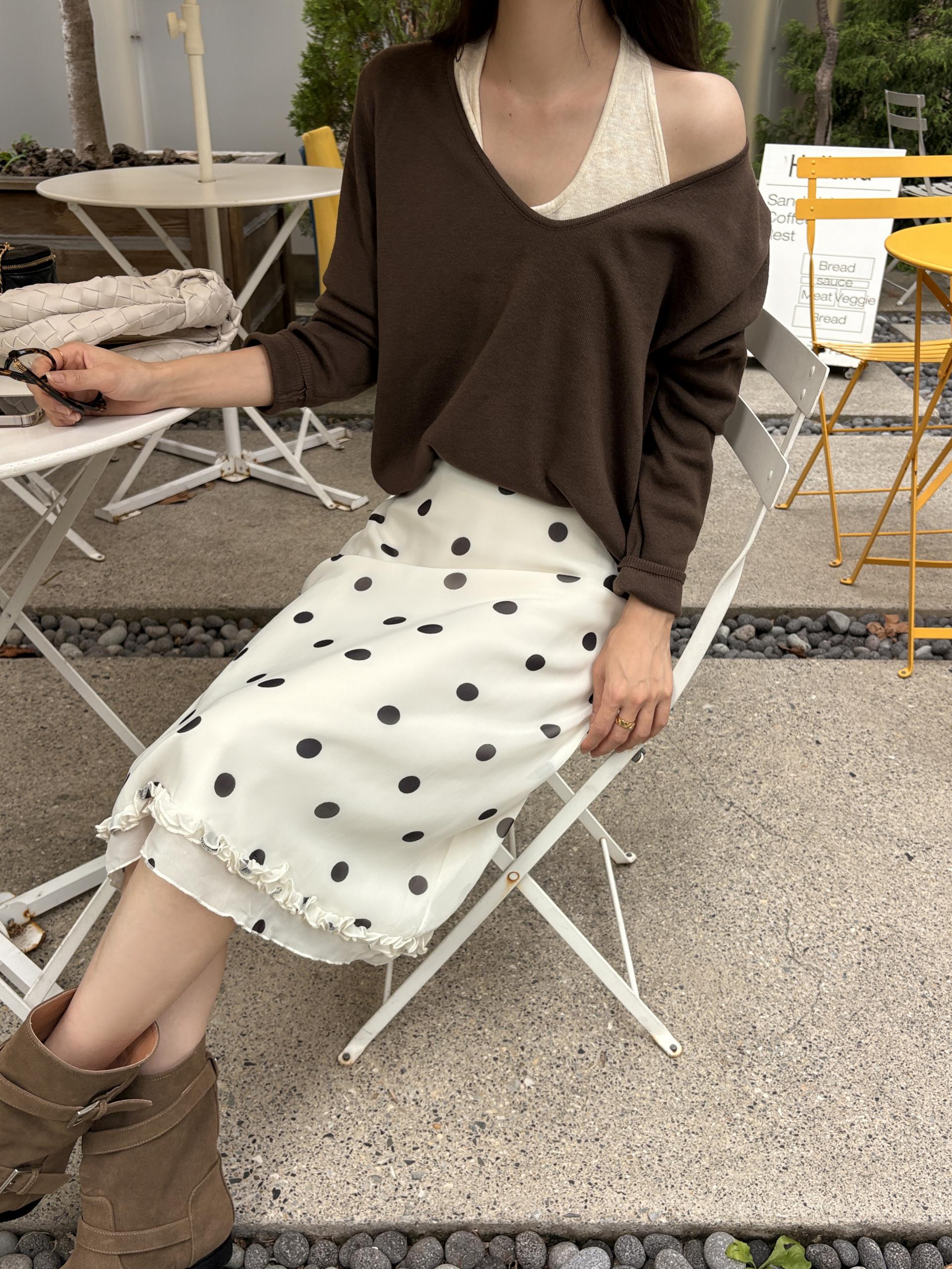 홀터넥이 승모를 커버하면서 넓은 브이넥이 여리여리한 느낌을 줘서 체형 커버에 너무 좋은 핏이에요.