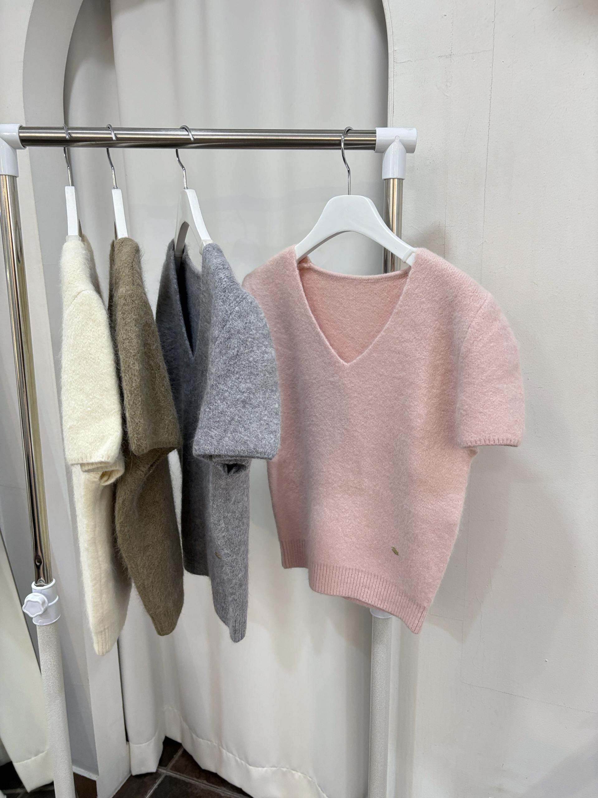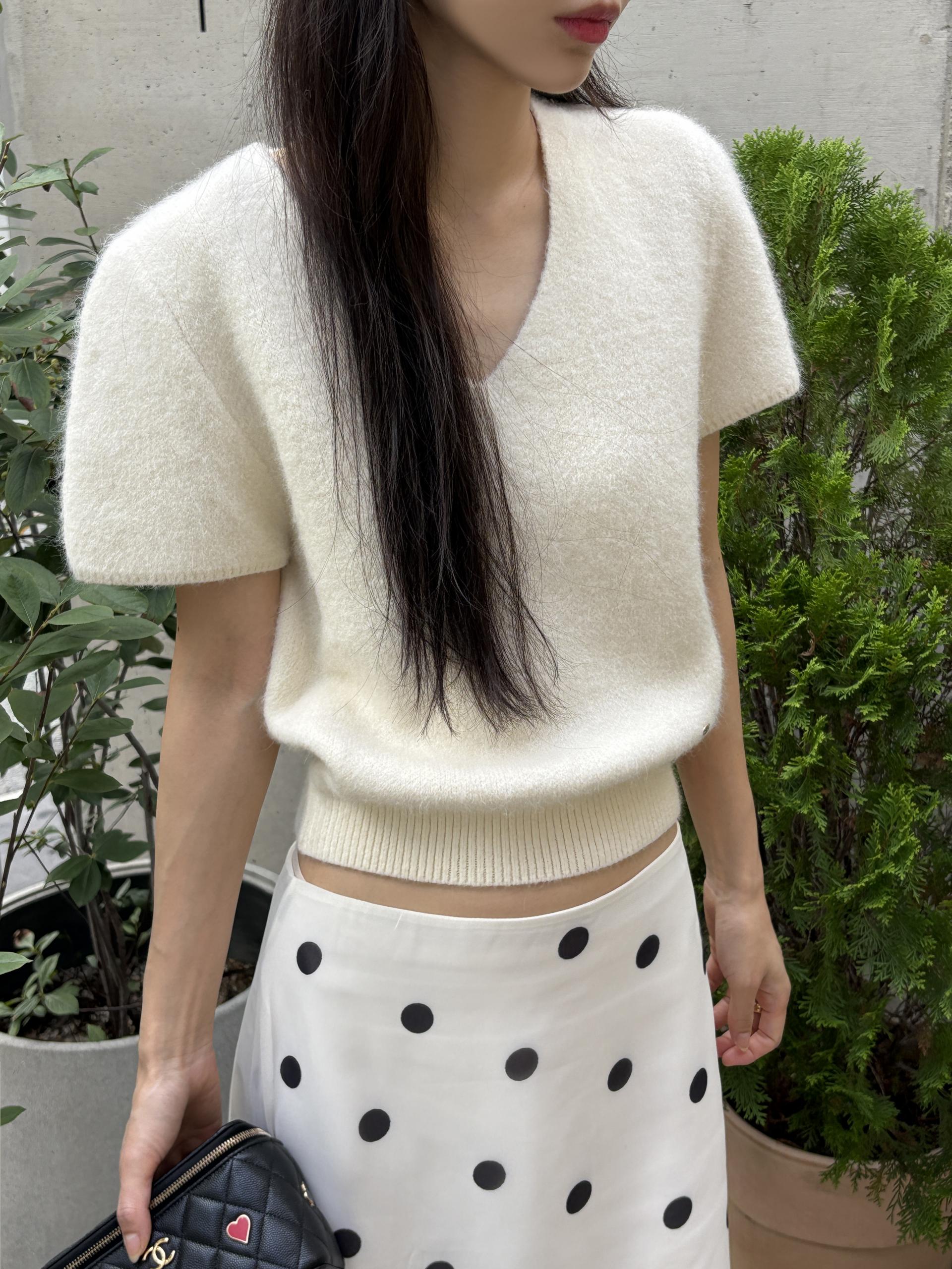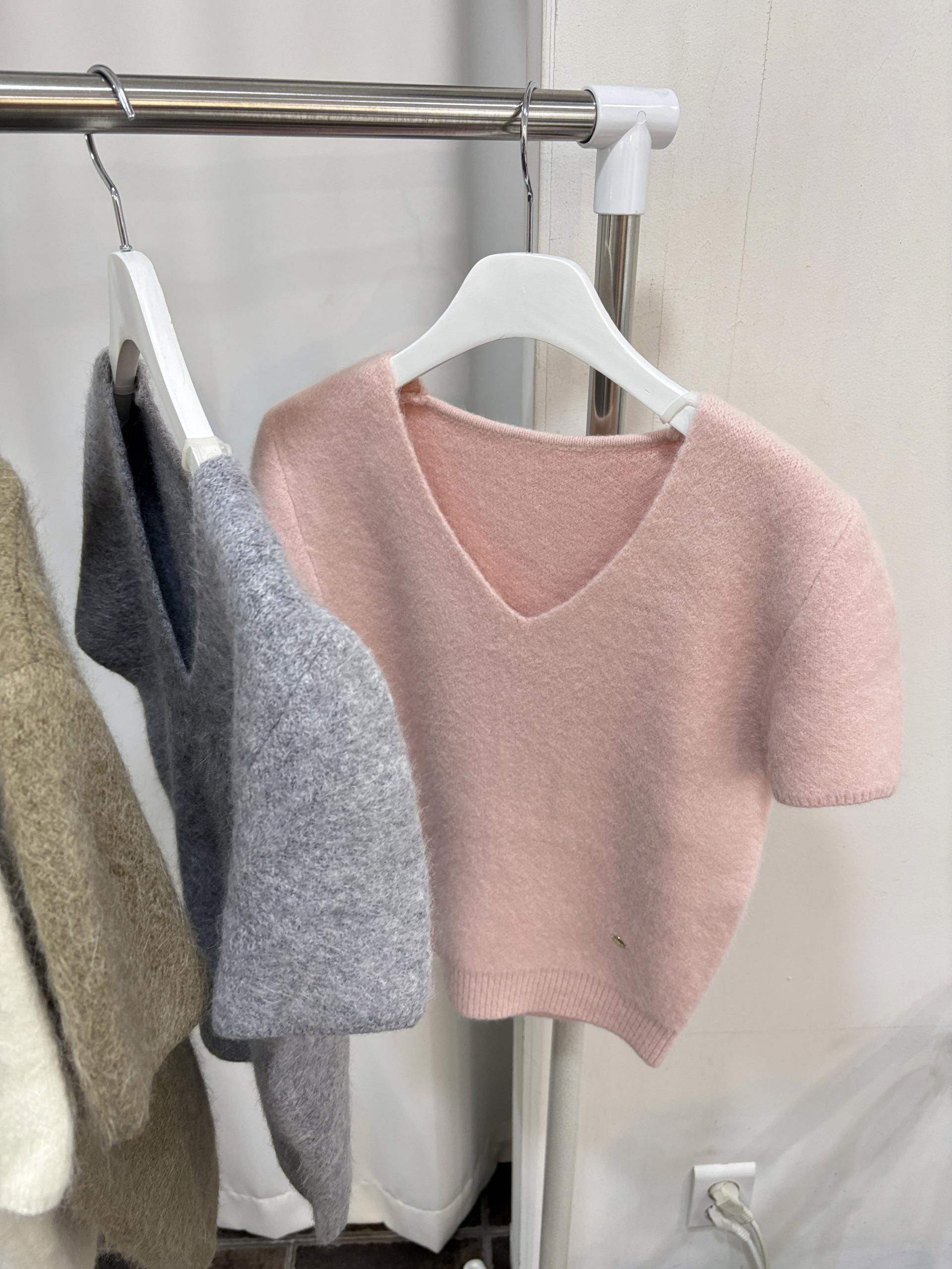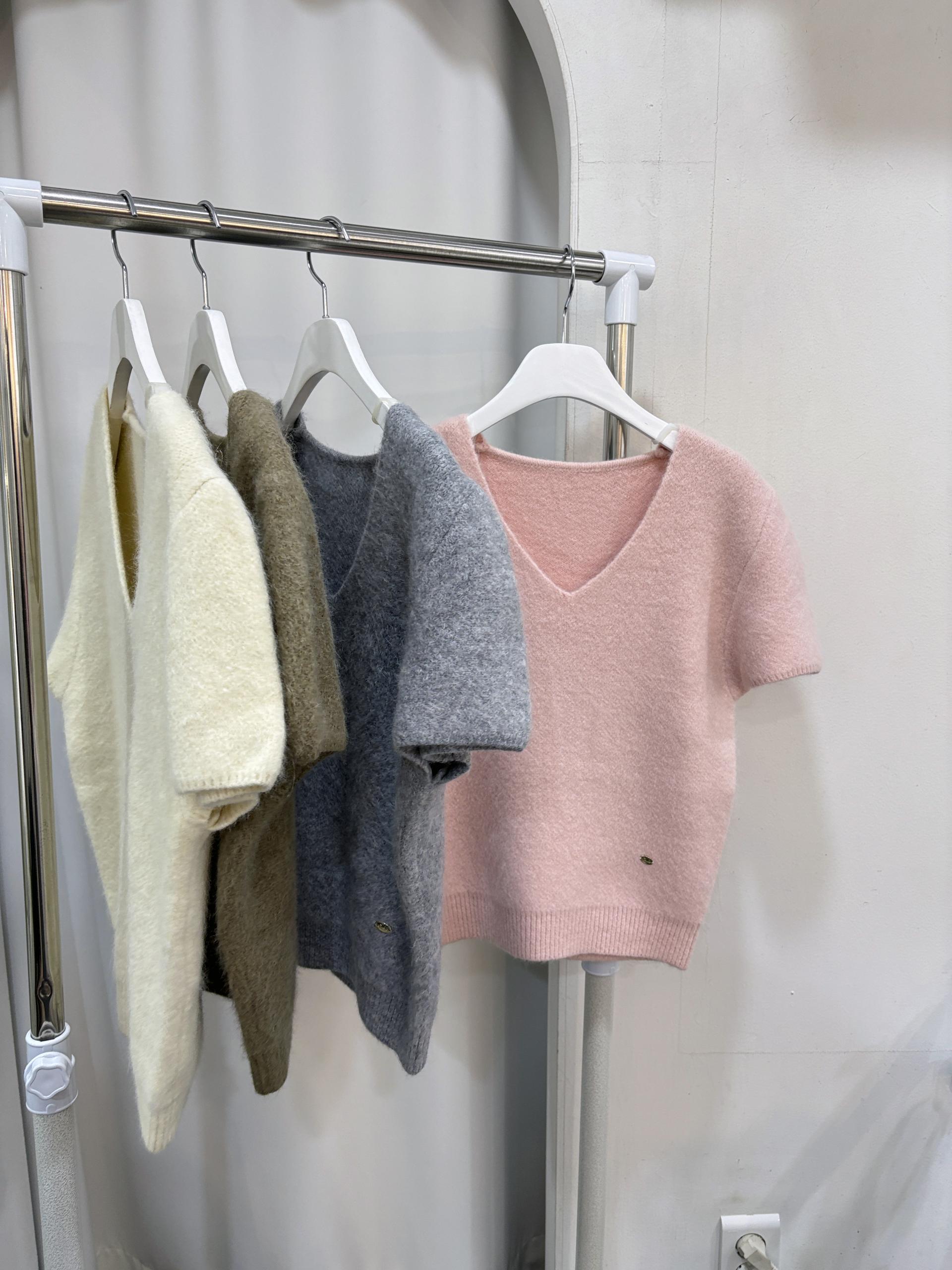 앙고라, 울 혼방 소재로 부드럽고 포근한 반팔 니트입니다.