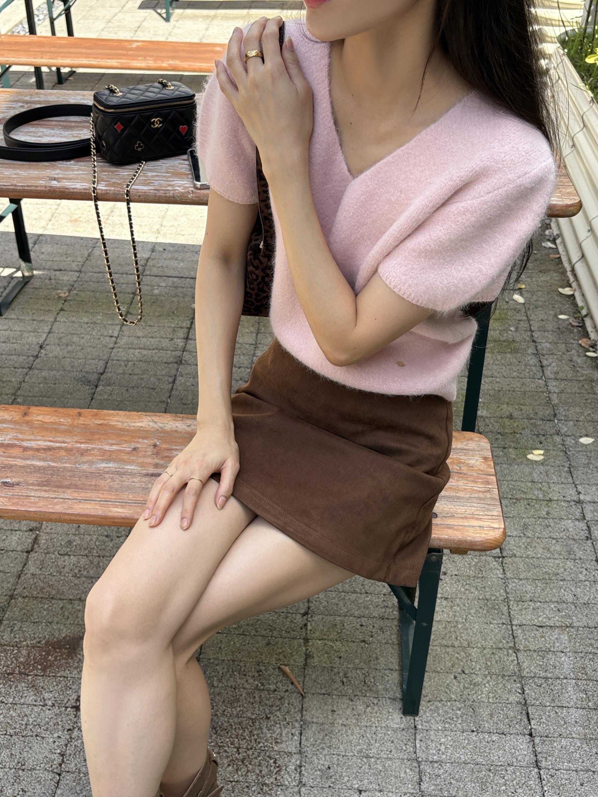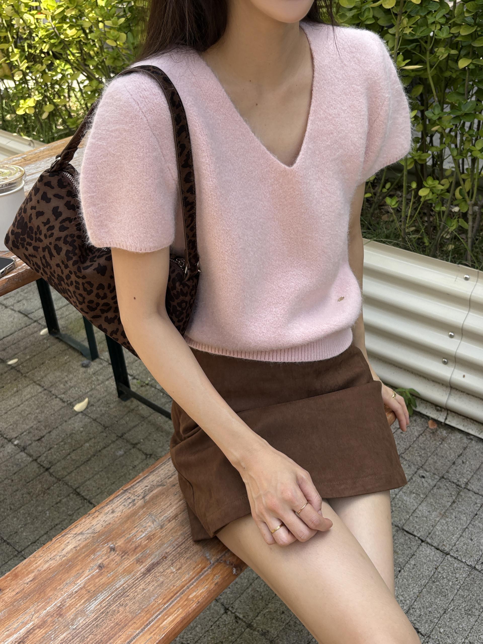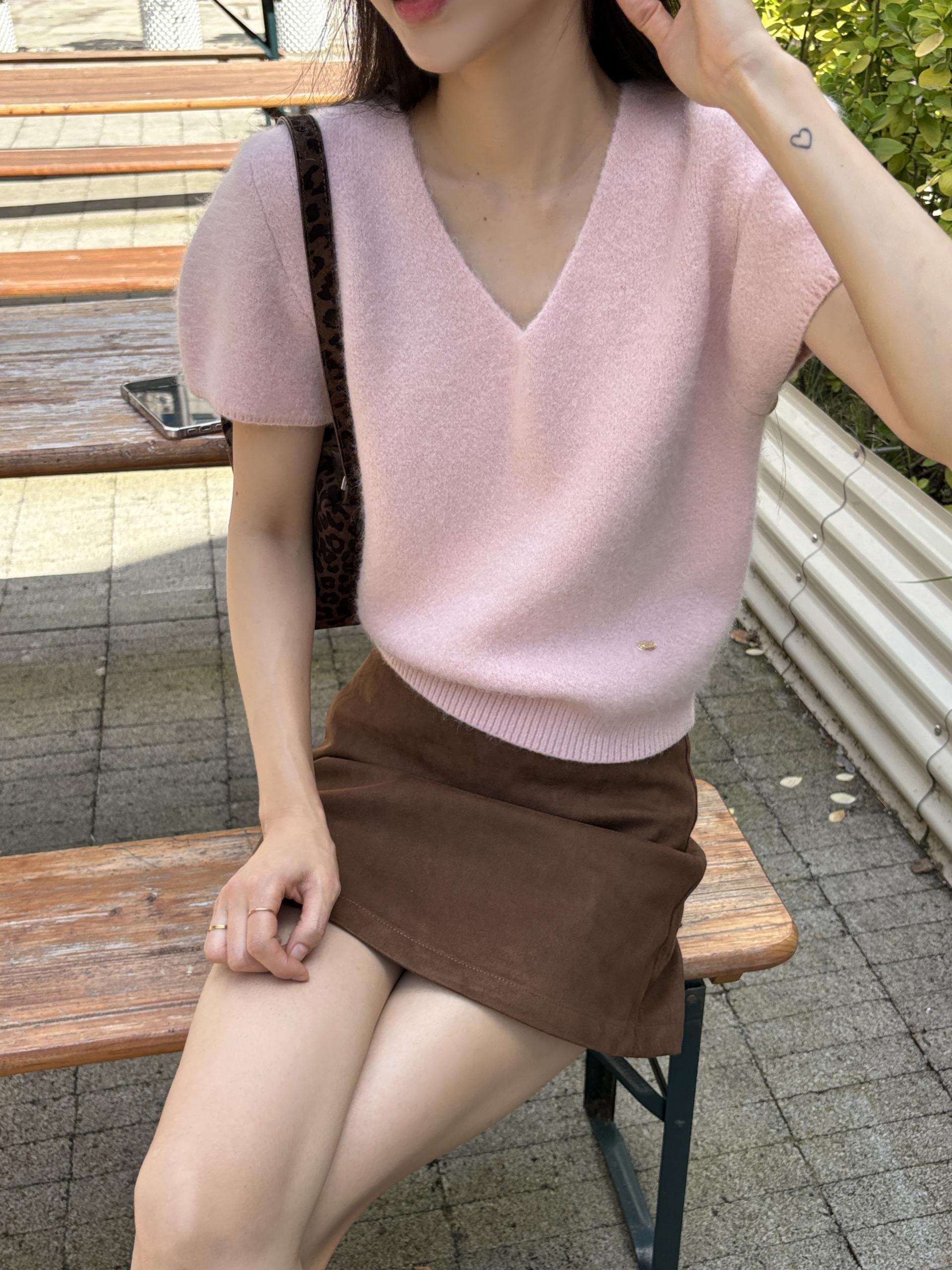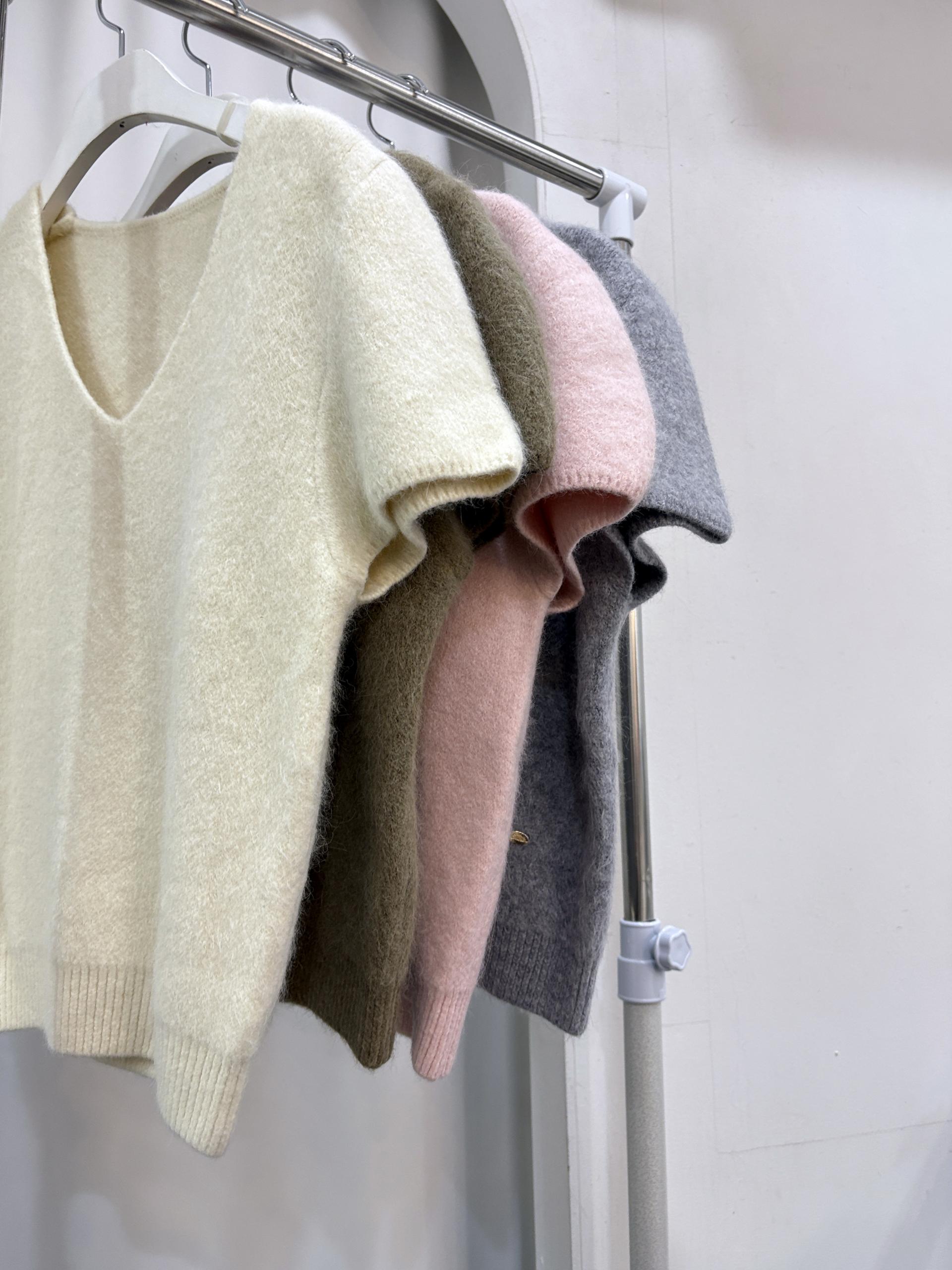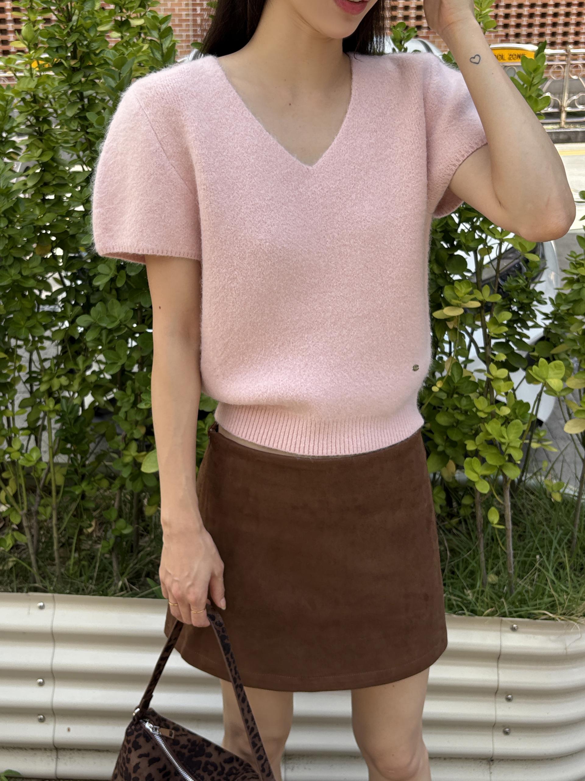 앙고라, 울 혼방 소재로 부드럽고 포근한 반팔 니트입니다.