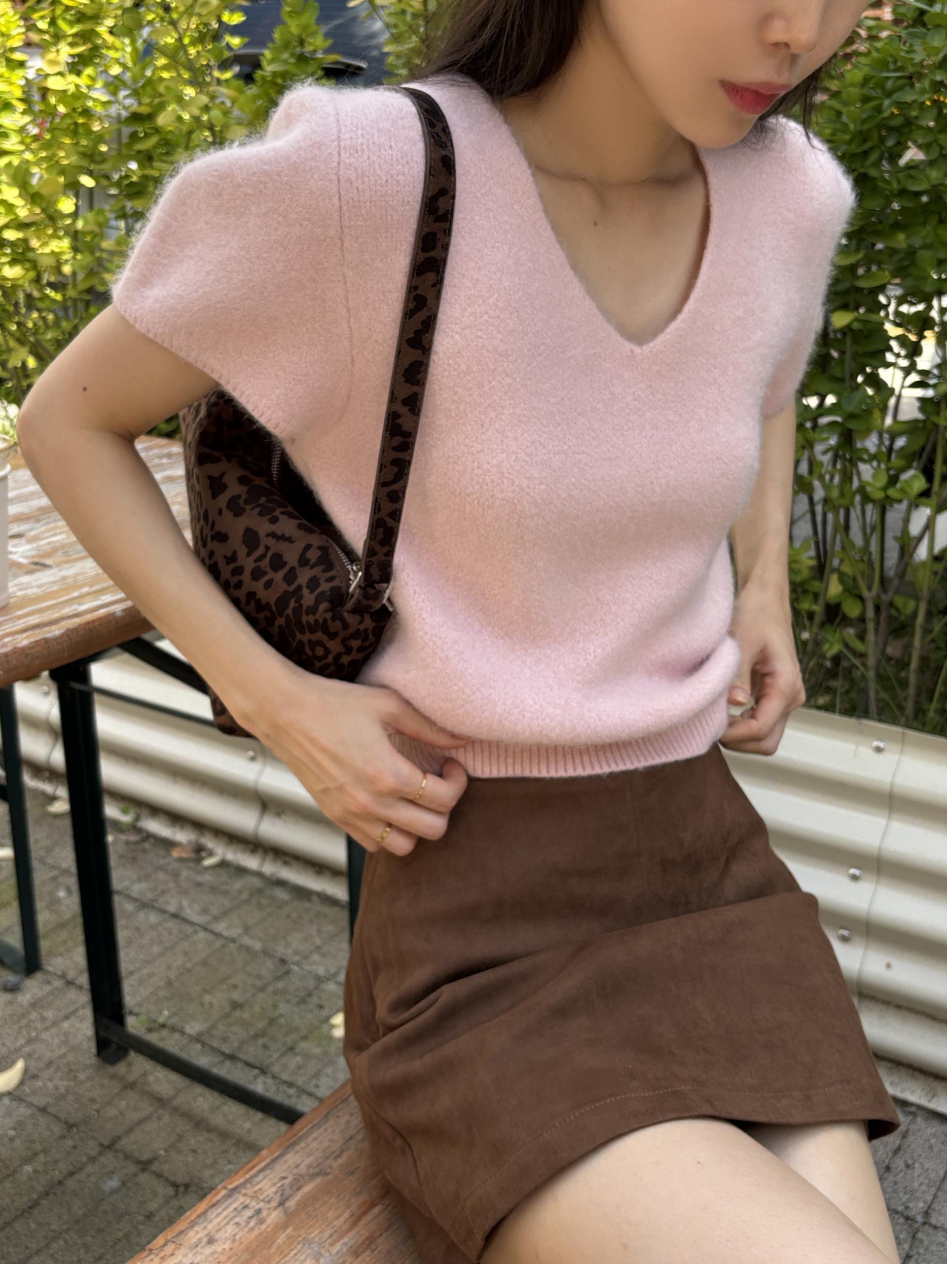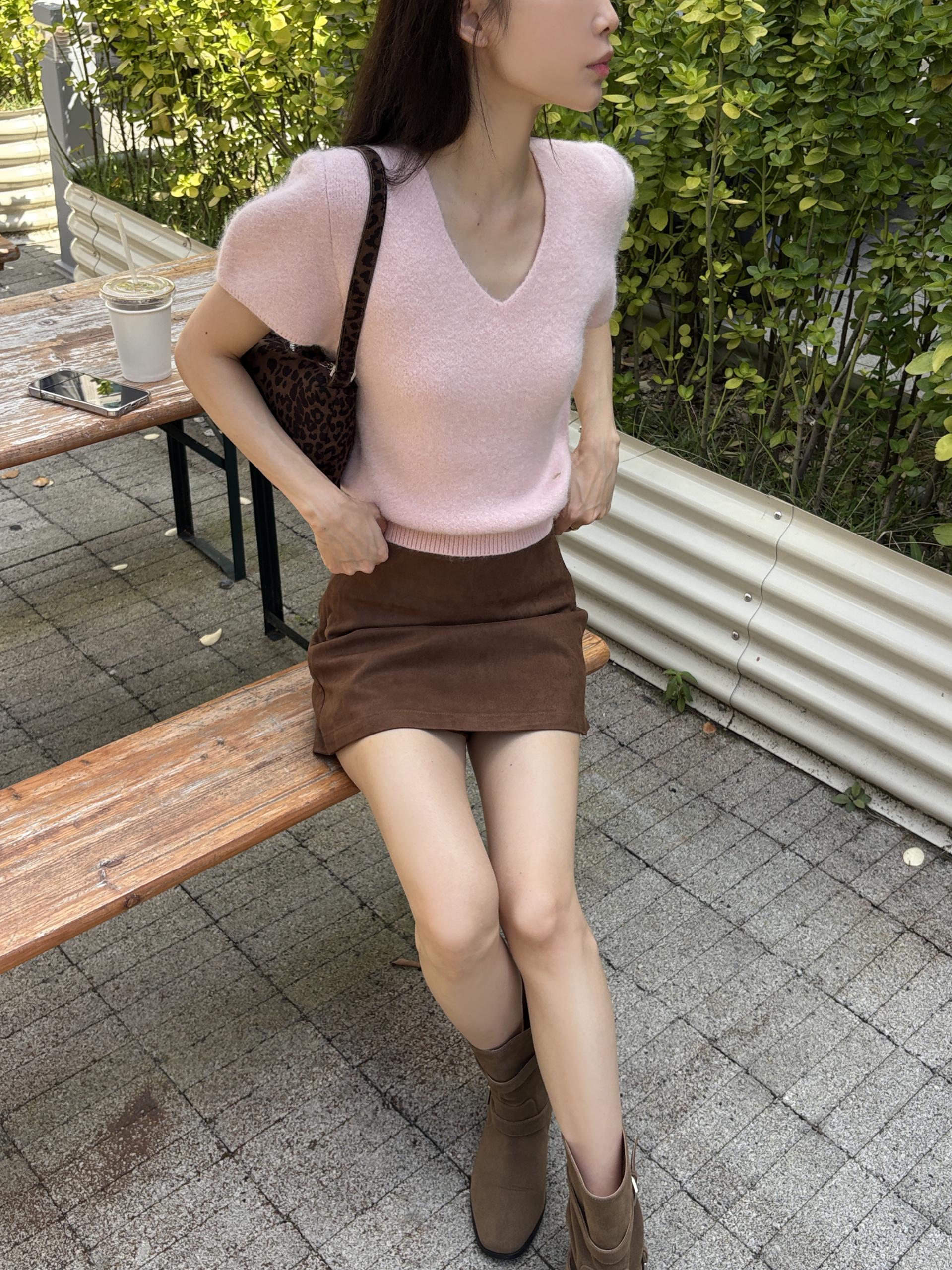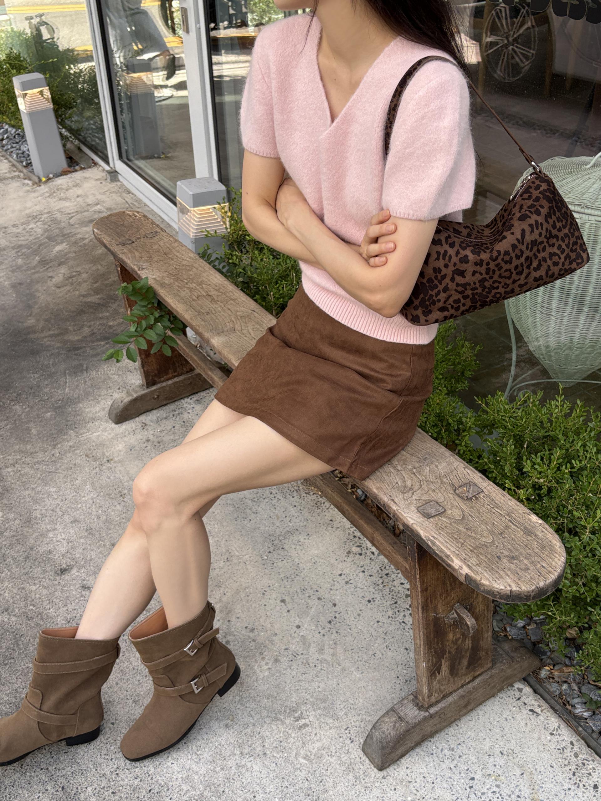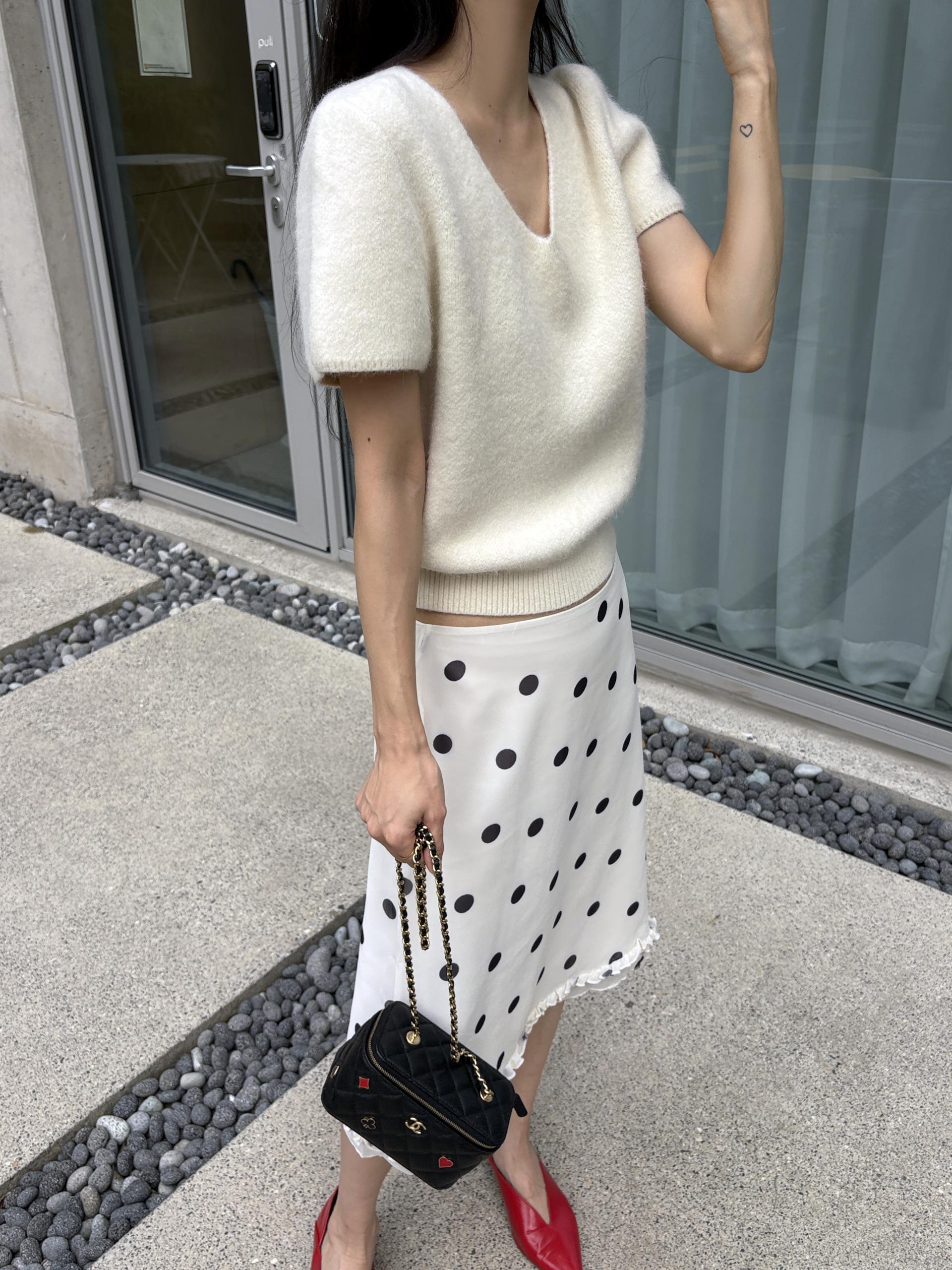 앙고라, 울 혼방 소재로 부드럽고 포근한 반팔 니트입니다.