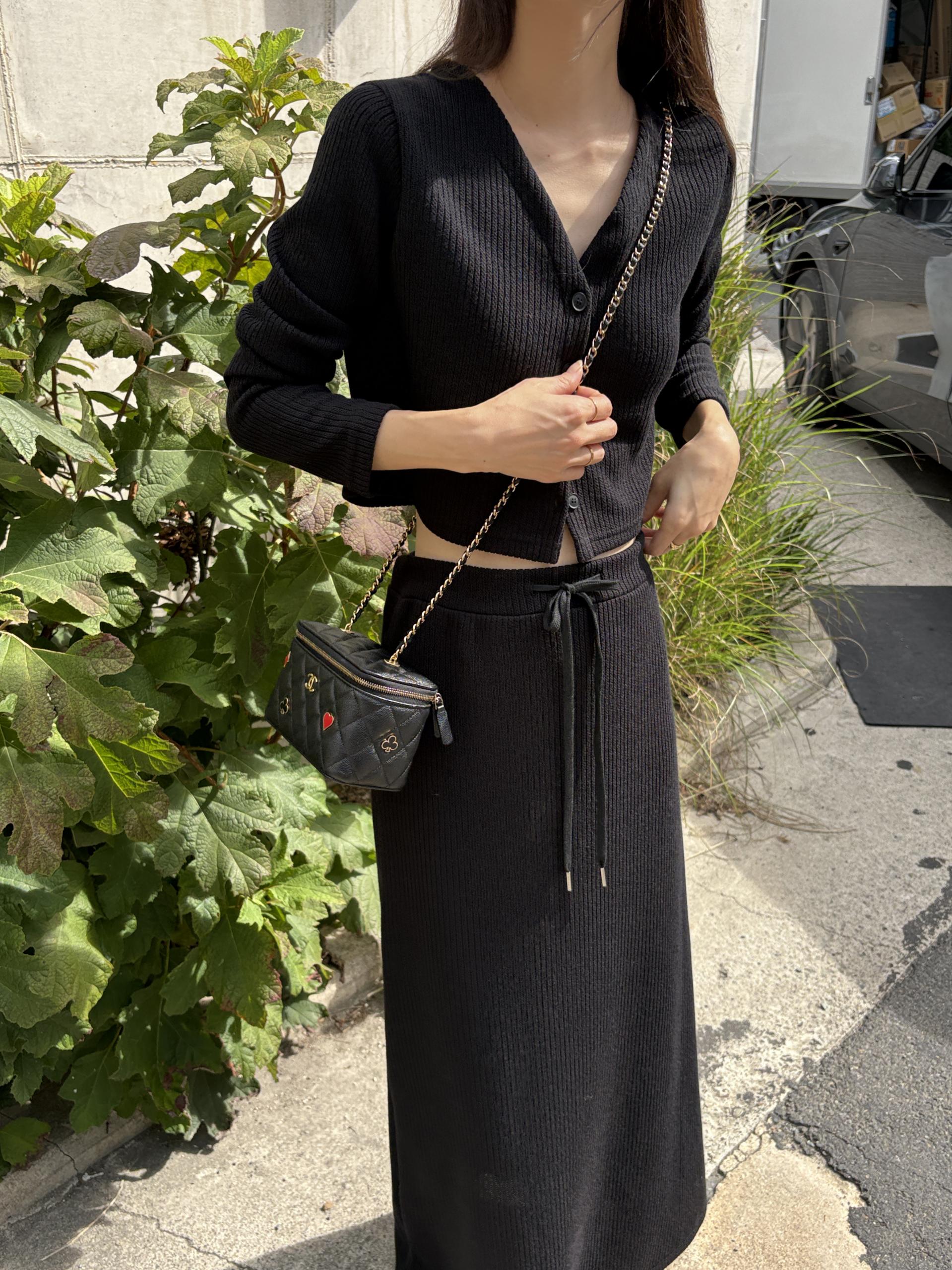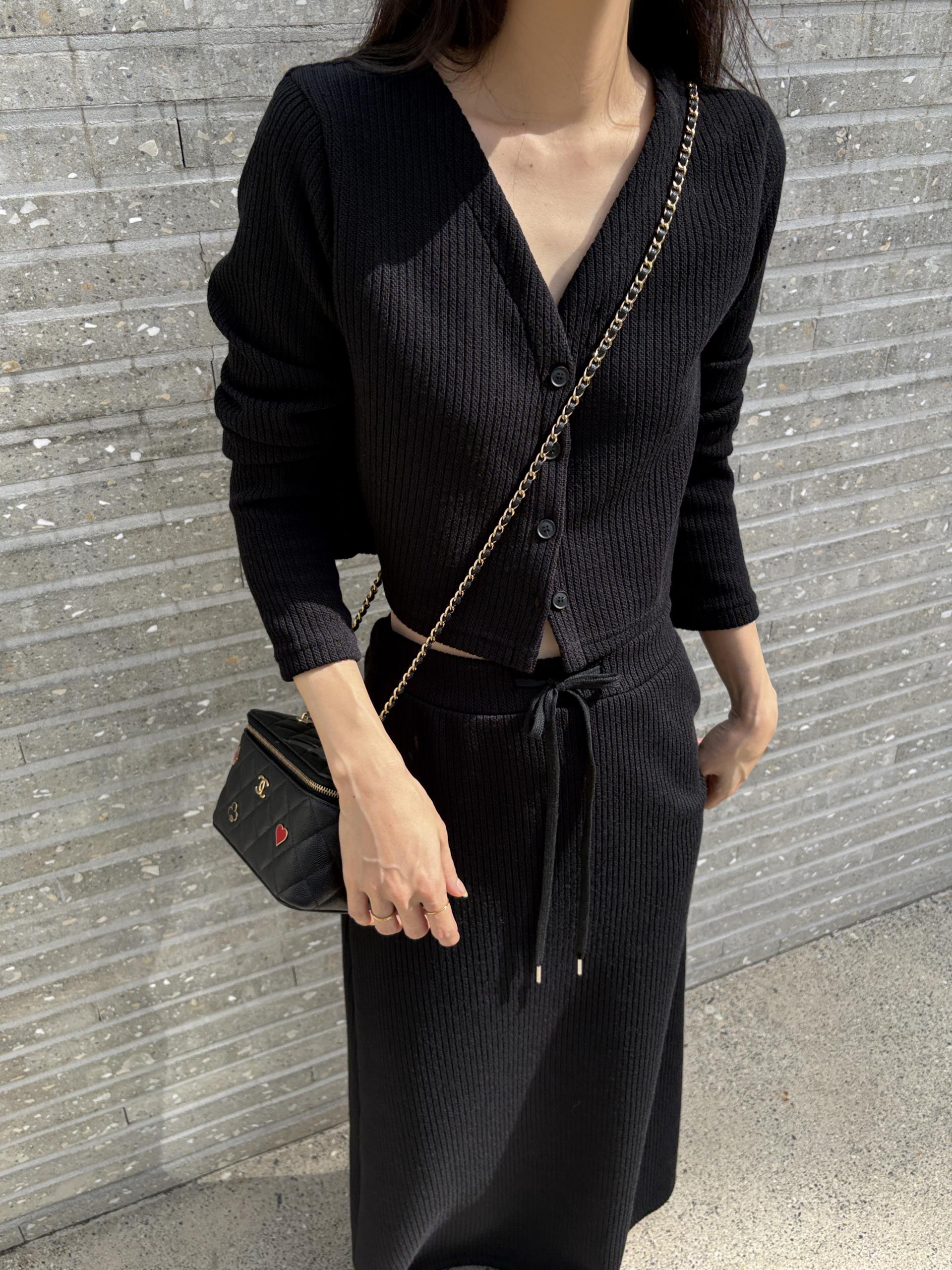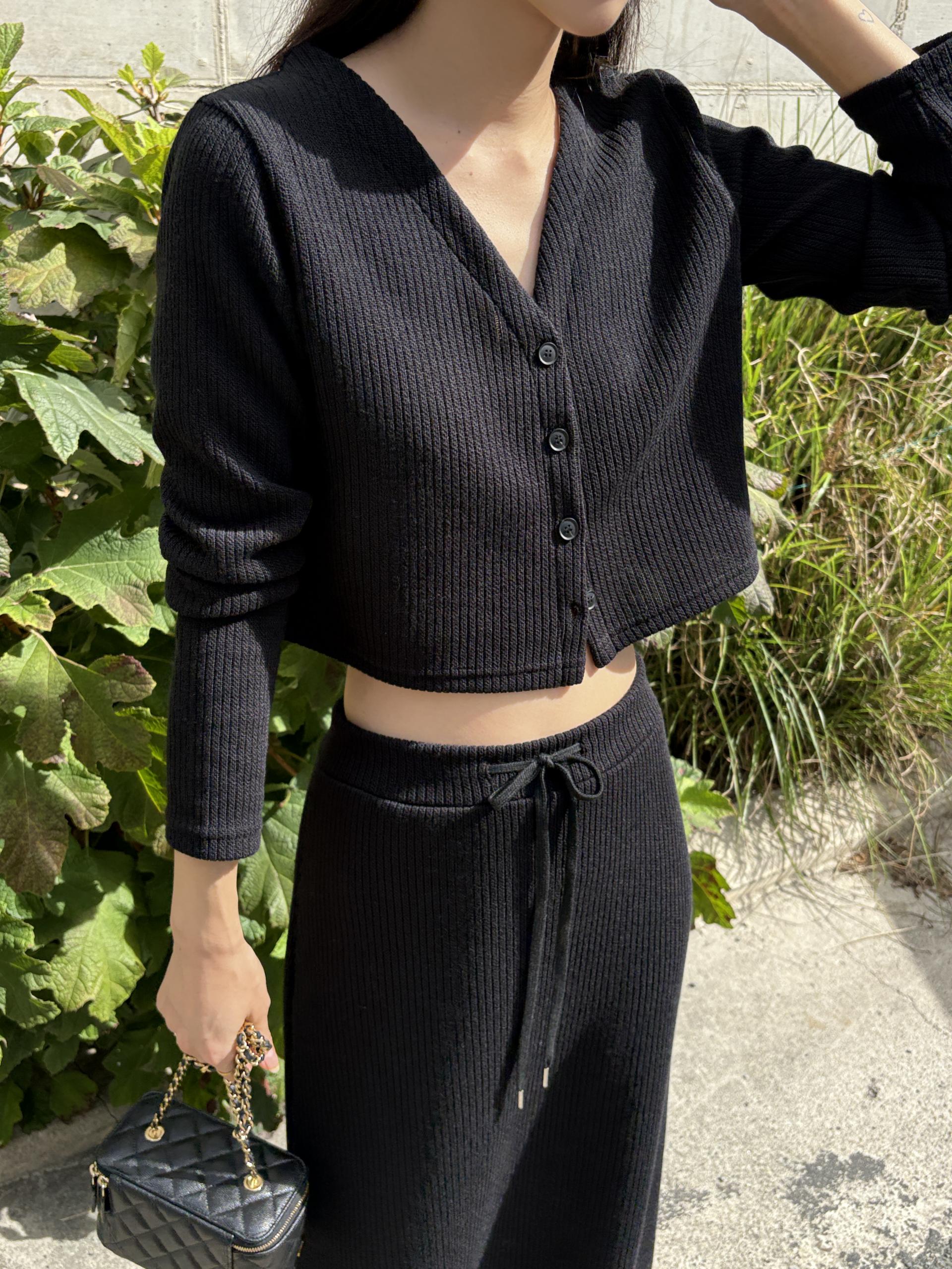 브이넥으로 여리여리한 분위기를 살려주고, 투피스 스커트나 하이웨스트 하의와 함께 매치하면 비율이 더욱 좋아 보이는 아이템입니다.