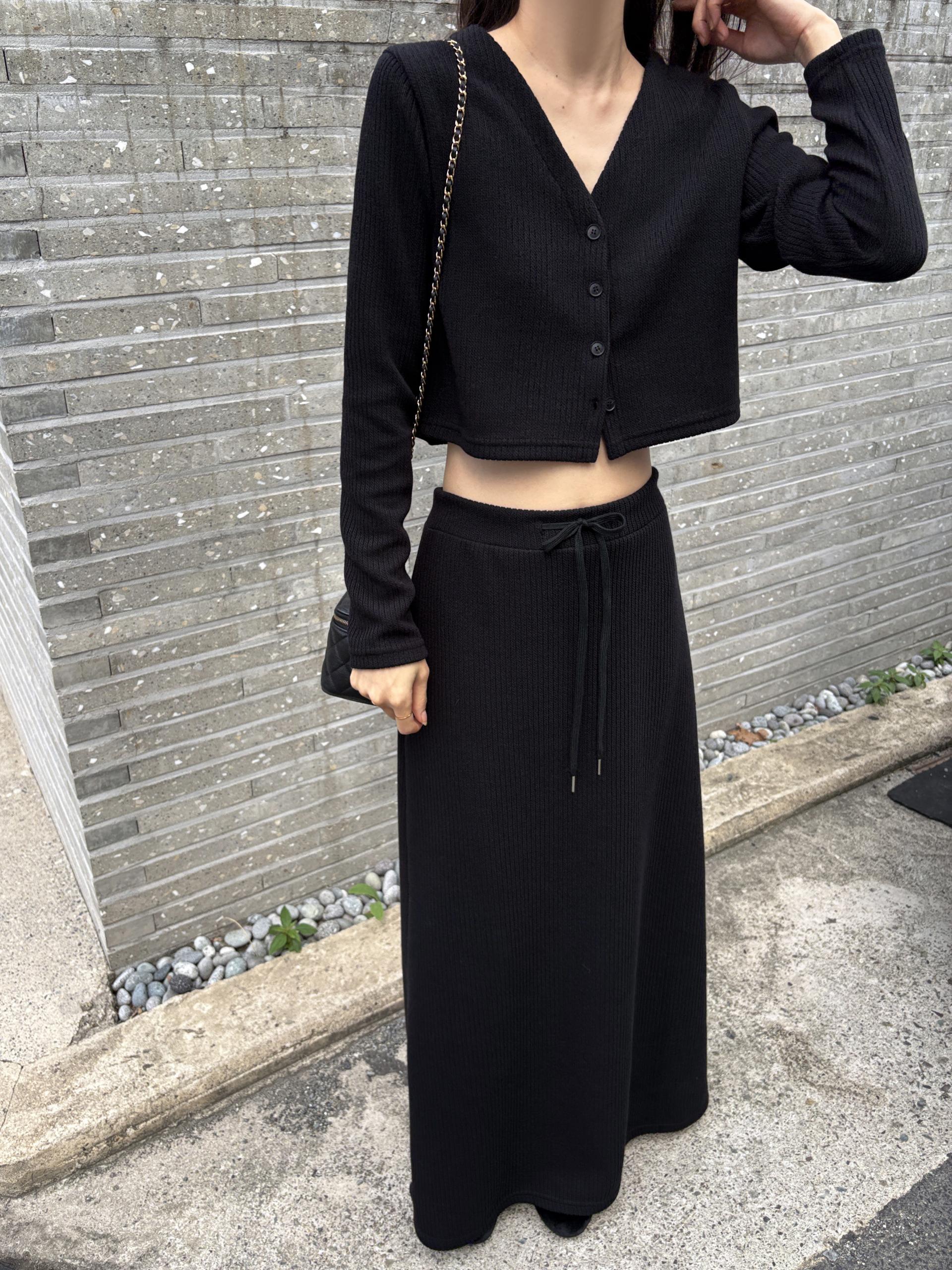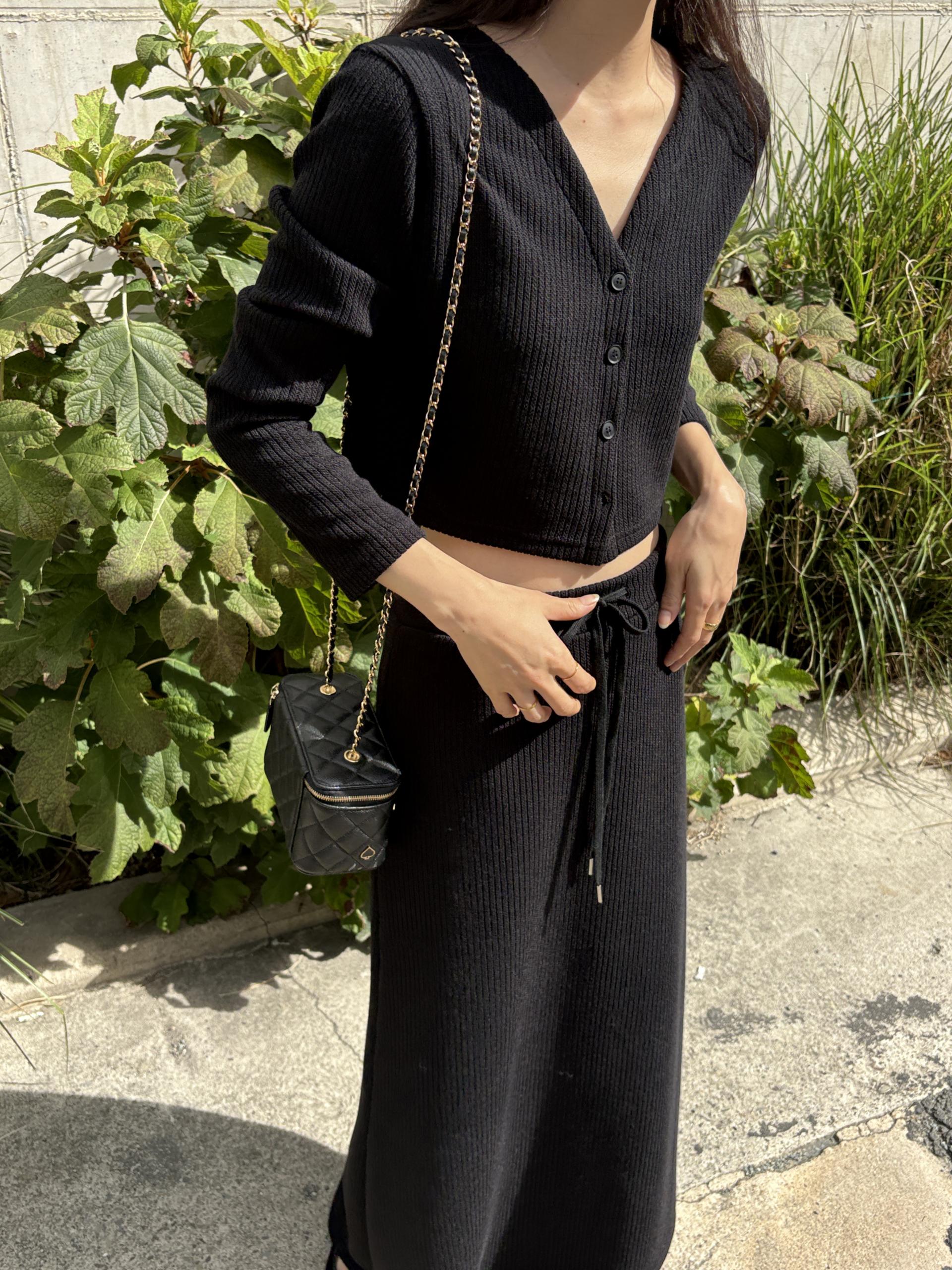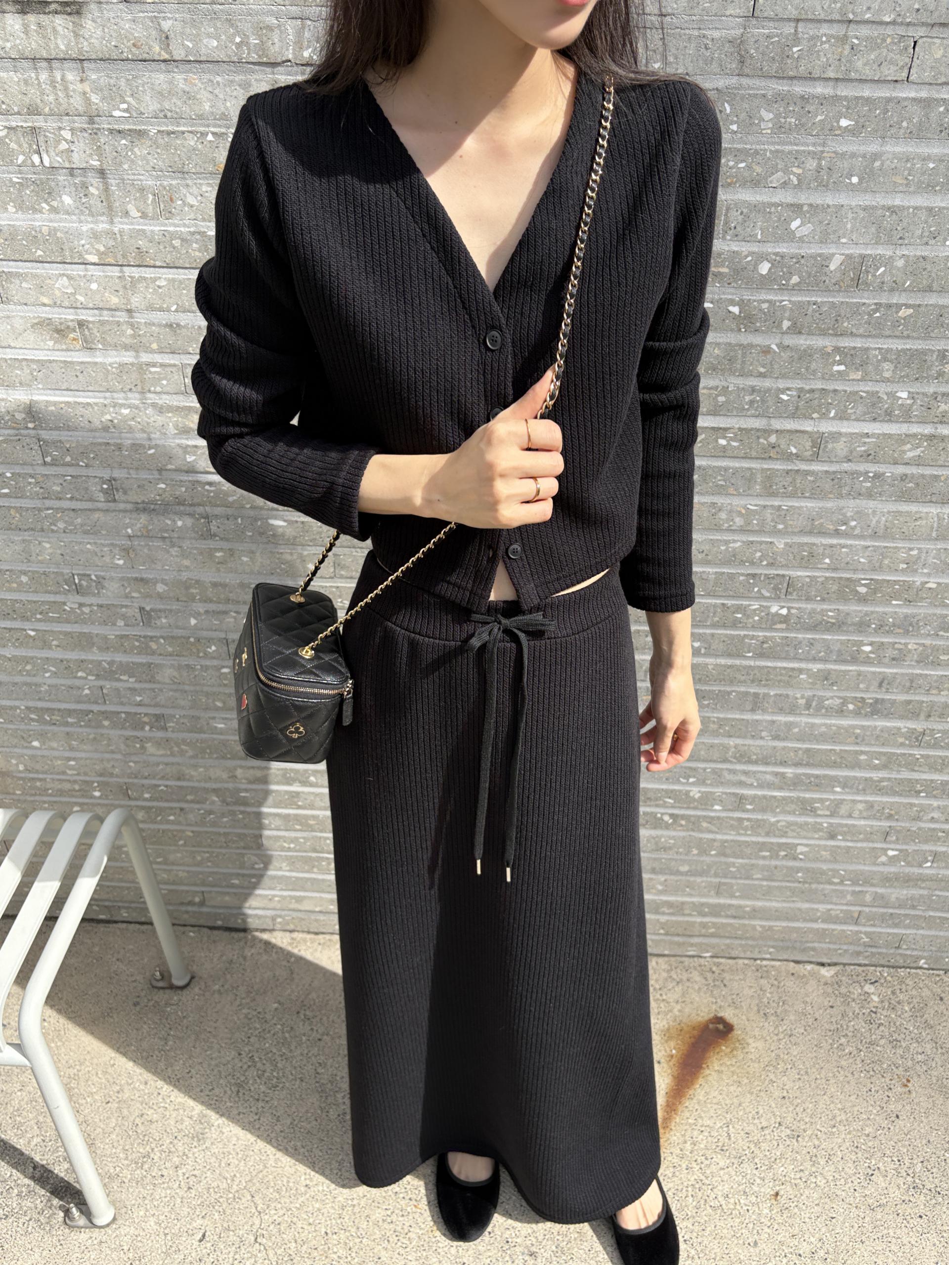 브이넥으로 여리여리한 분위기를 살려주고, 투피스 스커트나 하이웨스트 하의와 함께 매치하면 비율이 더욱 좋아 보이는 아이템입니다.