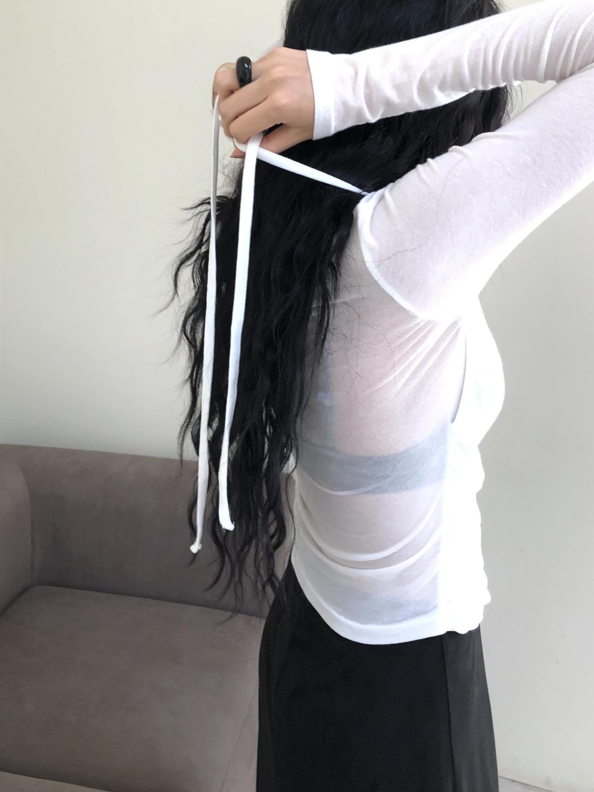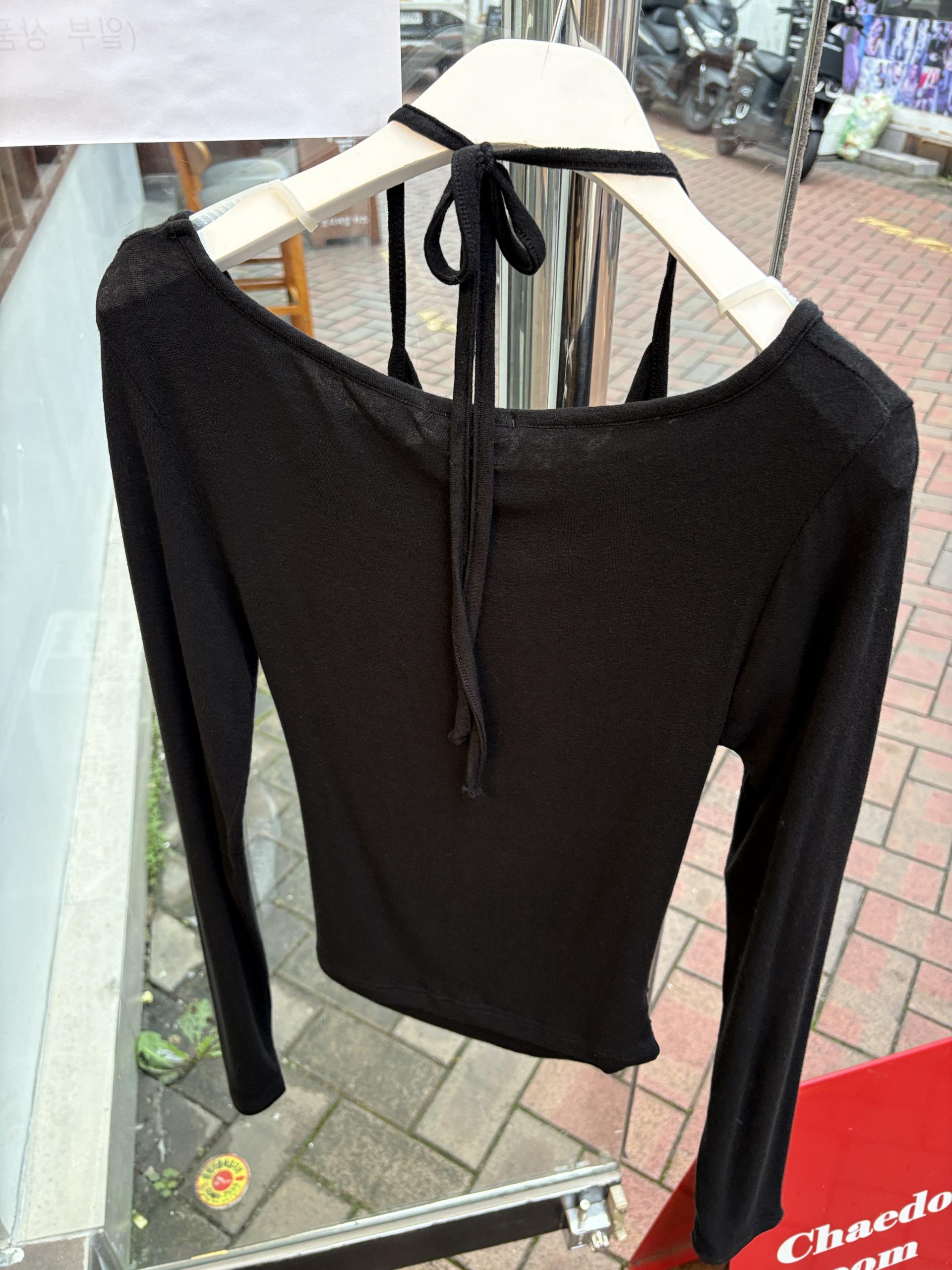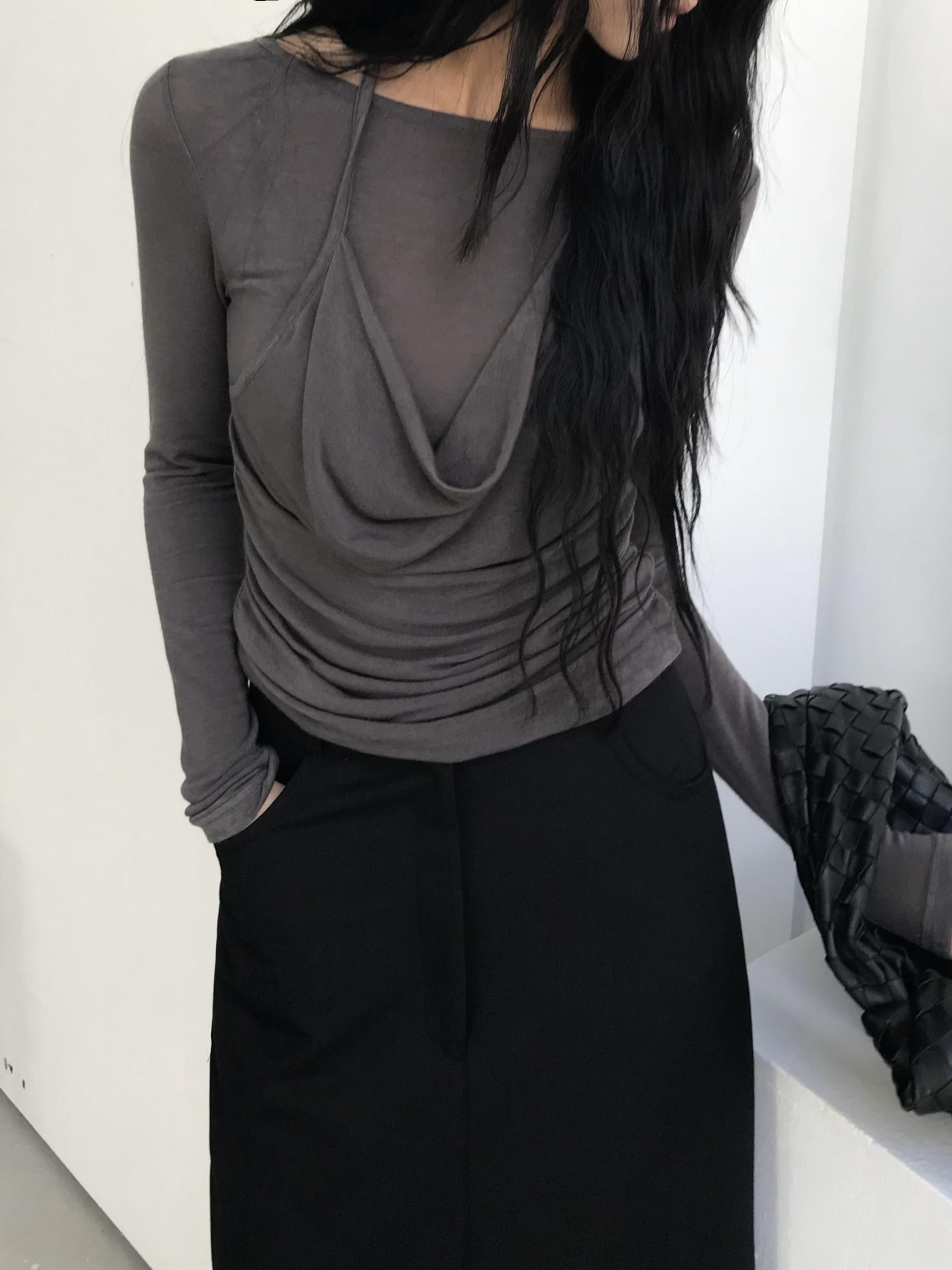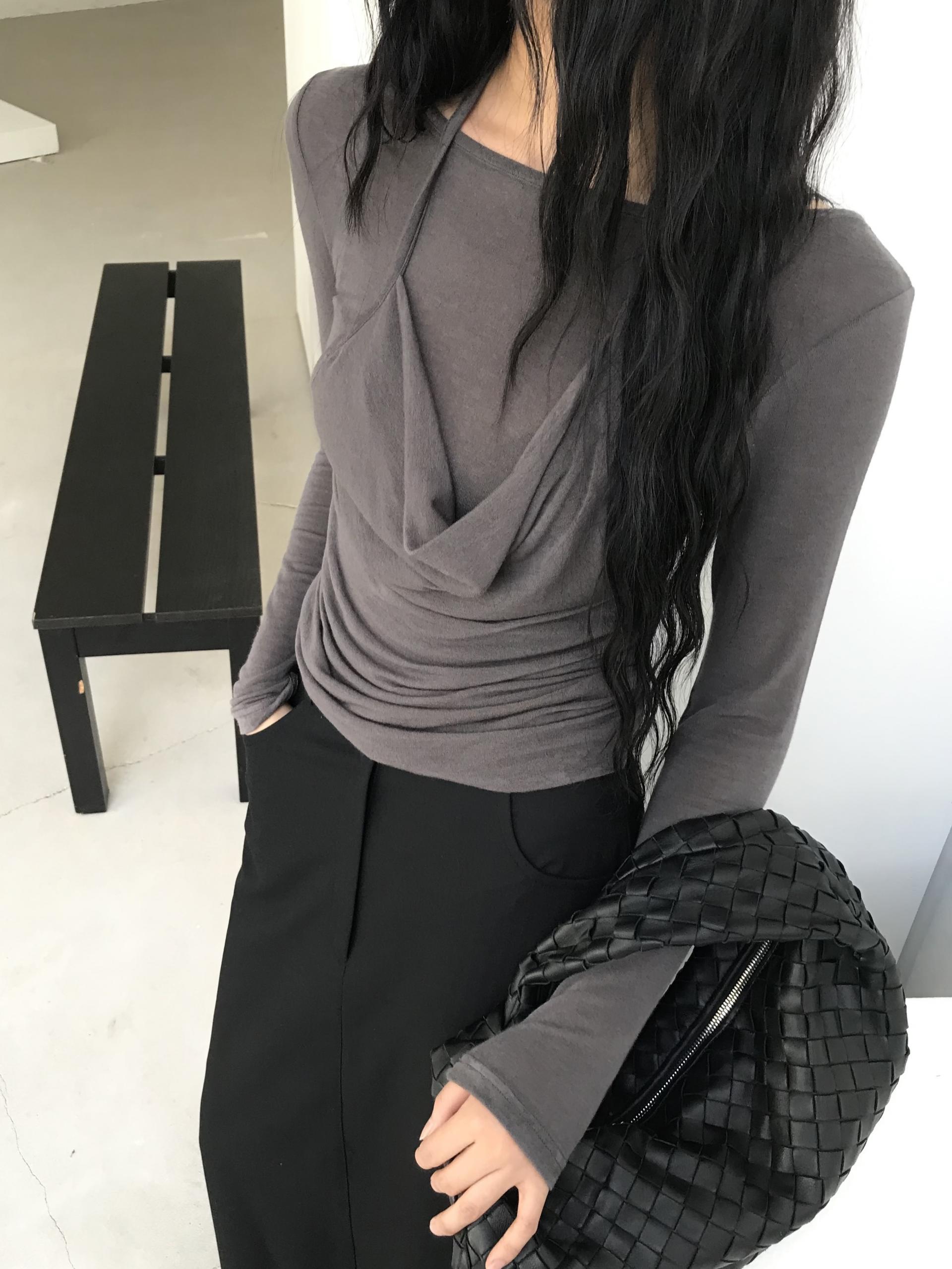 홀터넥 뷔스티에가 부착된 디자인의 레이어드 세트 티셔츠입니다.