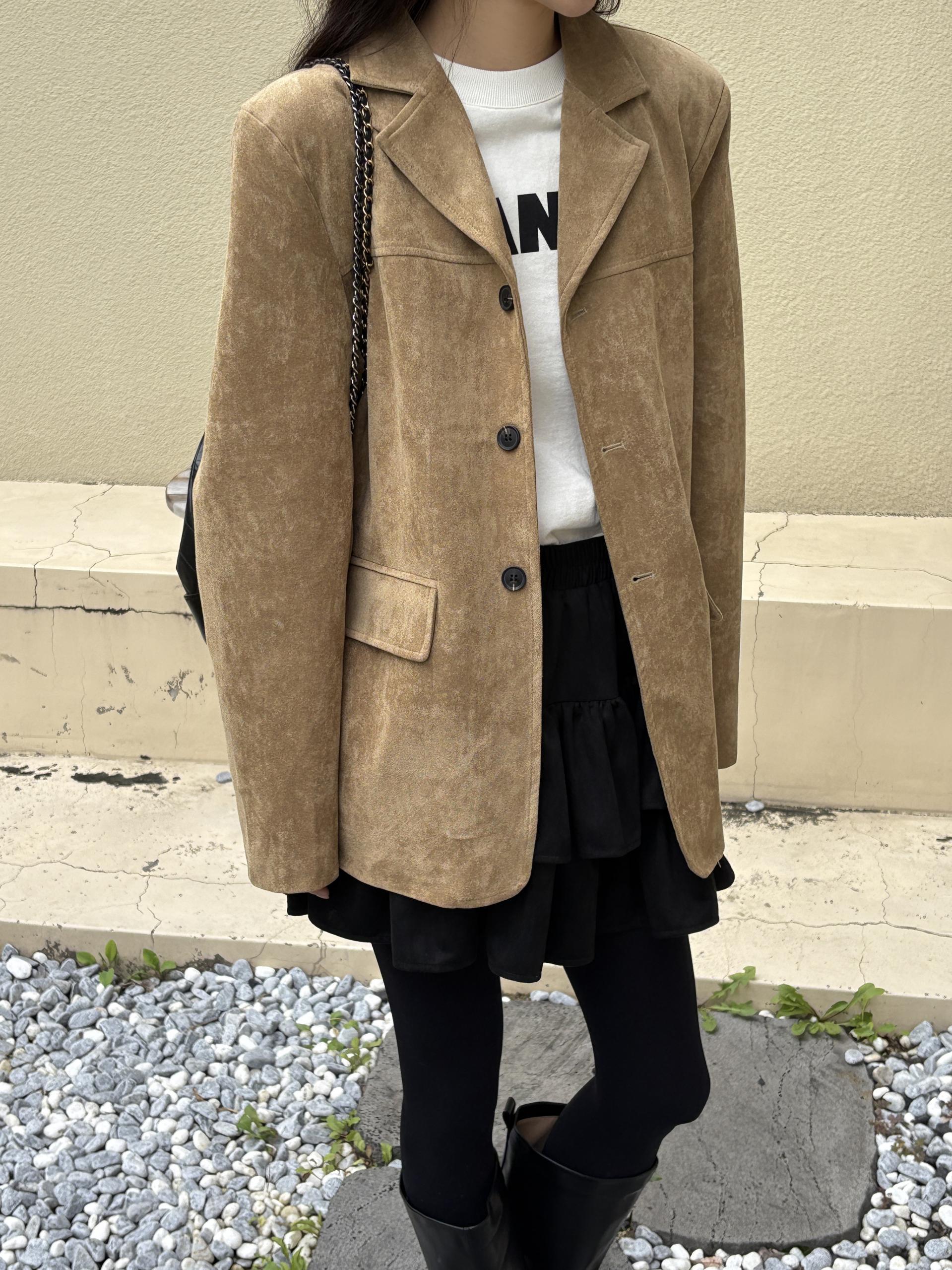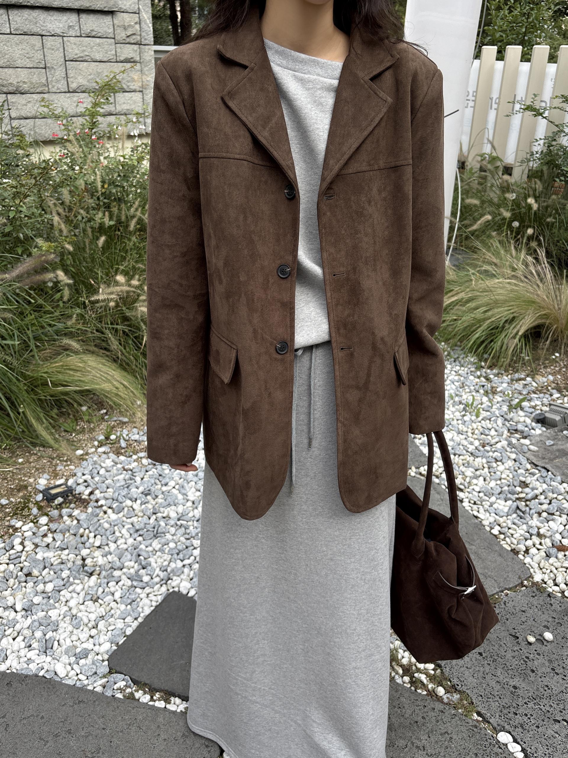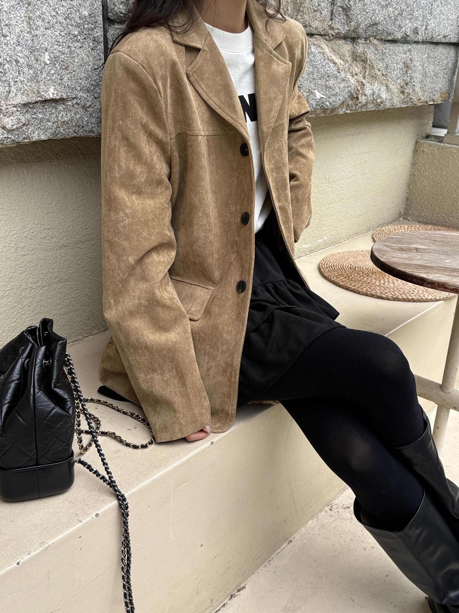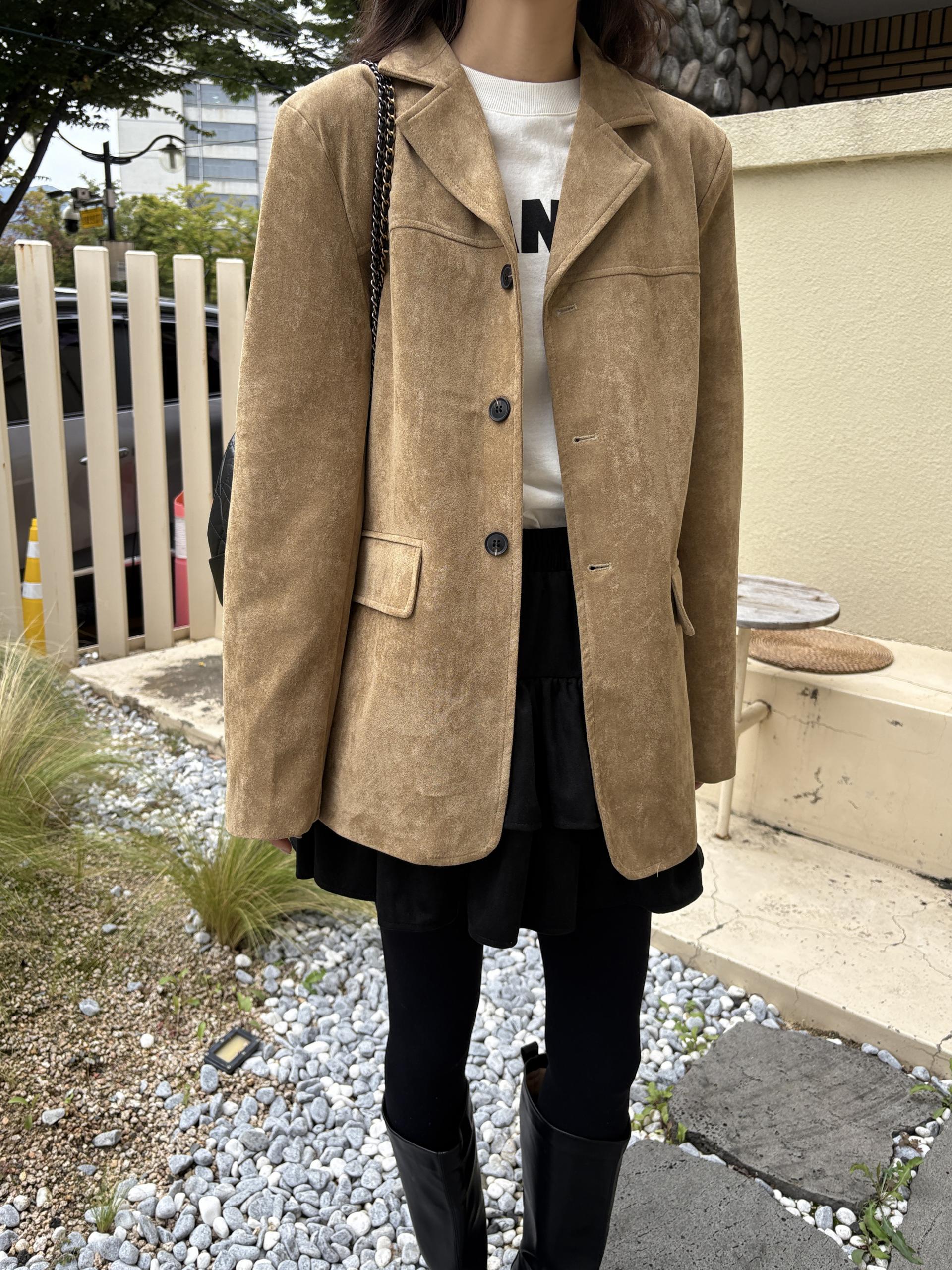 부드럽고 따뜻한 질감의 스웨이드 싱글 자켓입니다.