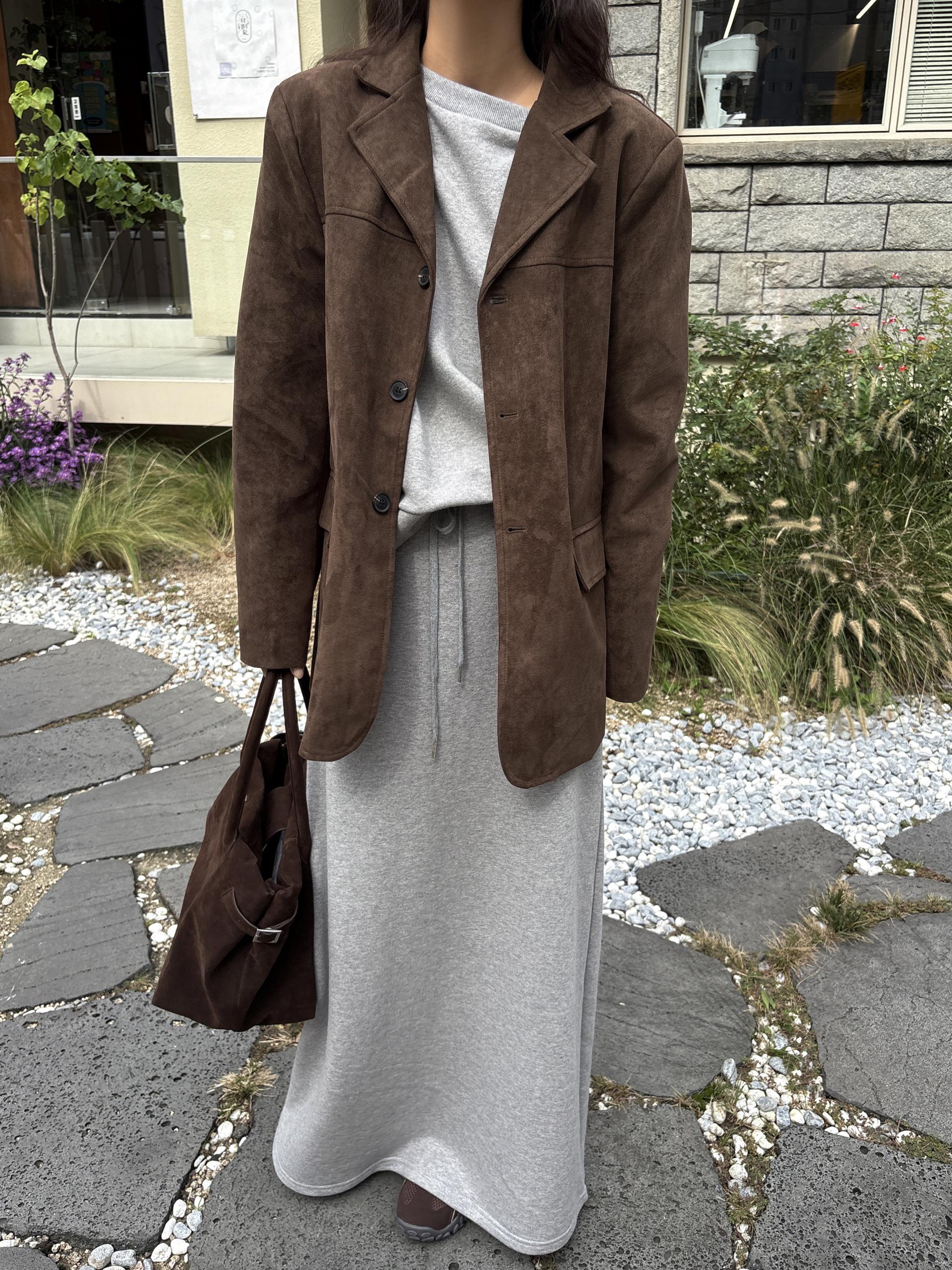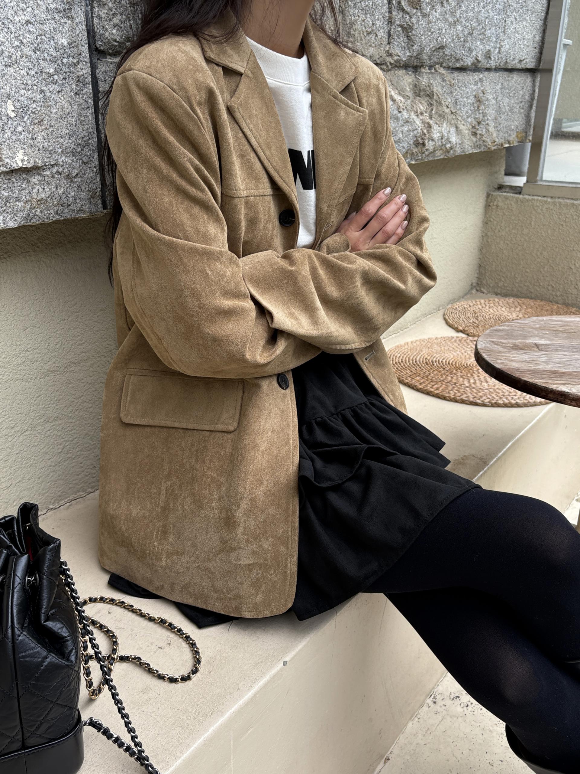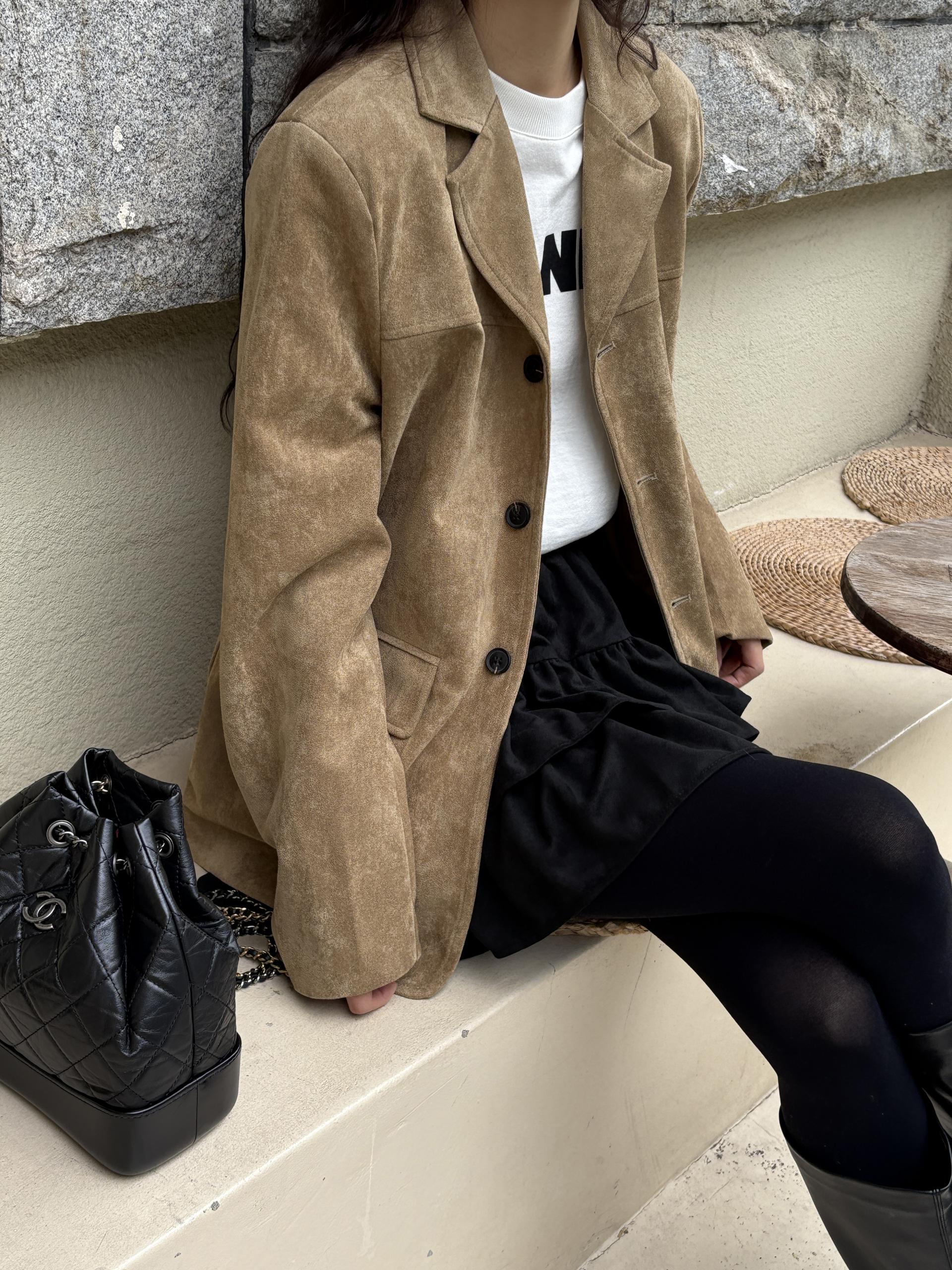 부드럽고 따뜻한 질감의 스웨이드 싱글 자켓입니다.