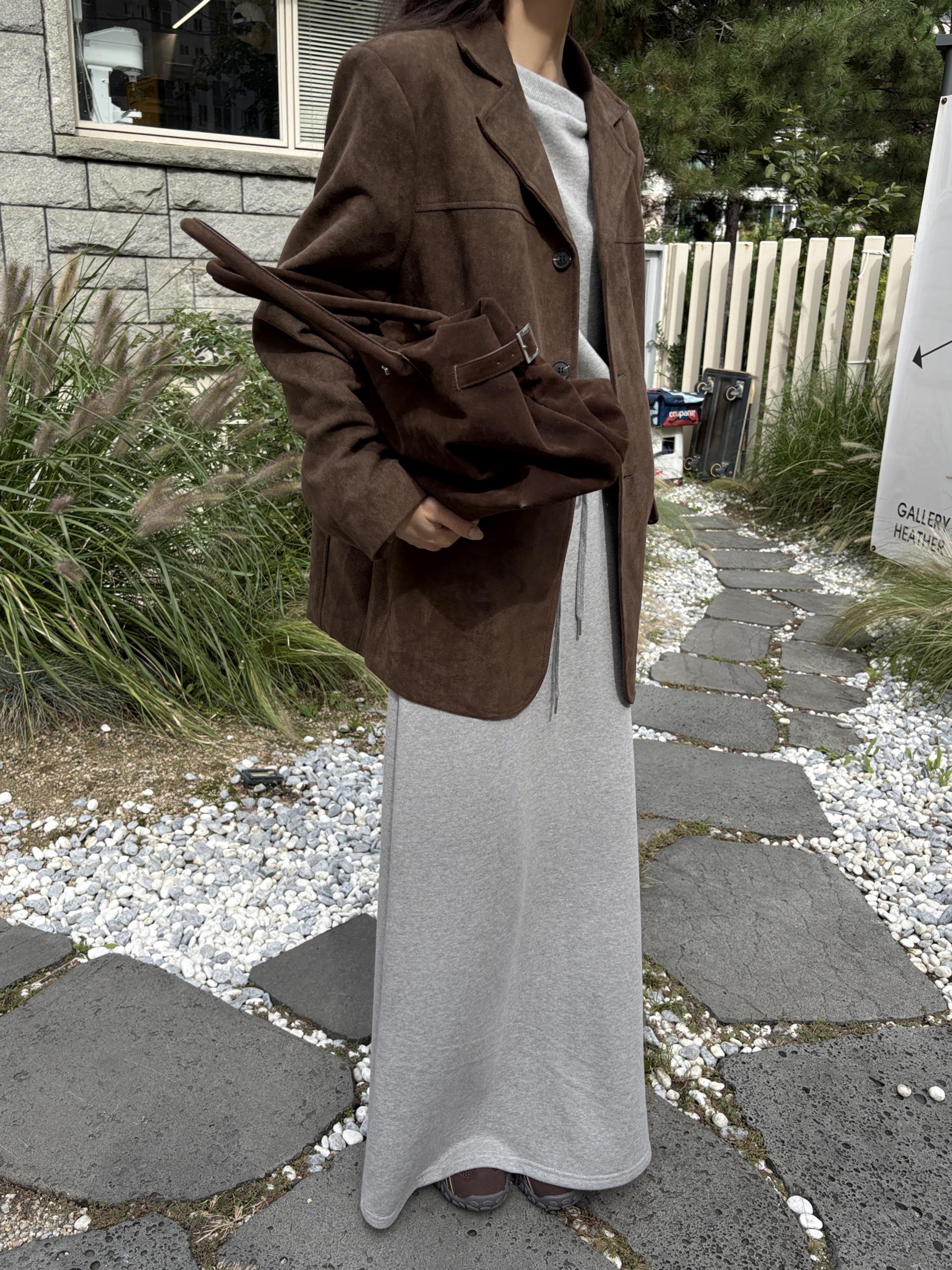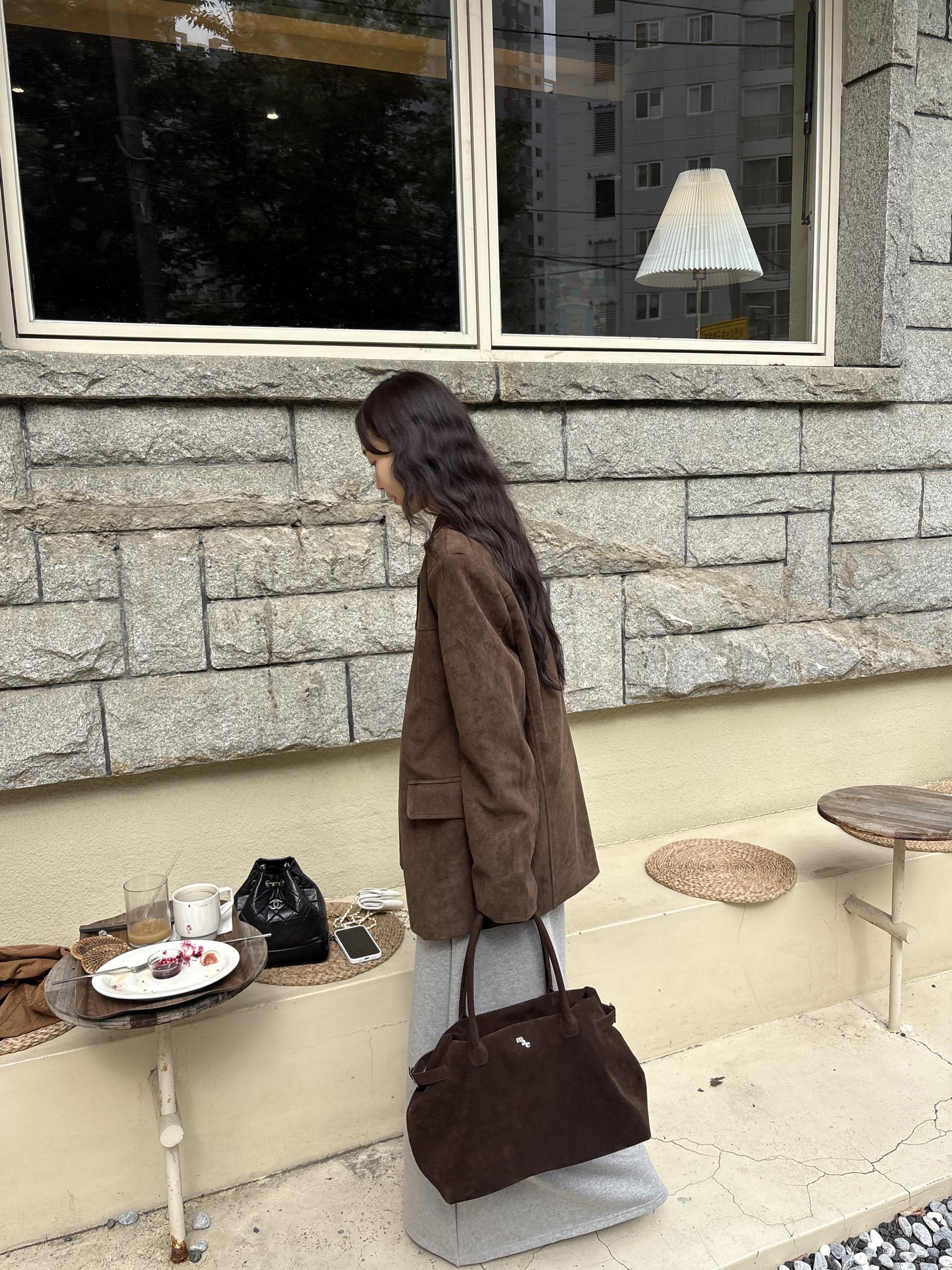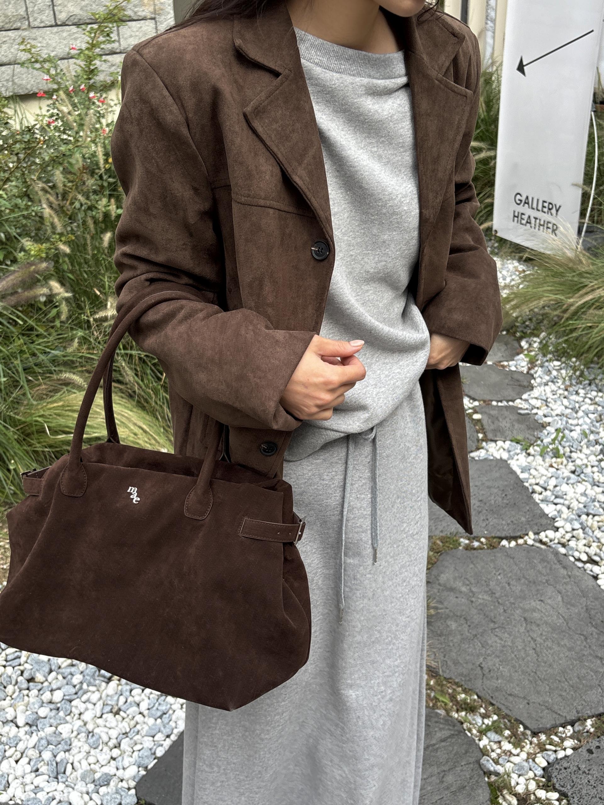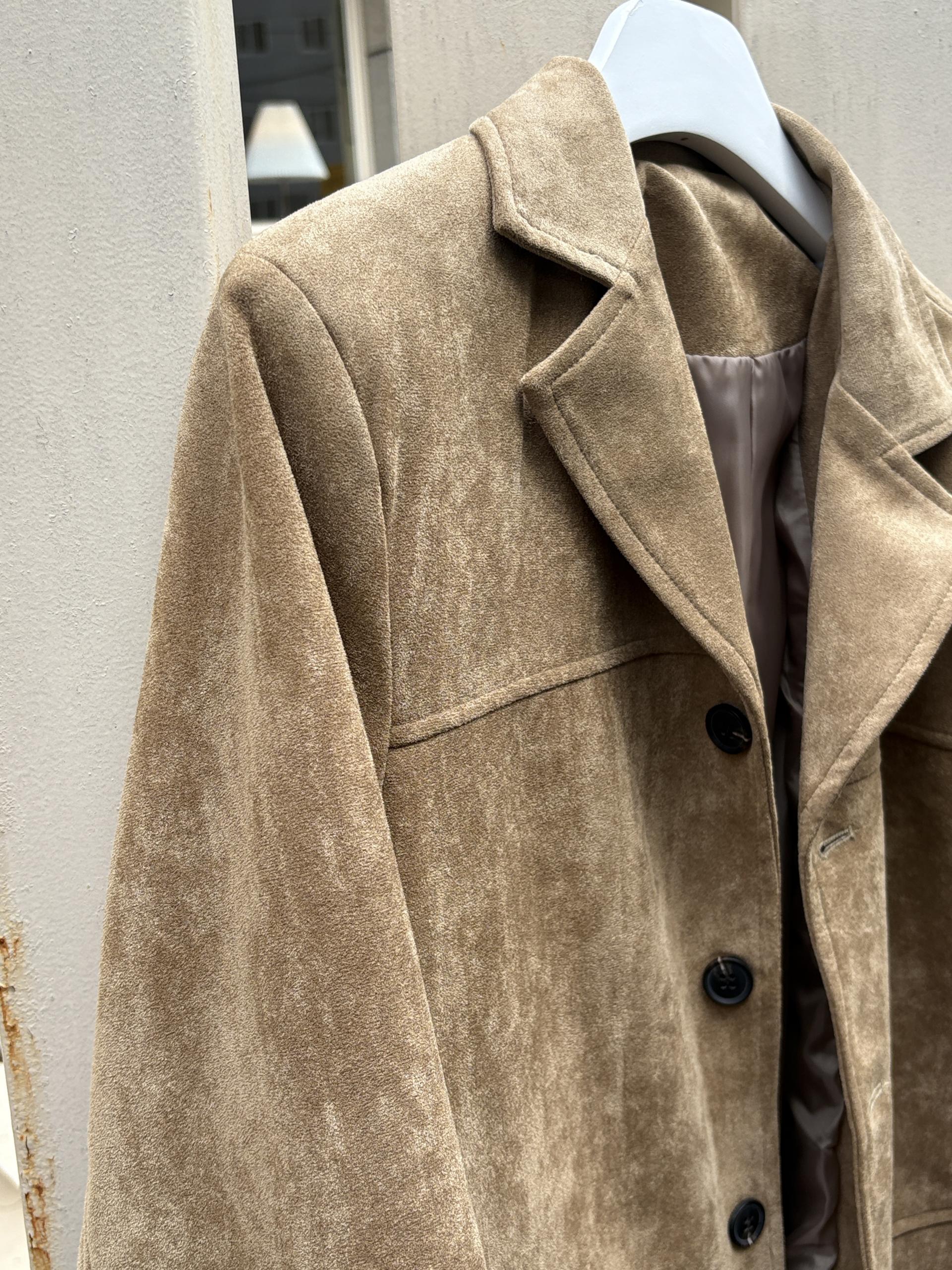 부드럽고 따뜻한 질감의 스웨이드 싱글 자켓입니다.