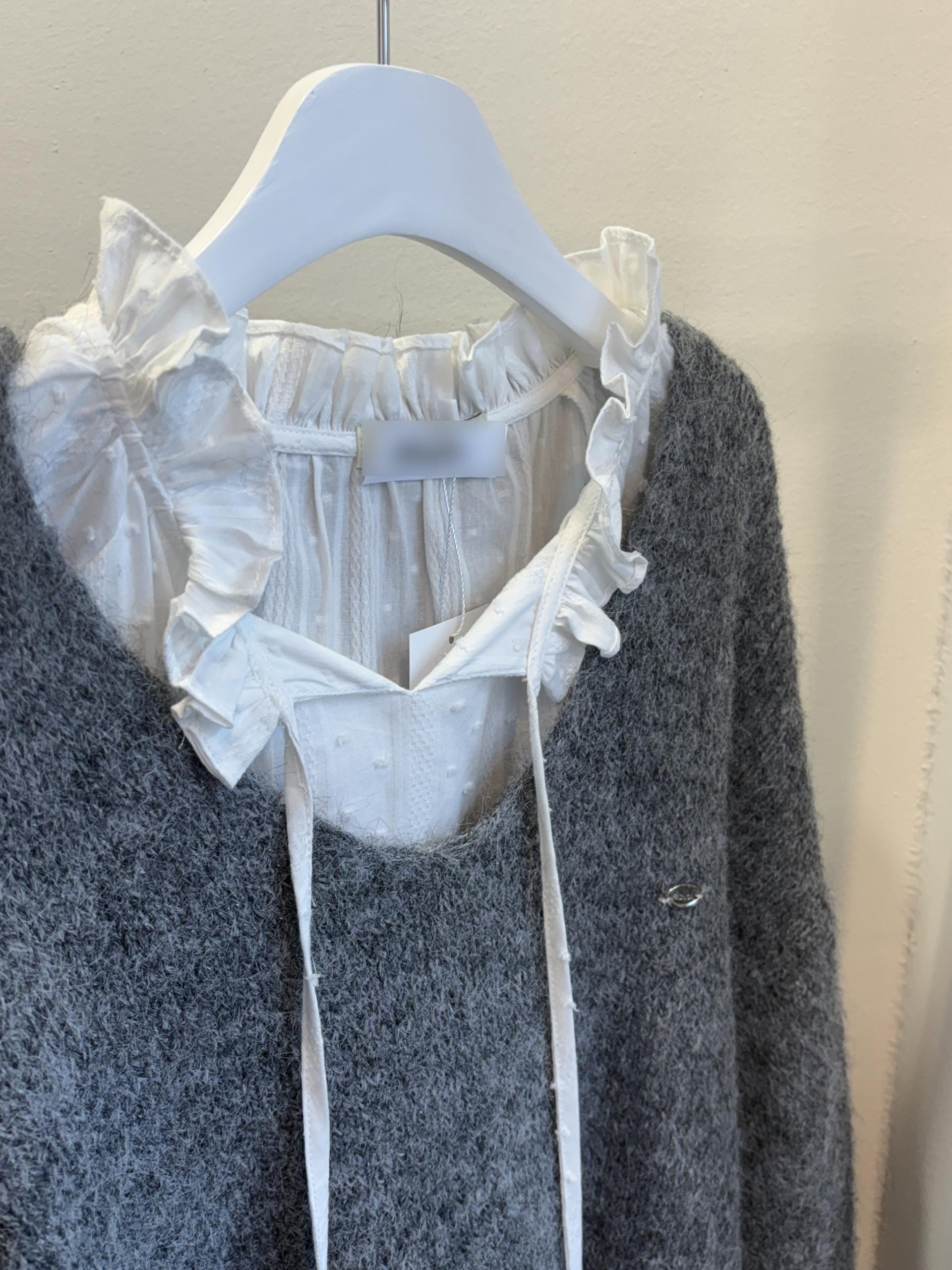 볼륨감 있는 퍼프소매로 팔 라인을 여리하게 커버해 주고, 넉넉한 핏으로 체형에 구애 없이 편하게 착용할 수 있어요.