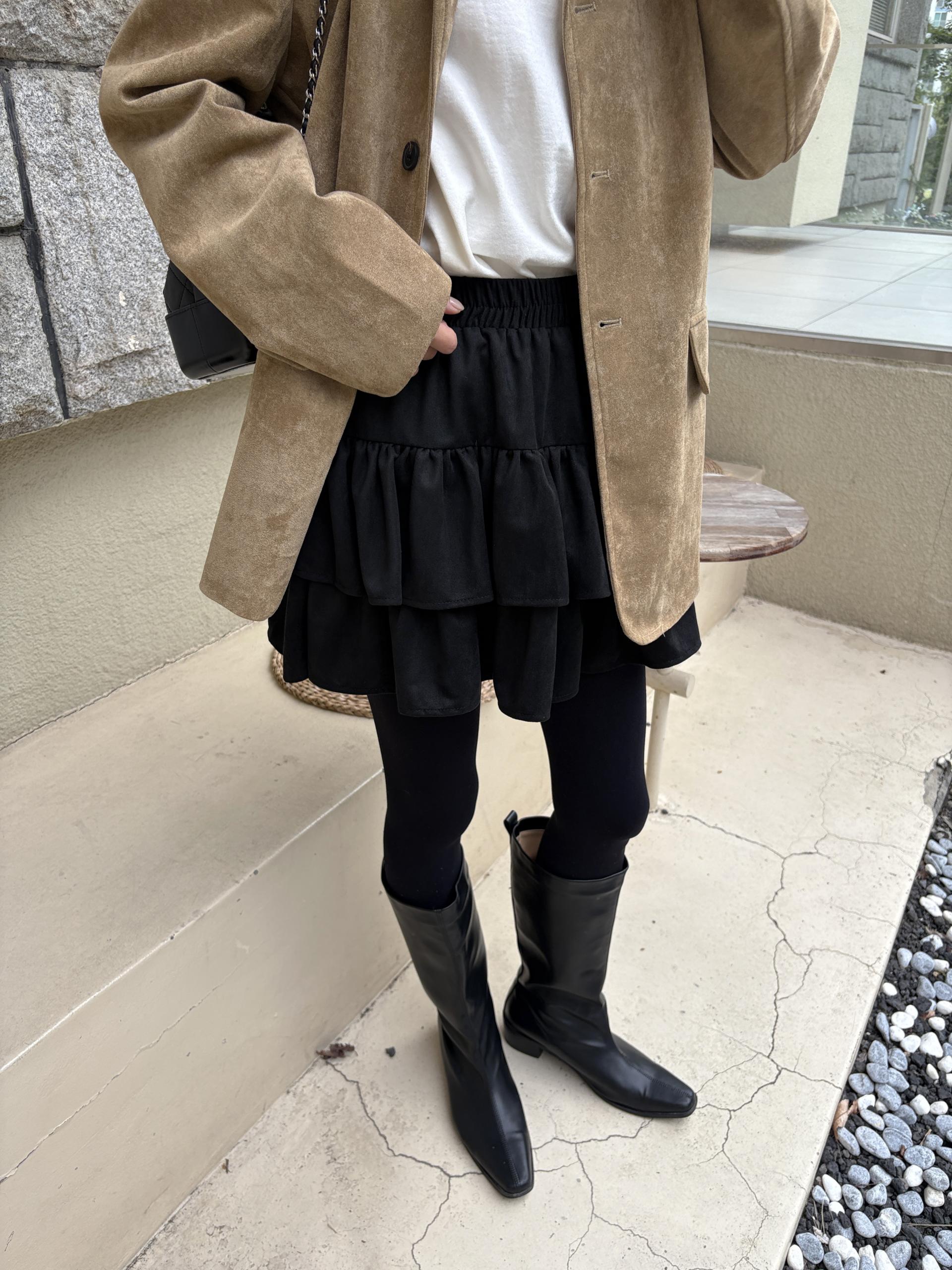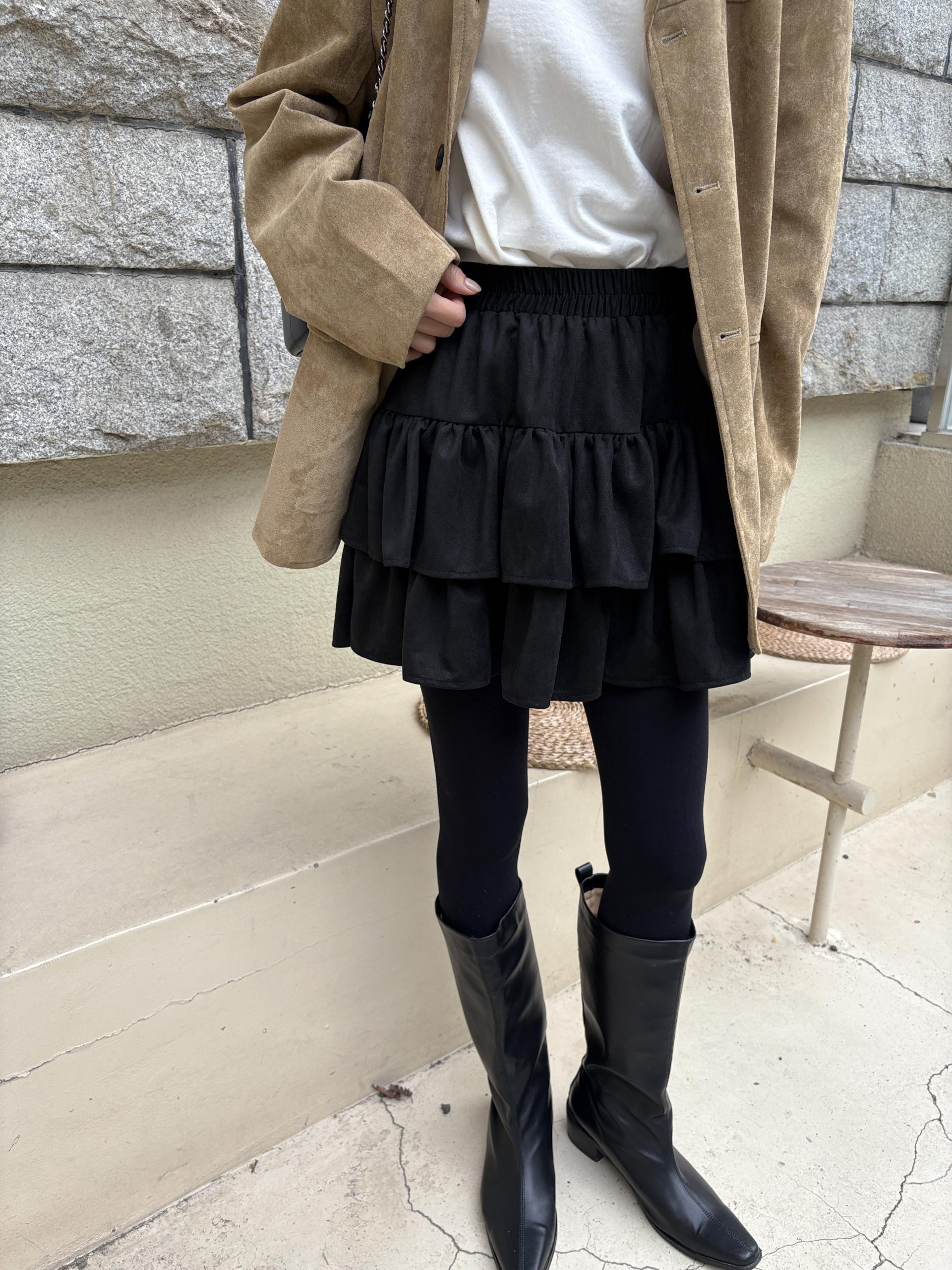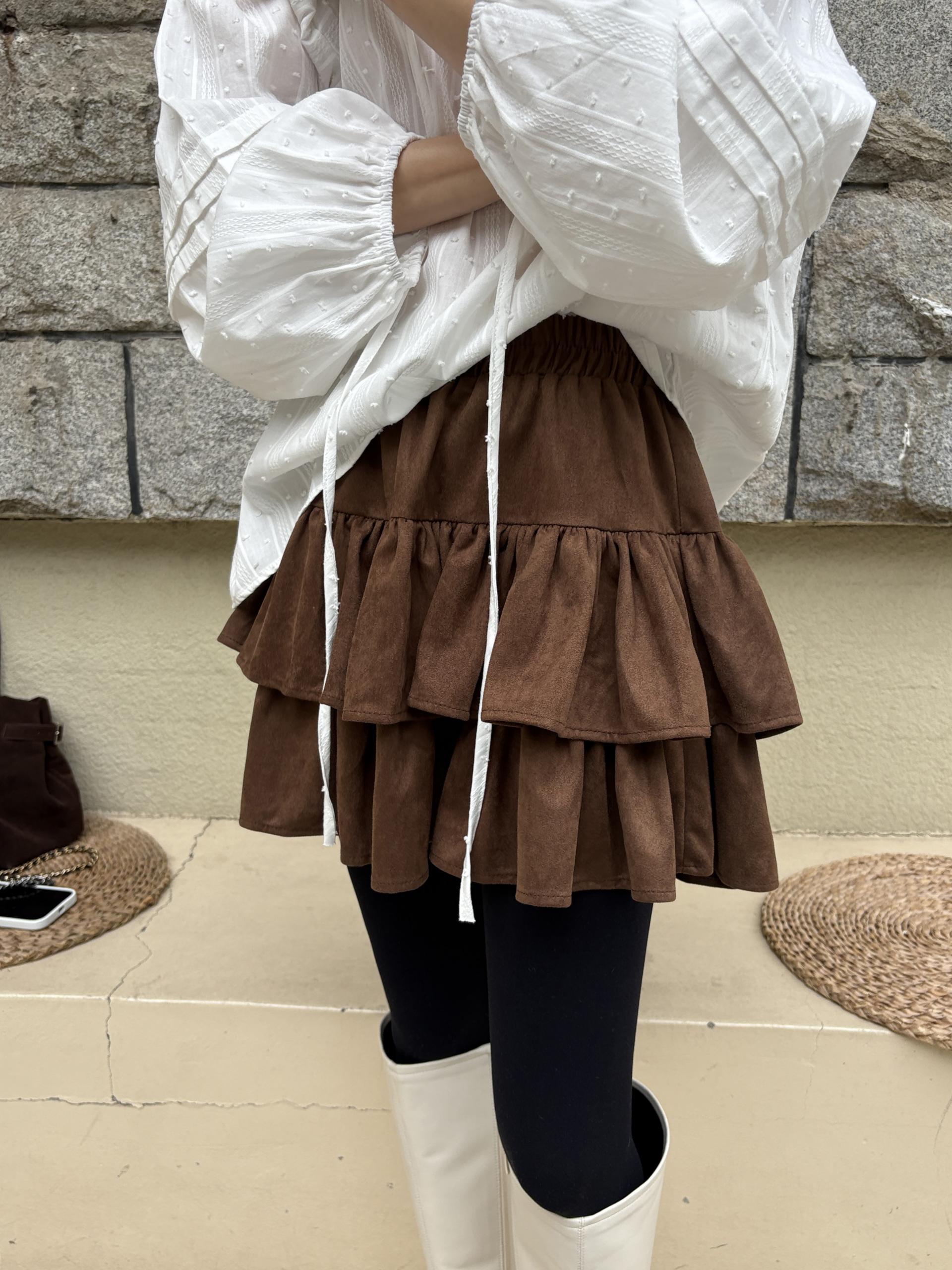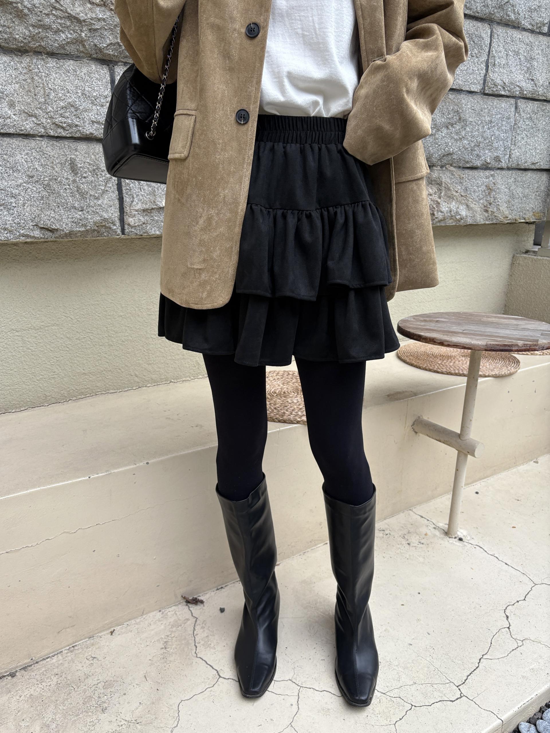 코지한 무드를 가득 담은 스웨이드 캉캉 미니 스커트입니다.