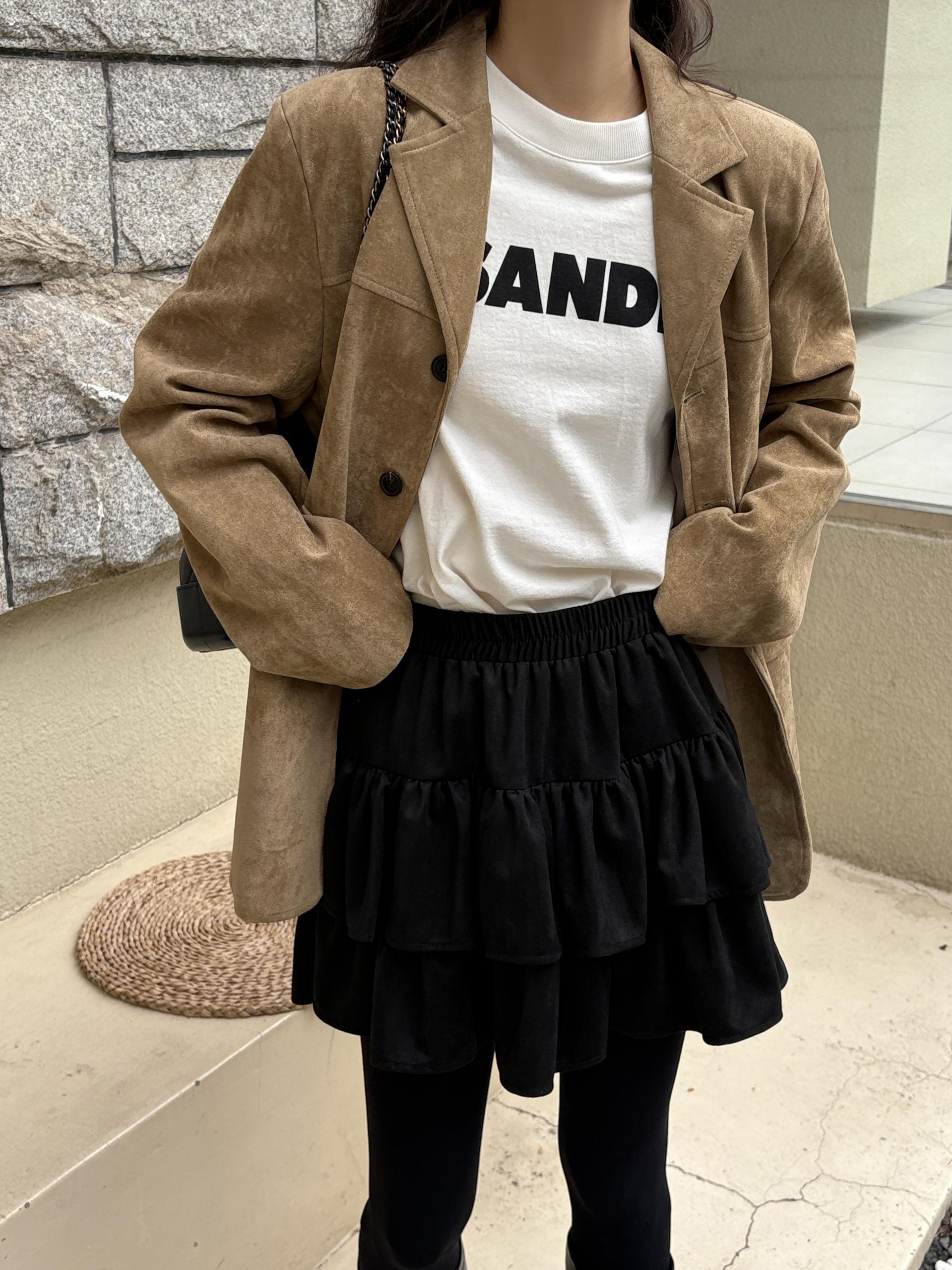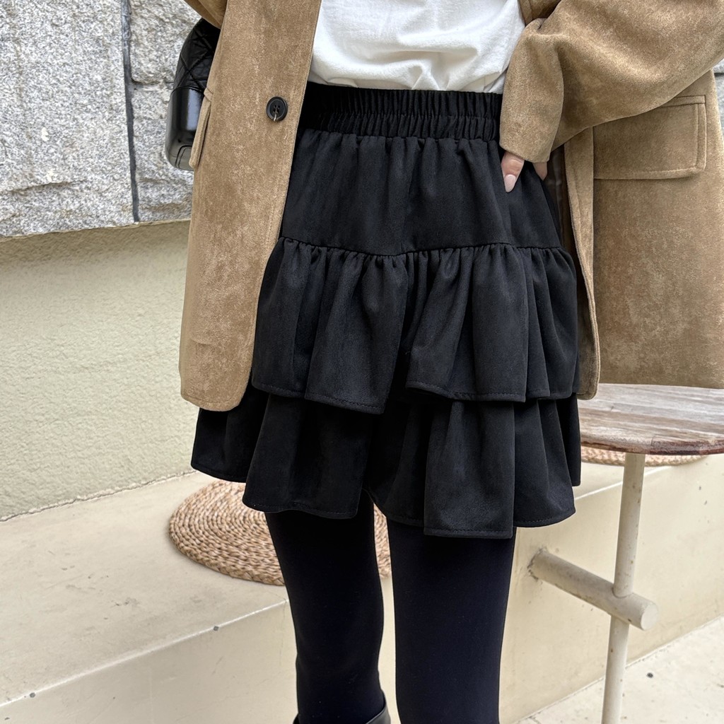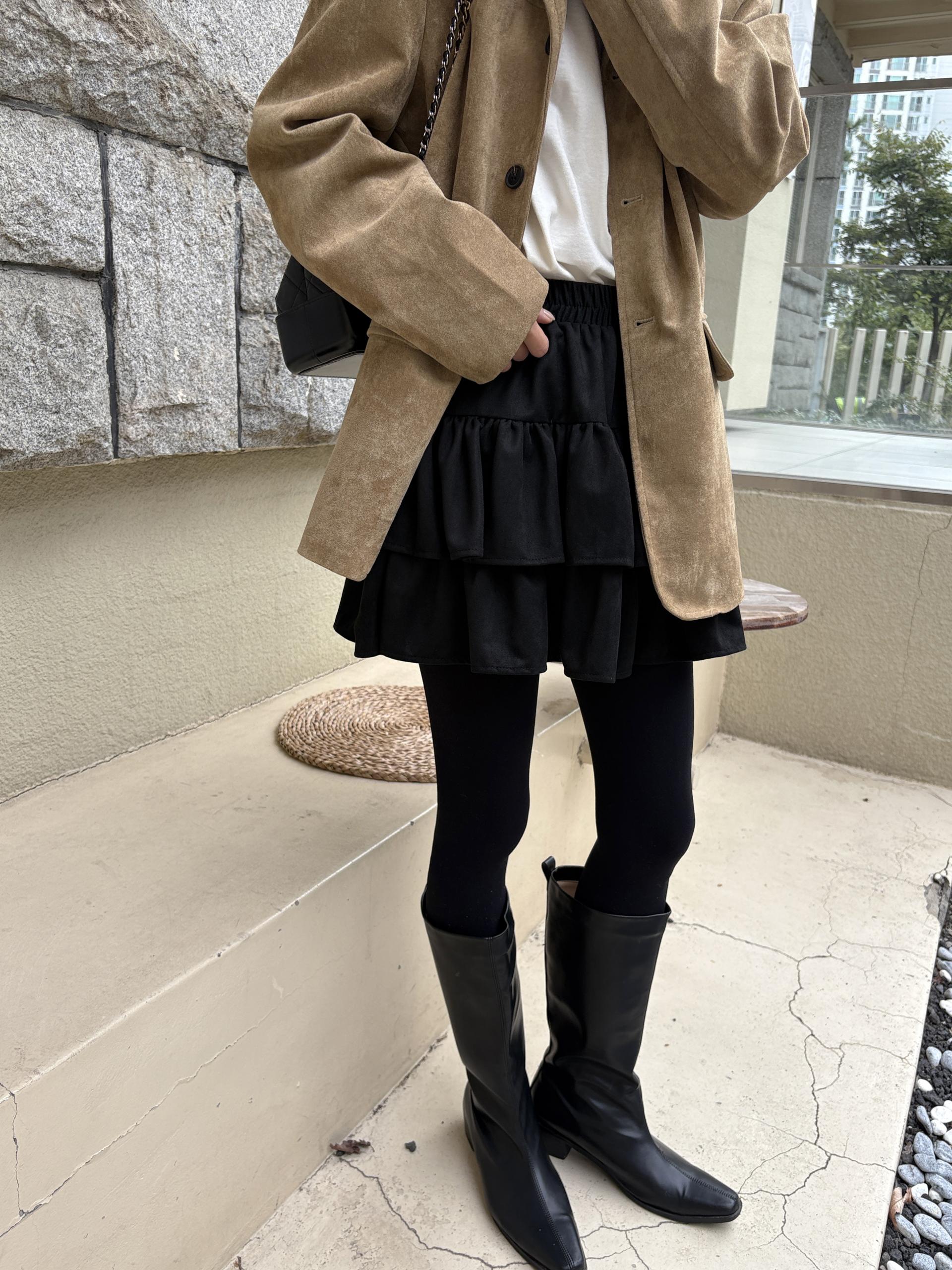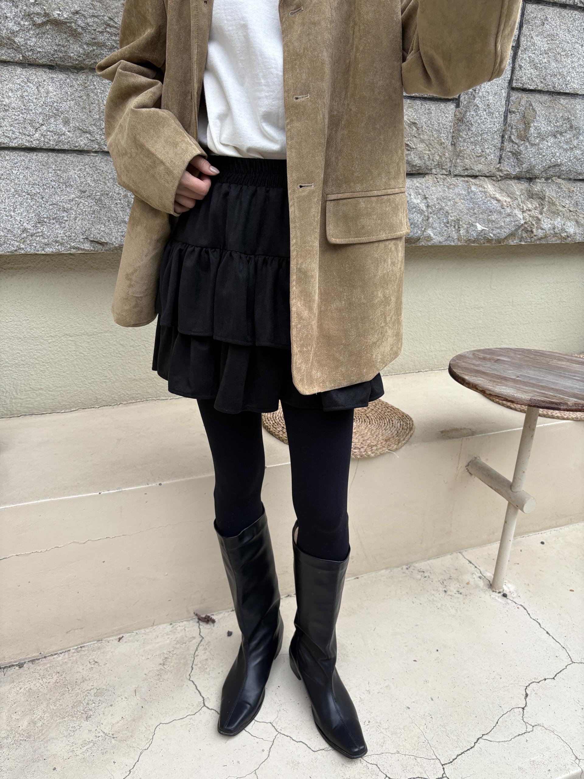 코지한 무드를 가득 담은 스웨이드 캉캉 미니 스커트입니다.