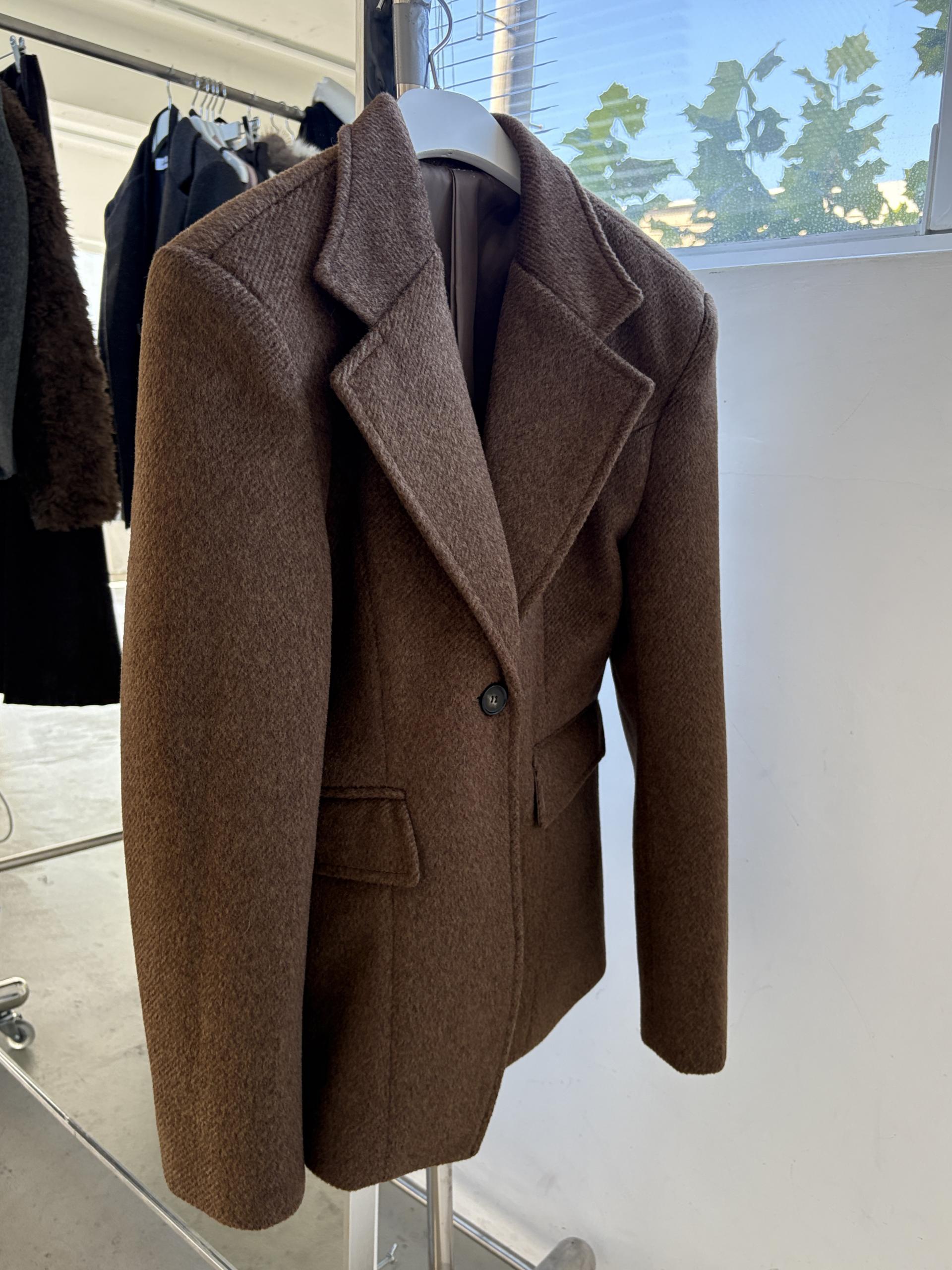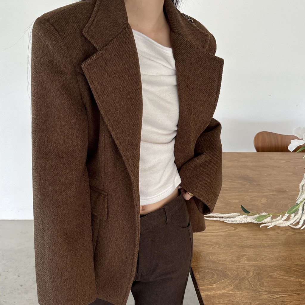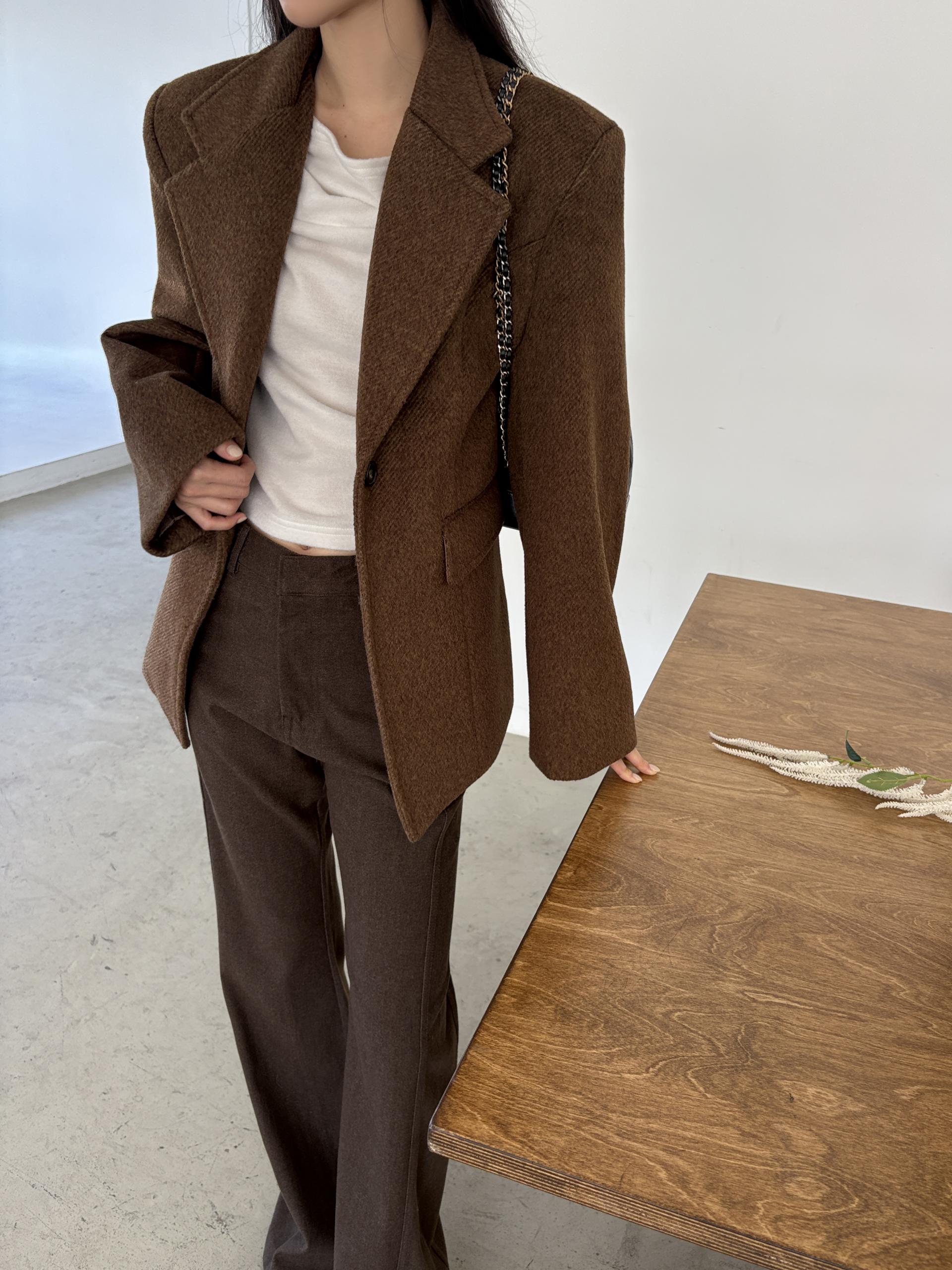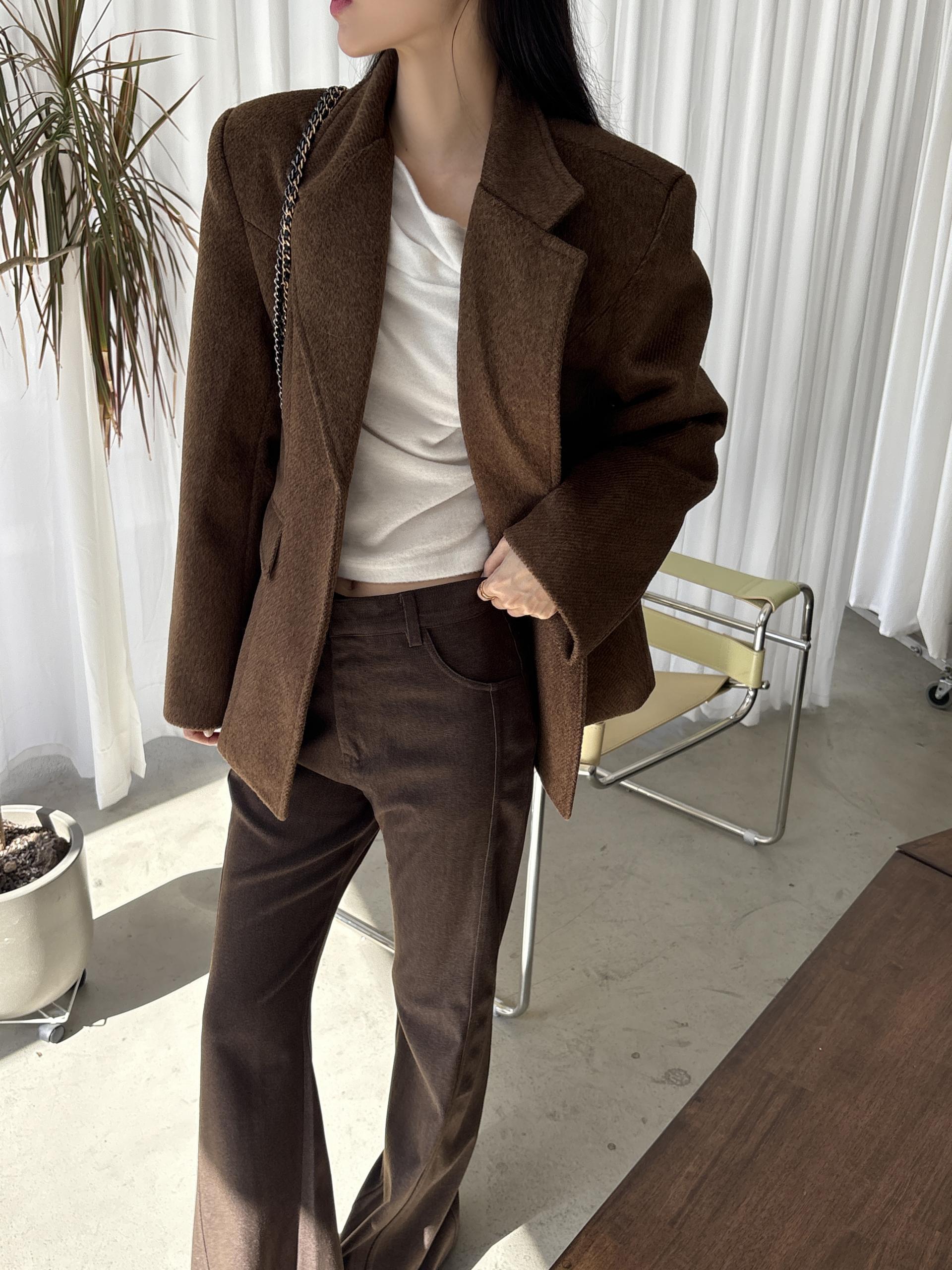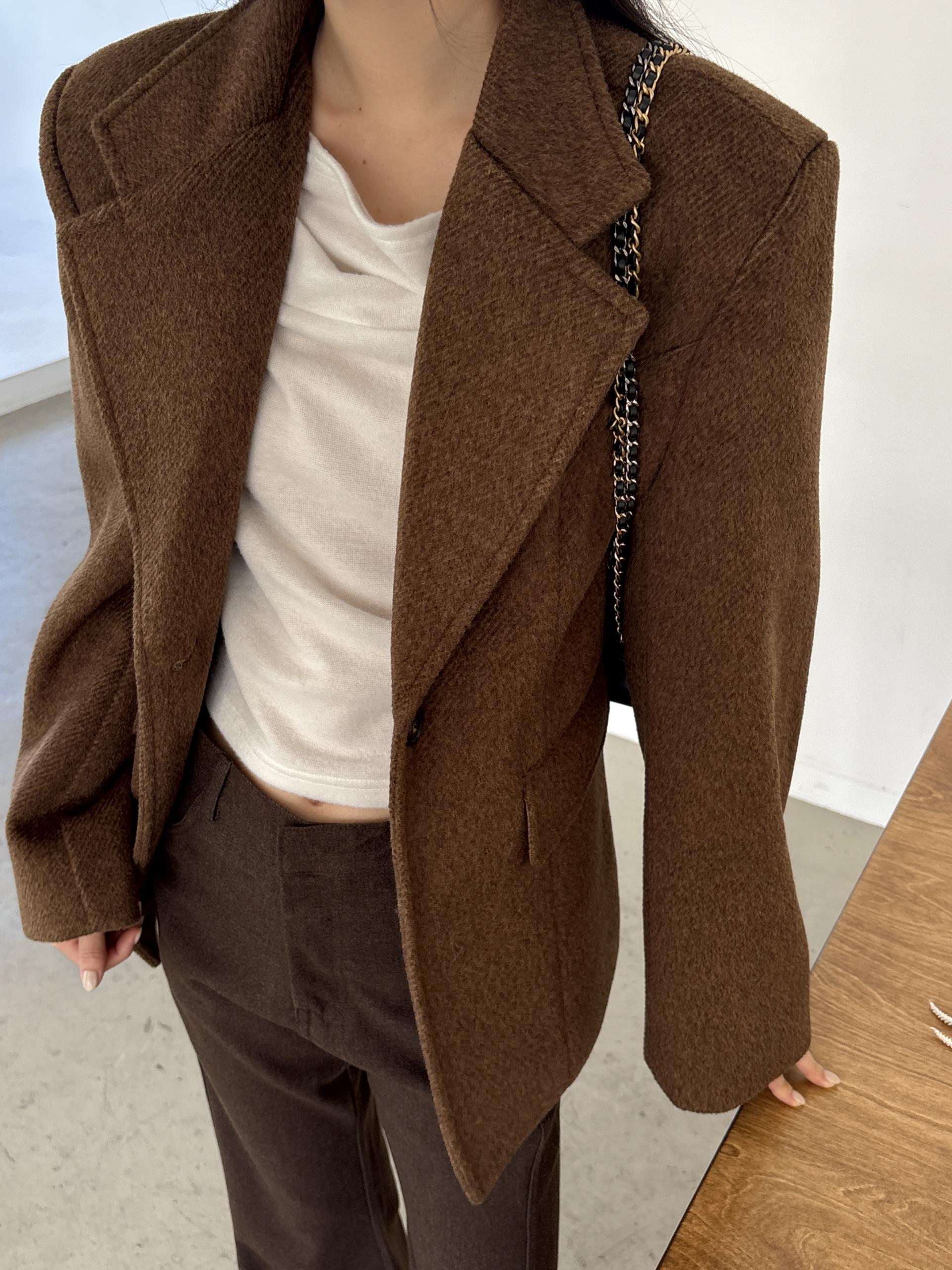 정돈된 어깨 라인과 잘록한 허리 라인이 체형을 살려주고, 깔끔한 라펠 디테일로 고급스러움을 더합니다.