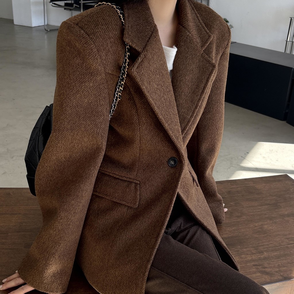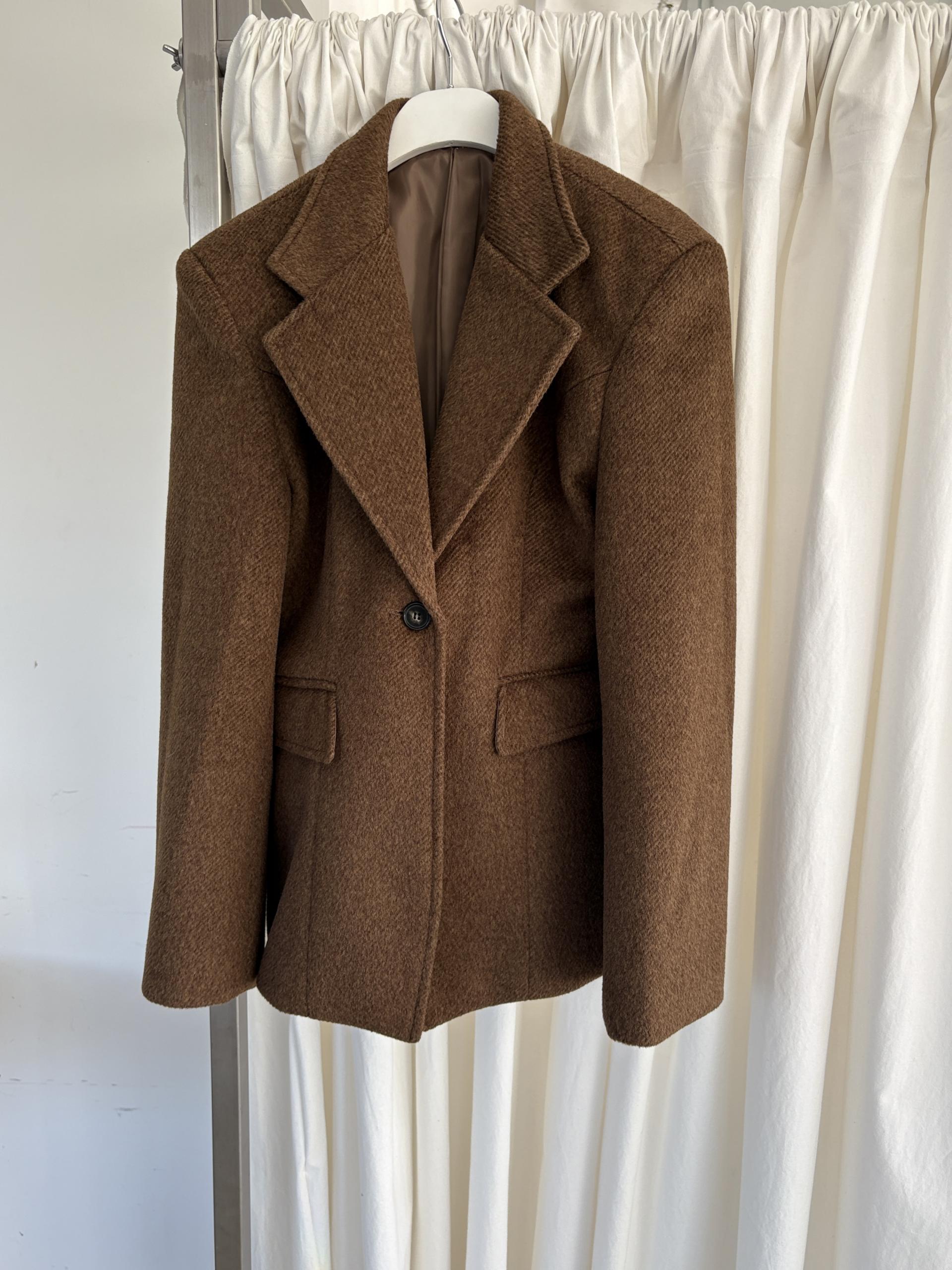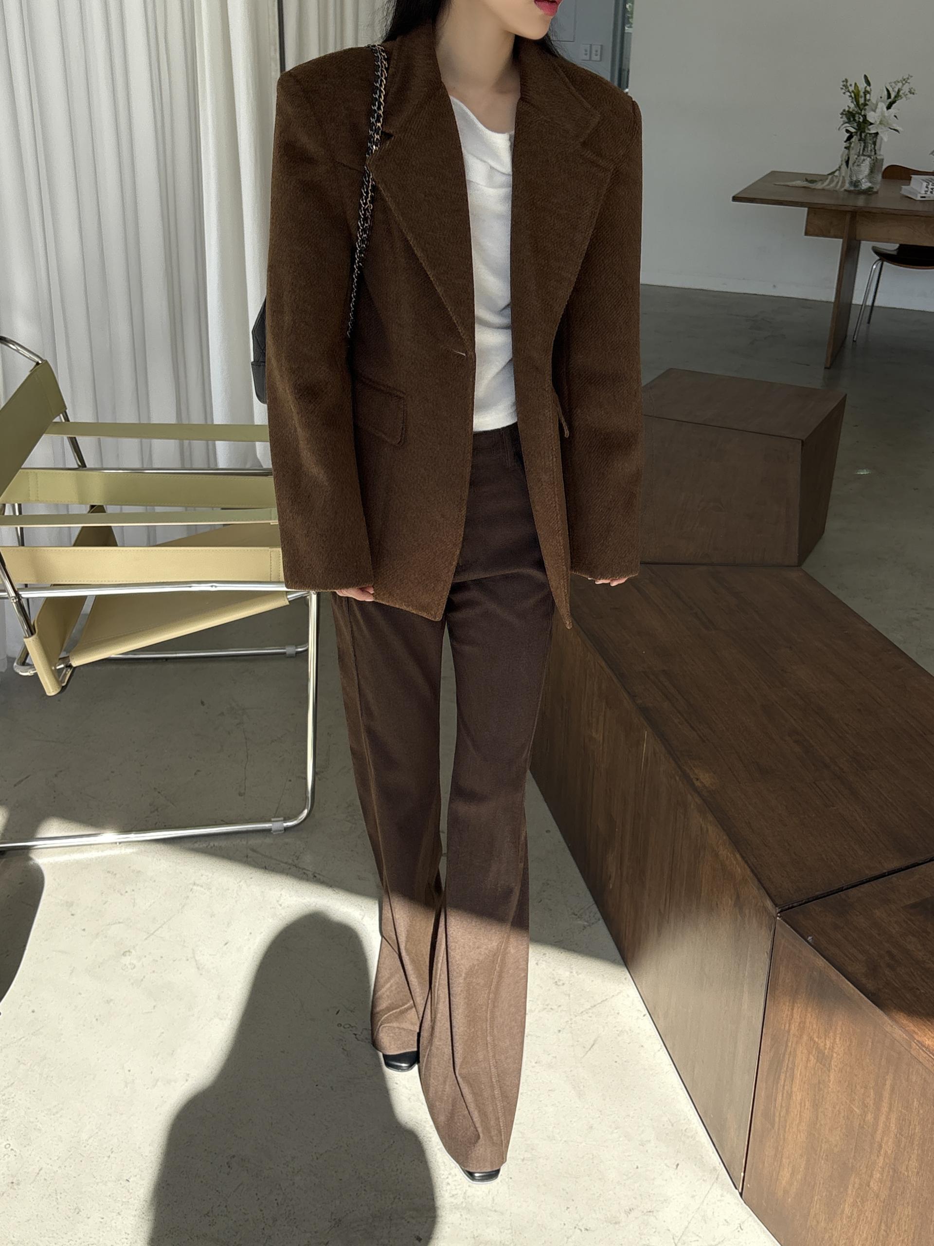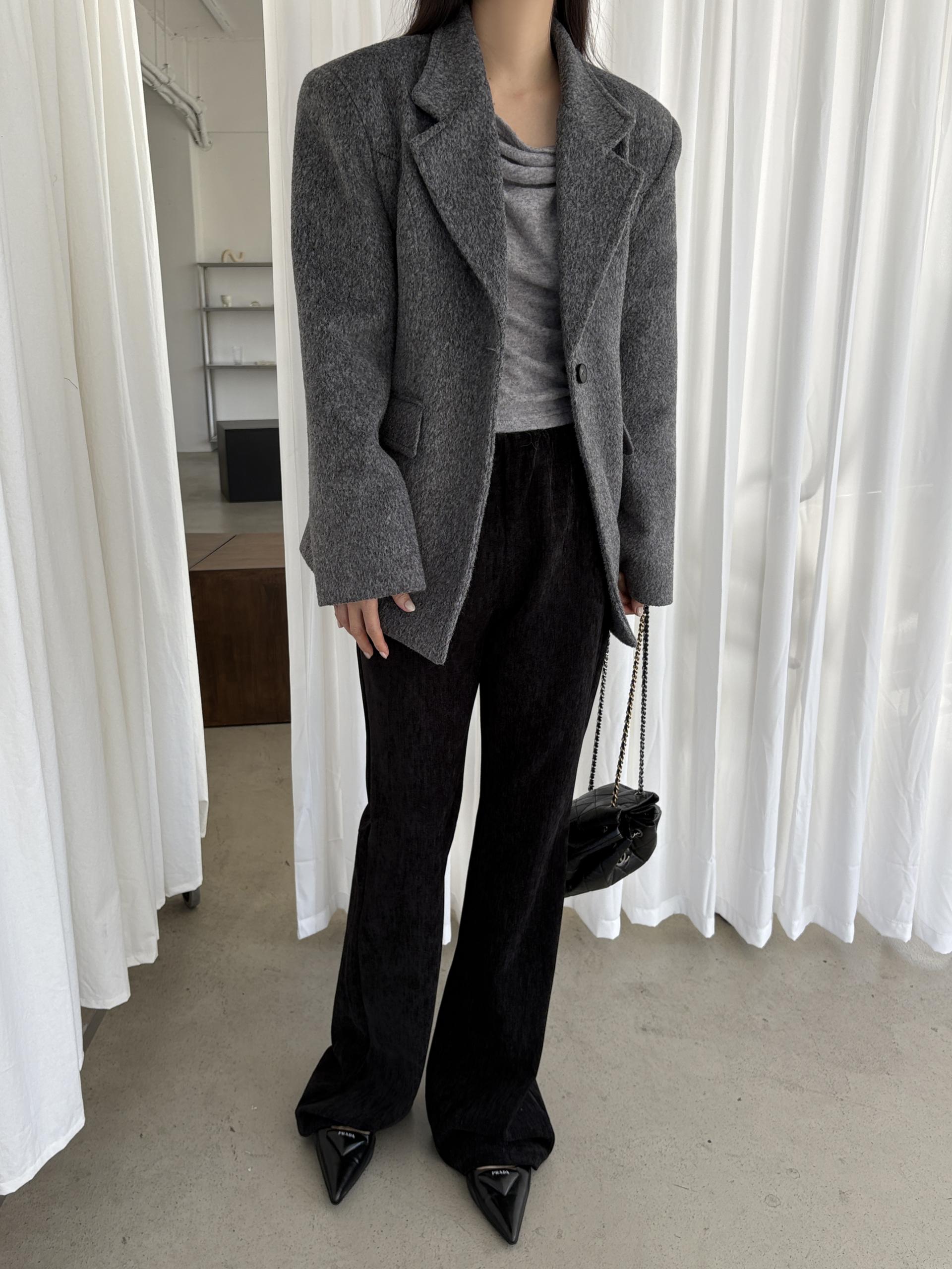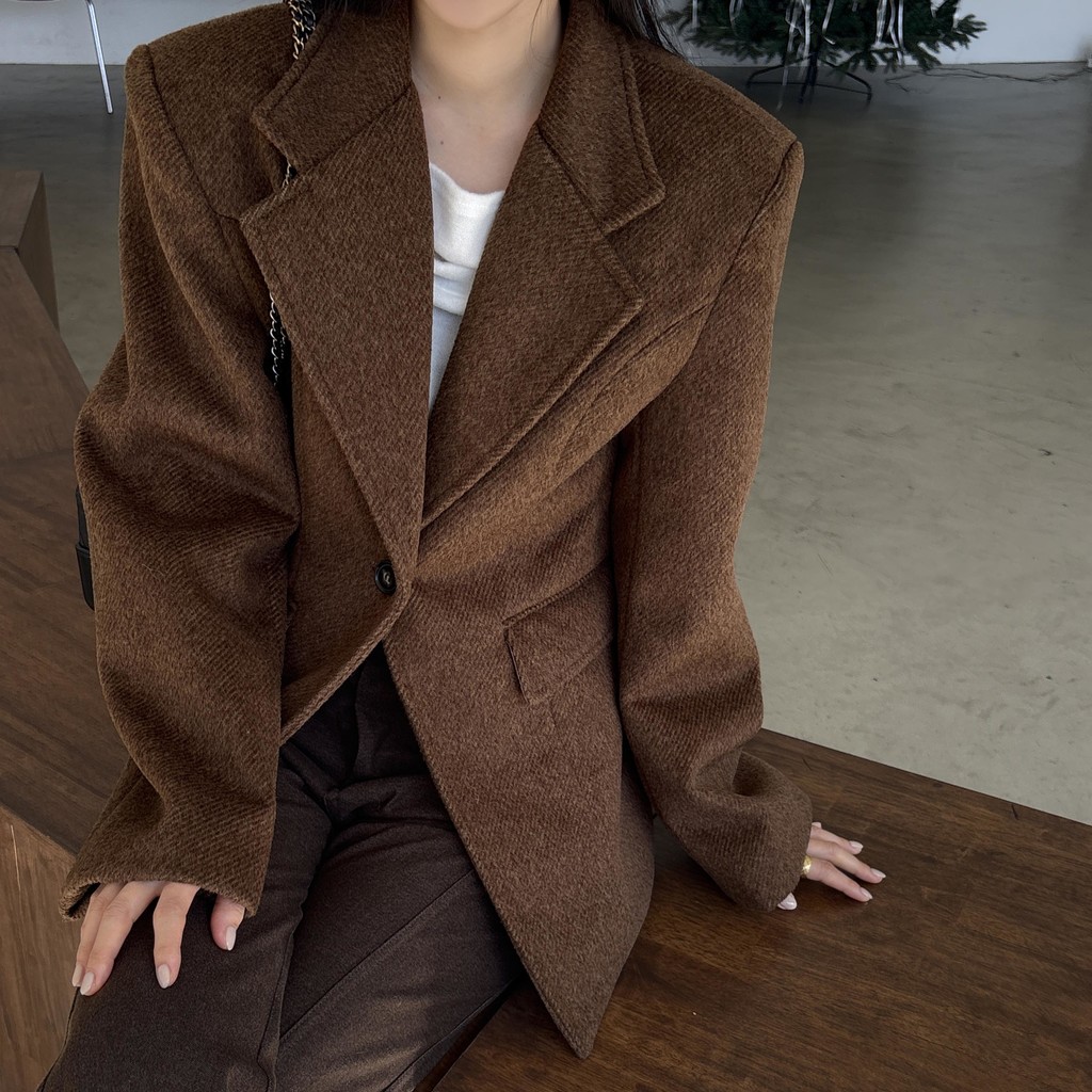 정돈된 어깨 라인과 잘록한 허리 라인이 체형을 살려주고, 깔끔한 라펠 디테일로 고급스러움을 더합니다.